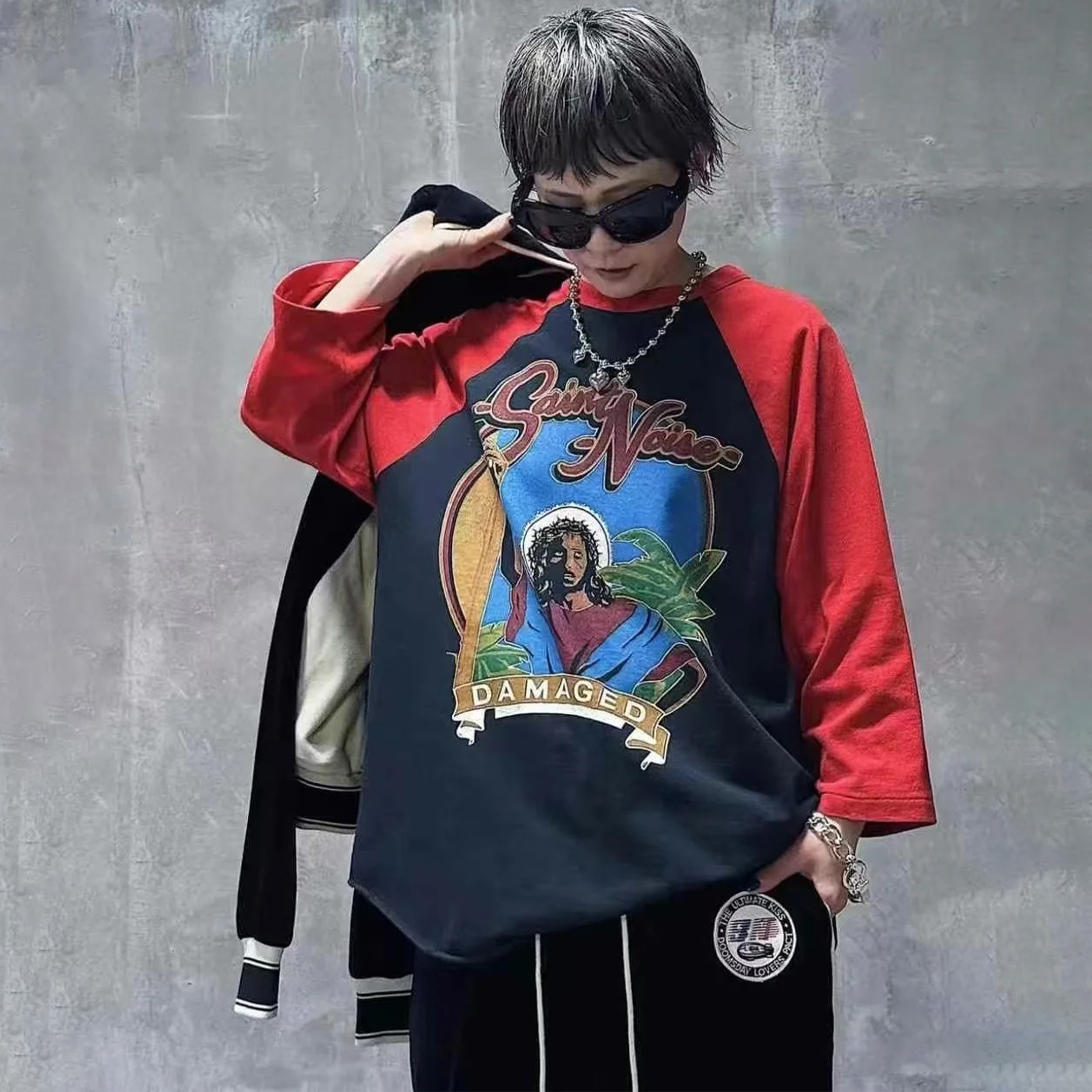 NIGO Saint Michael Men's Spring And Summer Tide Red American High Street Abstract Pattern Printing Retro Loose Short-sleeved Loose Mid-sleeved T-shirt Ngvp #nigo1745