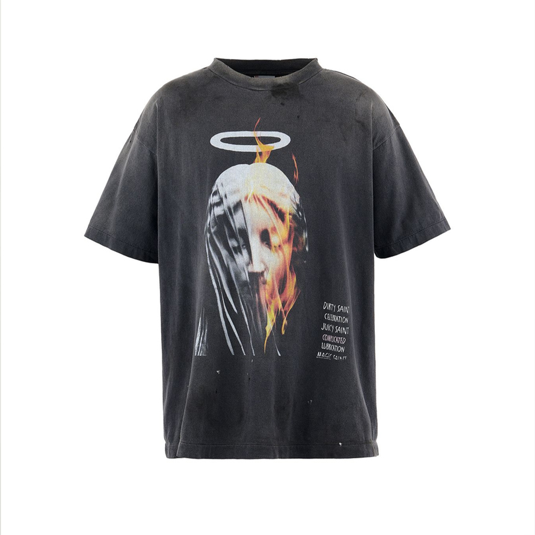 NIGO Saint Michael Men's Spring And Summer Tide American High Street Abstract Pattern Printing Washed Retro Old Loose Short-sleeved T-shirt Ngvp #nigo1744
