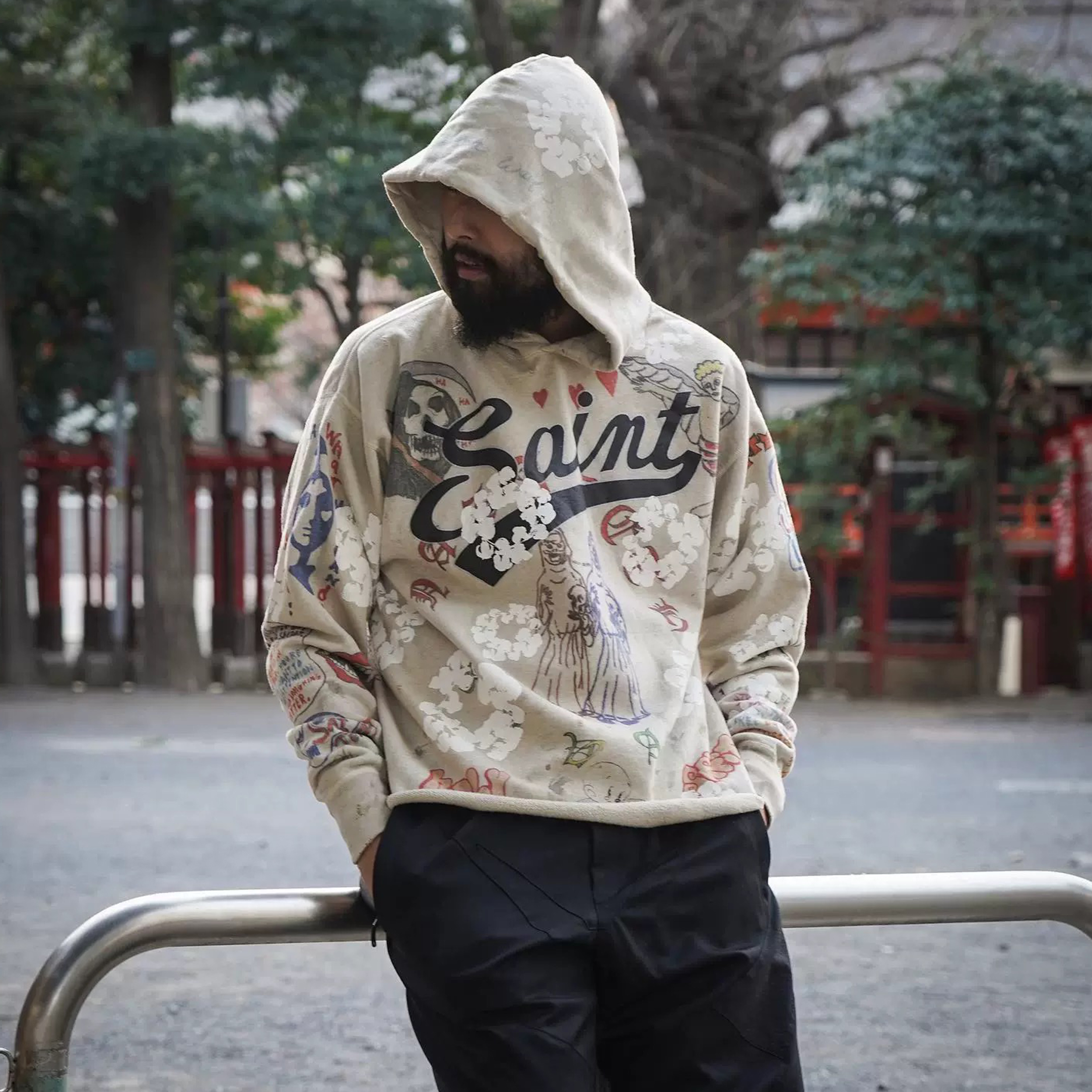 NIGO Saint Michael Men's And Women's Spring And Summer Graffiti Retro Old Letter Print Loose Casual Long-sleeved Hooded Sweater Tops Ngvp #nigo8191