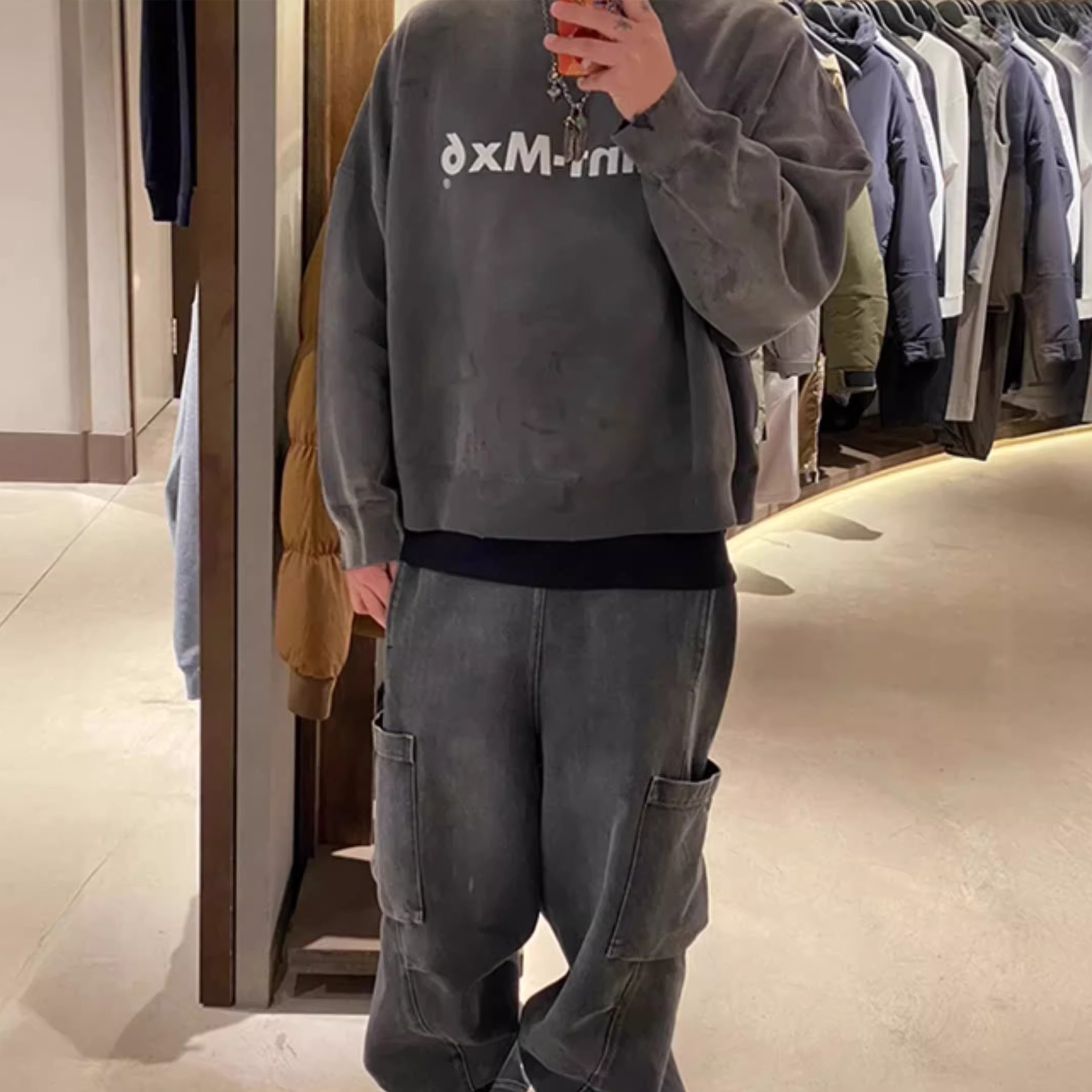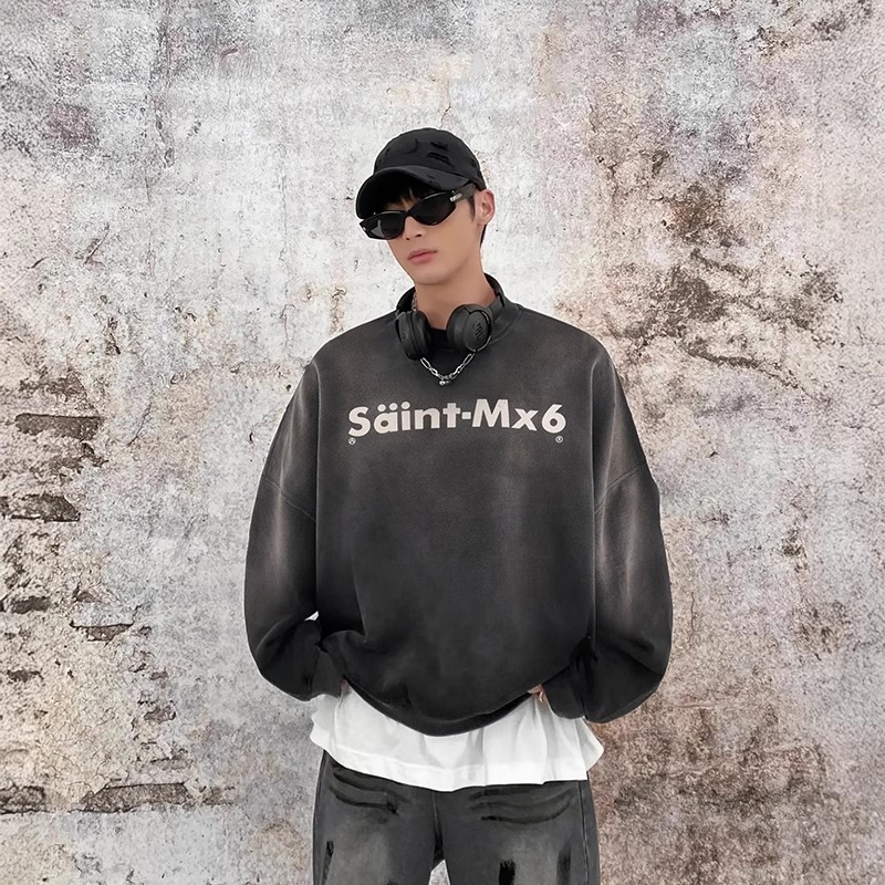 NIGO Saint Michael Men's Retro Washed Damage Sweatshirt Solid Colour Simple Fashion High Street Casual Trend Round Neck Long Sleeve Pullover Sweatshirt T-shirt Ngvp #nigo9788