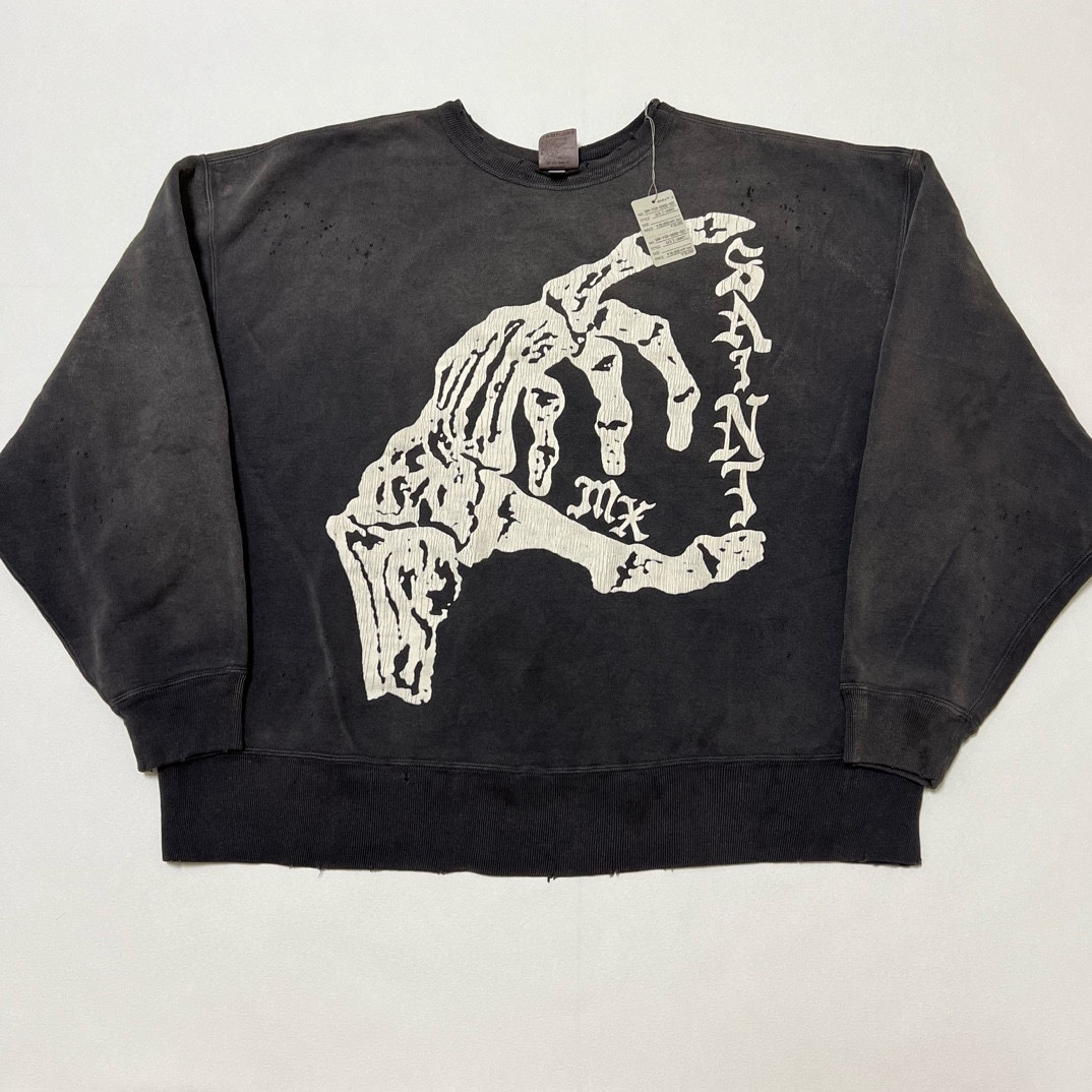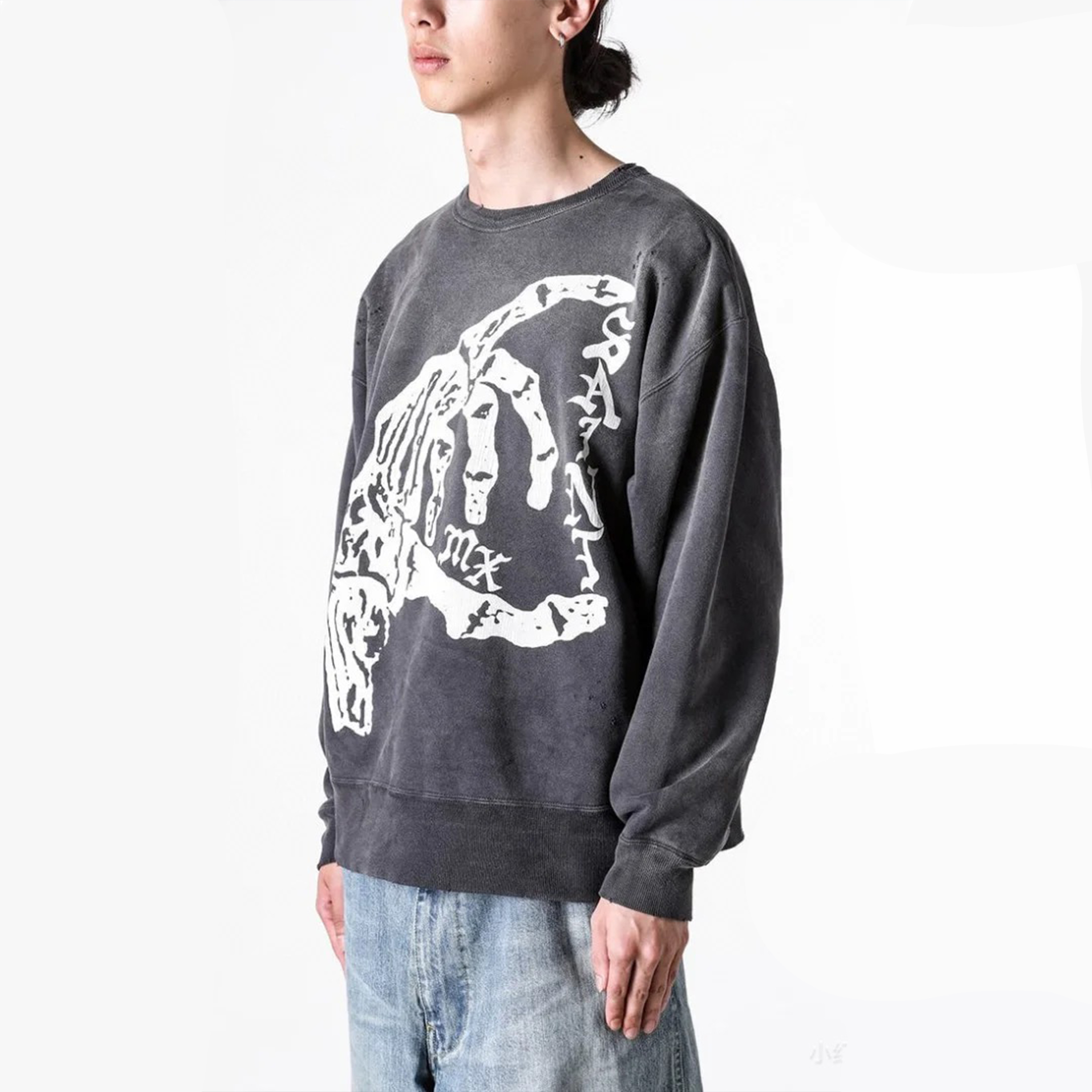 NIGO Saint Michael Men's Skull Print Retro Washed Grey Sweatshirt Fashion High Street Casual Trend Round Neck Long Sleeve Pullover Sweatshirt T-shirt Ngvp #nigo9796