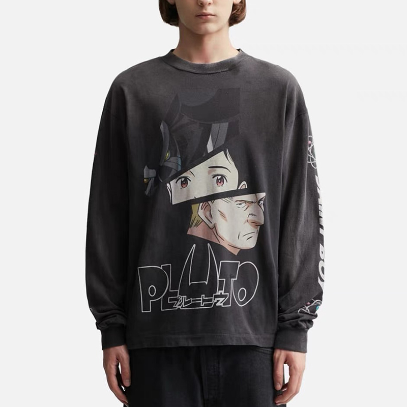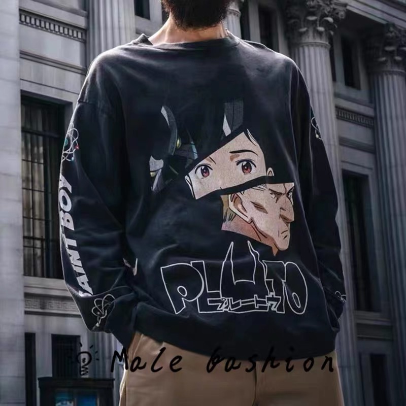 NIGO Saint Michael Men's Spring, Autumn And Winter High Street Letter Printed Round Neck Cotton Loose Pullover Long Sleeve Black Sweatshirt Ngvp #nigo9471