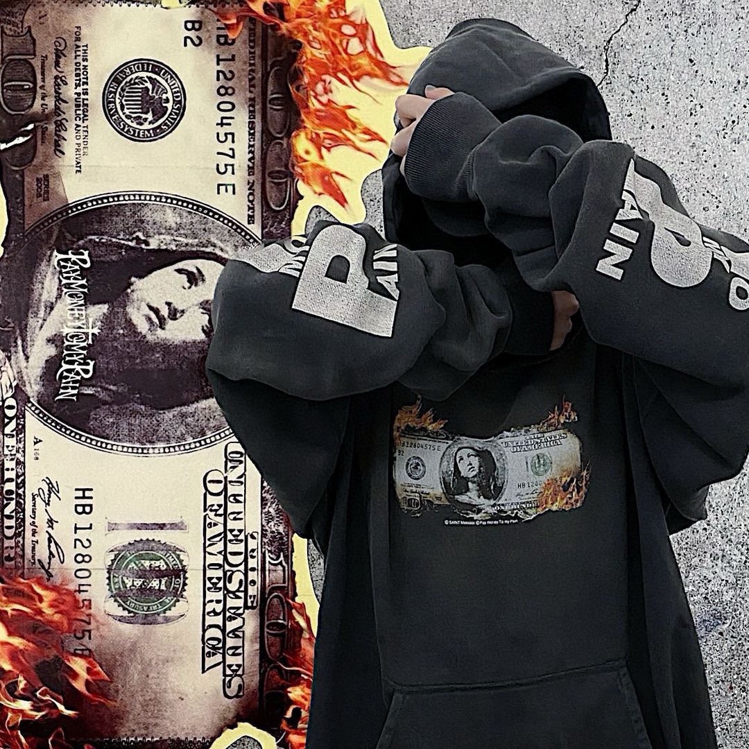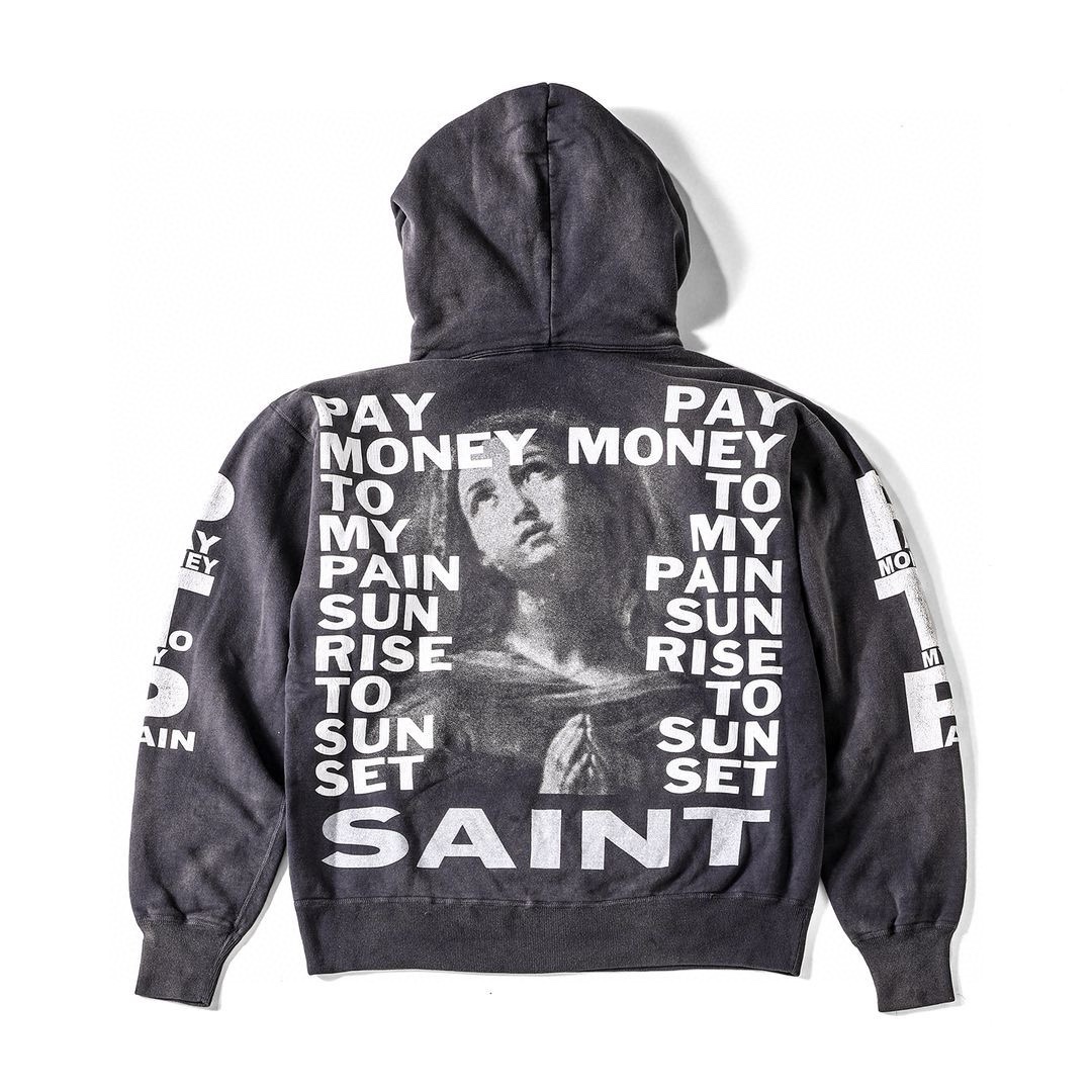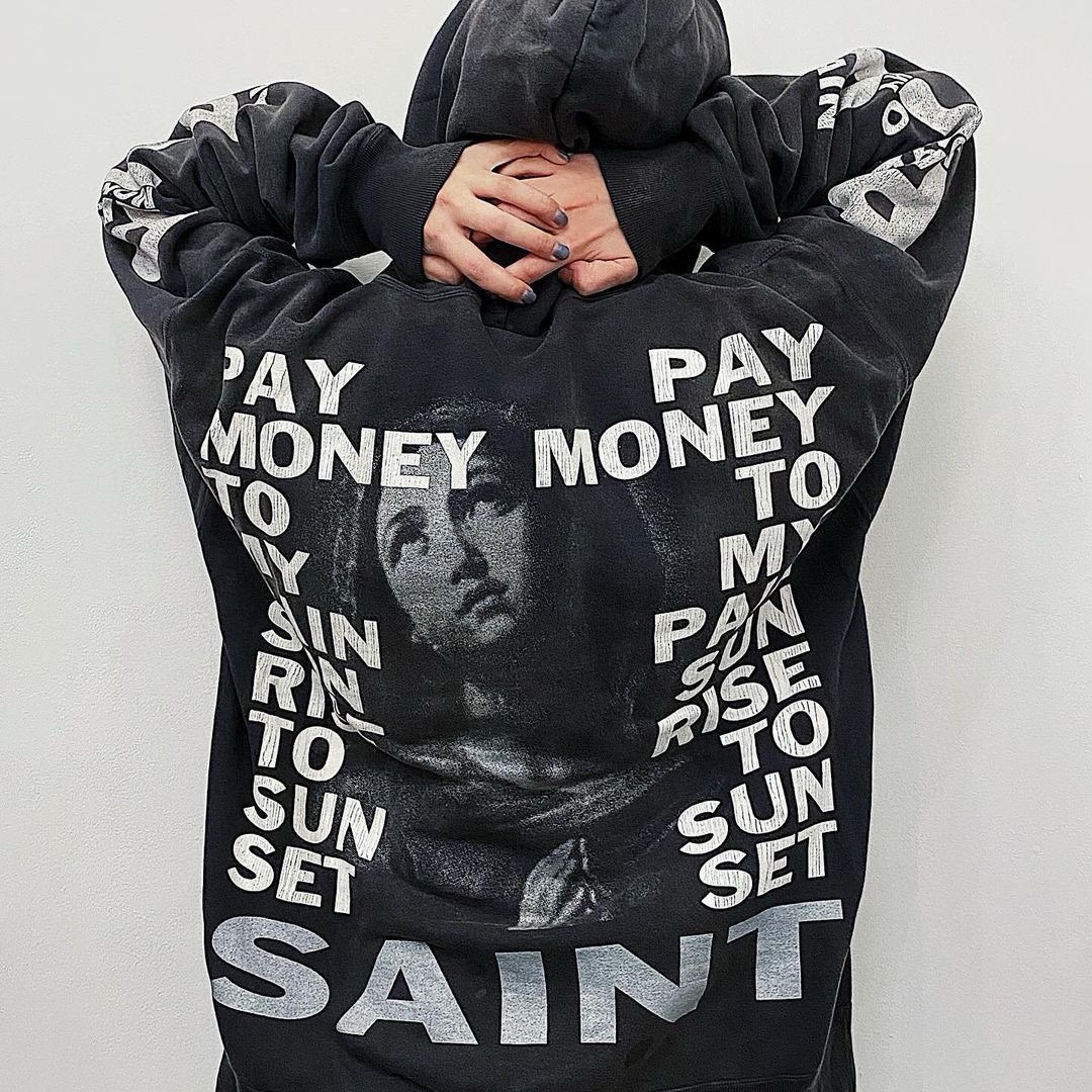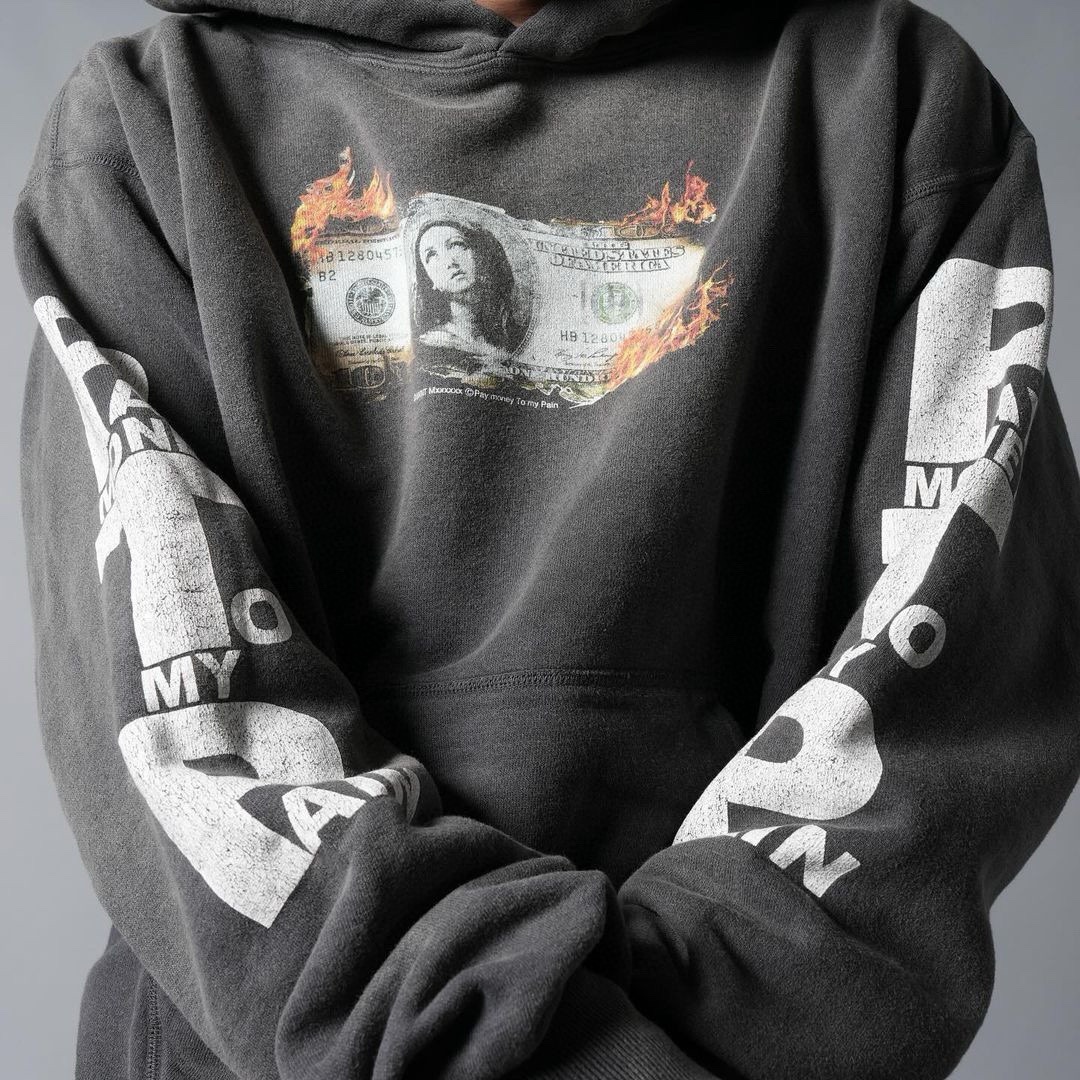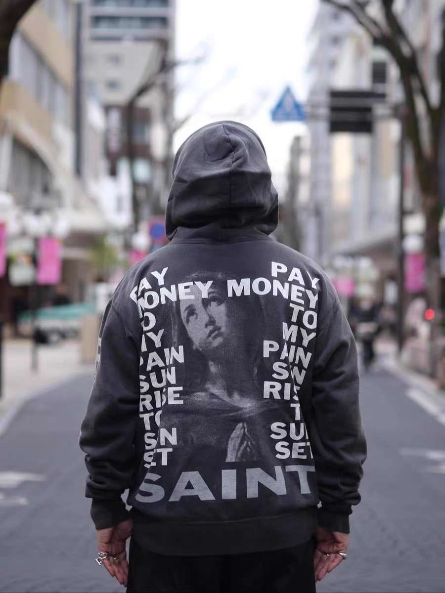 NIGO Saint Michael x Pay Money To My Pain Men's Women's Spring And Autumn Cotton Patterned Printed Long Sleeve Fitted Black Hooded Sweatshirt Ngvp #nigo9353