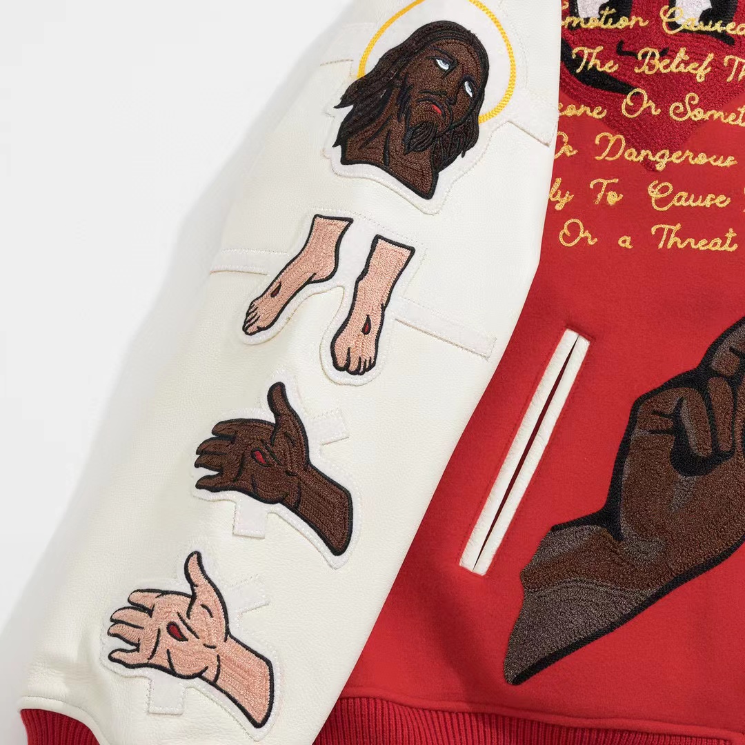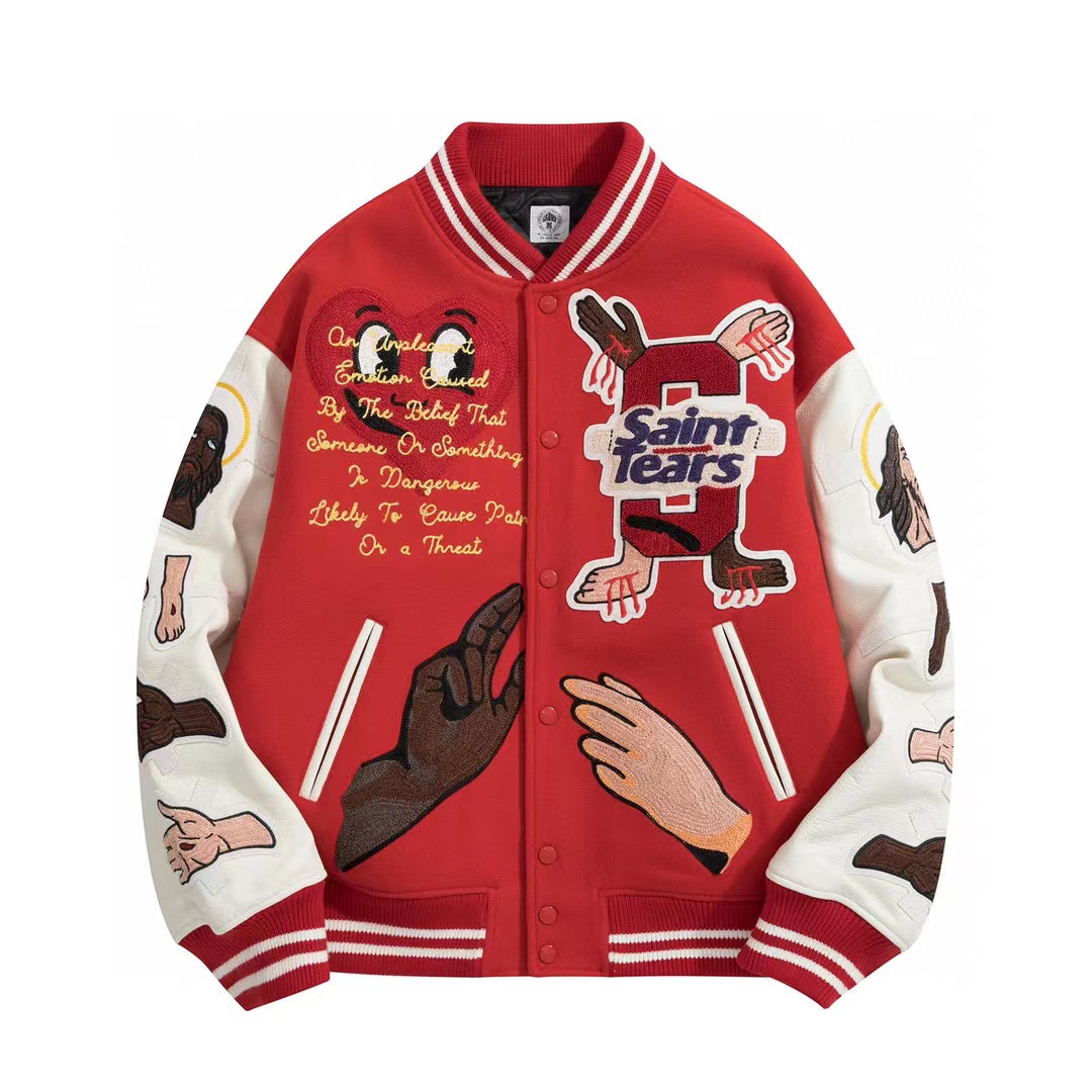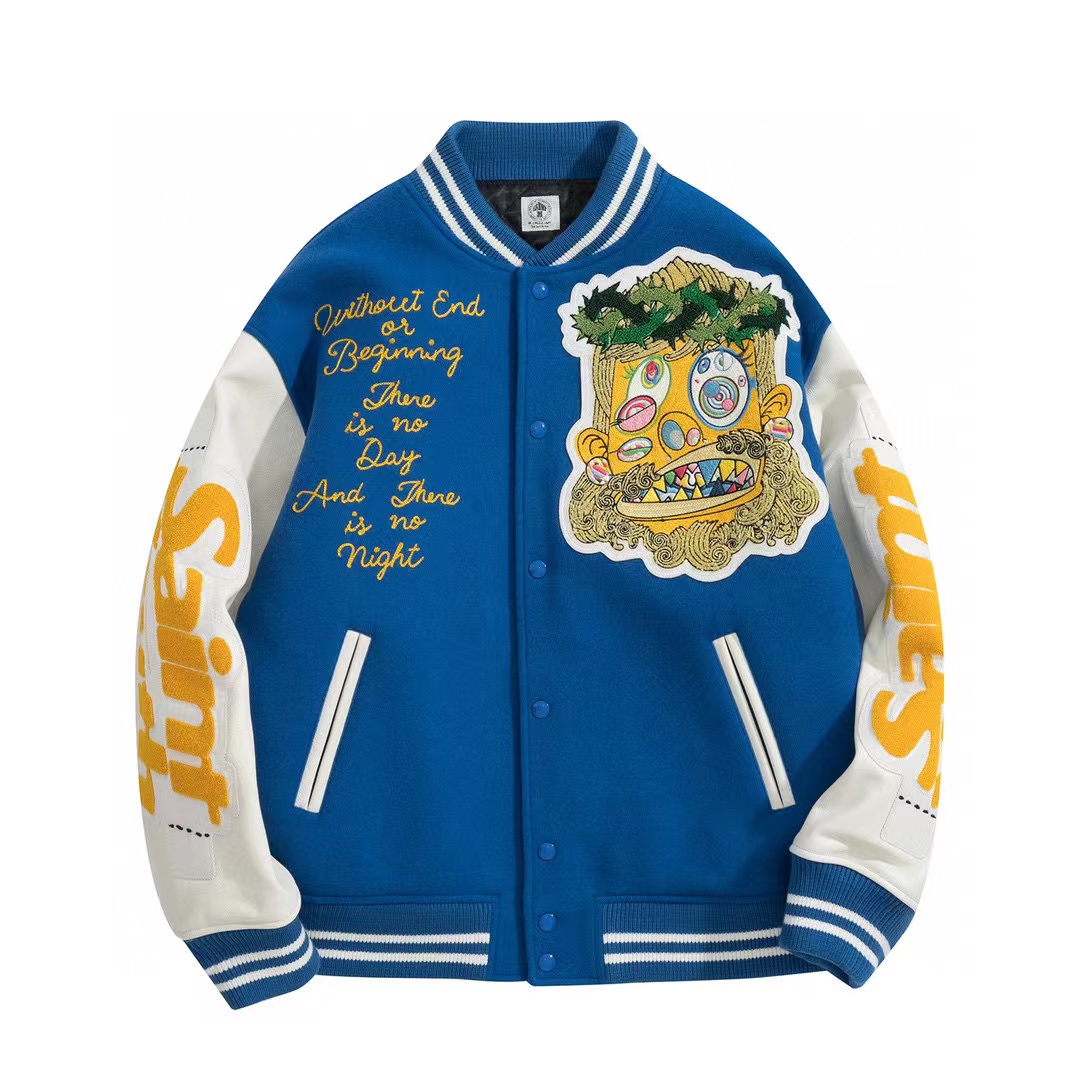 Saint Michael Autumn Winter Leather Sleeve Woolen Jackets Baseball Jacket #nigo56354