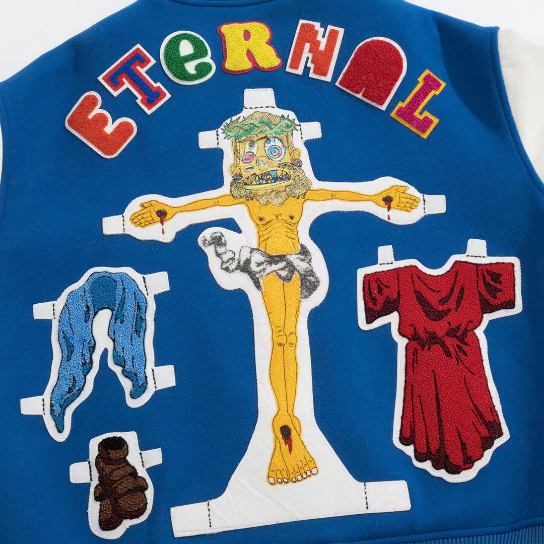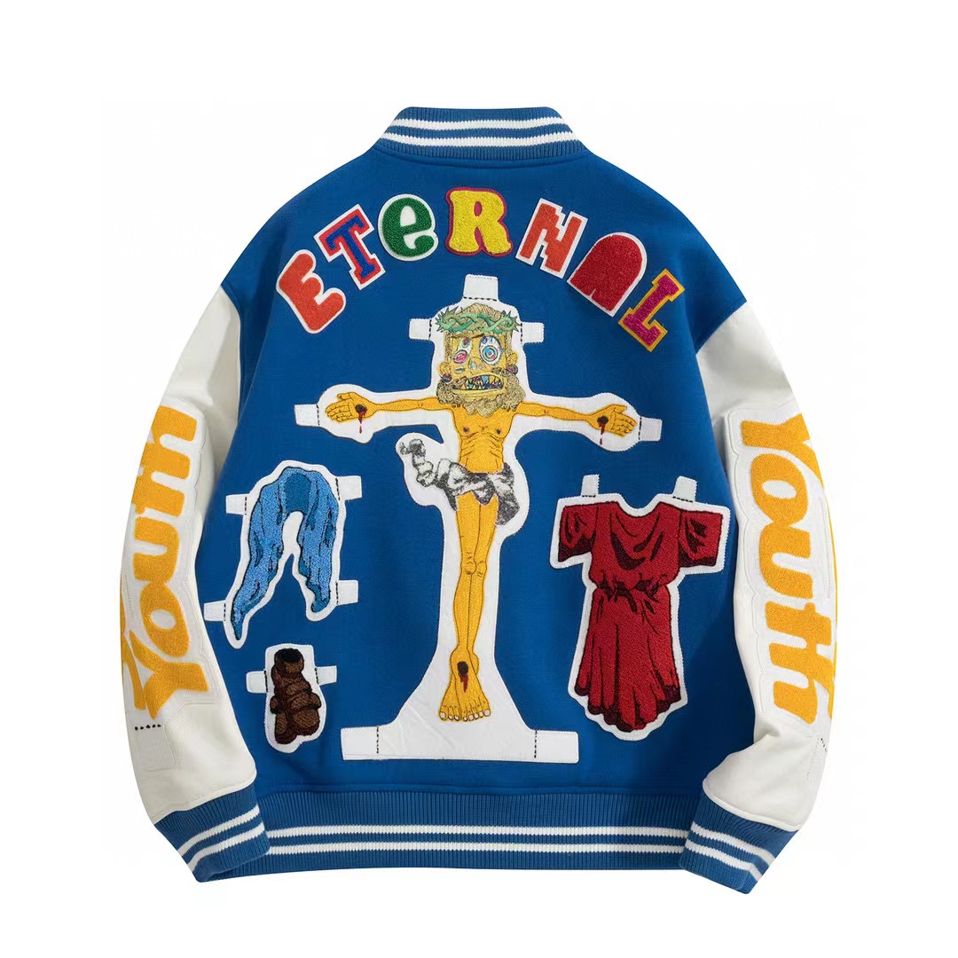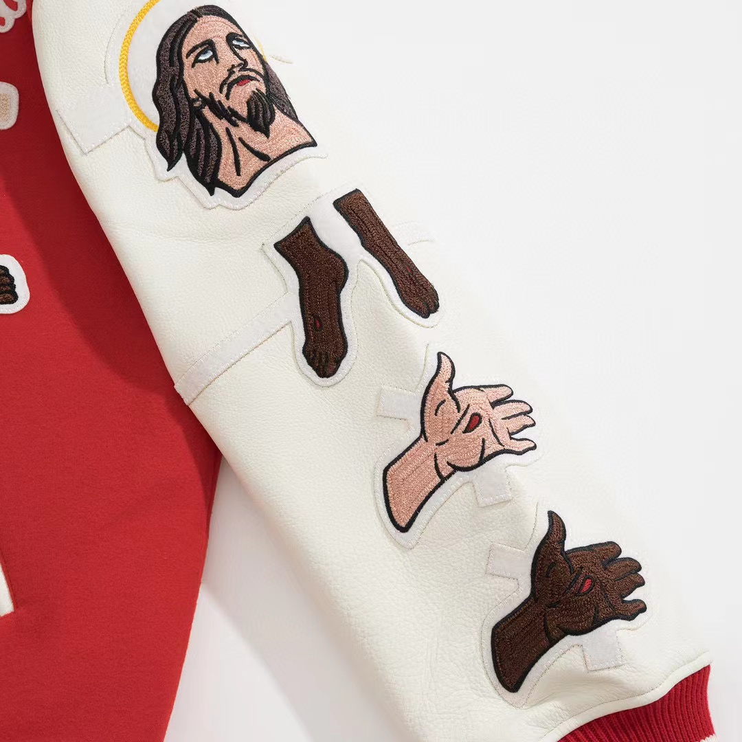 Saint Michael Autumn Winter Leather Sleeve Woolen Jackets Baseball Jacket #nigo56354