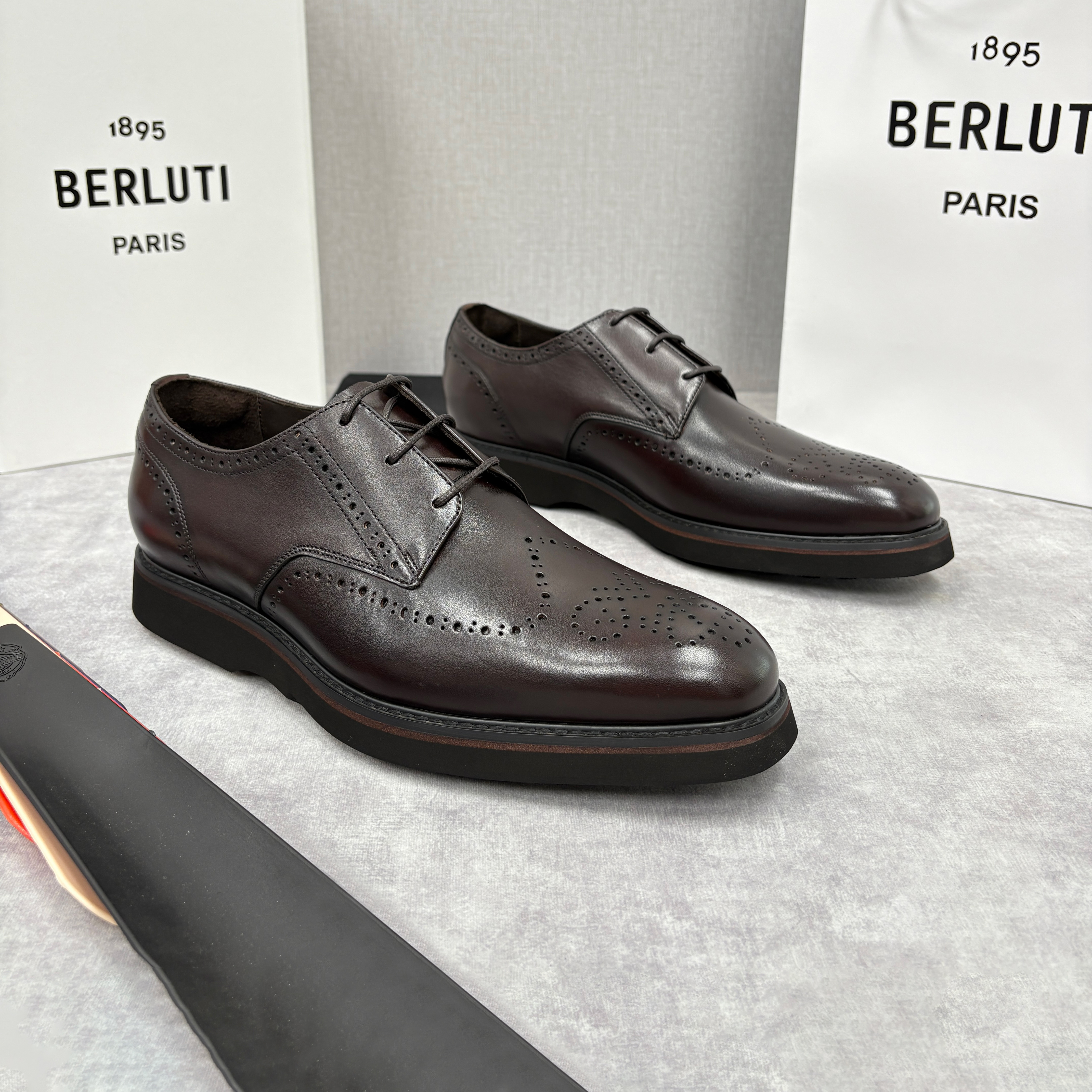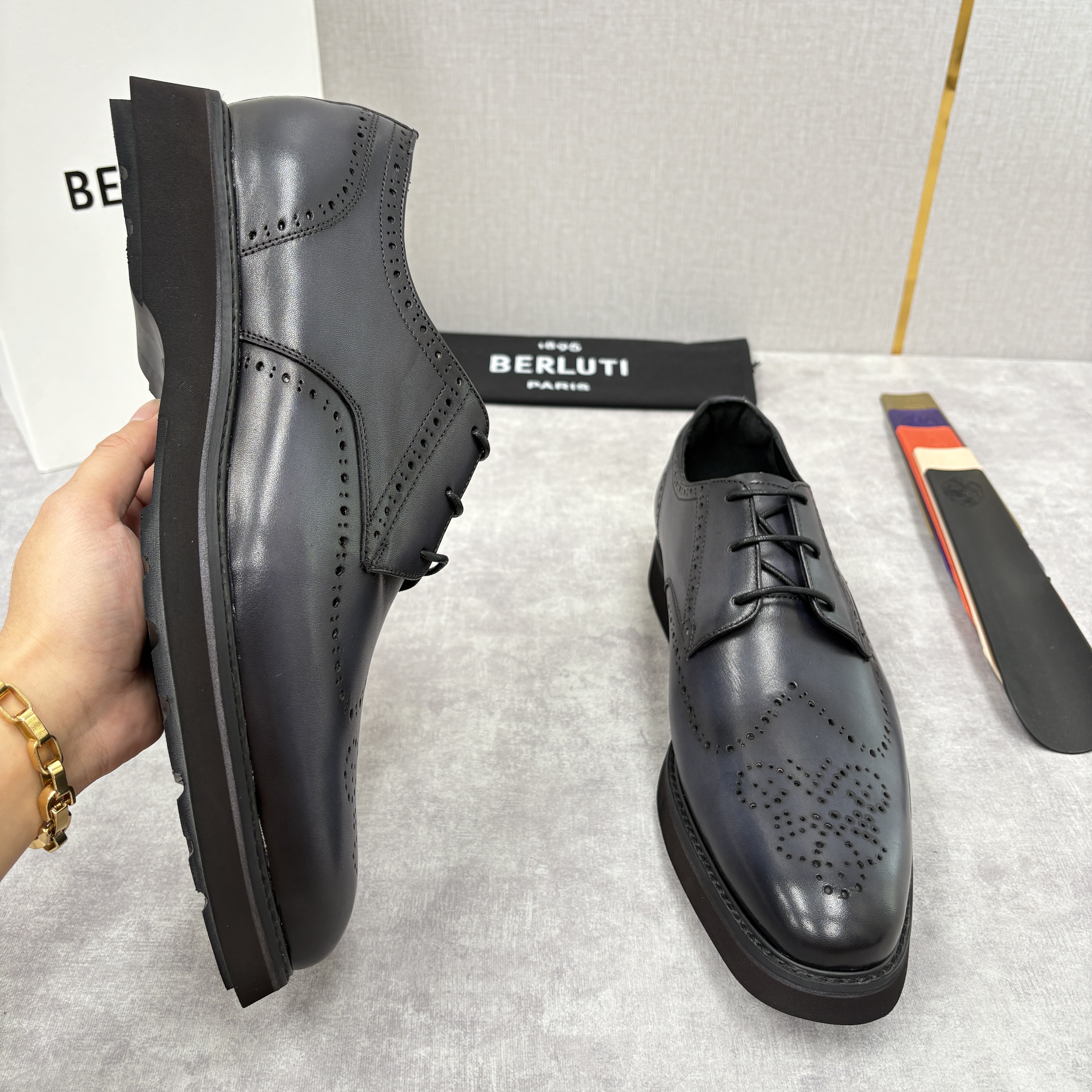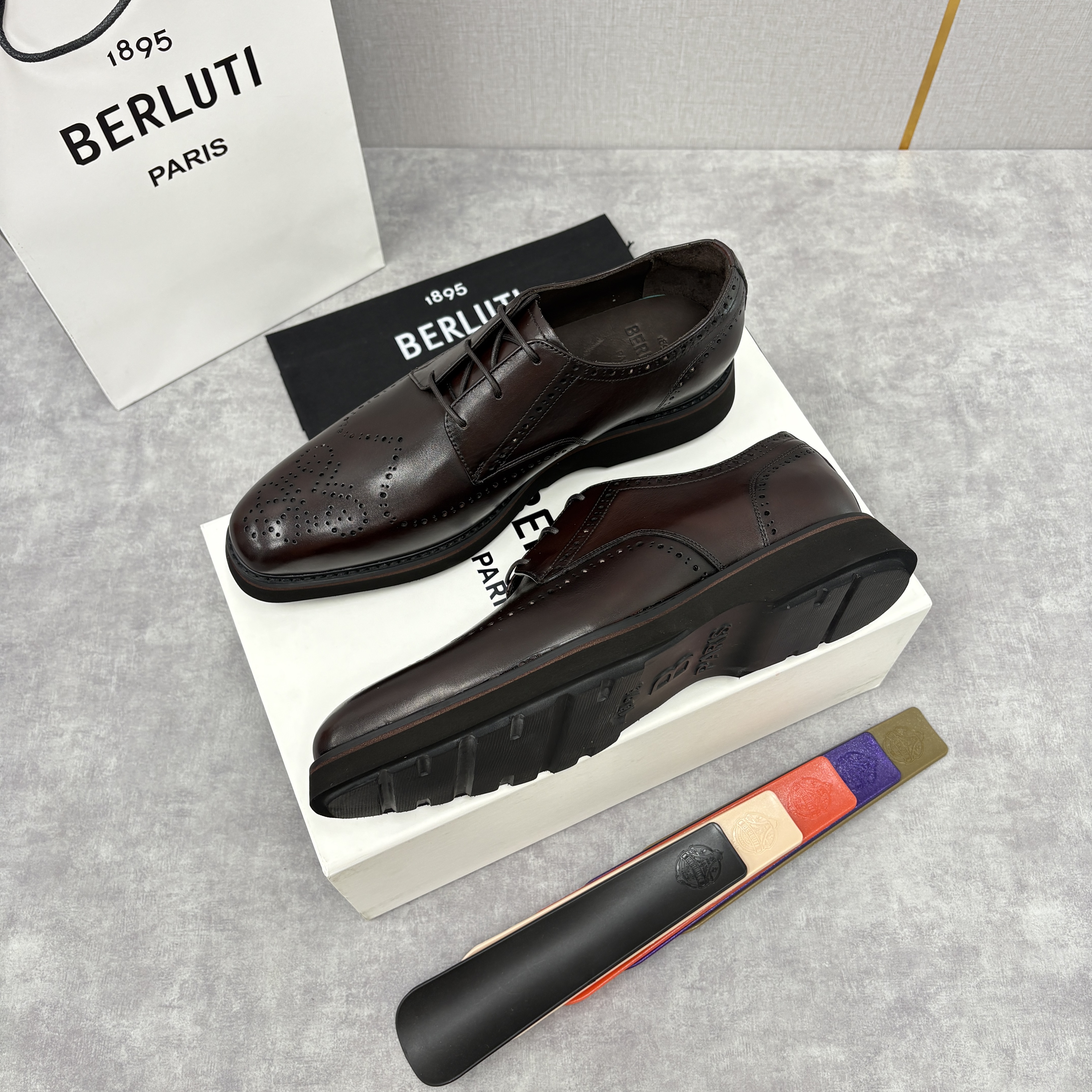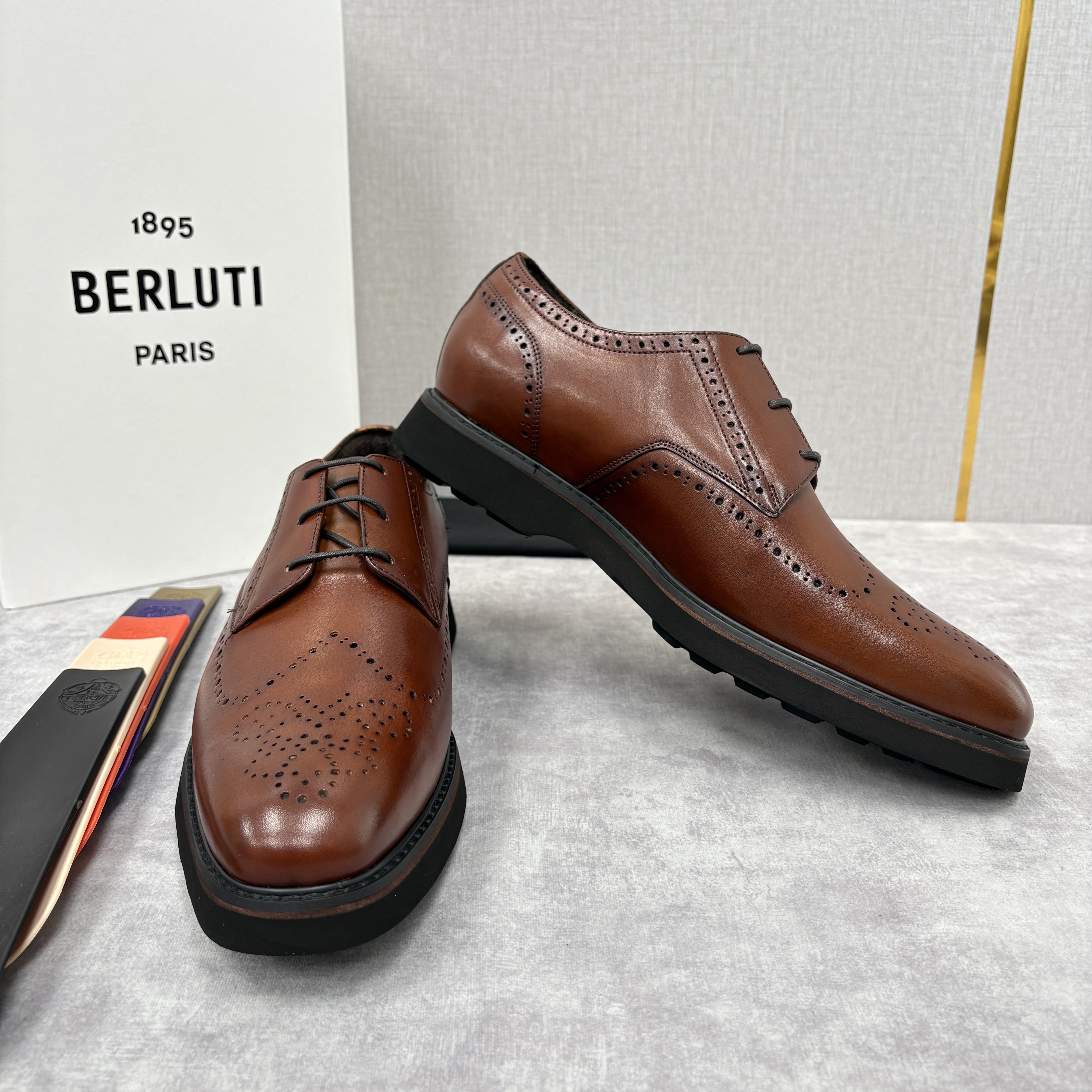 NIGO Berluti Alessio Natural Men's Spring/Fall Fashion Classic Leather Brogue Oxford Shoes with Thick Rubber Sole Calfskin Derby Shoes #nigo78573