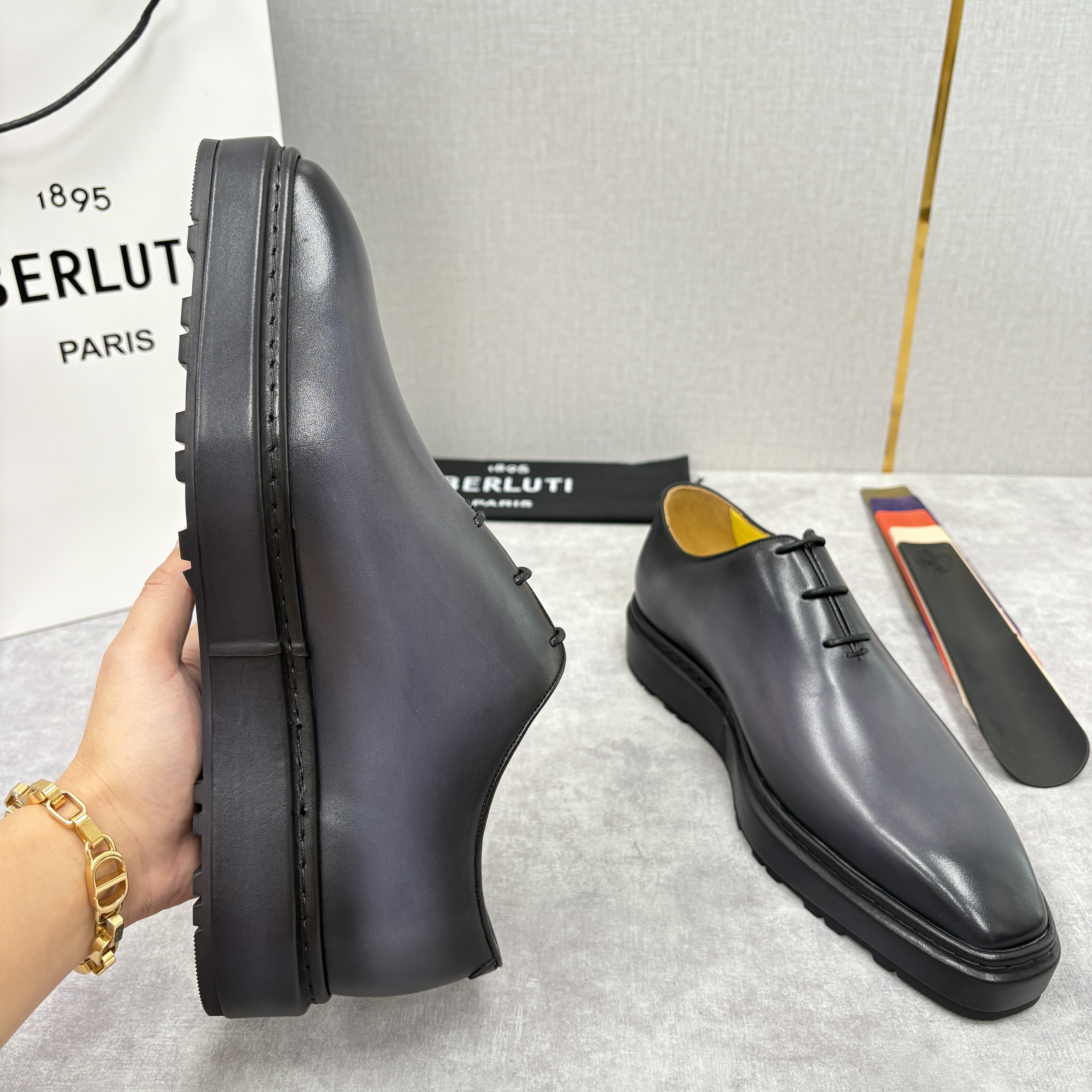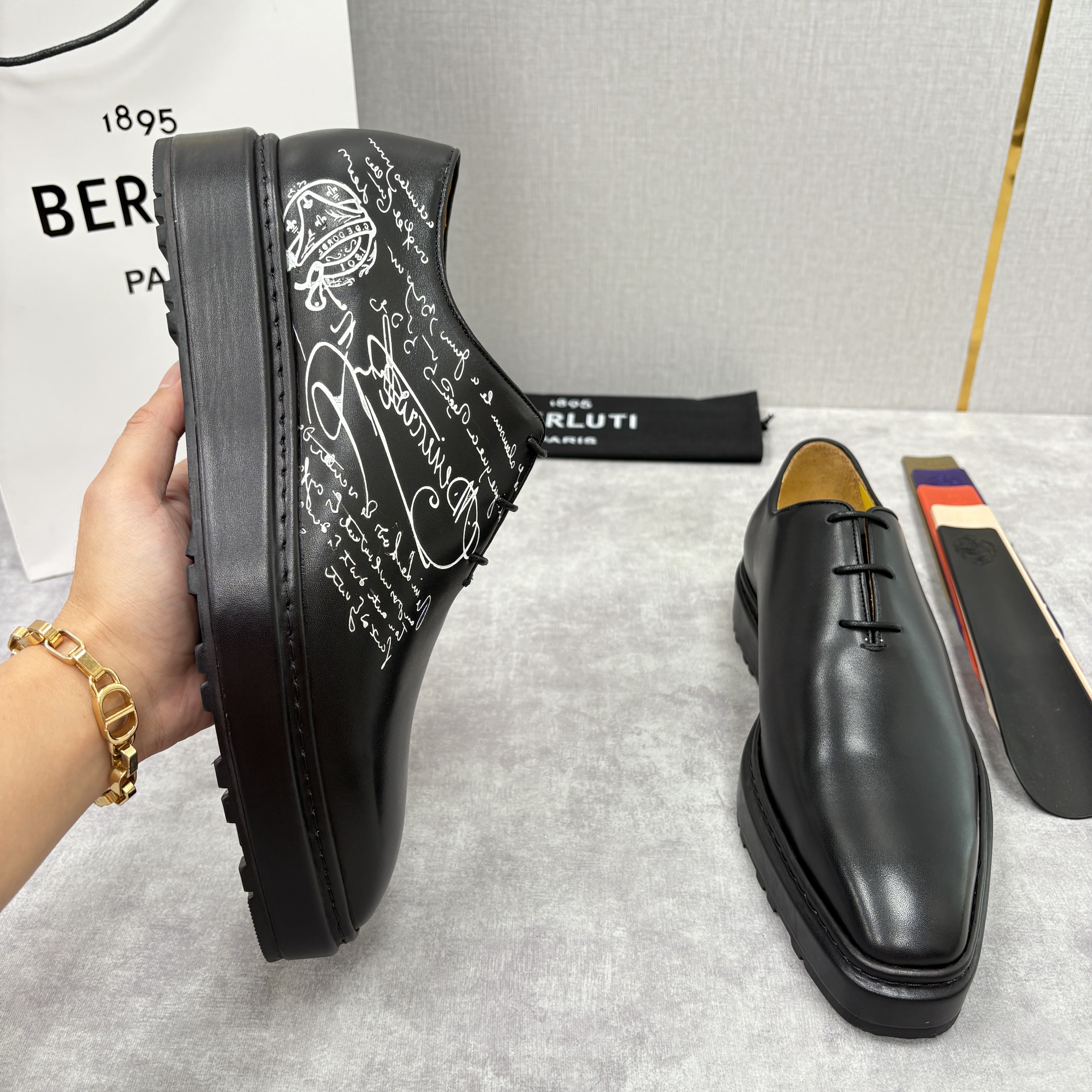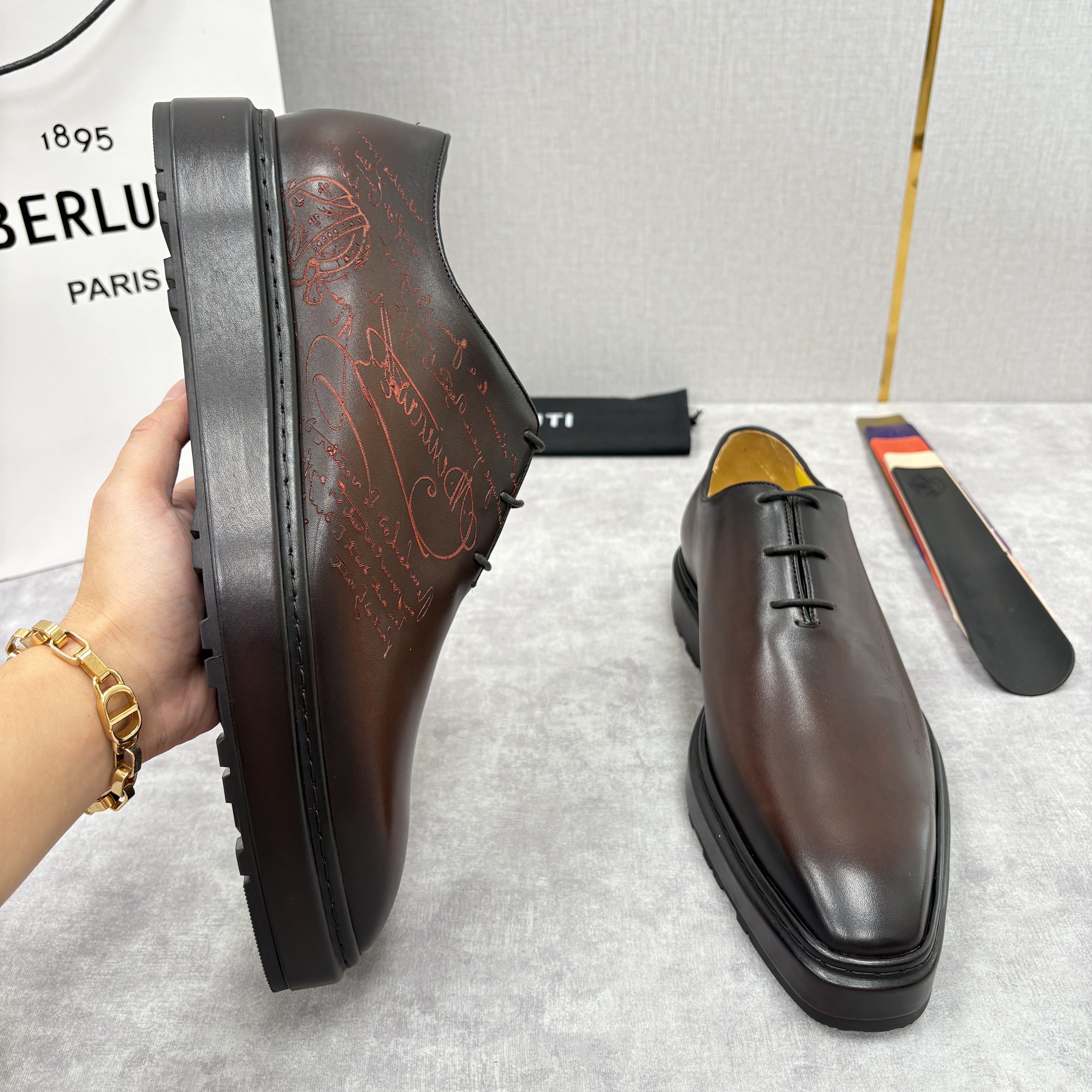 NIGO Berluti Men's Spring/Fall Classic Elegant Leather-Sourced Elastic Formal Midsole Dress Shoes #nigo78574