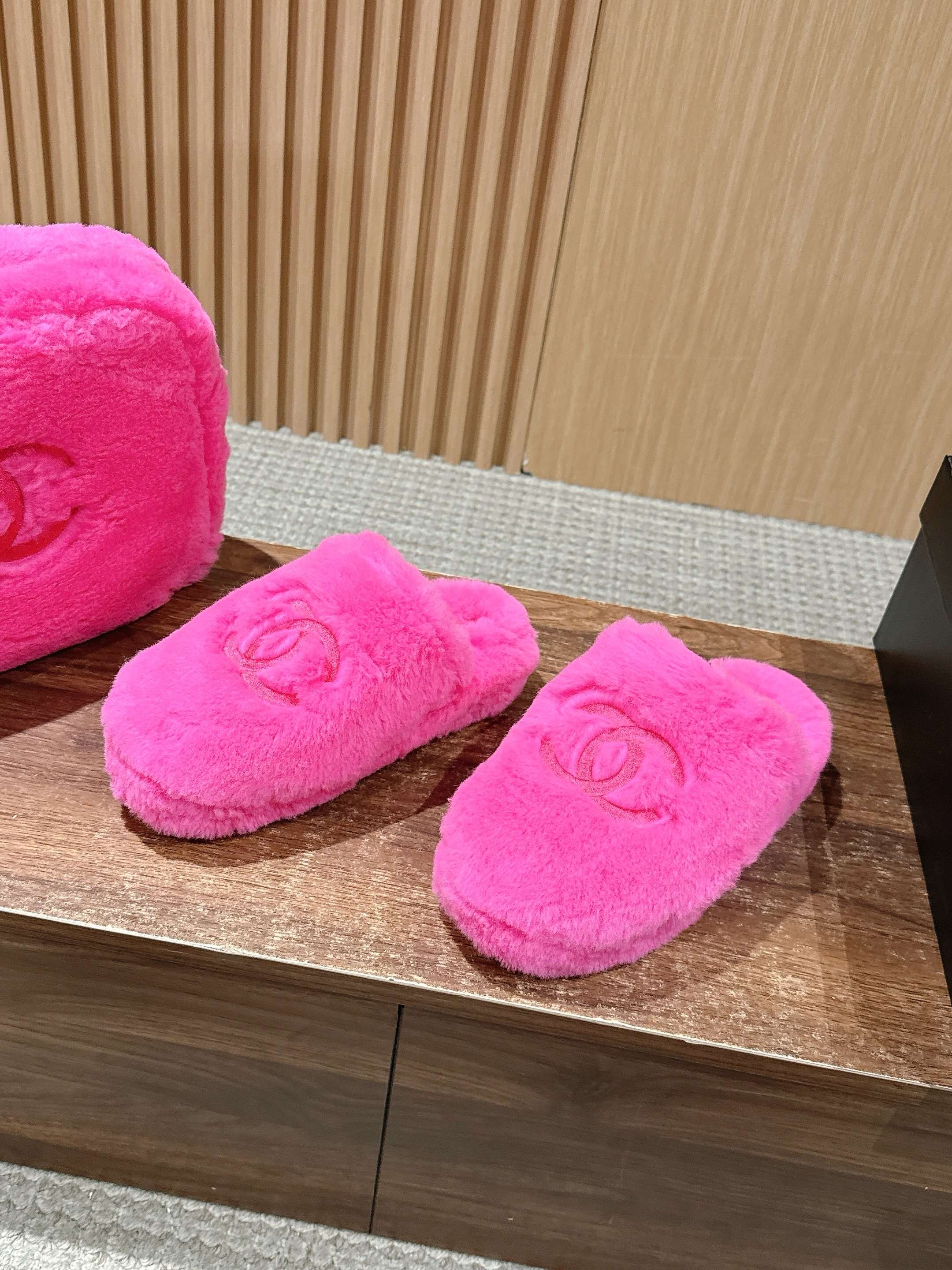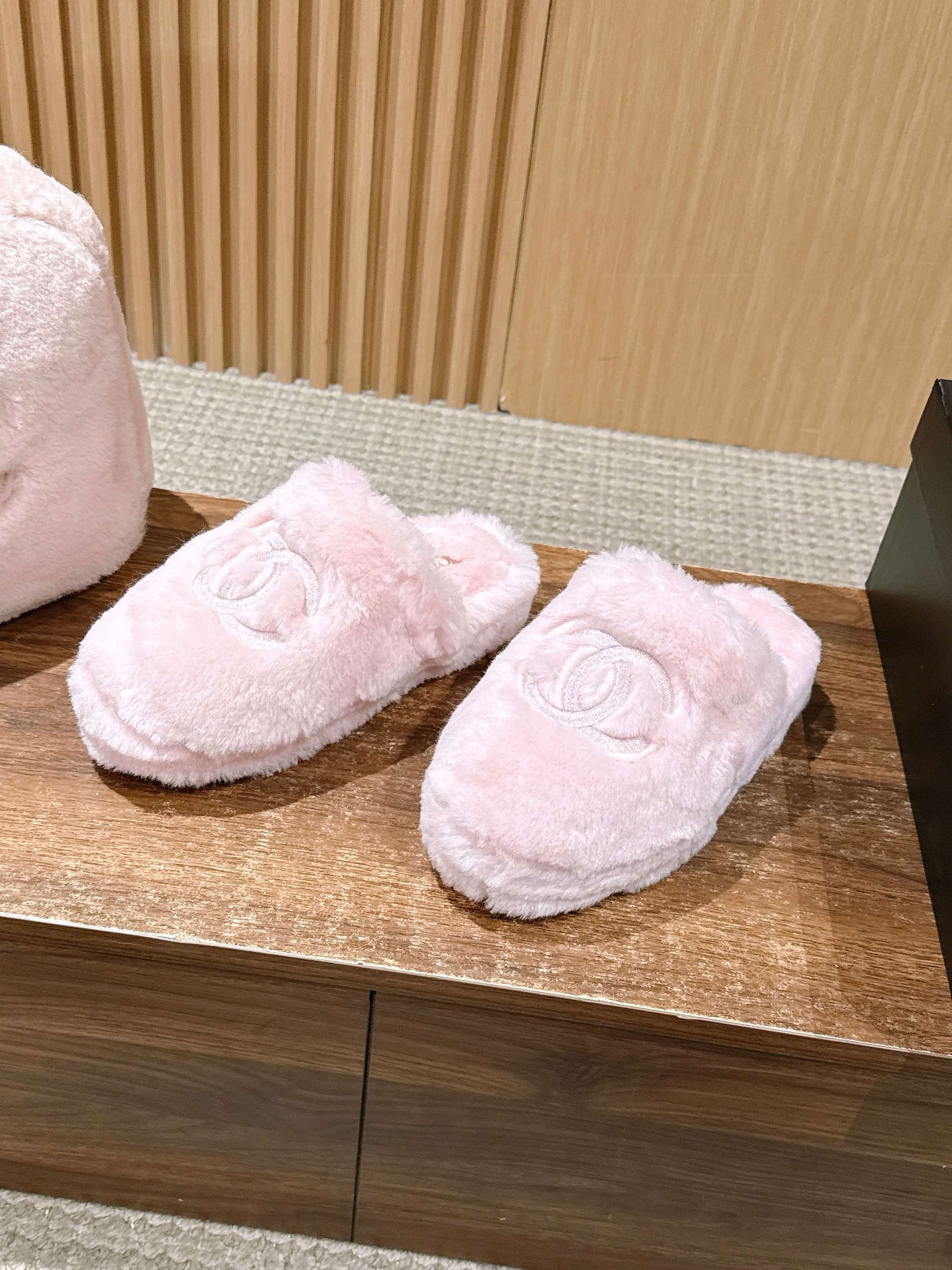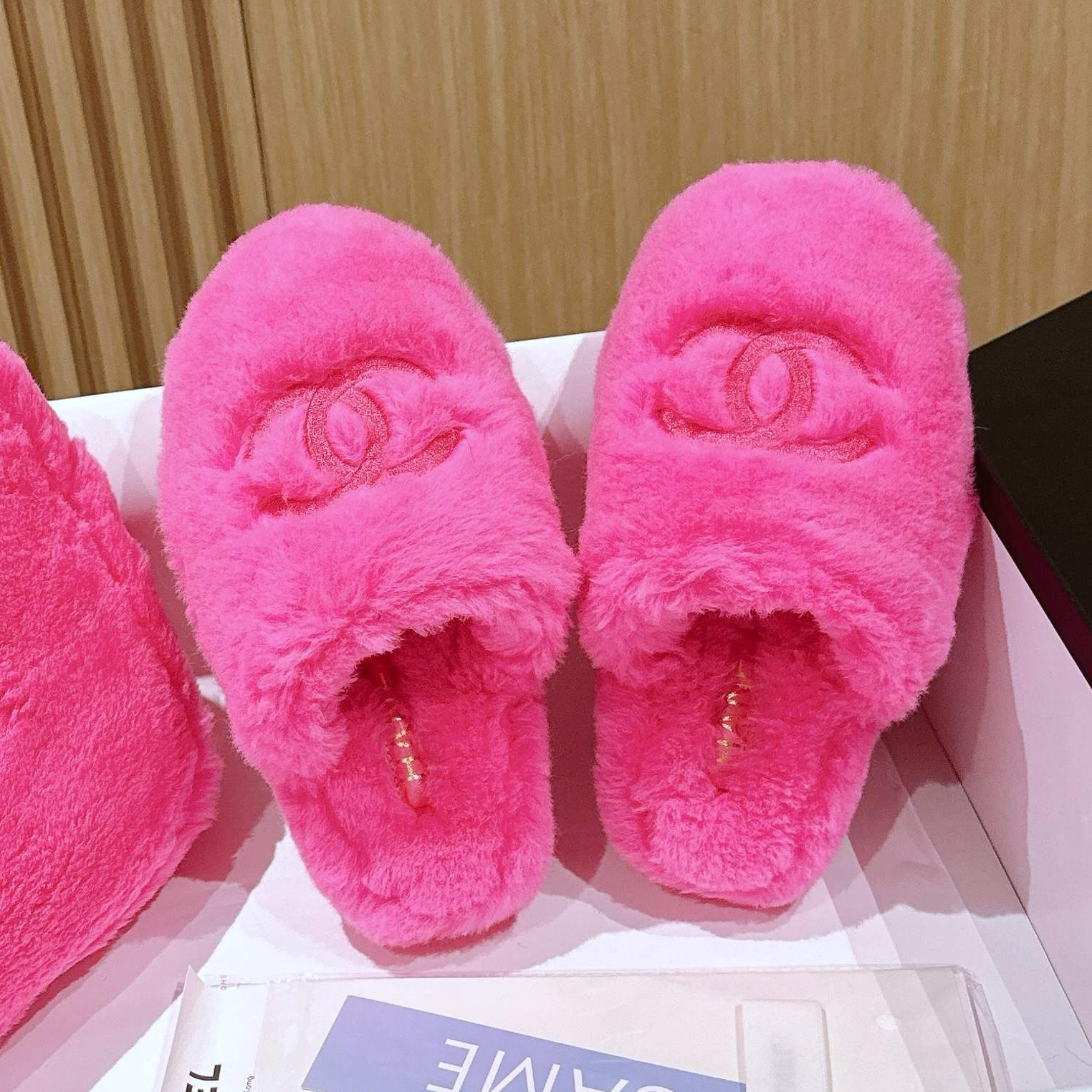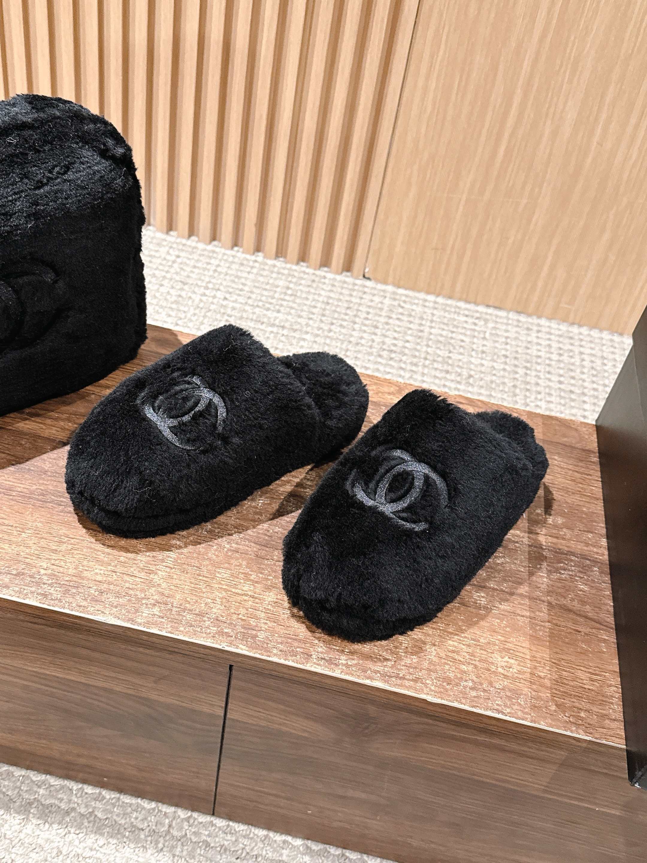 NIGO Chanel Winter Fashion Casual Round-Toe Thick-Sole Plush Home Slippers with Storage Bag Shoes #nigo79278