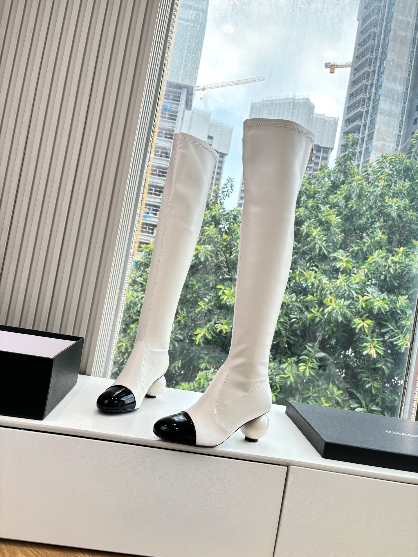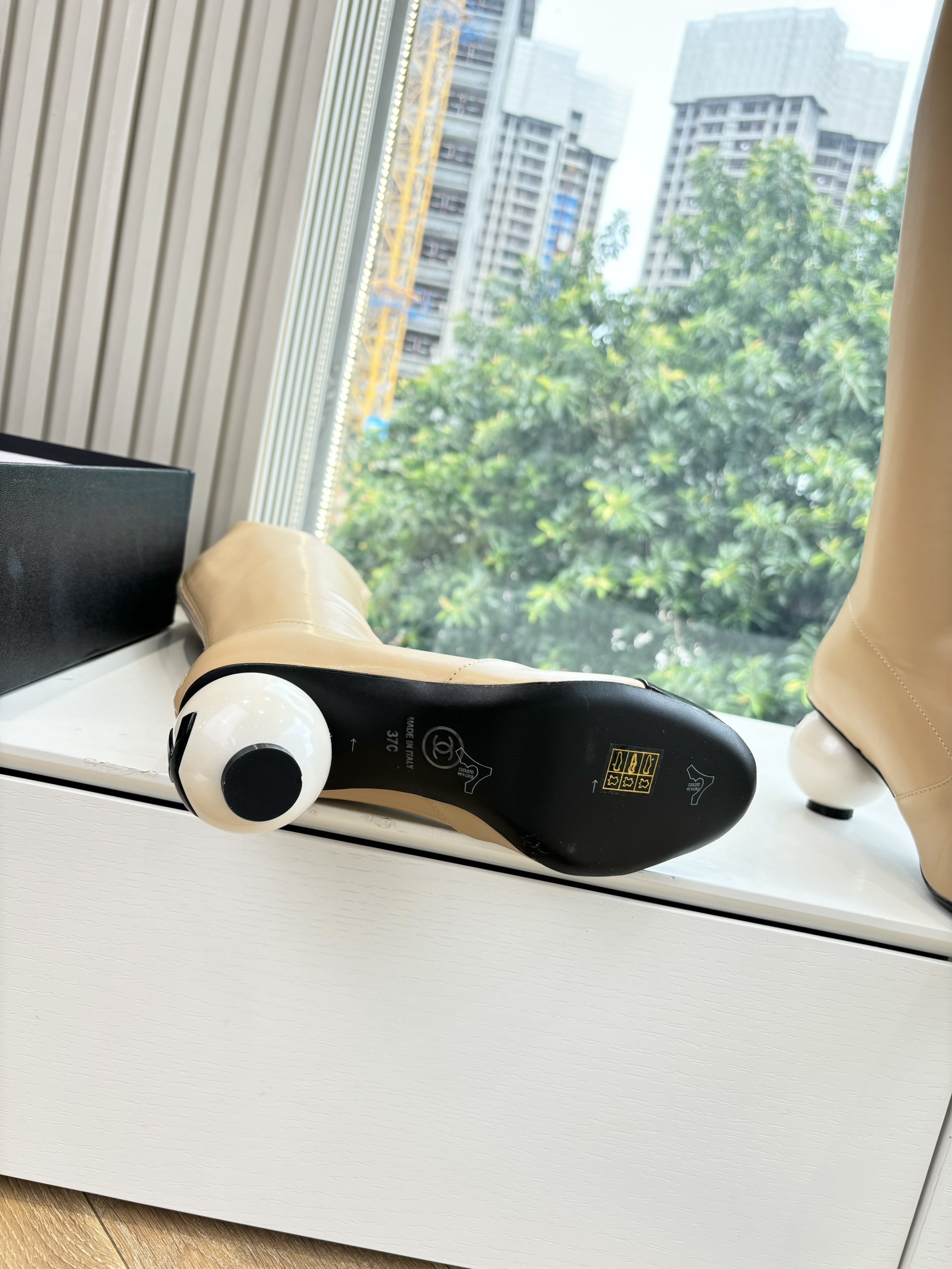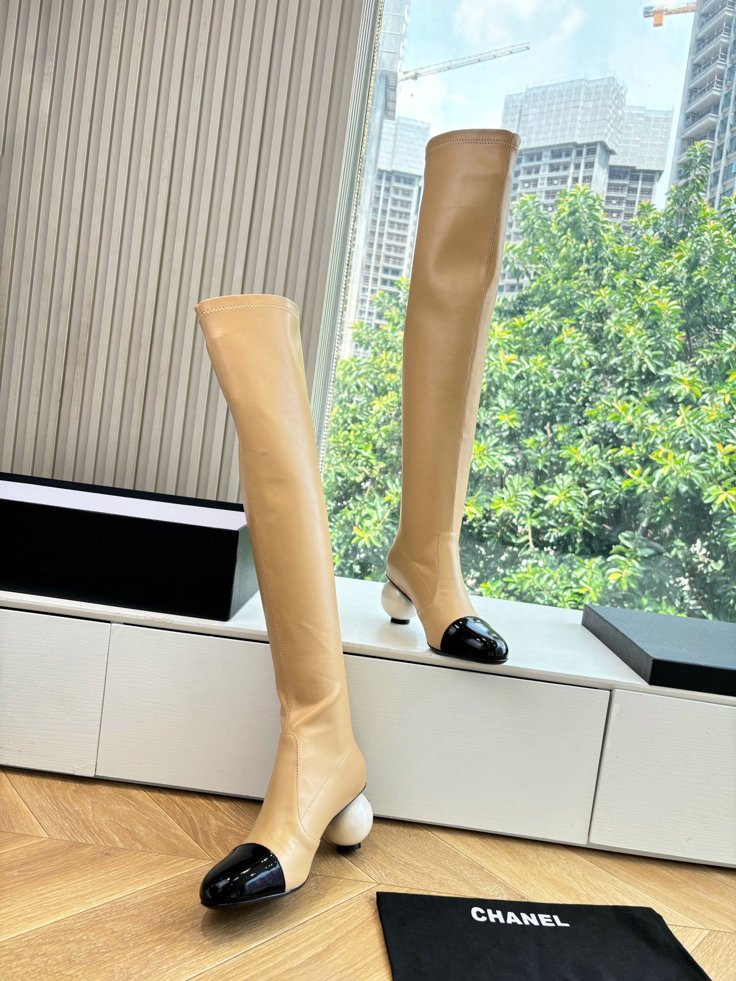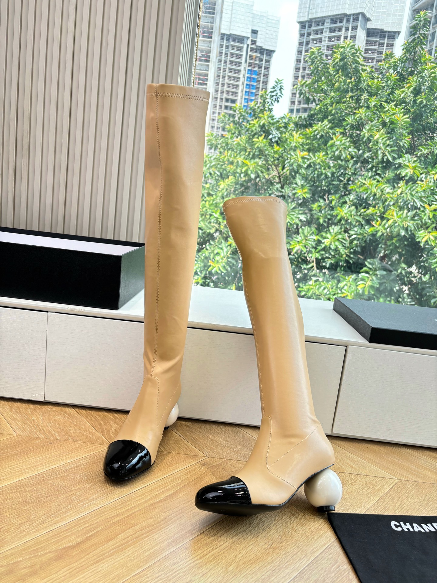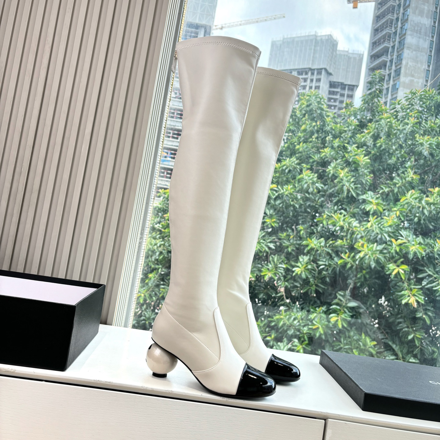 NIGO Chanel Women's Fall/winter Fashion Classic Round Toe Sheepskin Double C Oversized Pearl Heel Stretch Mid Calf Boots Long Boots Shoes #nigo78546