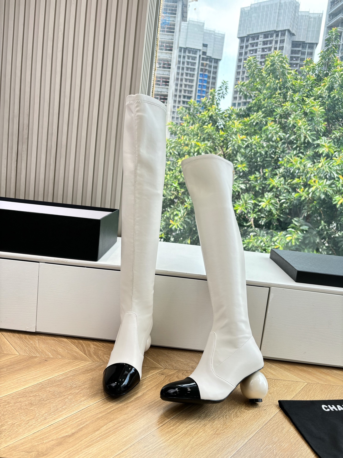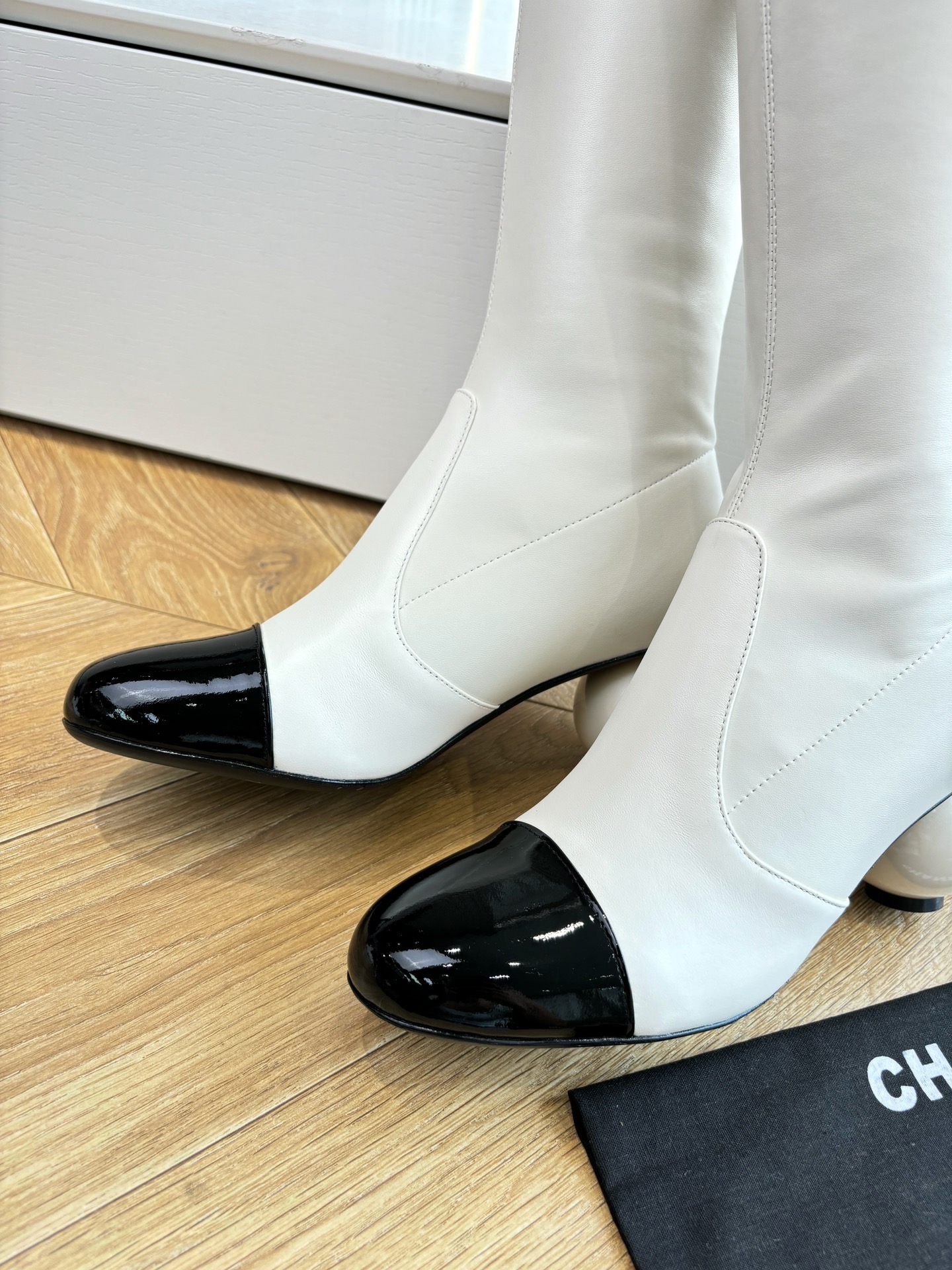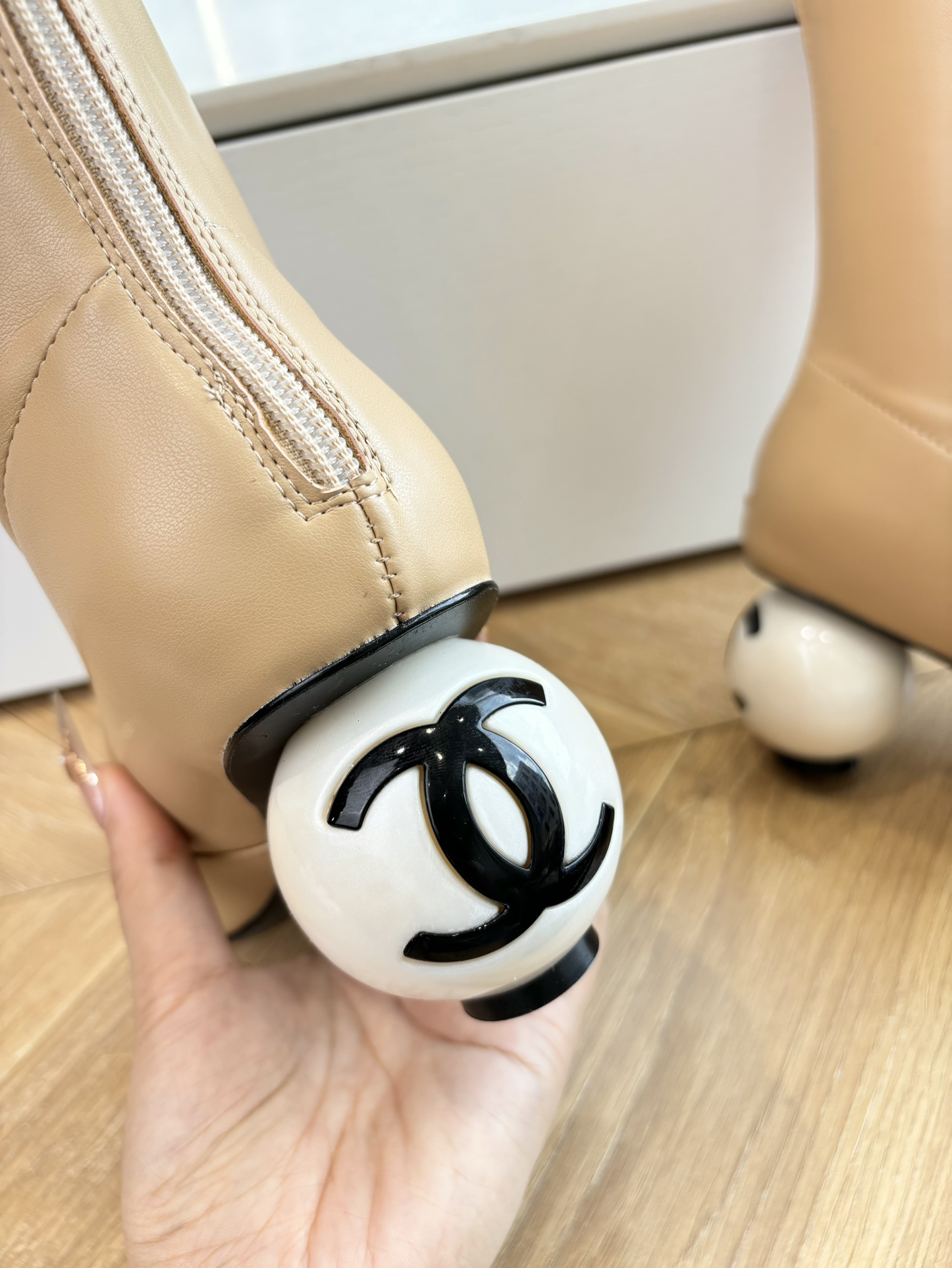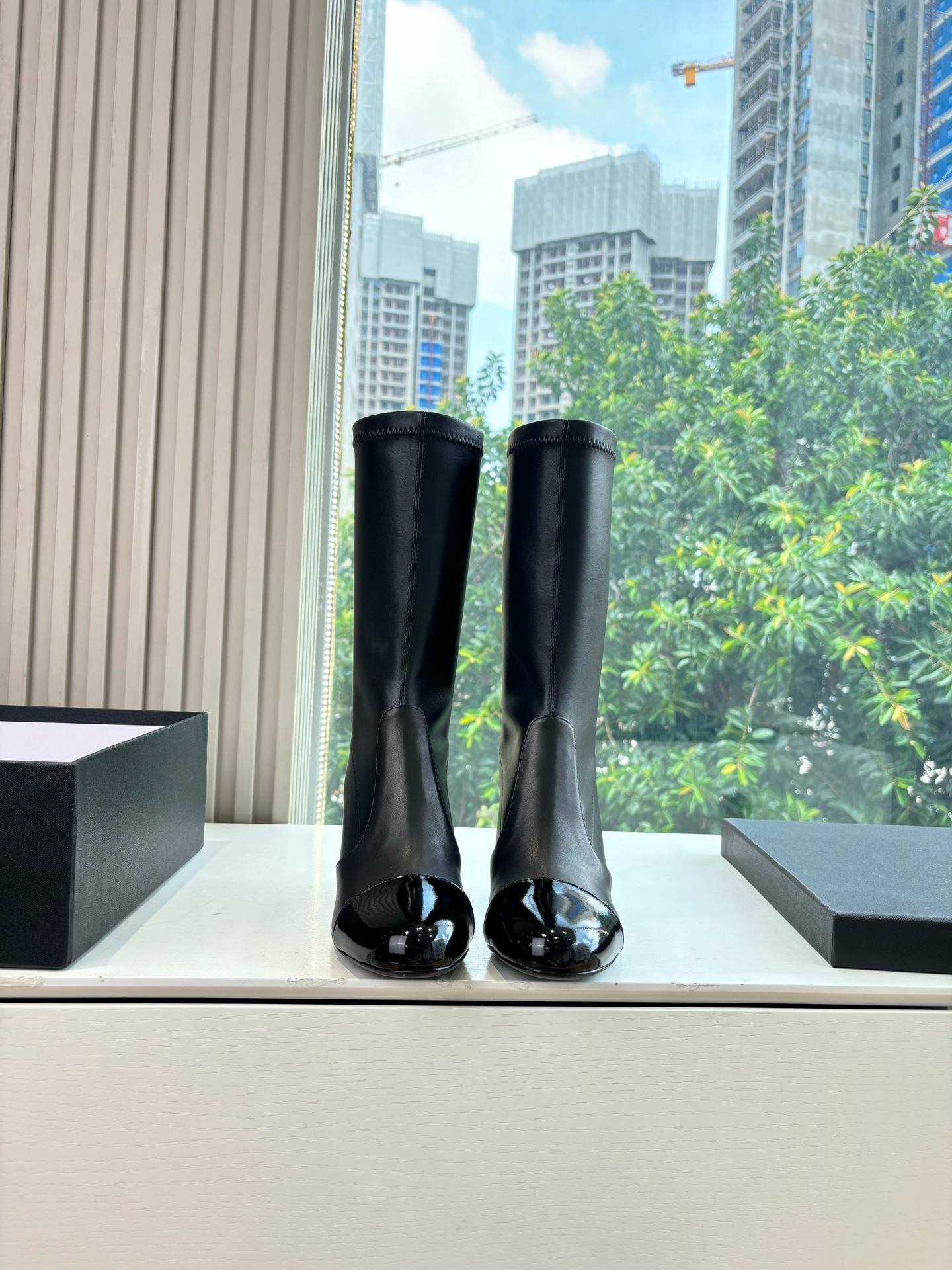 NIGO Chanel Women's Fall/winter Fashion Classic Round Toe Sheepskin Double C Oversized Pearl Heel Stretch Mid Calf Boots Long Boots Shoes #nigo78546