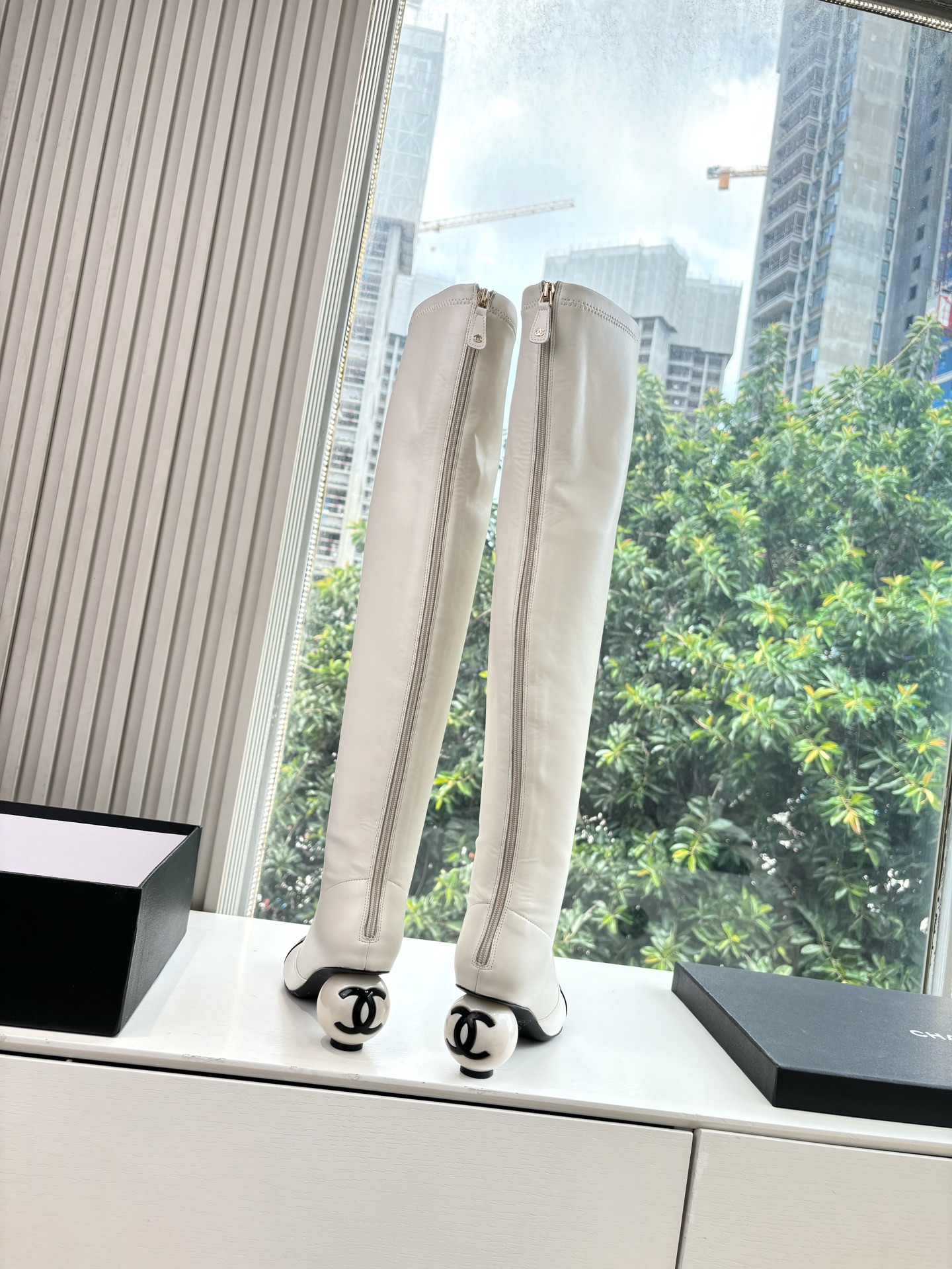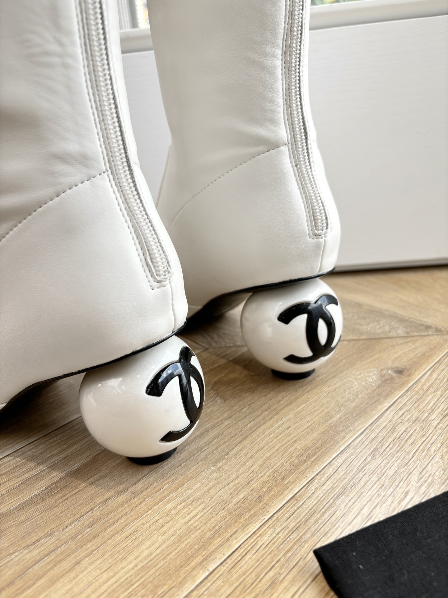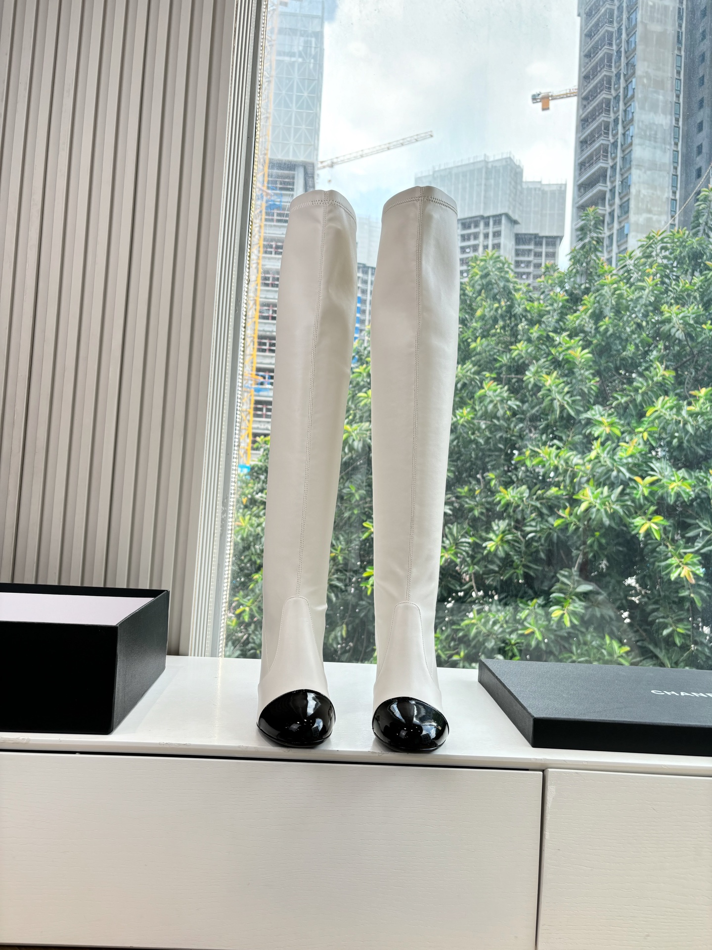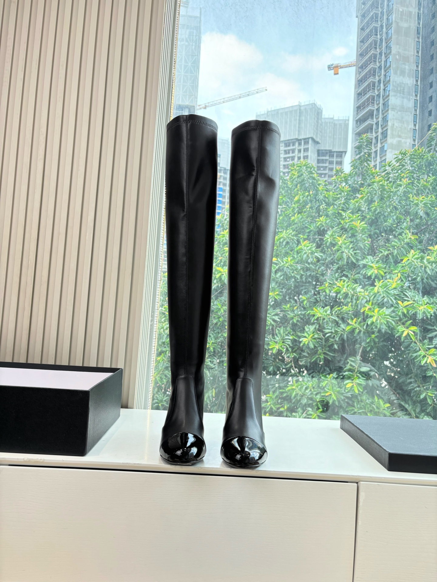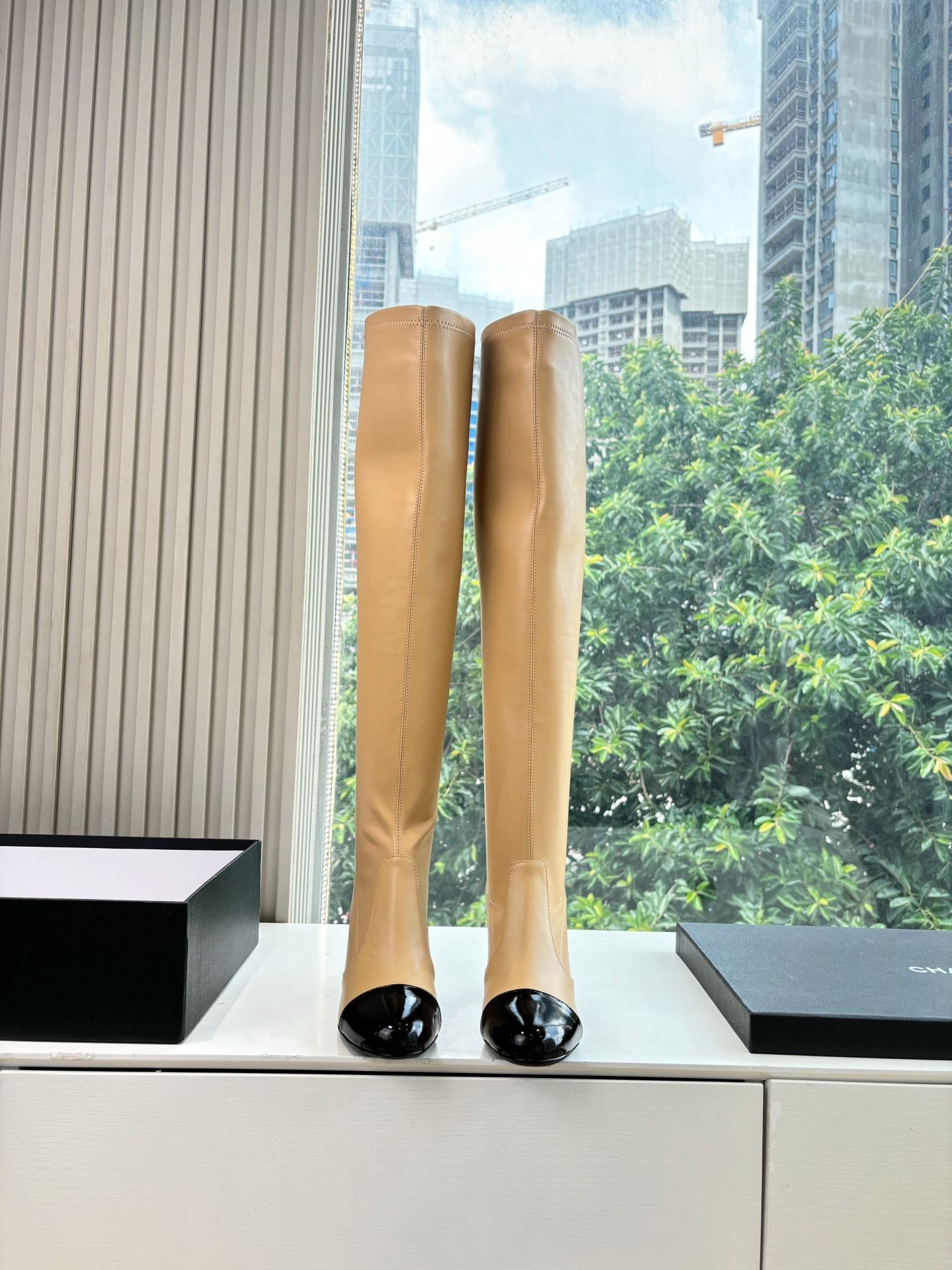 NIGO Chanel Women's Fall/winter Fashion Classic Round Toe Sheepskin Double C Oversized Pearl Heel Stretch Mid Calf Boots Long Boots Shoes #nigo78546