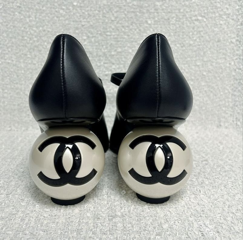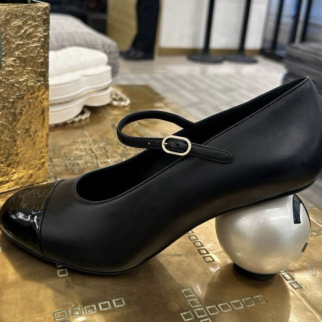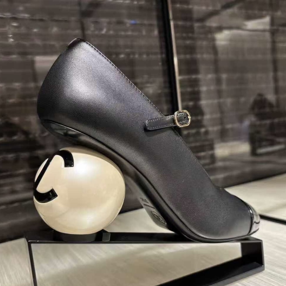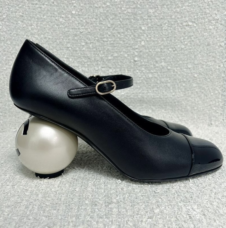 Home / Shoes / NIGO Chanel Women's Spring/fall Classic Two-tone Leather Low-top Round Toe Mary Jane Heels With Pearl Embellished Heels High Heels Shoes #nigo79356