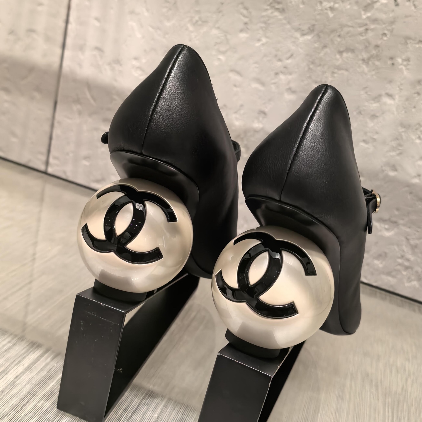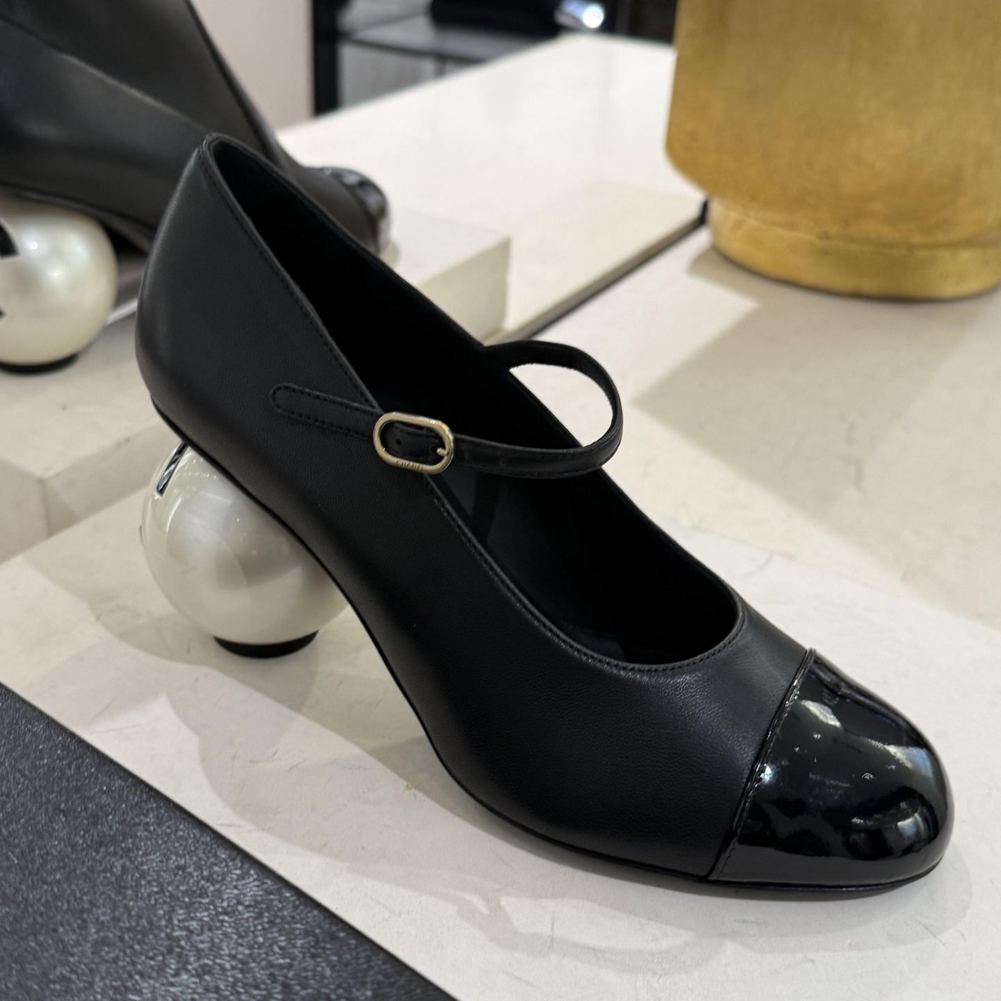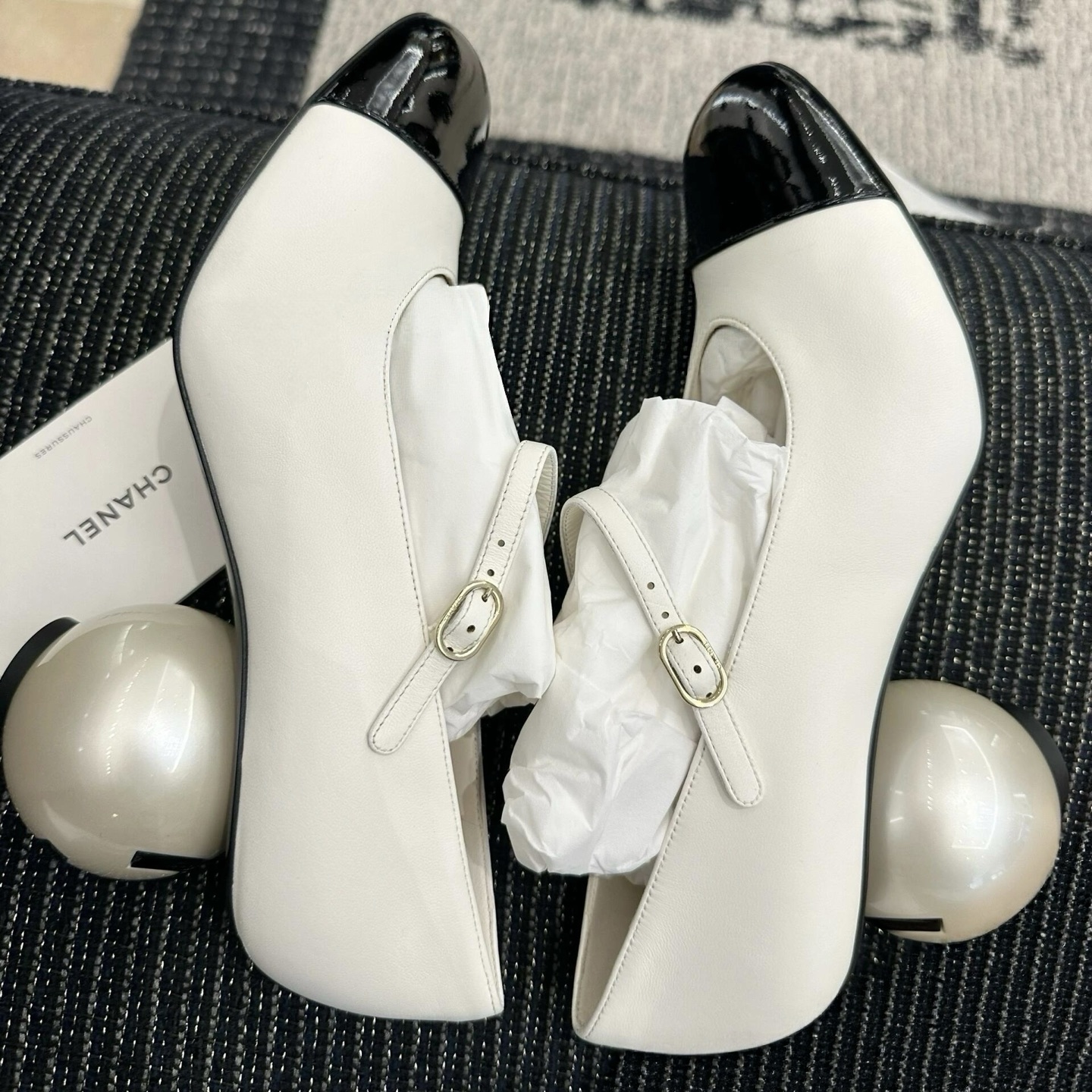 Home / Shoes / NIGO Chanel Women's Spring/fall Classic Two-tone Leather Low-top Round Toe Mary Jane Heels With Pearl Embellished Heels High Heels Shoes #nigo79356