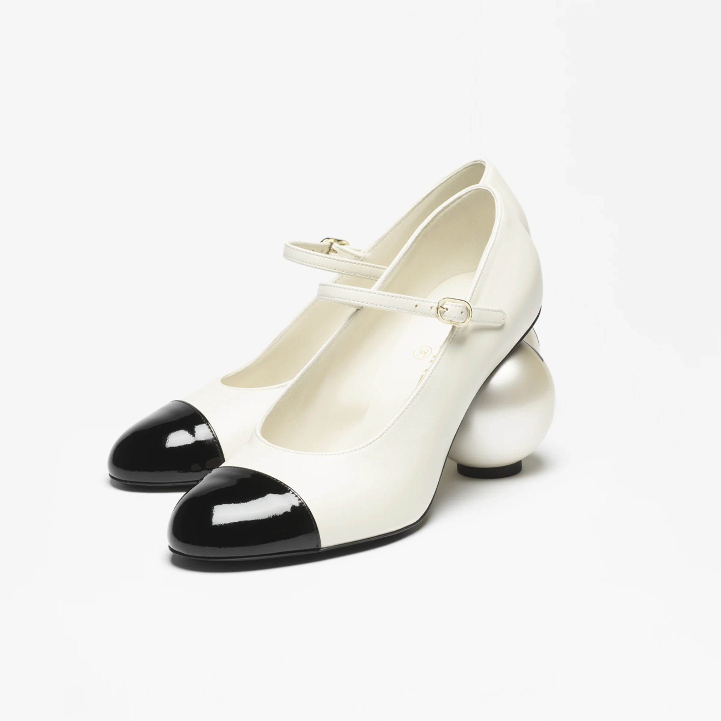 NIGO Chanel Women's Spring/fall Classic Two-tone Leather Low-top Round Toe Mary Jane Heels With Pearl Embellished Heels High Heels Shoes #nigo79356
