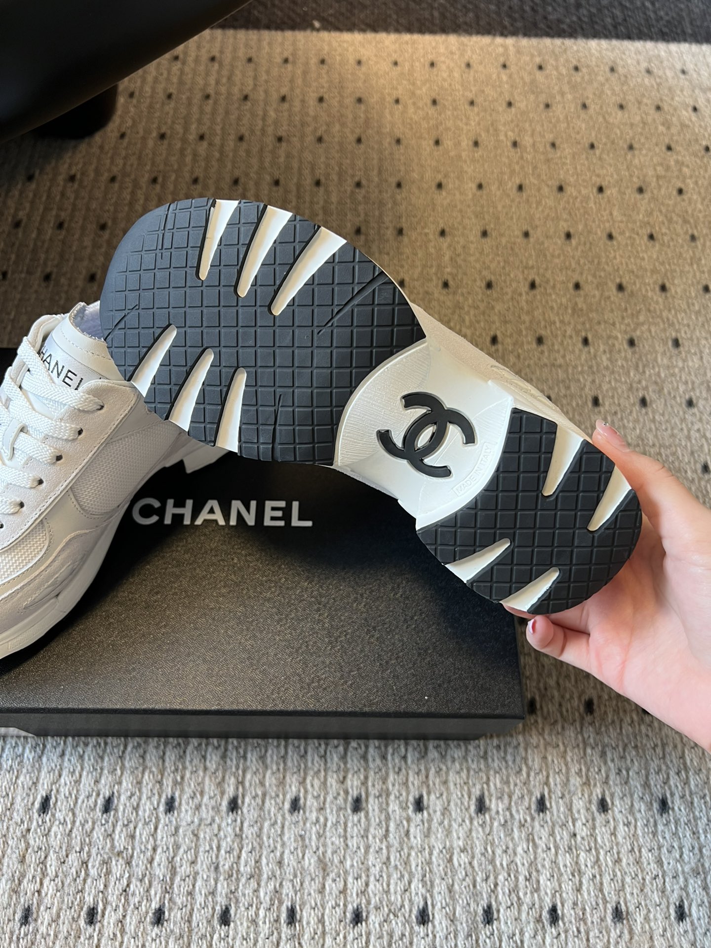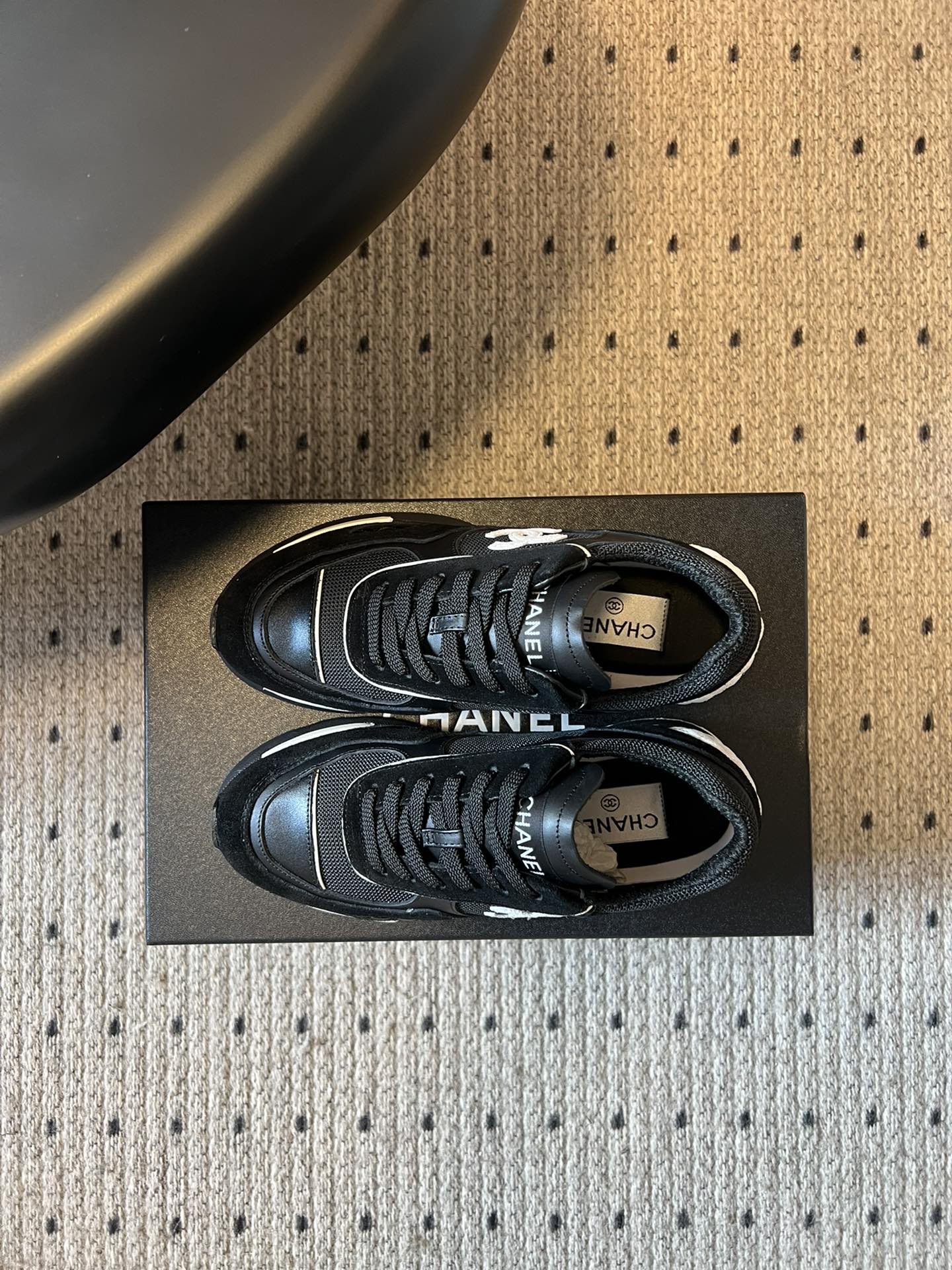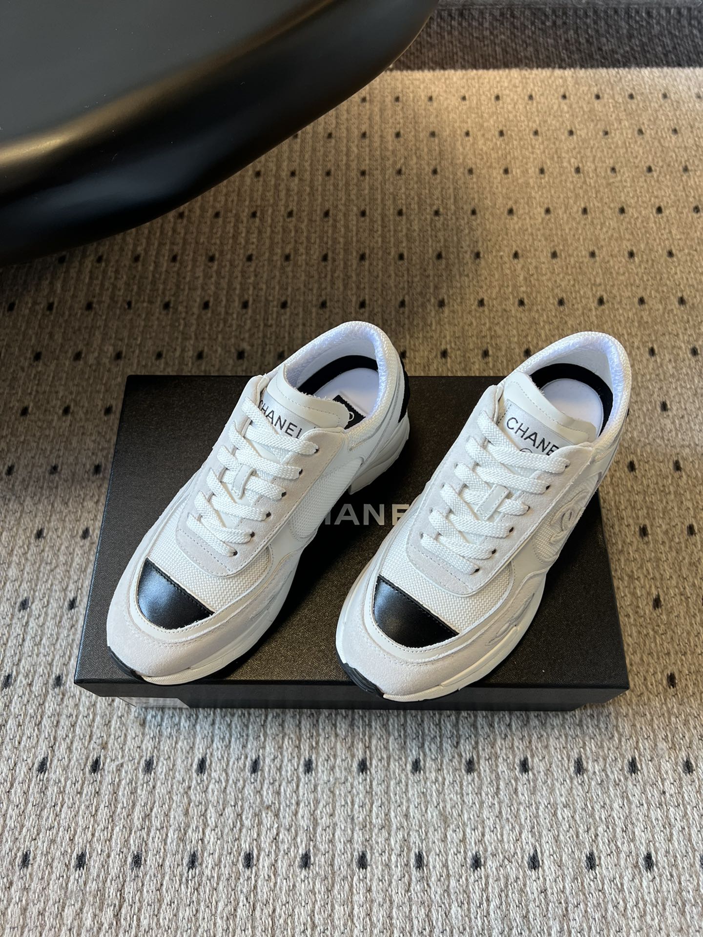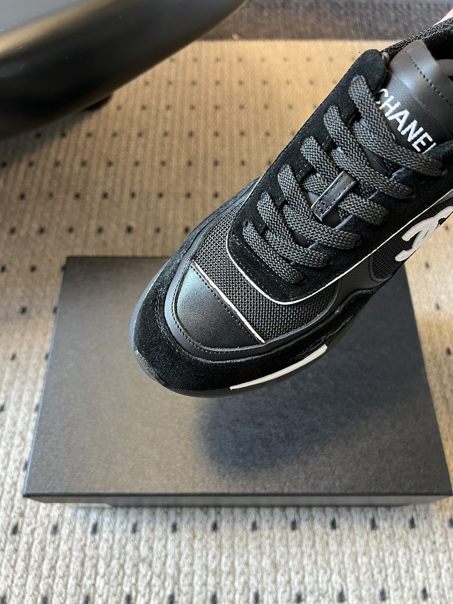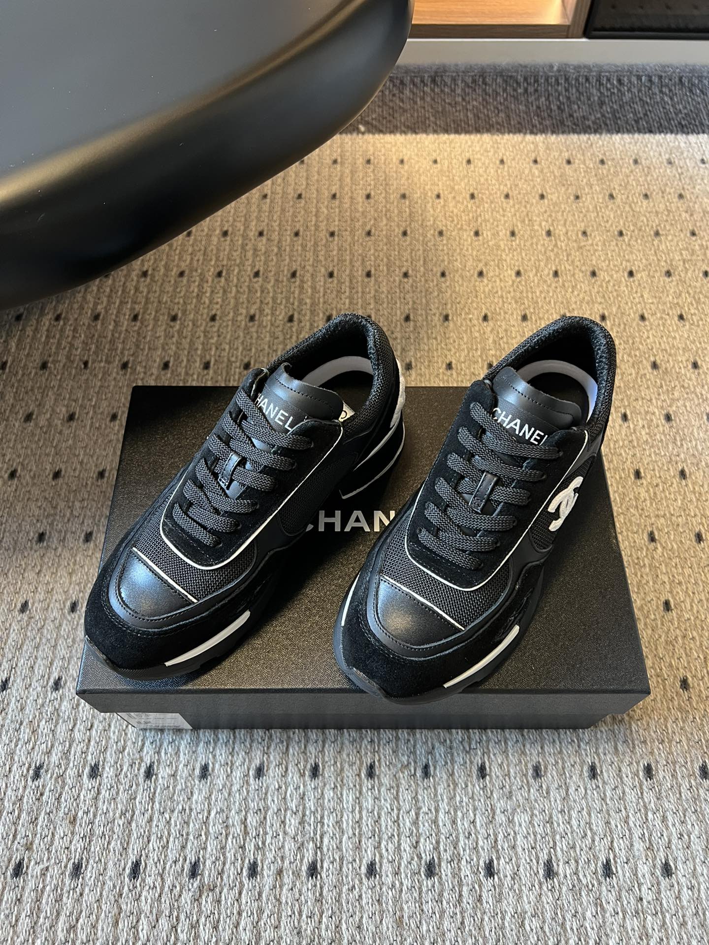 NIGO Chanel Women's Spring/fall Fashion Casual Round Toe Lace Up Chunky Heel Low Top Leather And Mesh Blend Sneakers Shoes #nigo79316