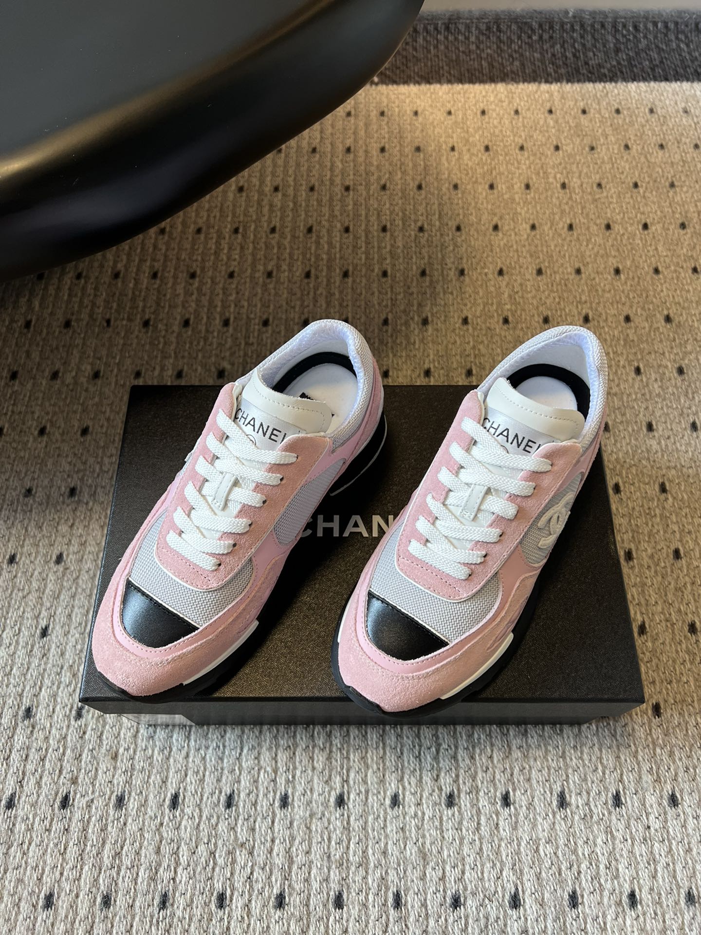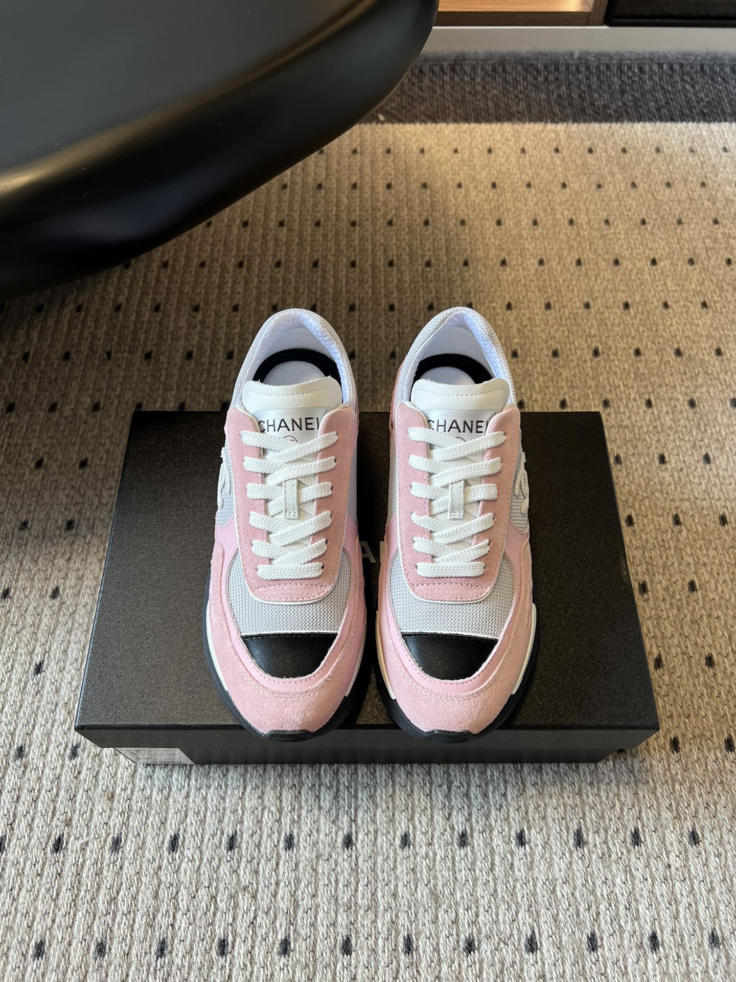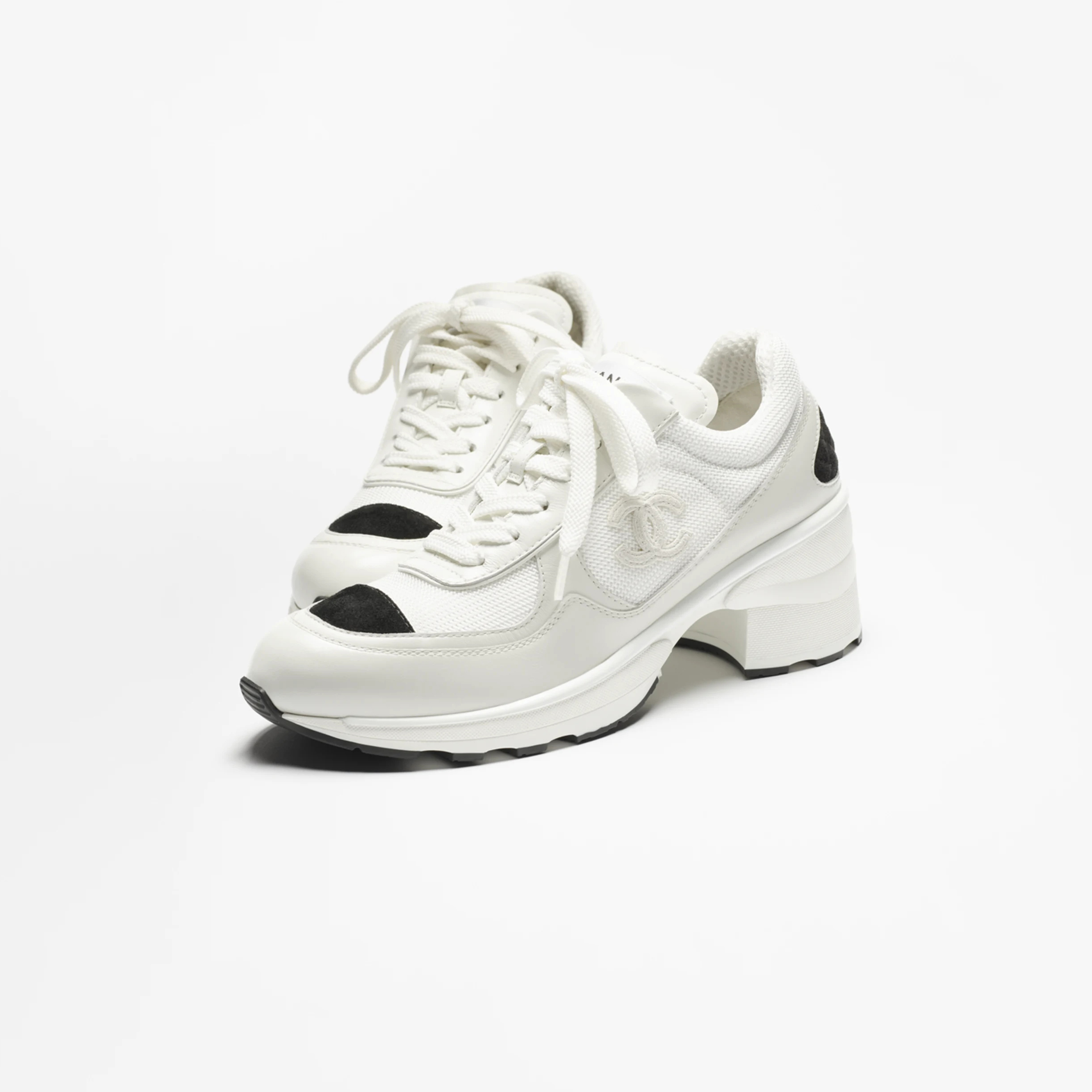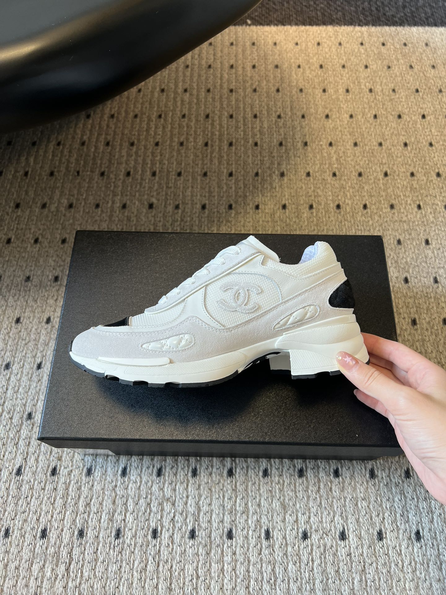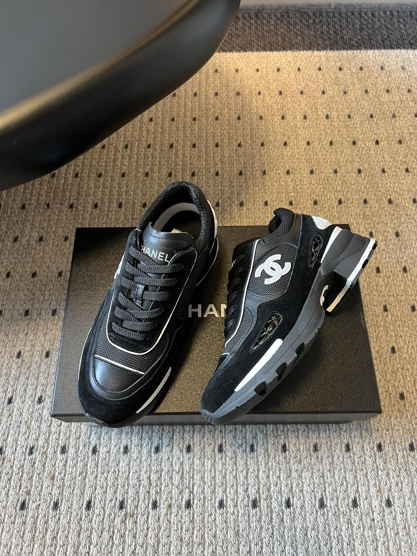 NIGO Chanel Women's Spring/fall Fashion Casual Round Toe Lace Up Chunky Heel Low Top Leather And Mesh Blend Sneakers Shoes #nigo79316