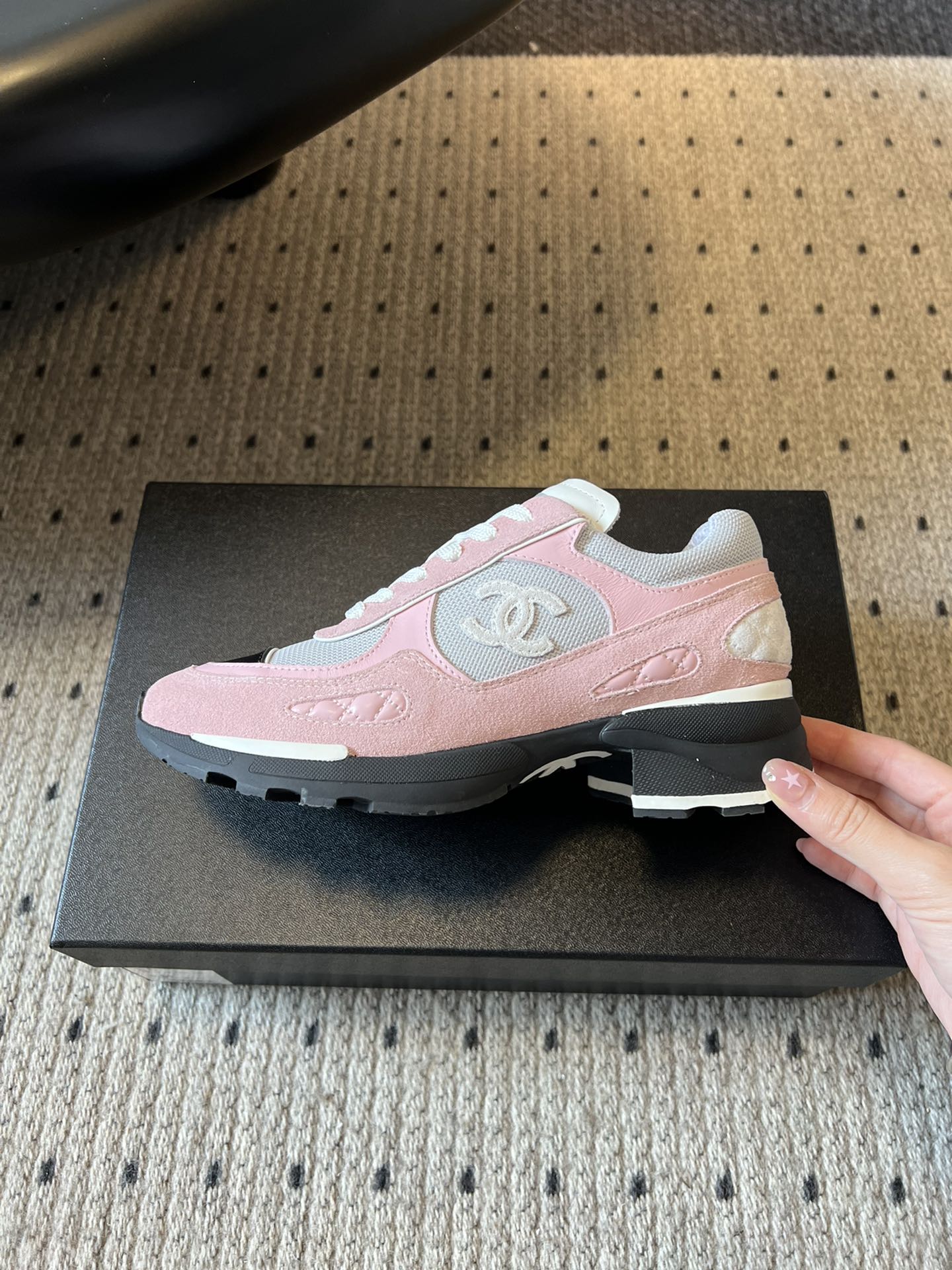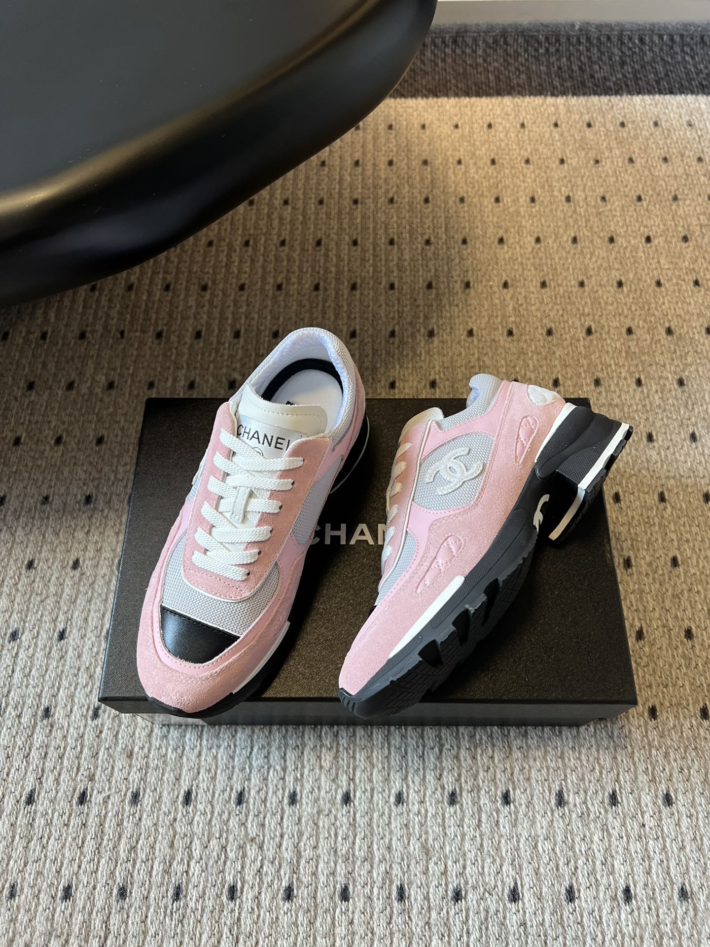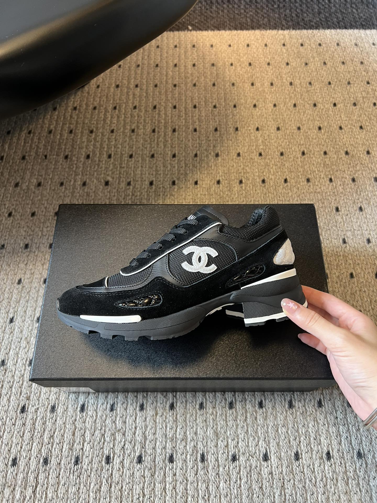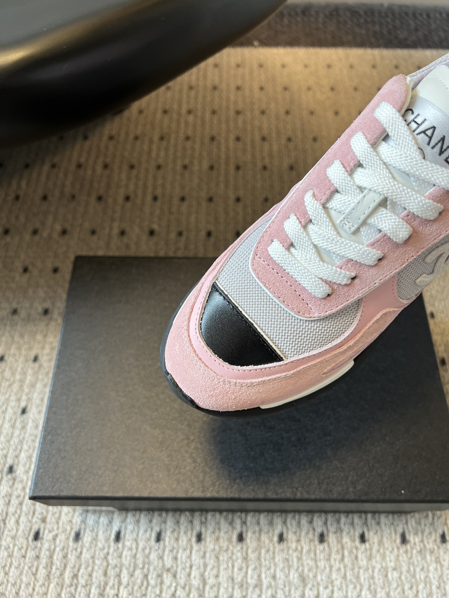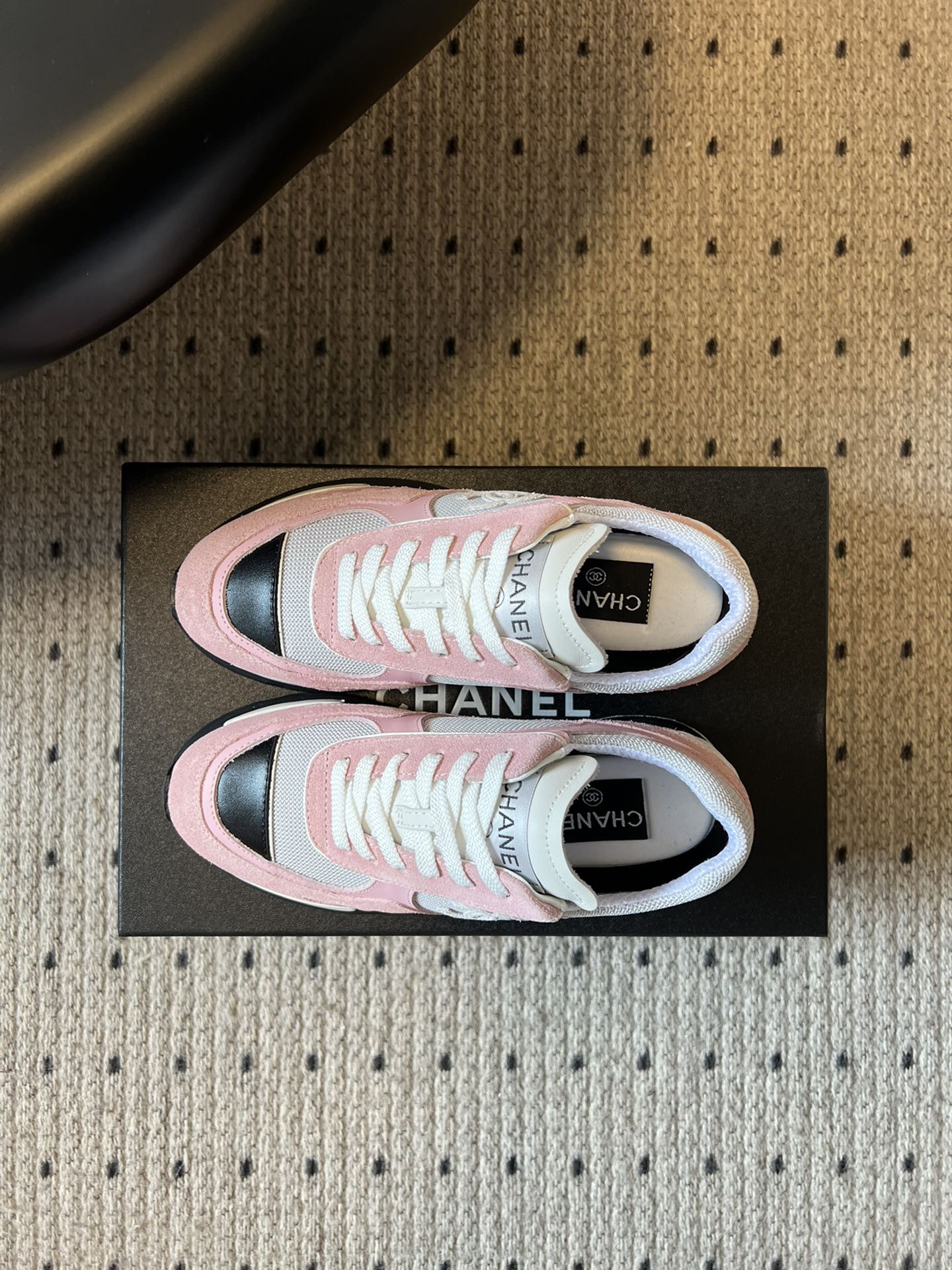 NIGO Chanel Women's Spring/fall Fashion Casual Round Toe Lace Up Chunky Heel Low Top Leather And Mesh Blend Sneakers Shoes #nigo79316