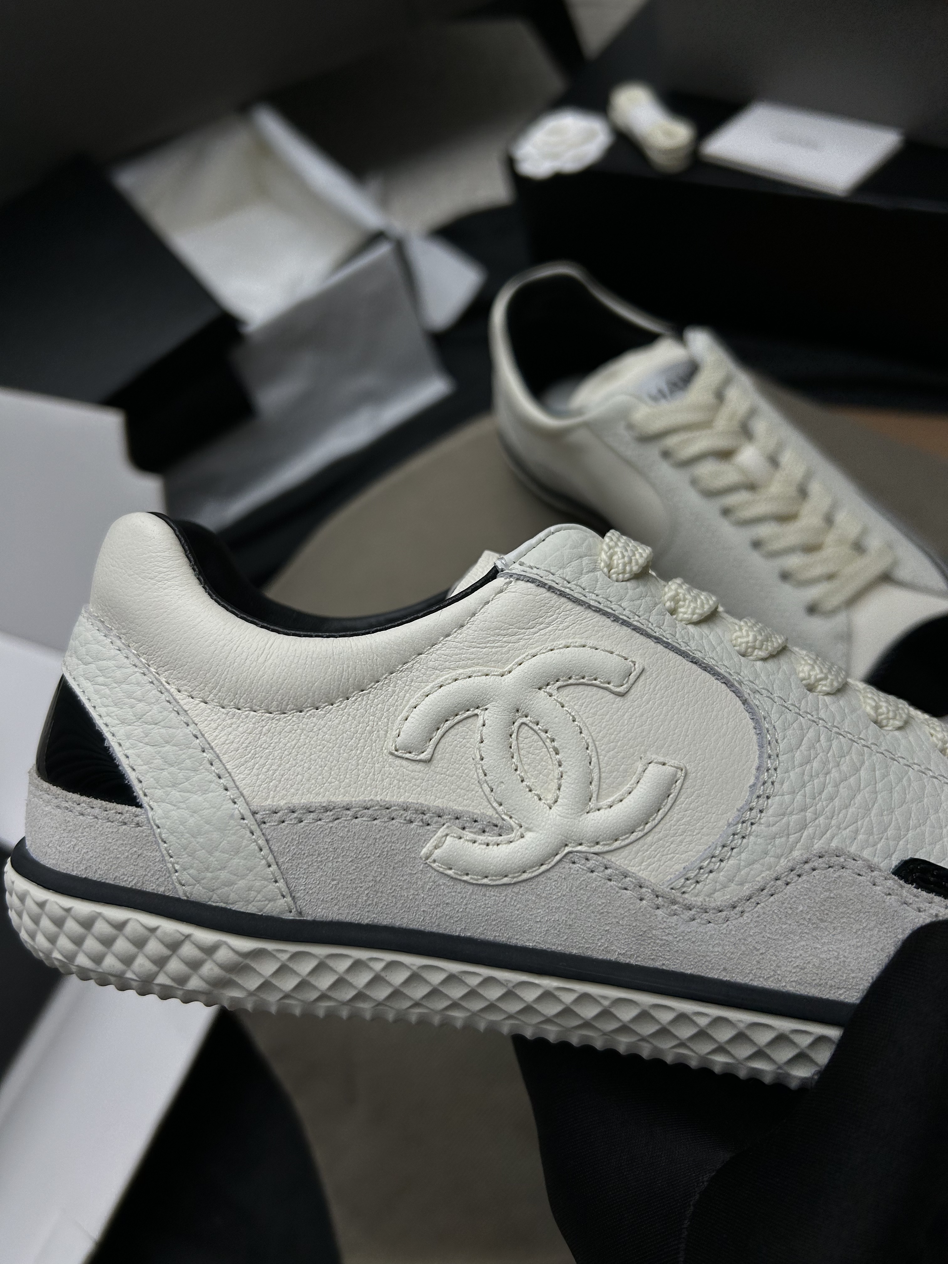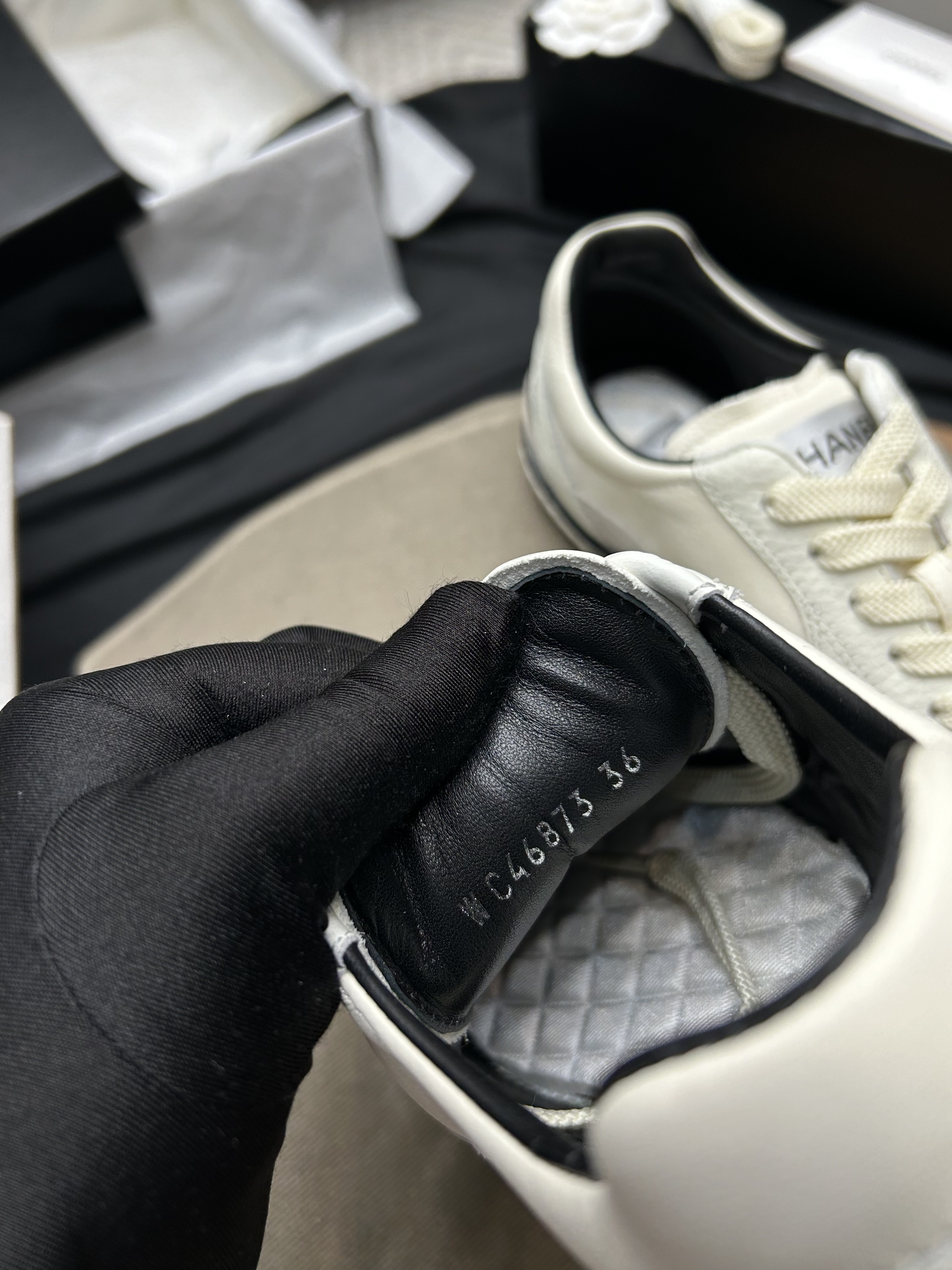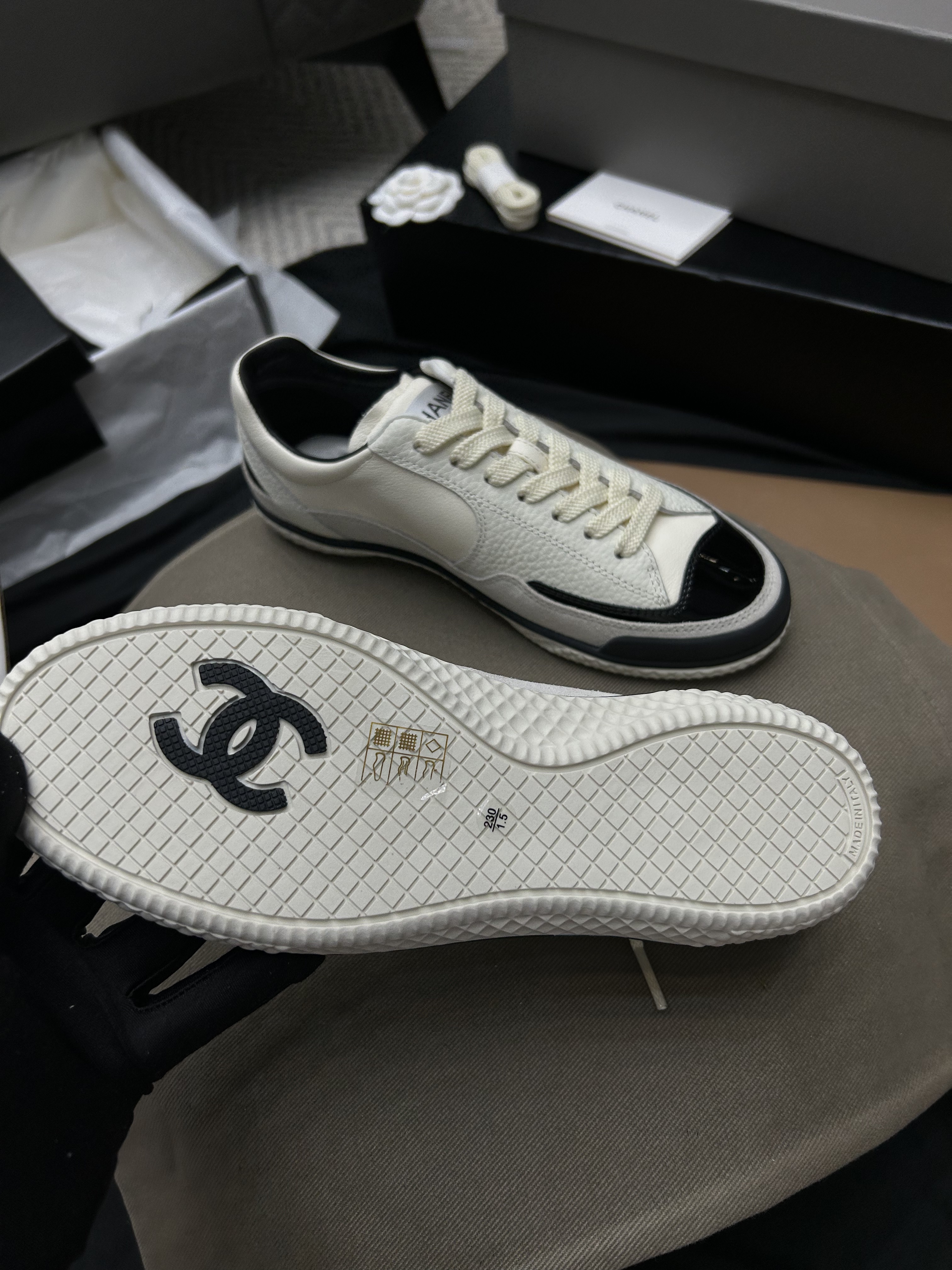 NIGO Chanel Women's Spring/Fall Fashion Casual Round Toe Lace Up Two Tone Flat Low Top Lychee Grain Cowhide Patent Leather Slip On Sneakers Shoes #nigo79295