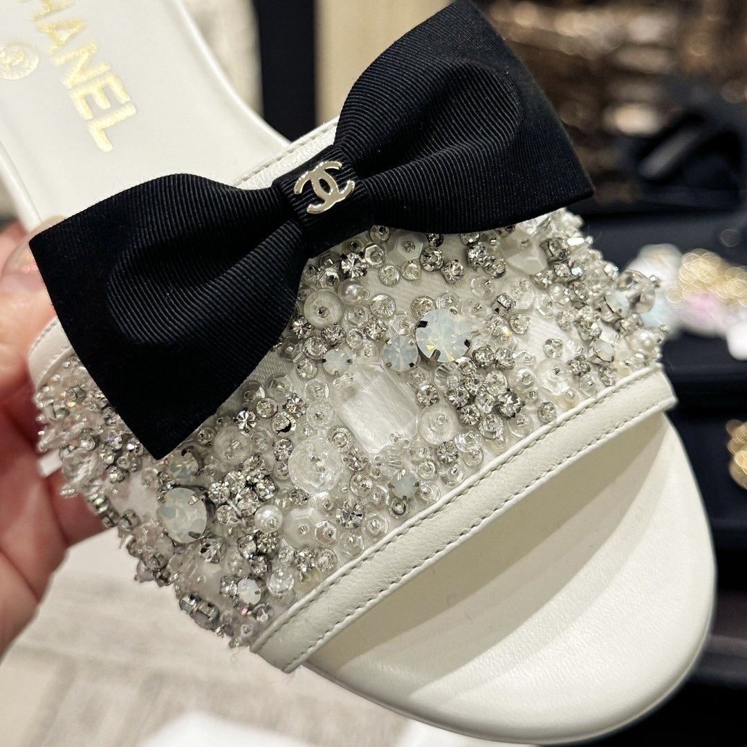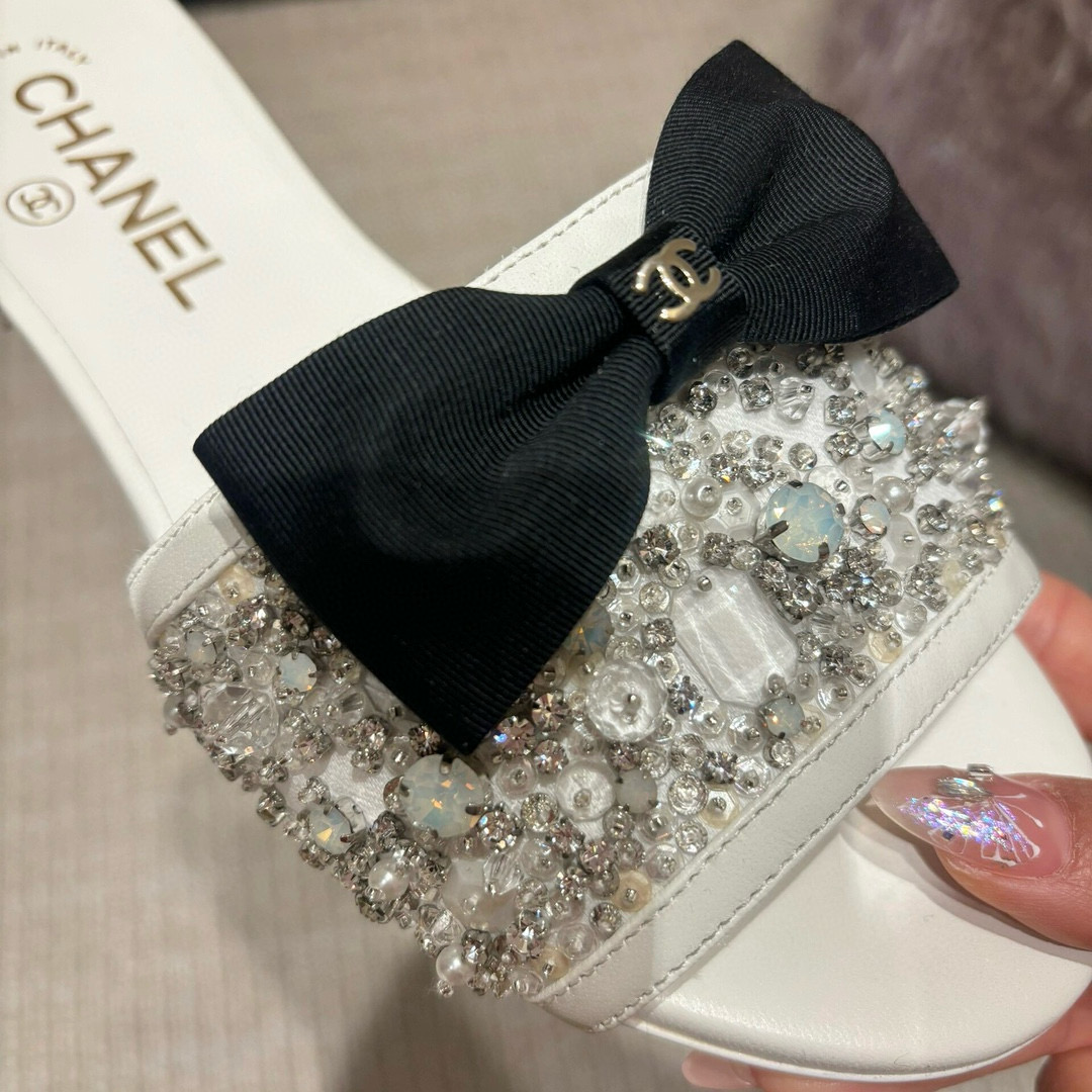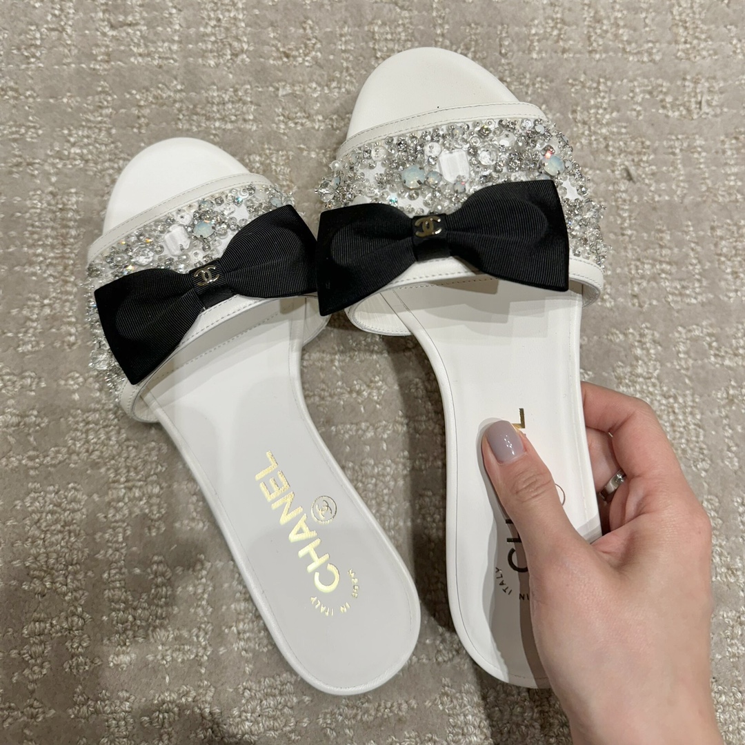 NIGO Chanel Women's Spring/Summer Fashion Casual Toe Exposed Flat Heeled Bow Logo Diamond Mary Jane Shoes #nigo78229
