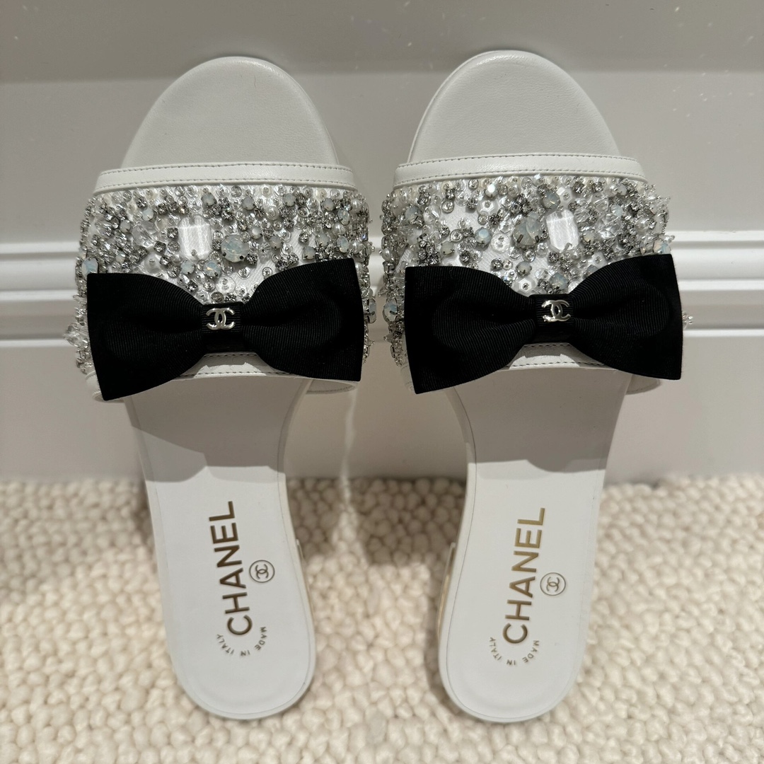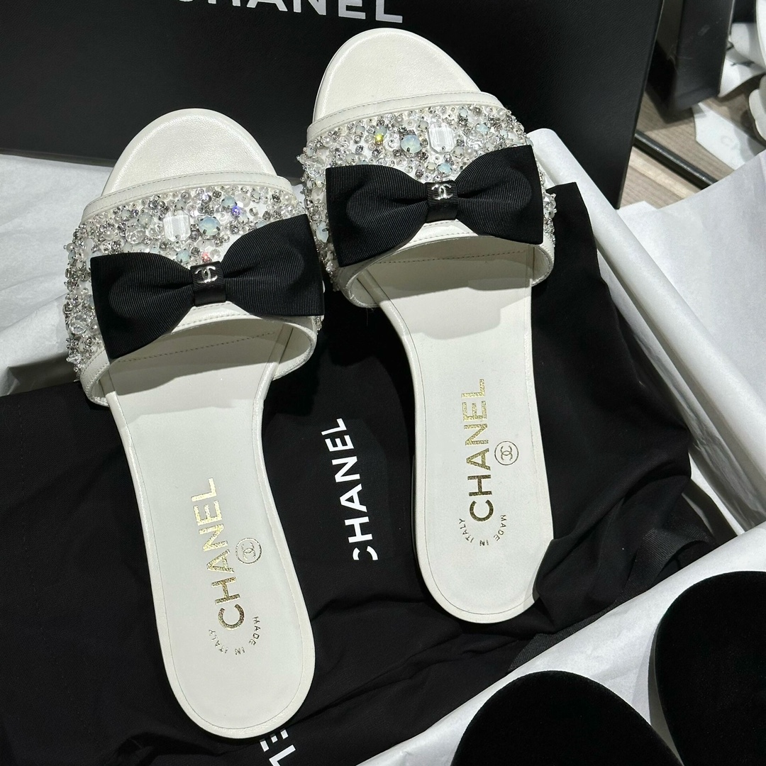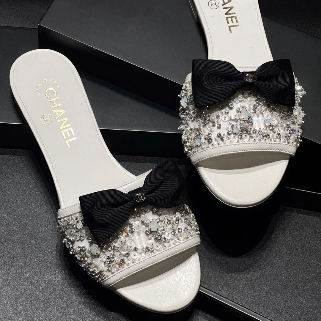 NIGO Chanel Women's Spring/Summer Fashion Casual Toe Exposed Flat Heeled Bow Logo Diamond Mary Jane Shoes #nigo78229