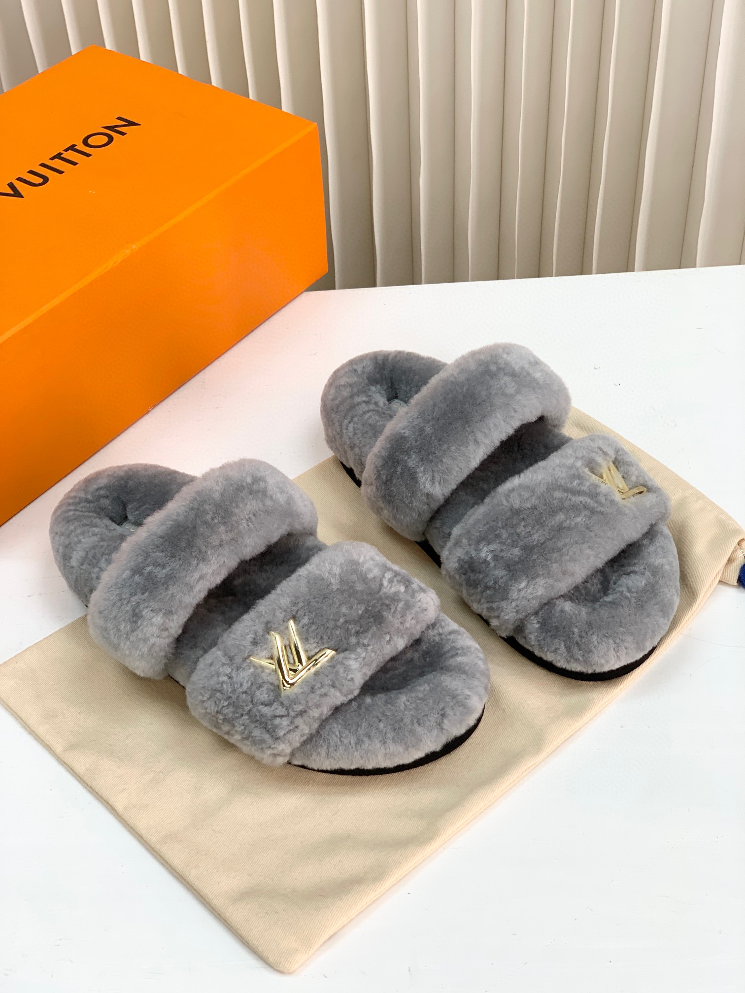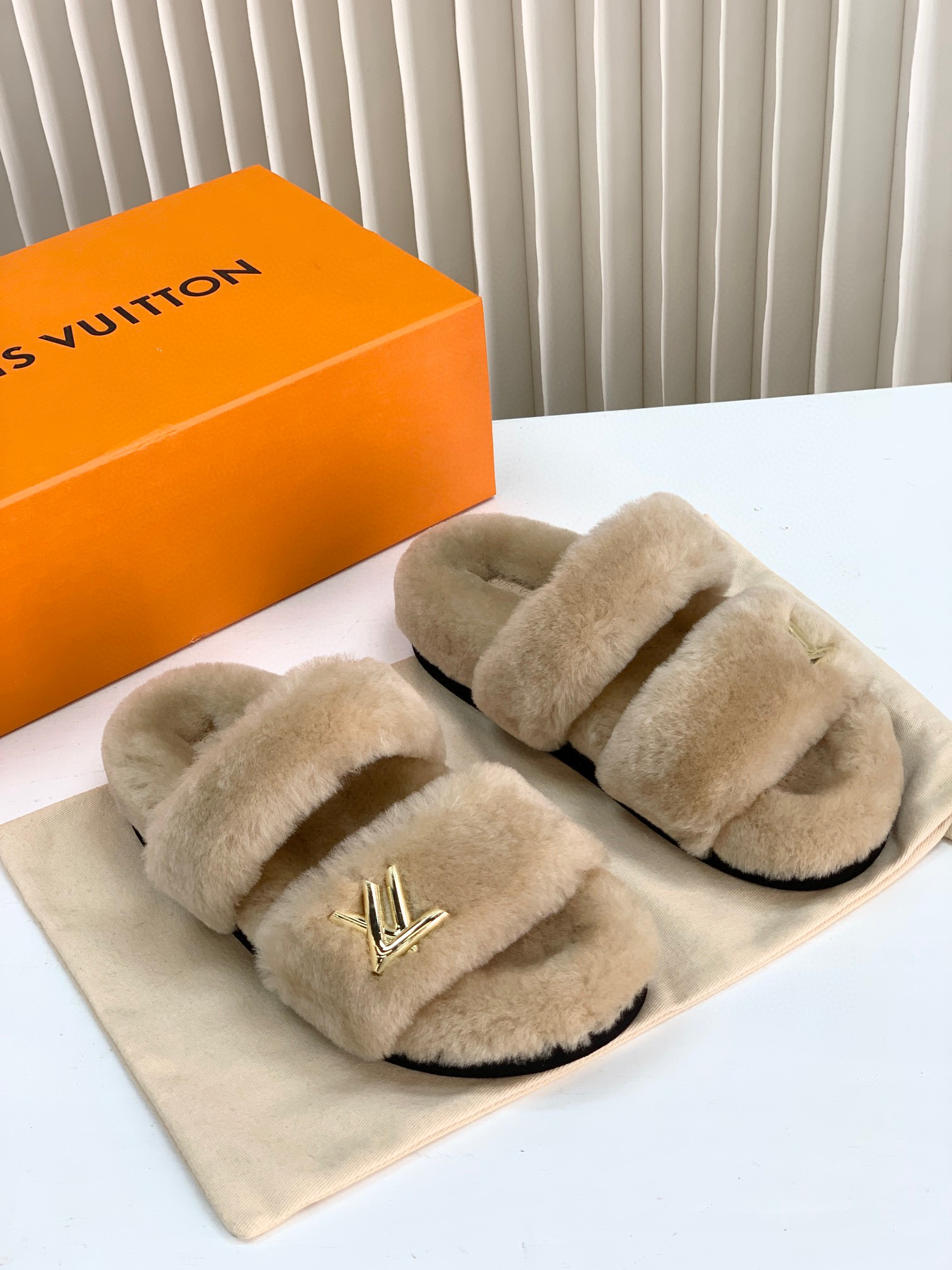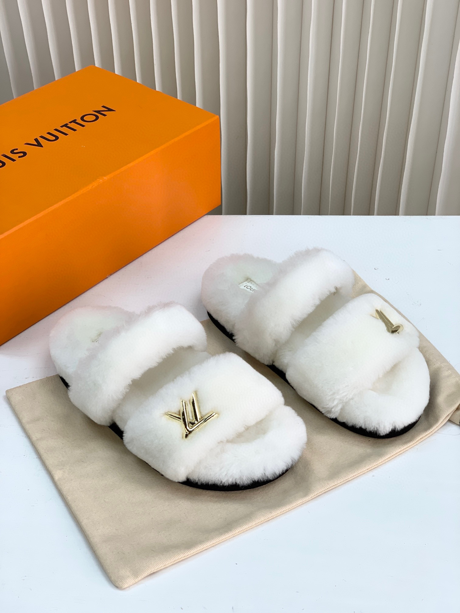 NIGO Louis Vuitton LV Sunset Comfort Flat Mule Women's Lamb Fur Integrated Fur Slippers Shoes #nigo96939