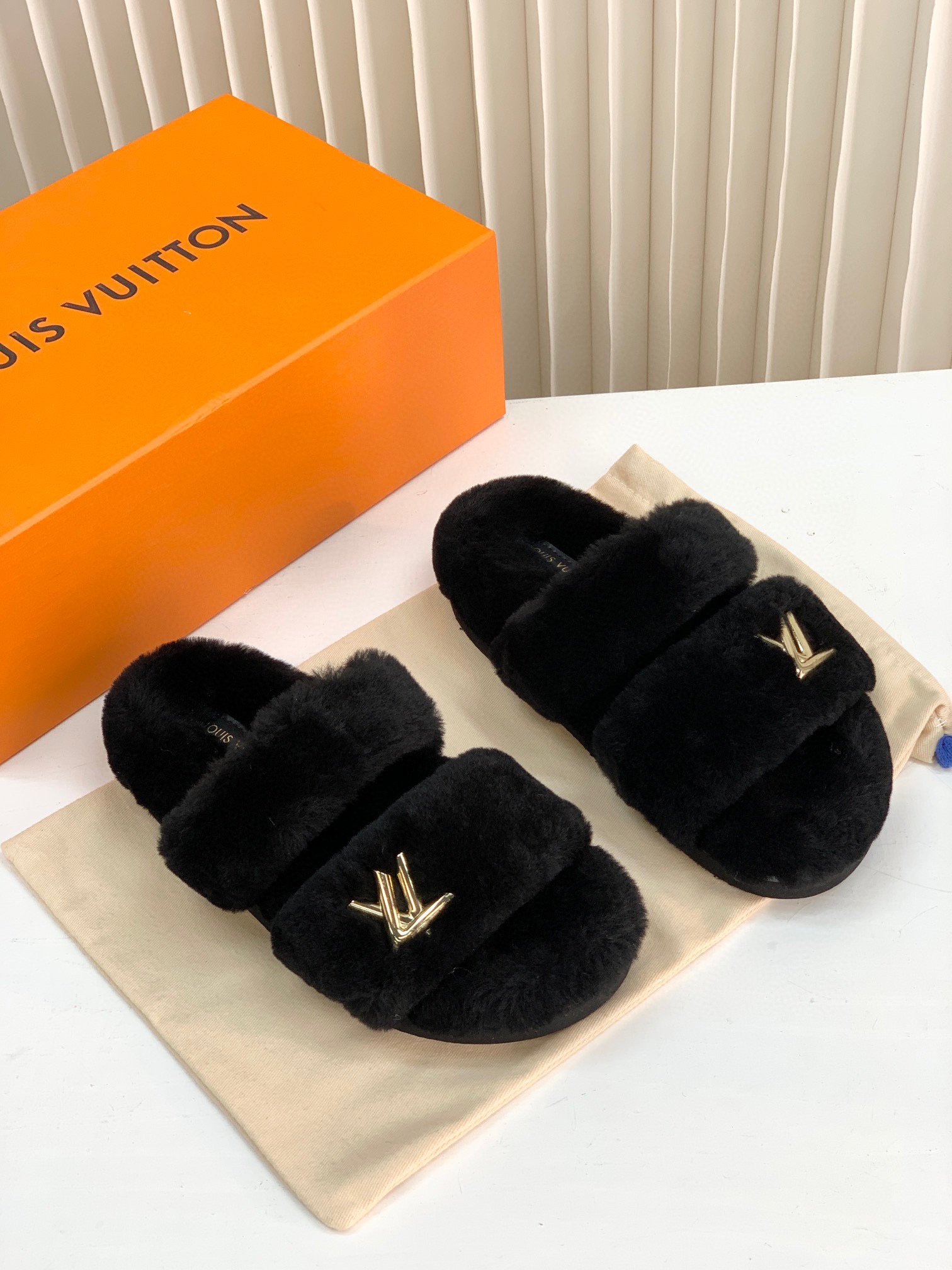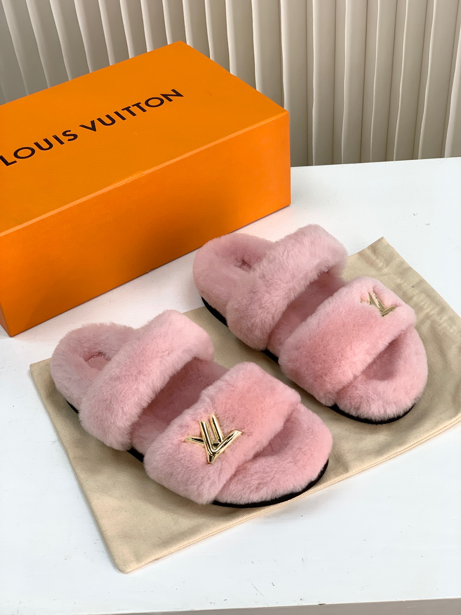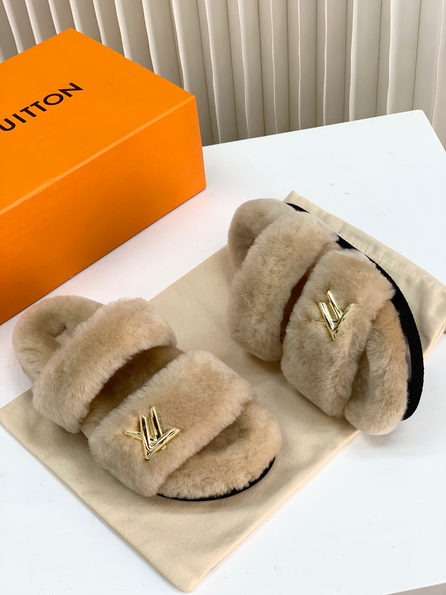 NIGO Louis Vuitton LV Sunset Comfort Flat Mule Women's Lamb Fur Integrated Fur Slippers Shoes #nigo96939