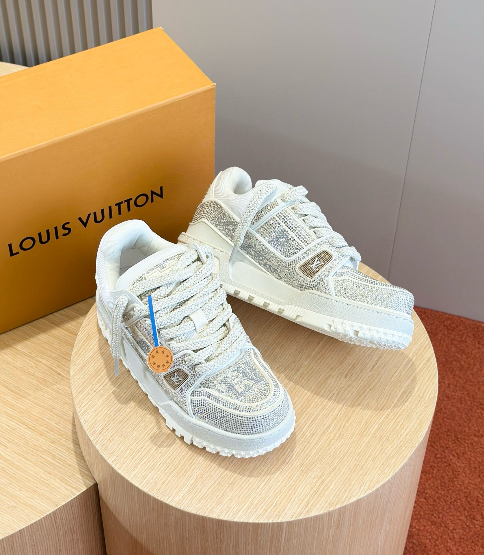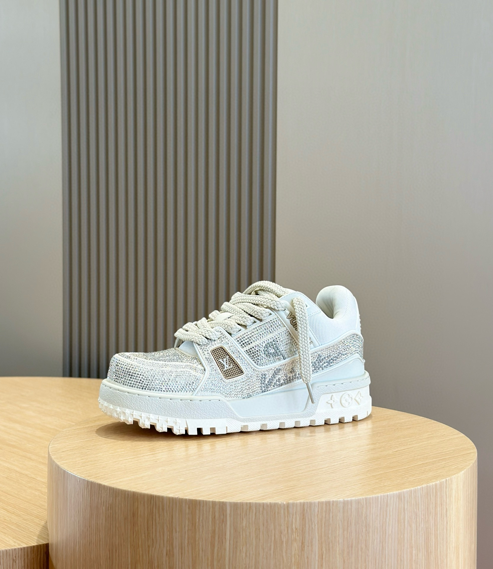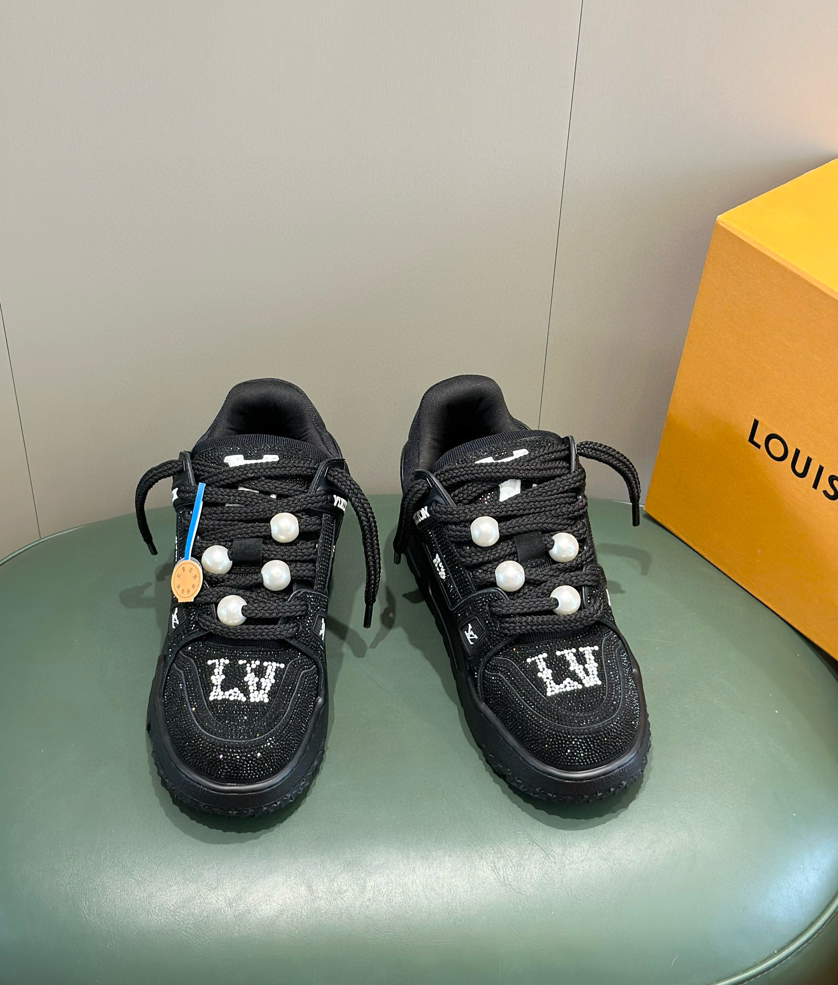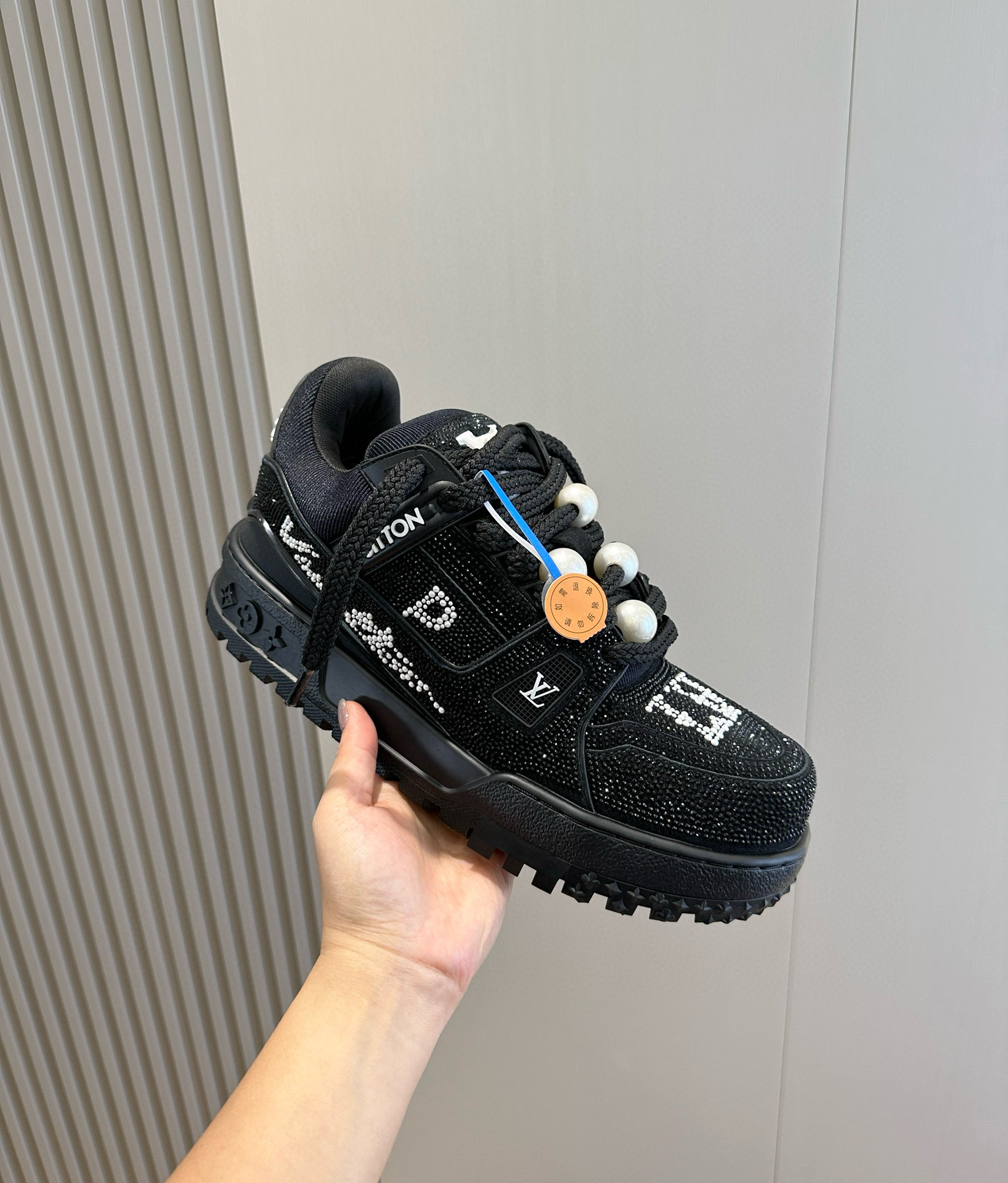 NIGO Louis Vuitton LV Trainer Maxi Sneaker Men's Round Toe Full Printed Studded Lace Up Low Top Board Shoes #nigo97835