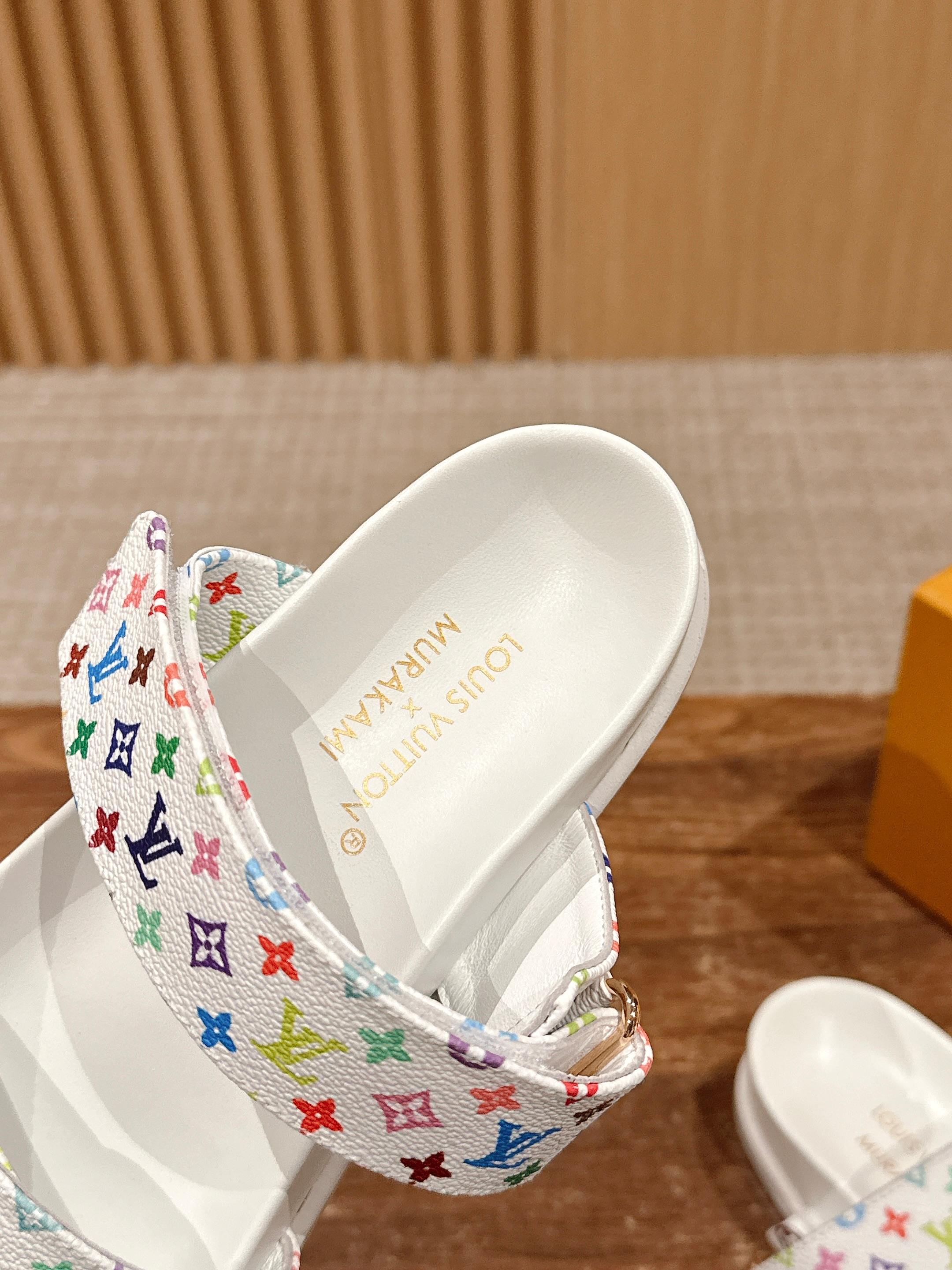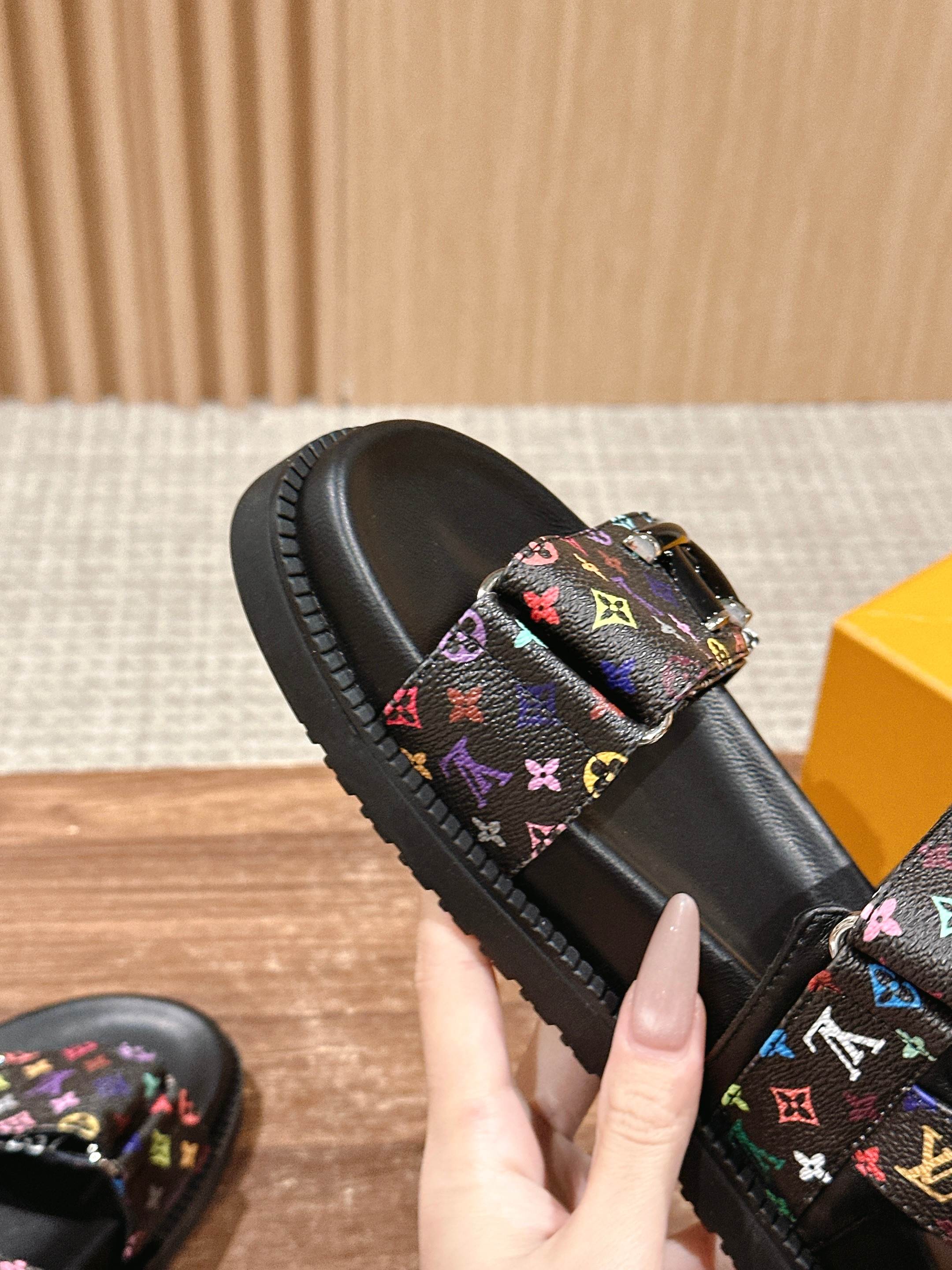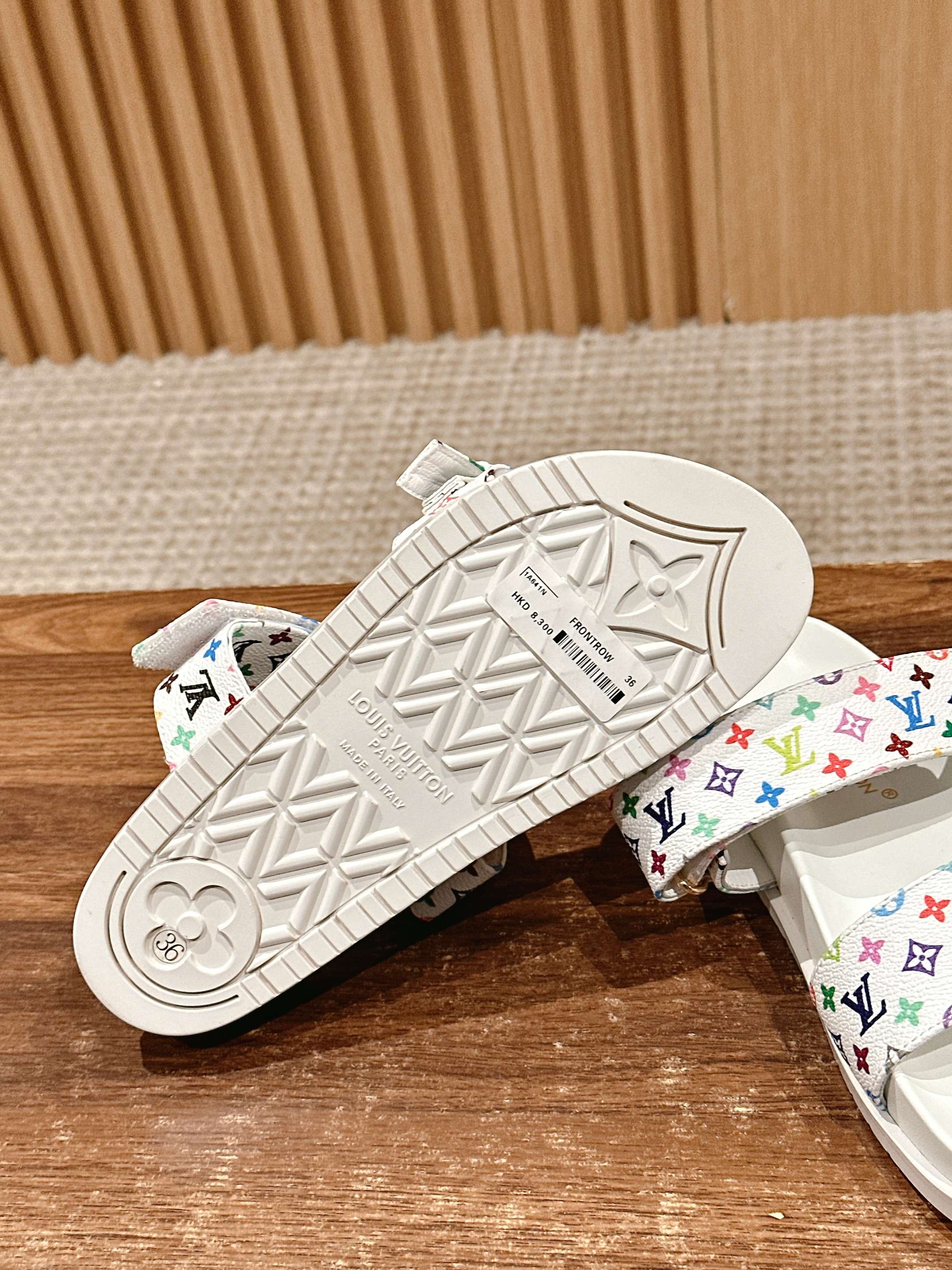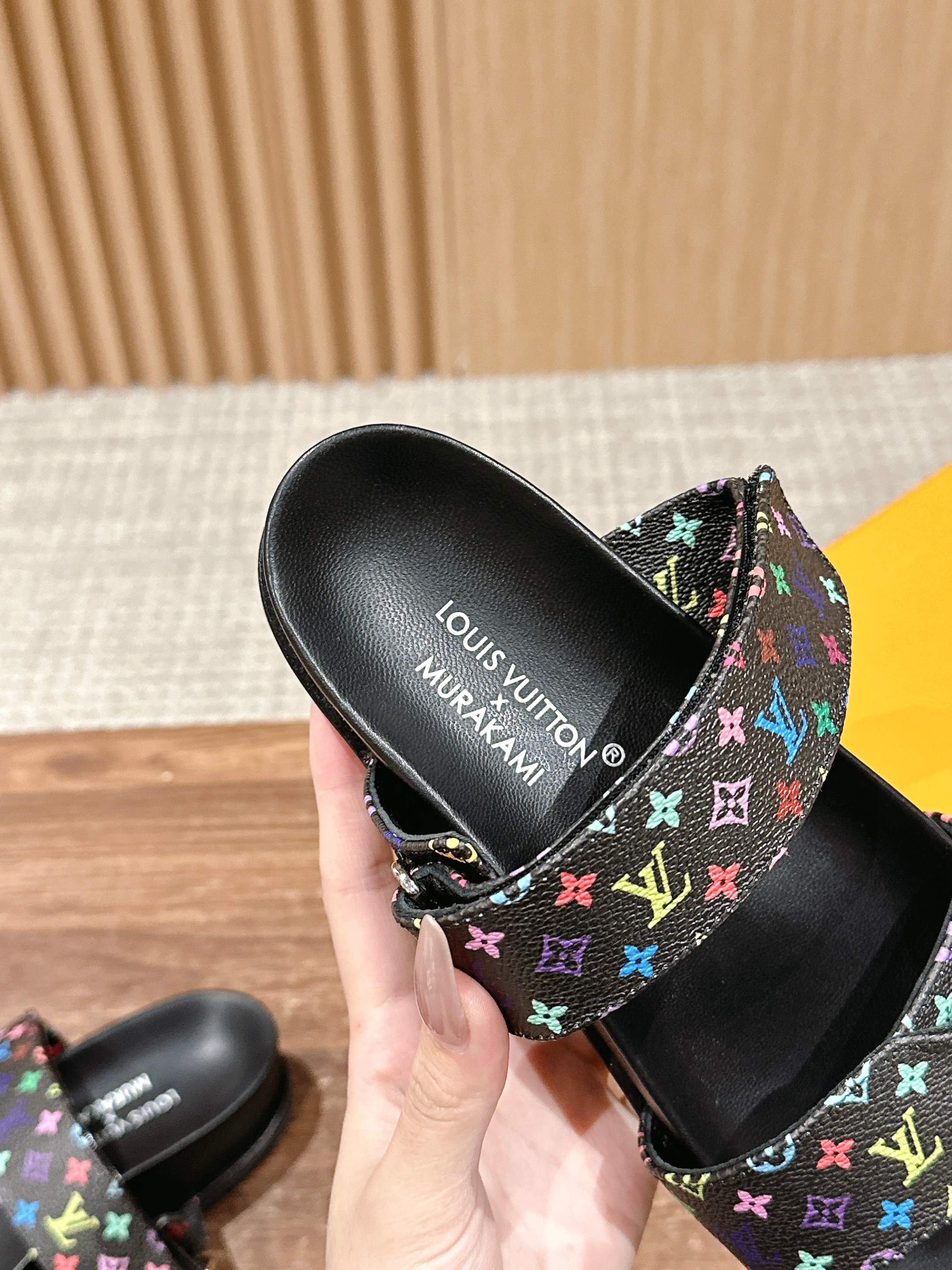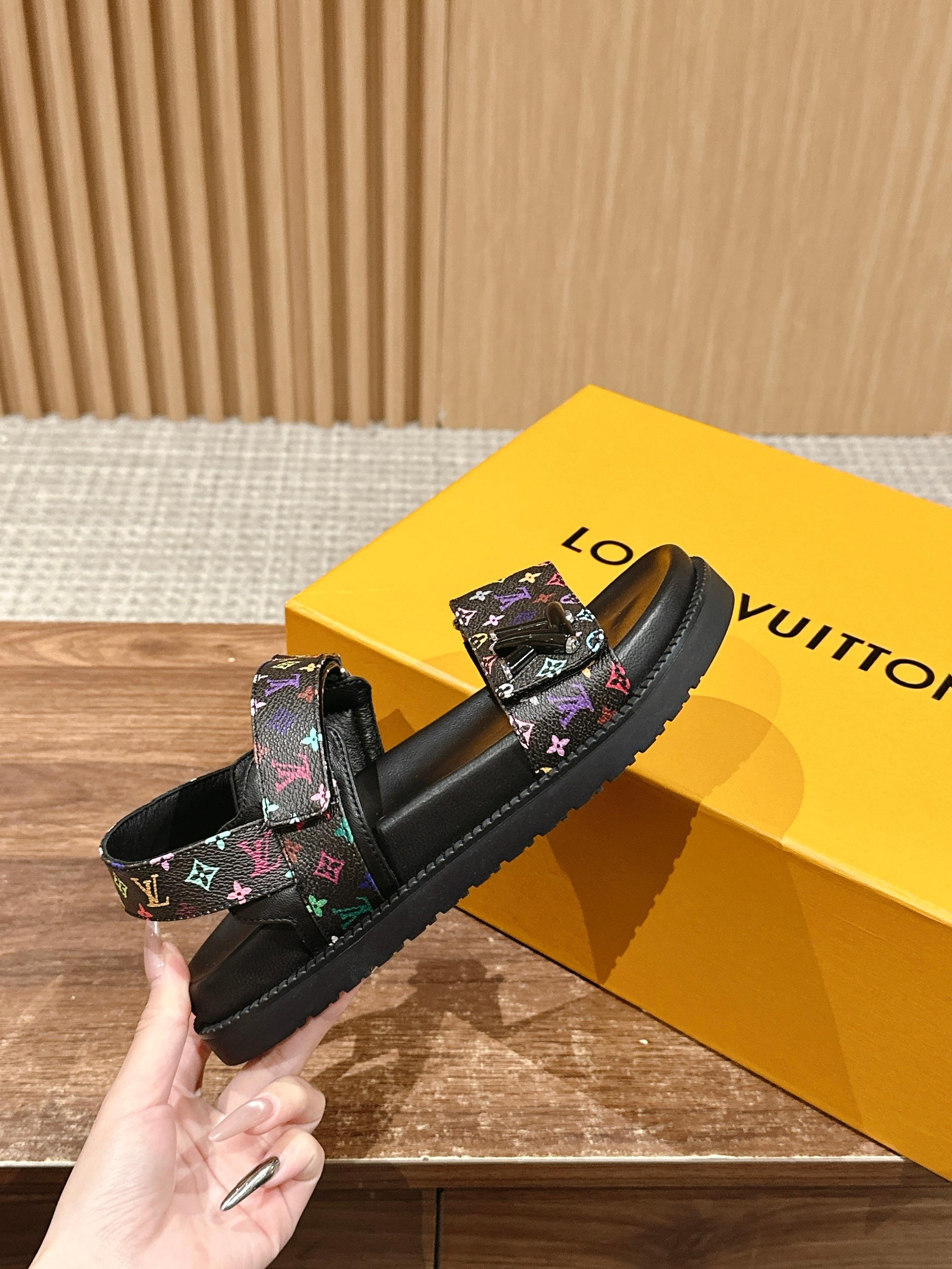 NIGO Louis Vuitton LV x TM LV Sunset Flat Comfort Sandal Men's and Women's Alphabet Jacquard Round Head Thick Bottom Velcro Slippers Sandals Shoes #nigo75934