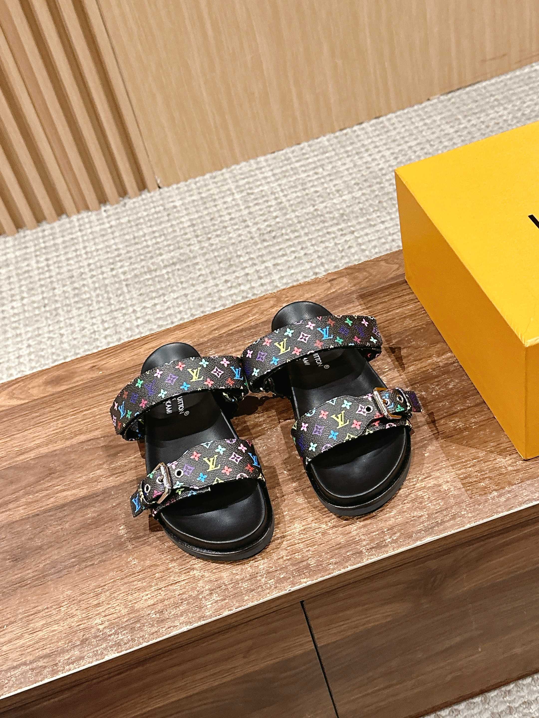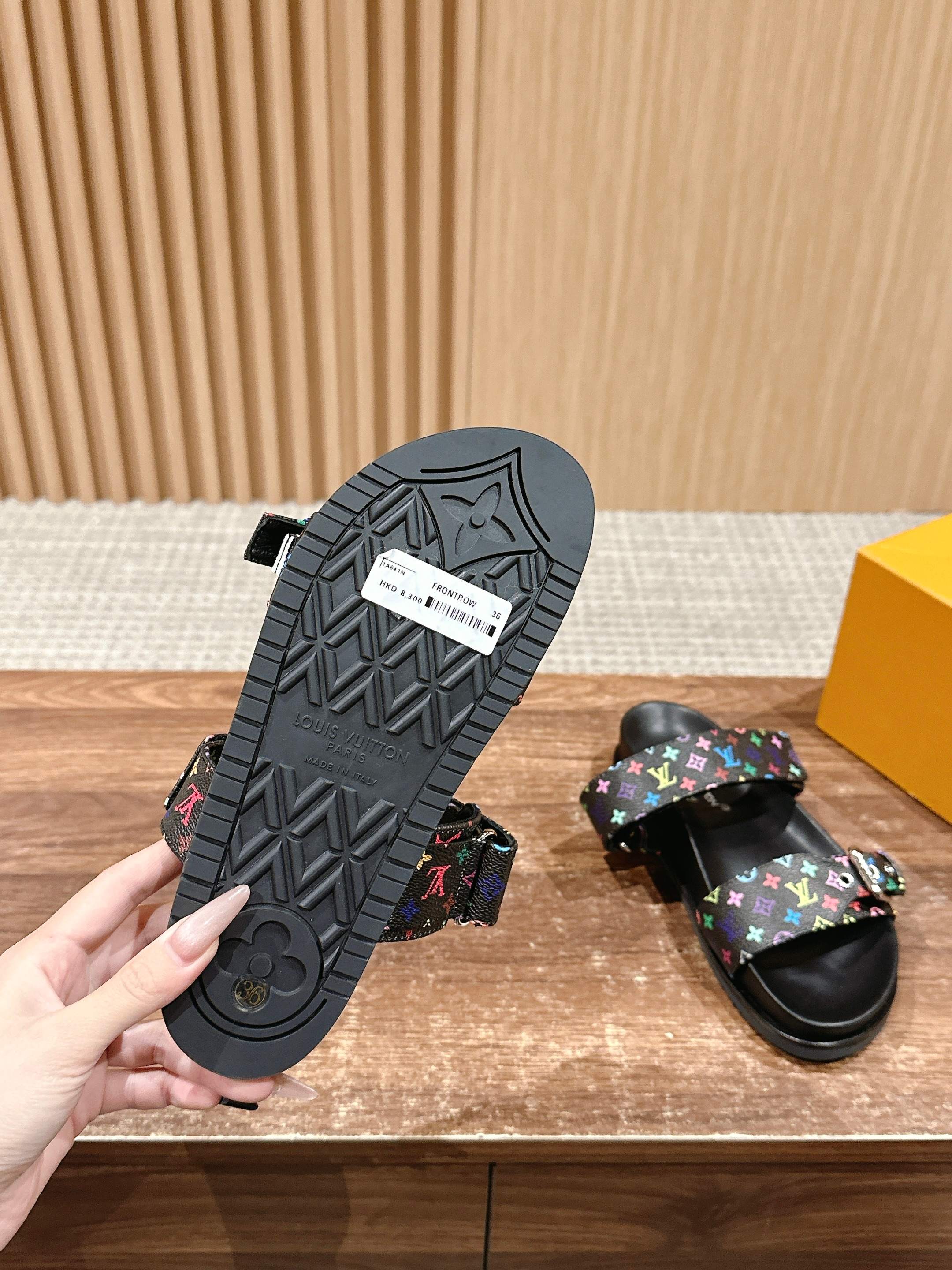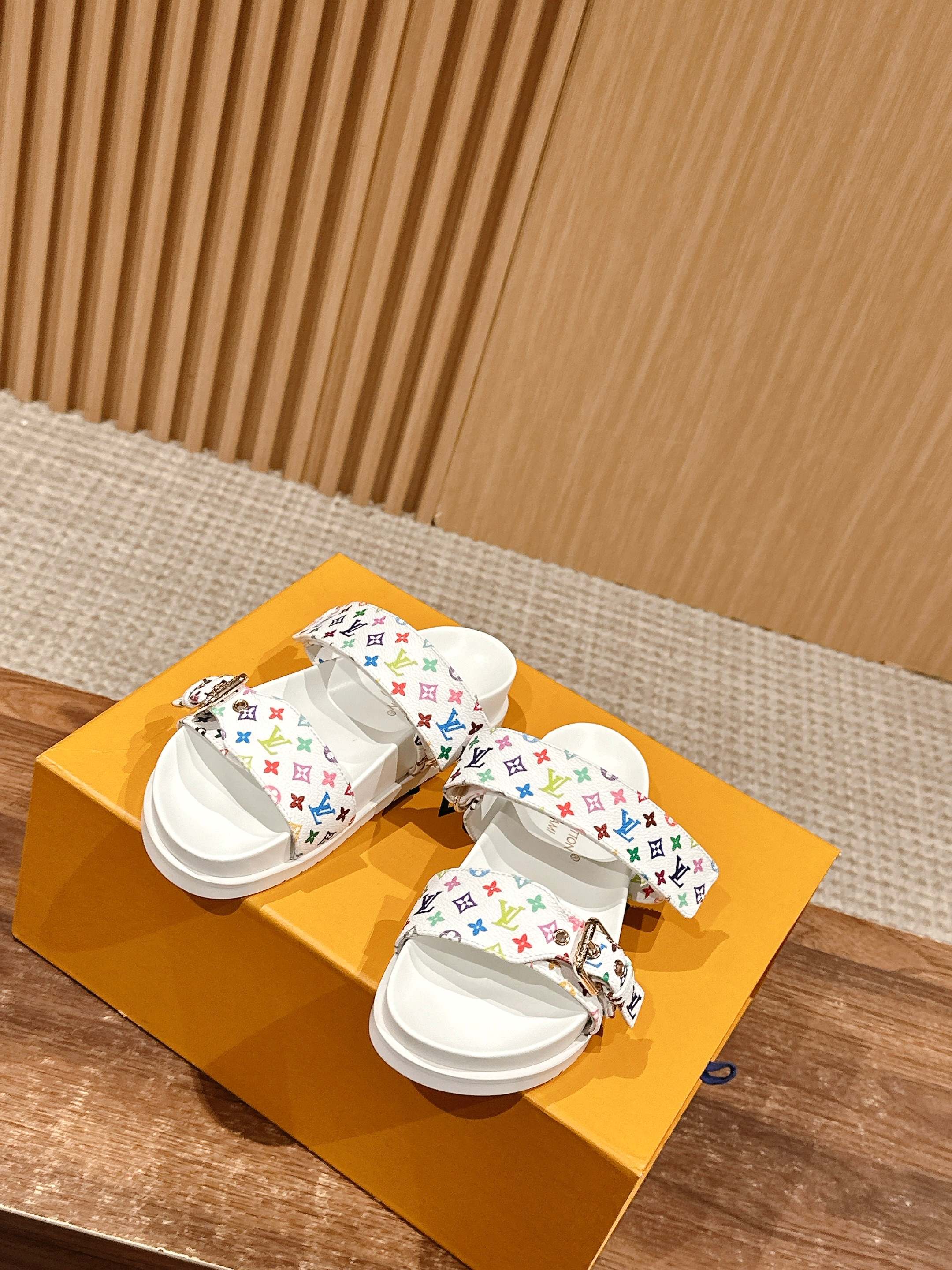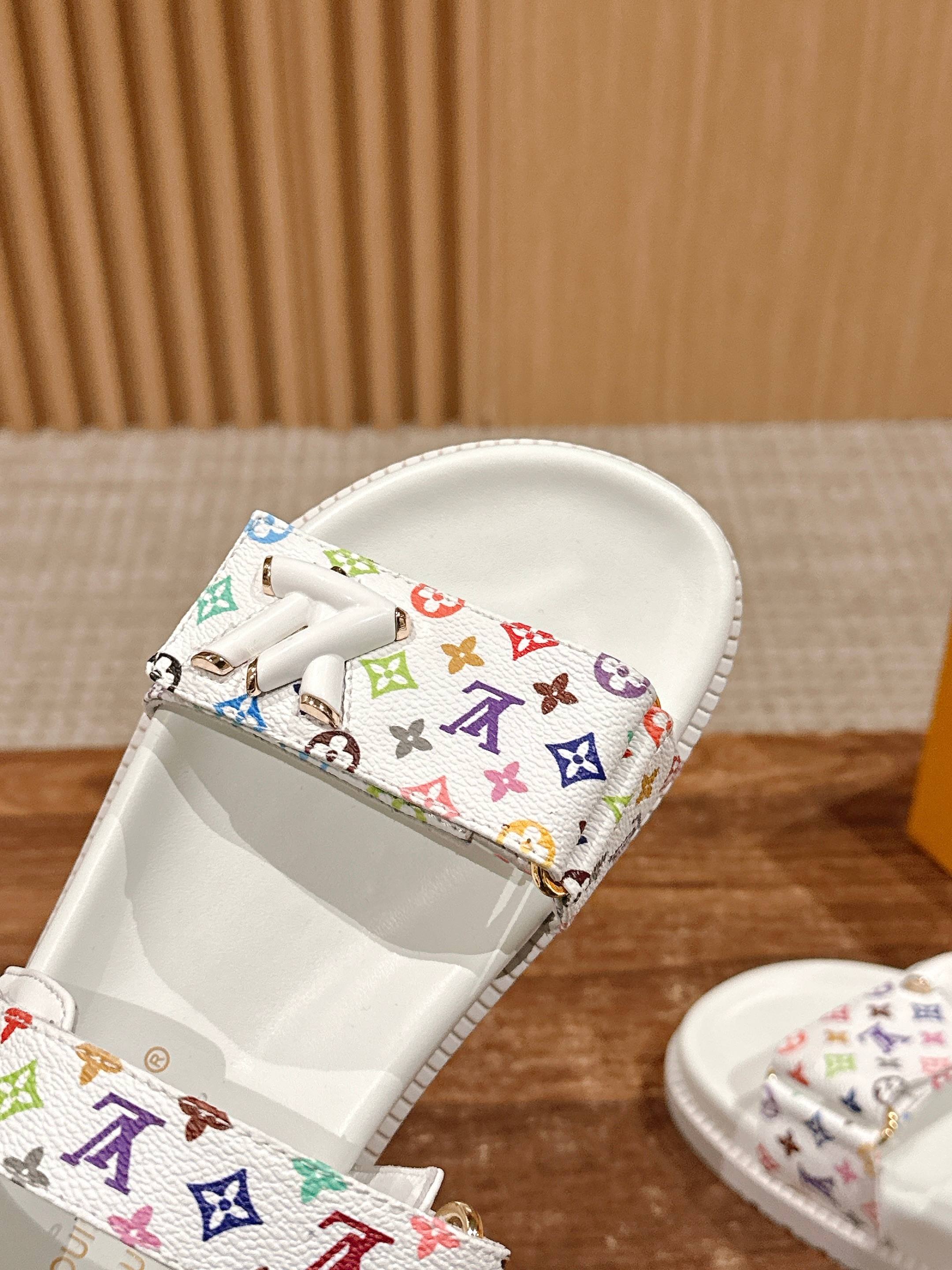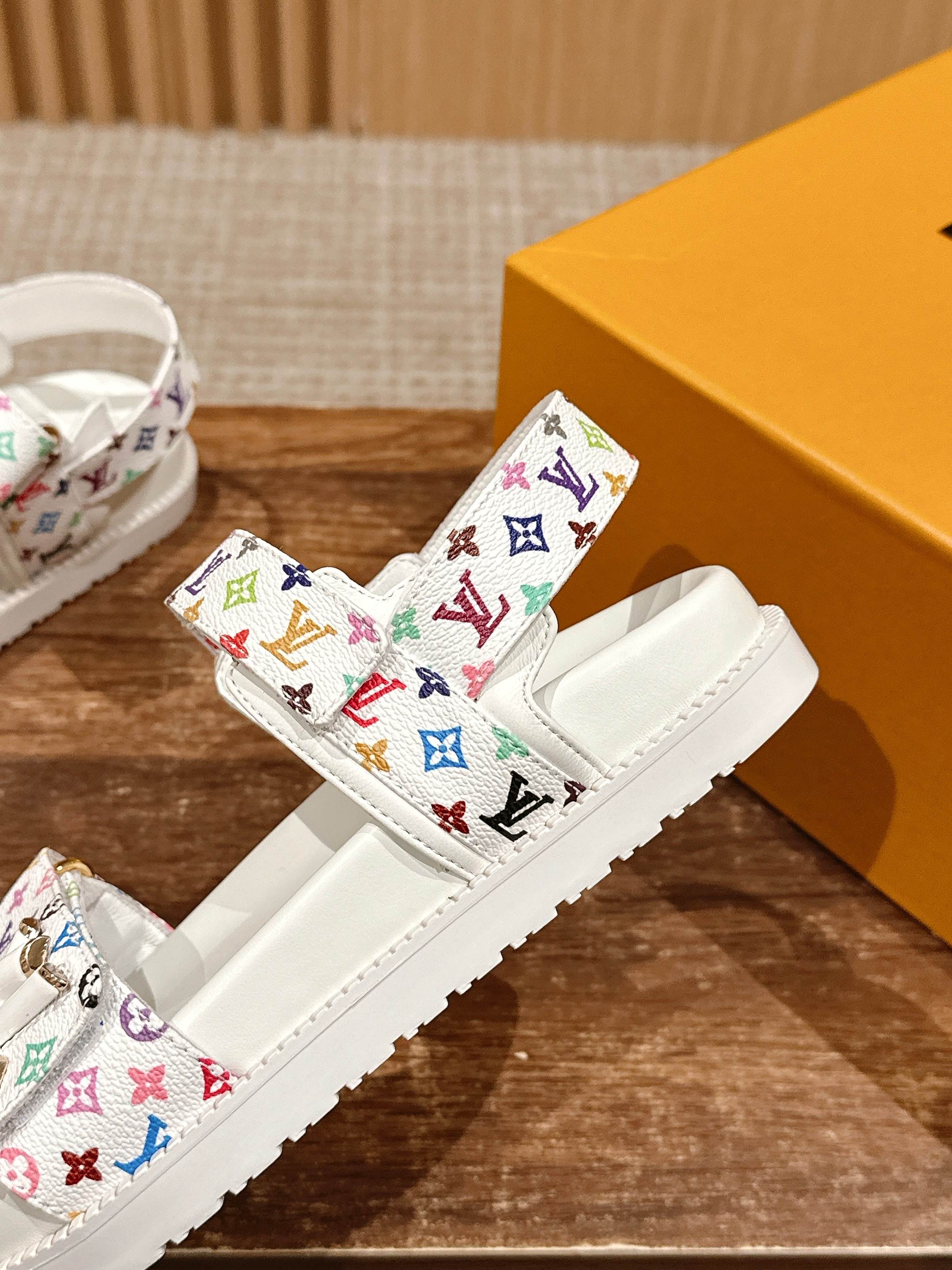 NIGO Louis Vuitton LV x TM LV Sunset Flat Comfort Sandal Men's and Women's Alphabet Jacquard Round Head Thick Bottom Velcro Slippers Sandals Shoes #nigo75934