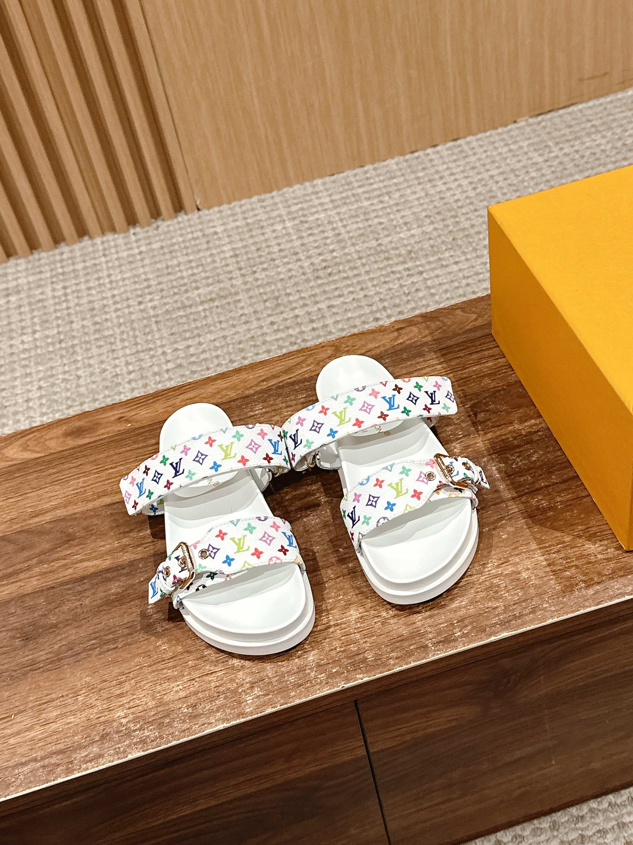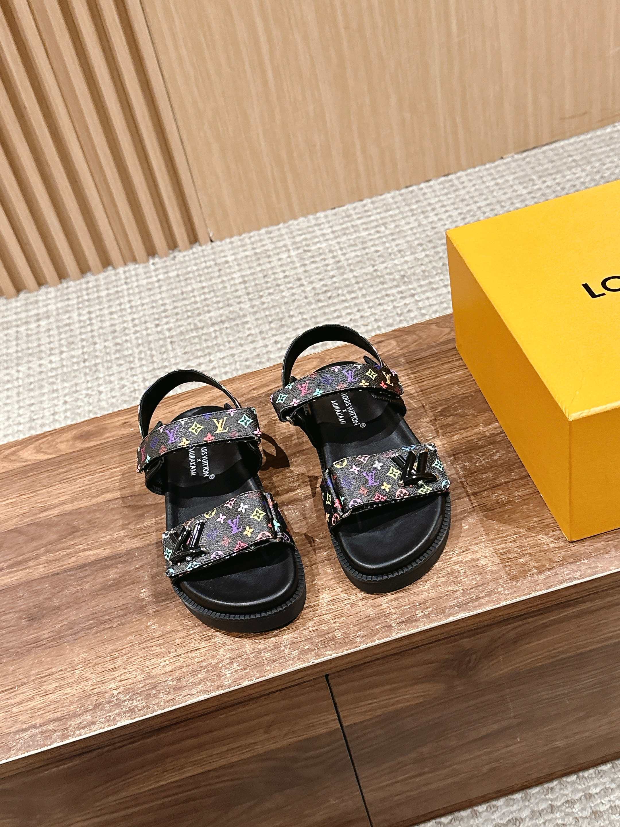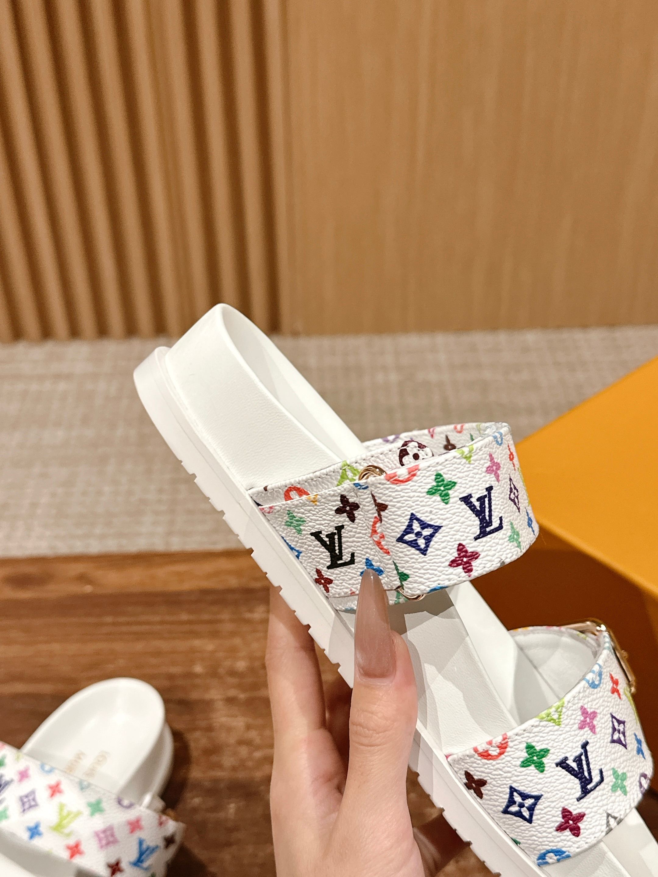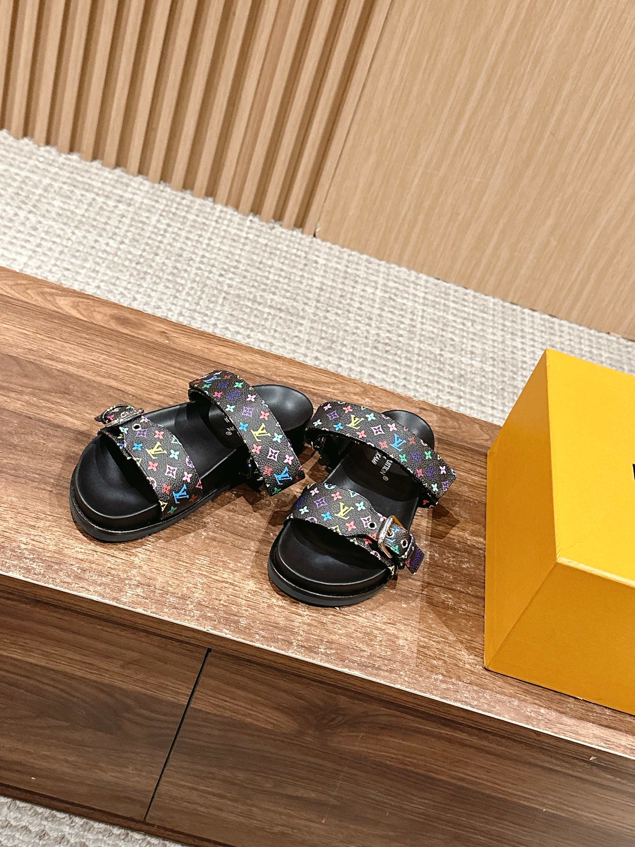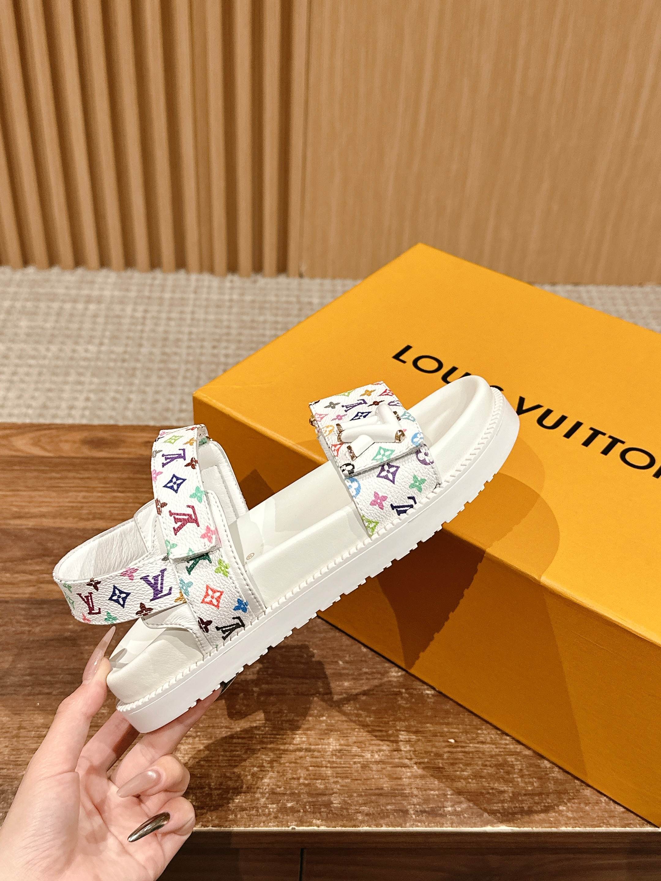 NIGO Louis Vuitton LV x TM LV Sunset Flat Comfort Sandal Men's and Women's Alphabet Jacquard Round Head Thick Bottom Velcro Slippers Sandals Shoes #nigo75934