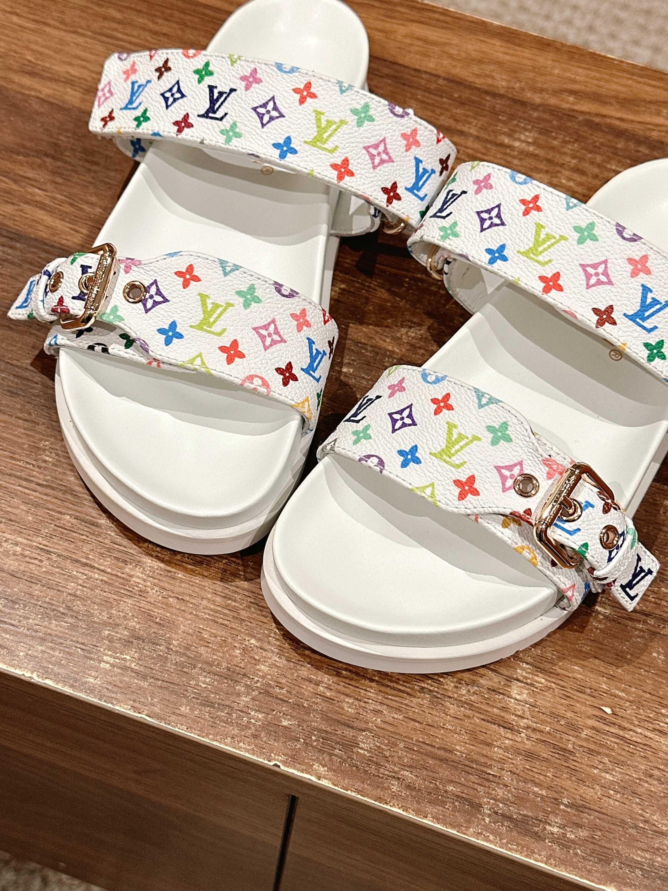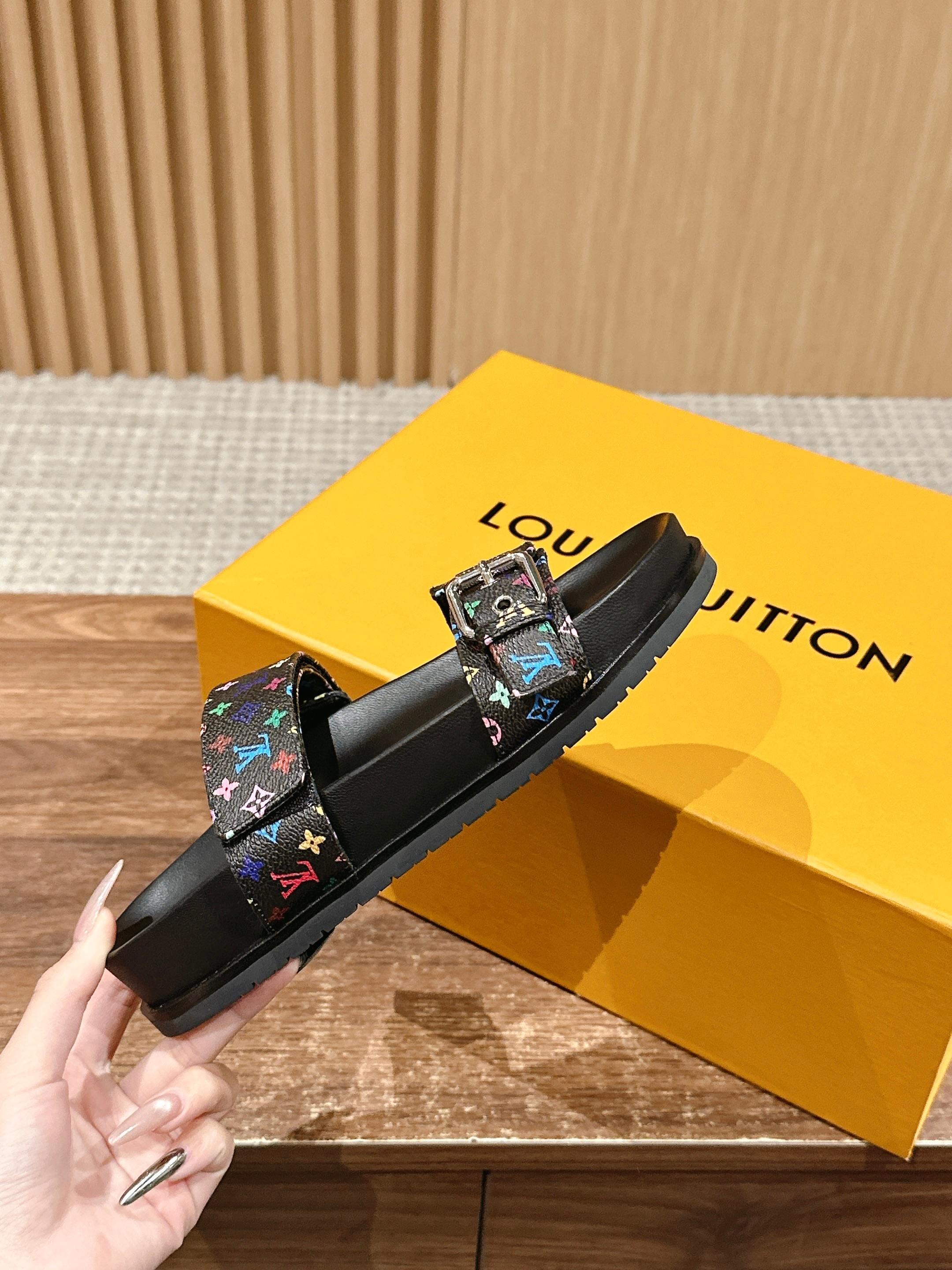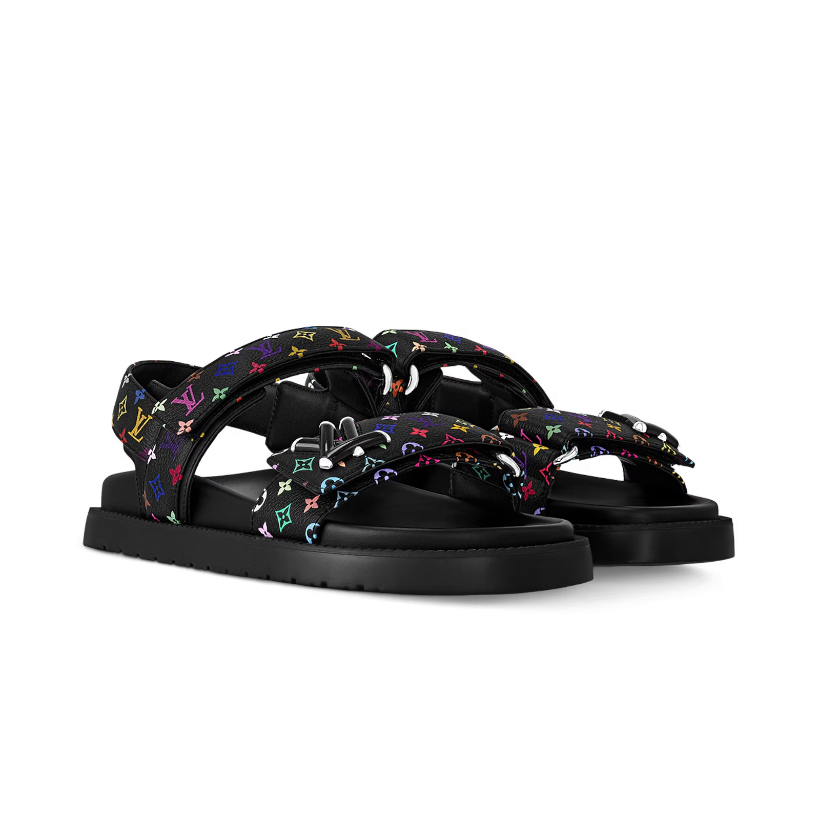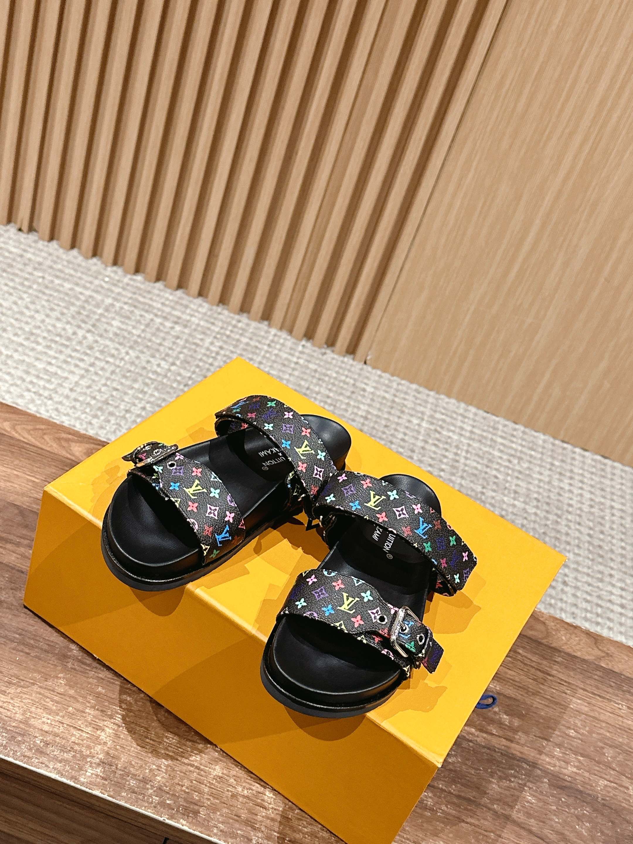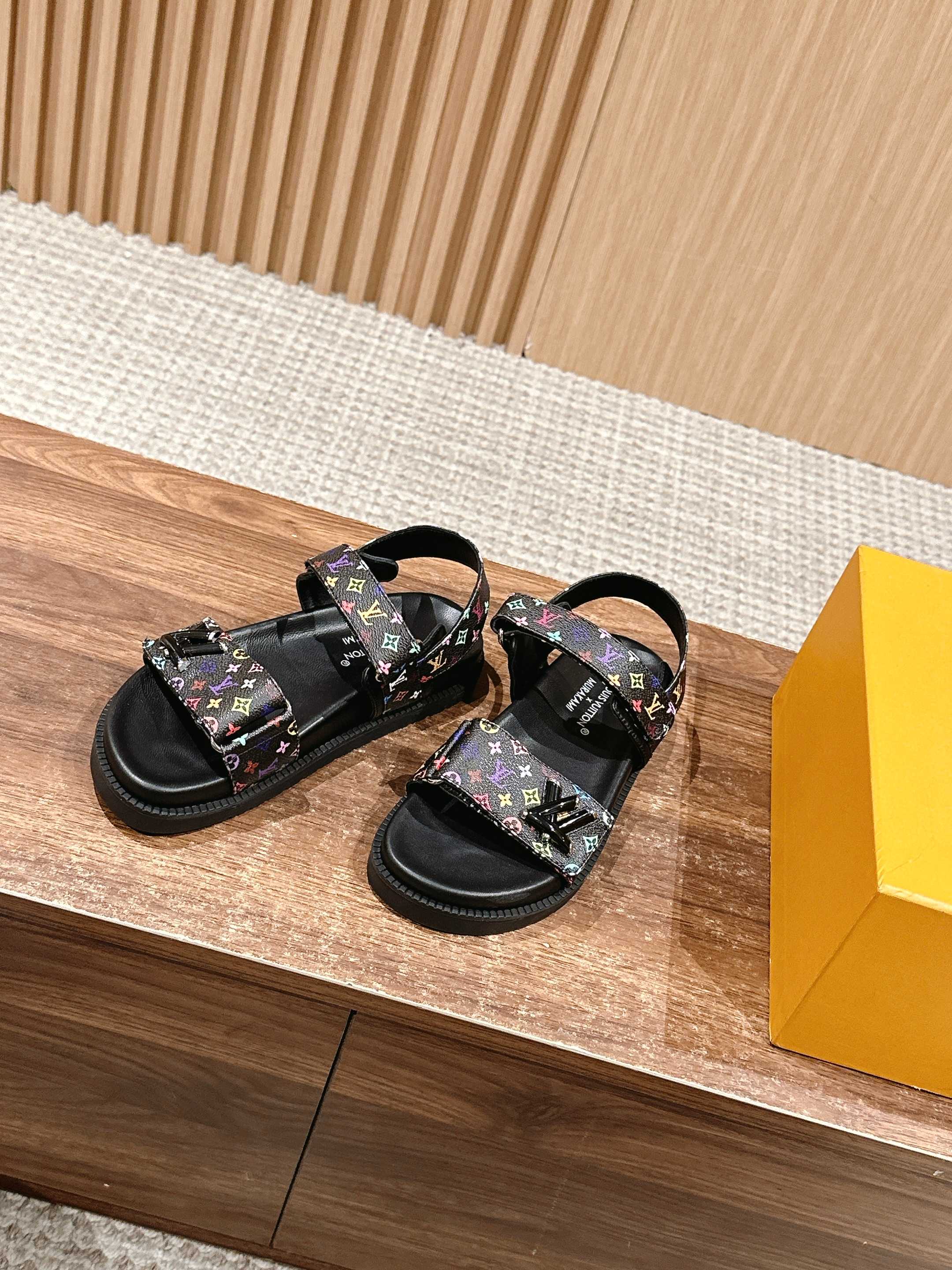 NIGO Louis Vuitton LV x TM LV Sunset Flat Comfort Sandal Men's and Women's Alphabet Jacquard Round Head Thick Bottom Velcro Slippers Sandals Shoes #nigo75934