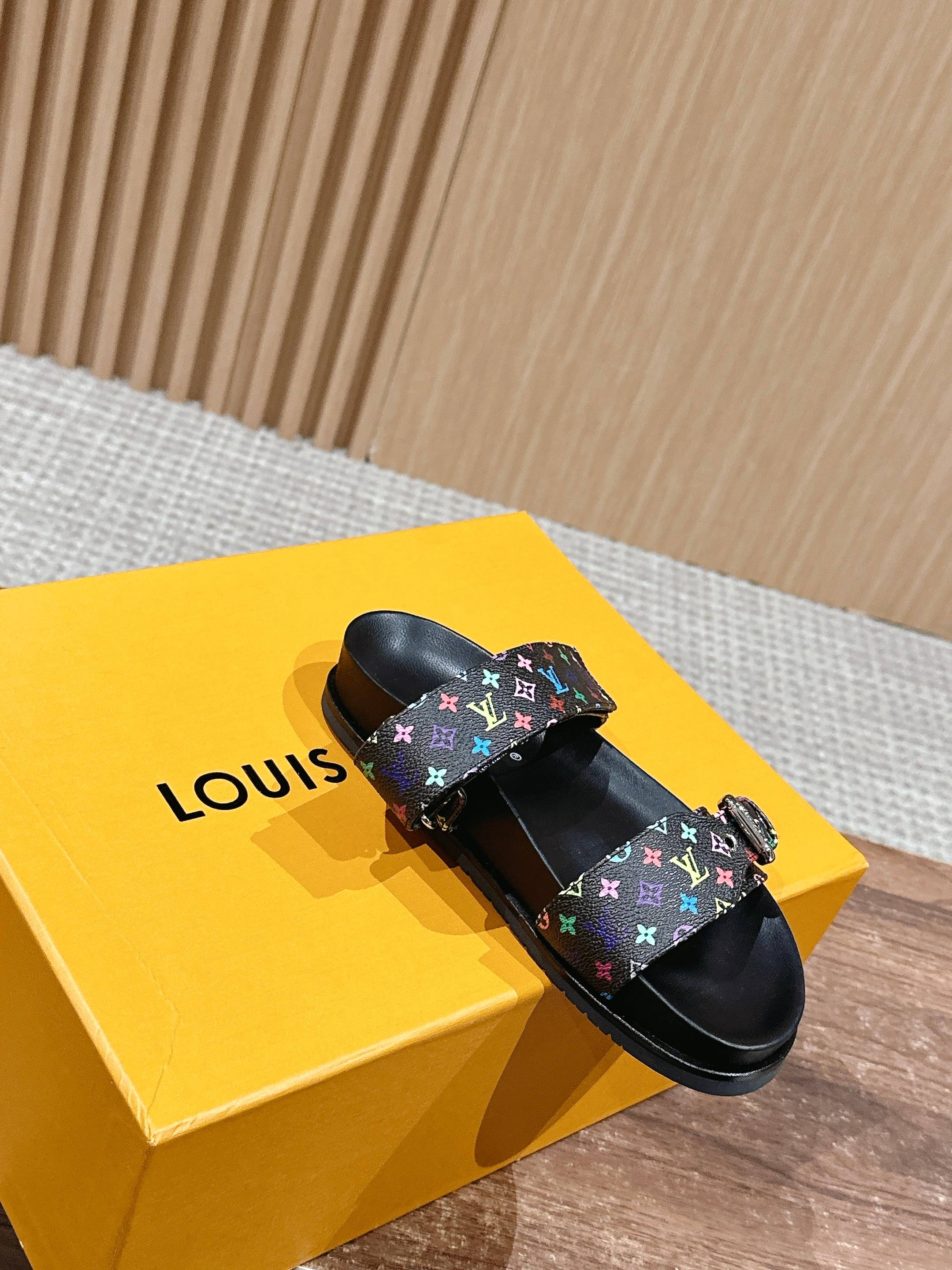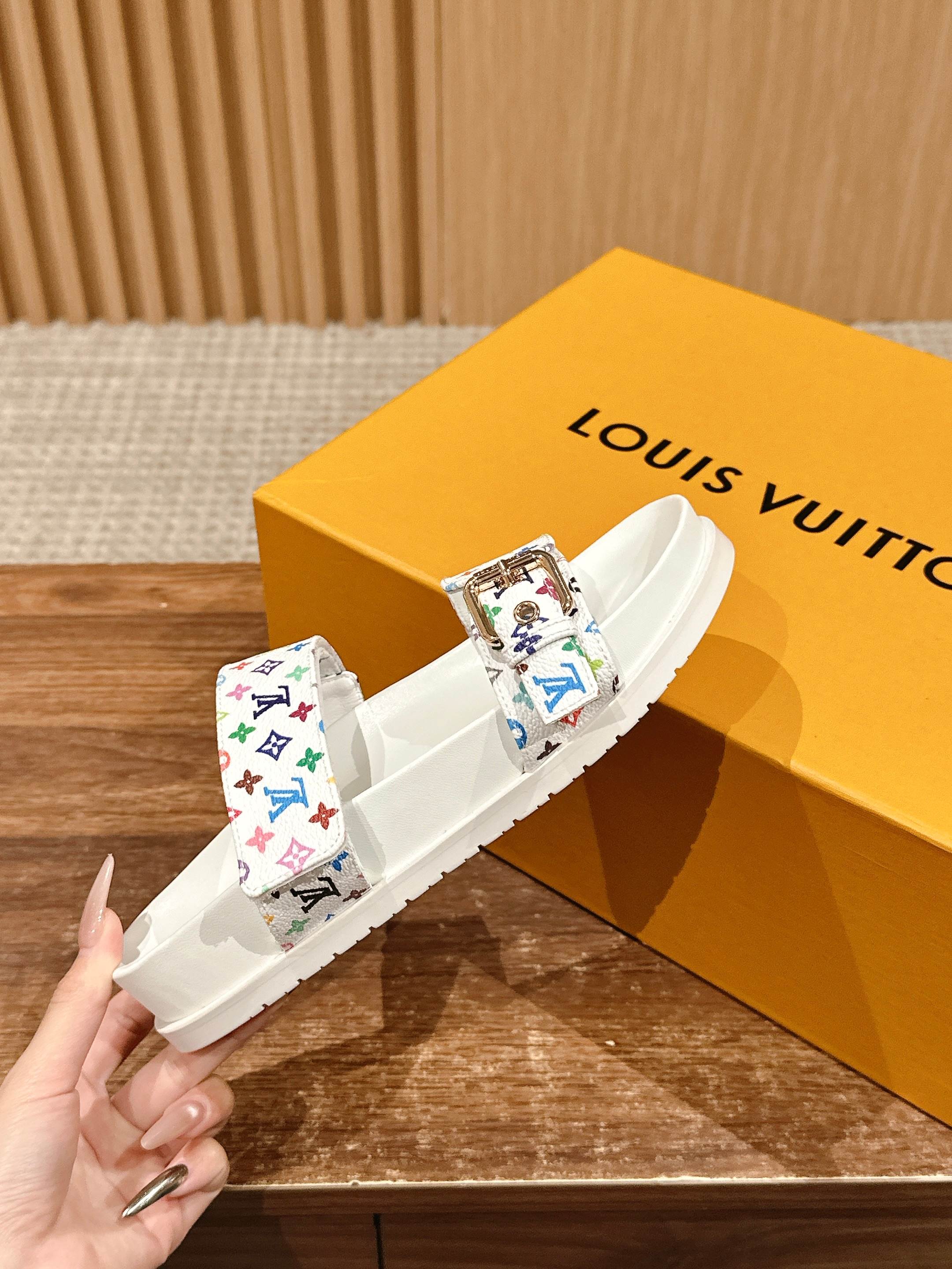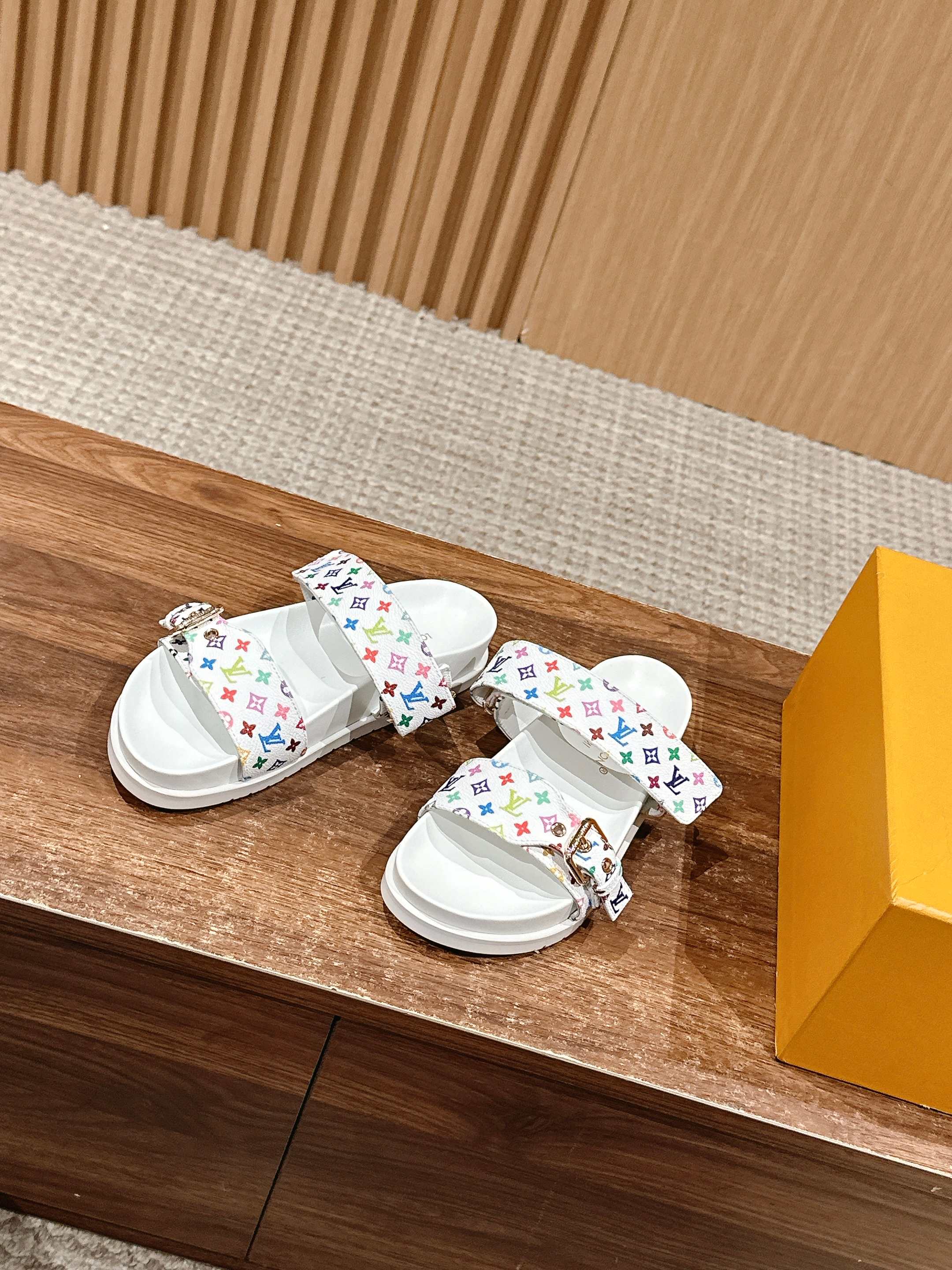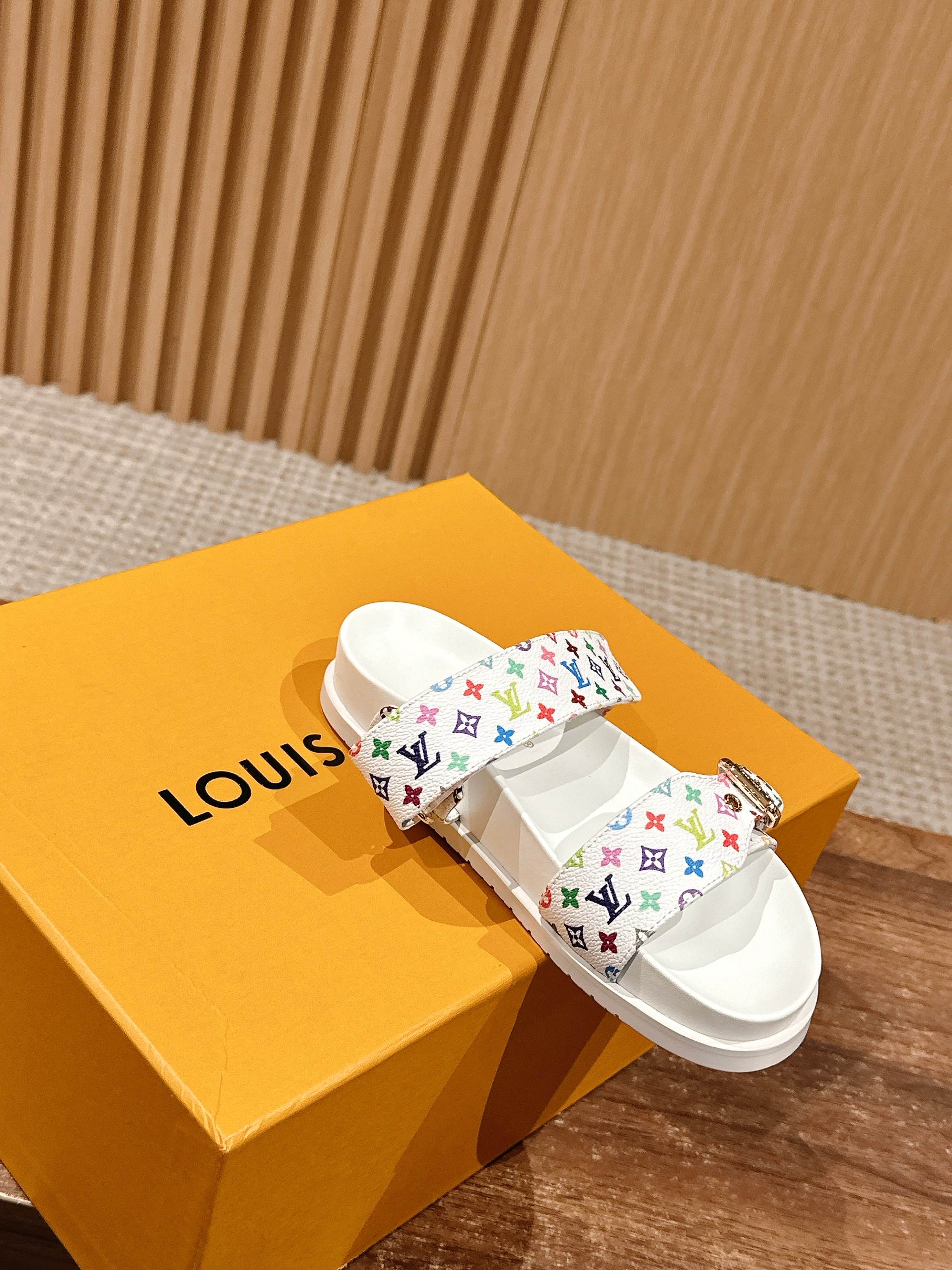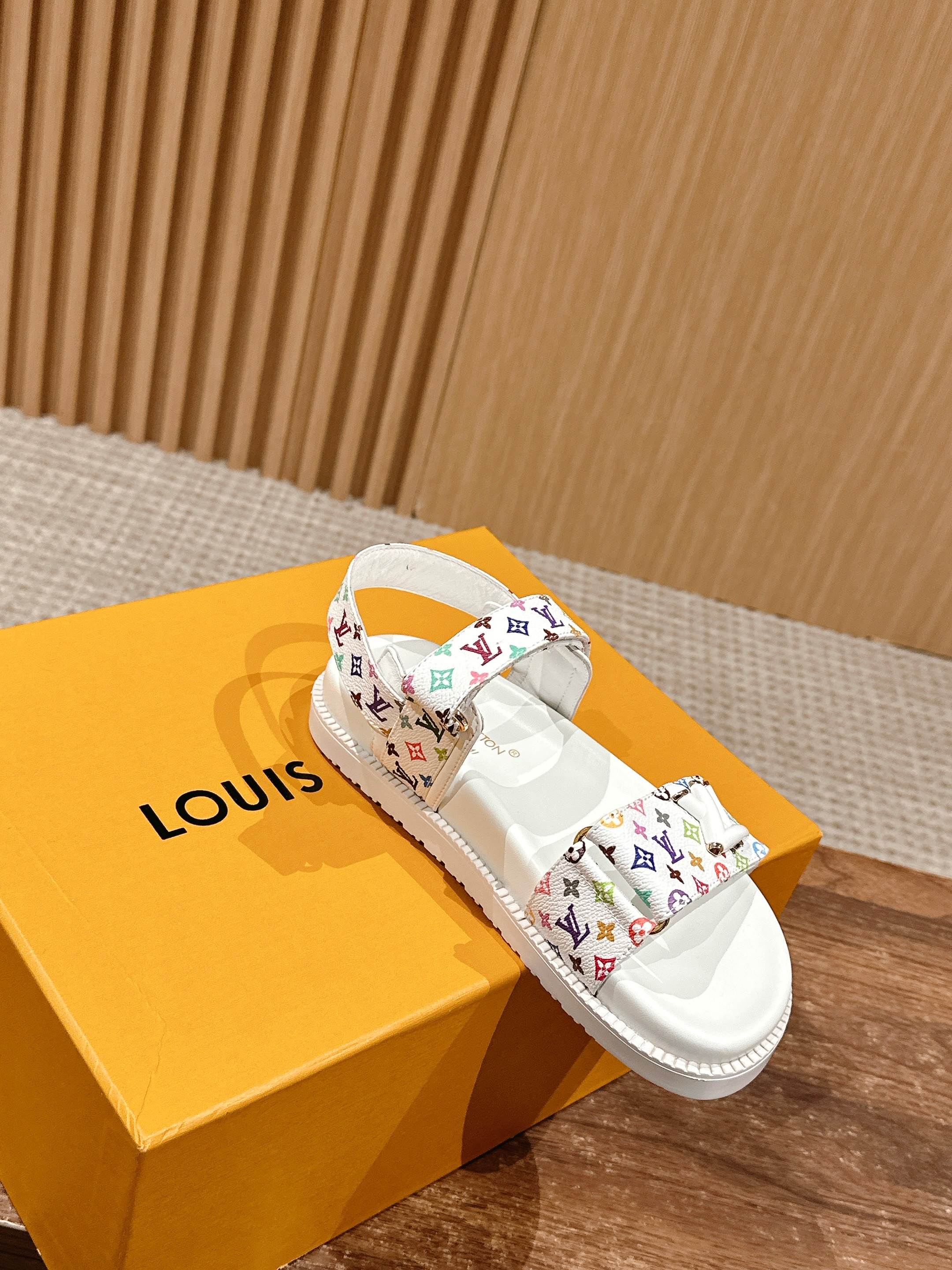 NIGO Louis Vuitton LV x TM LV Sunset Flat Comfort Sandal Men's and Women's Alphabet Jacquard Round Head Thick Bottom Velcro Slippers Sandals Shoes #nigo75934