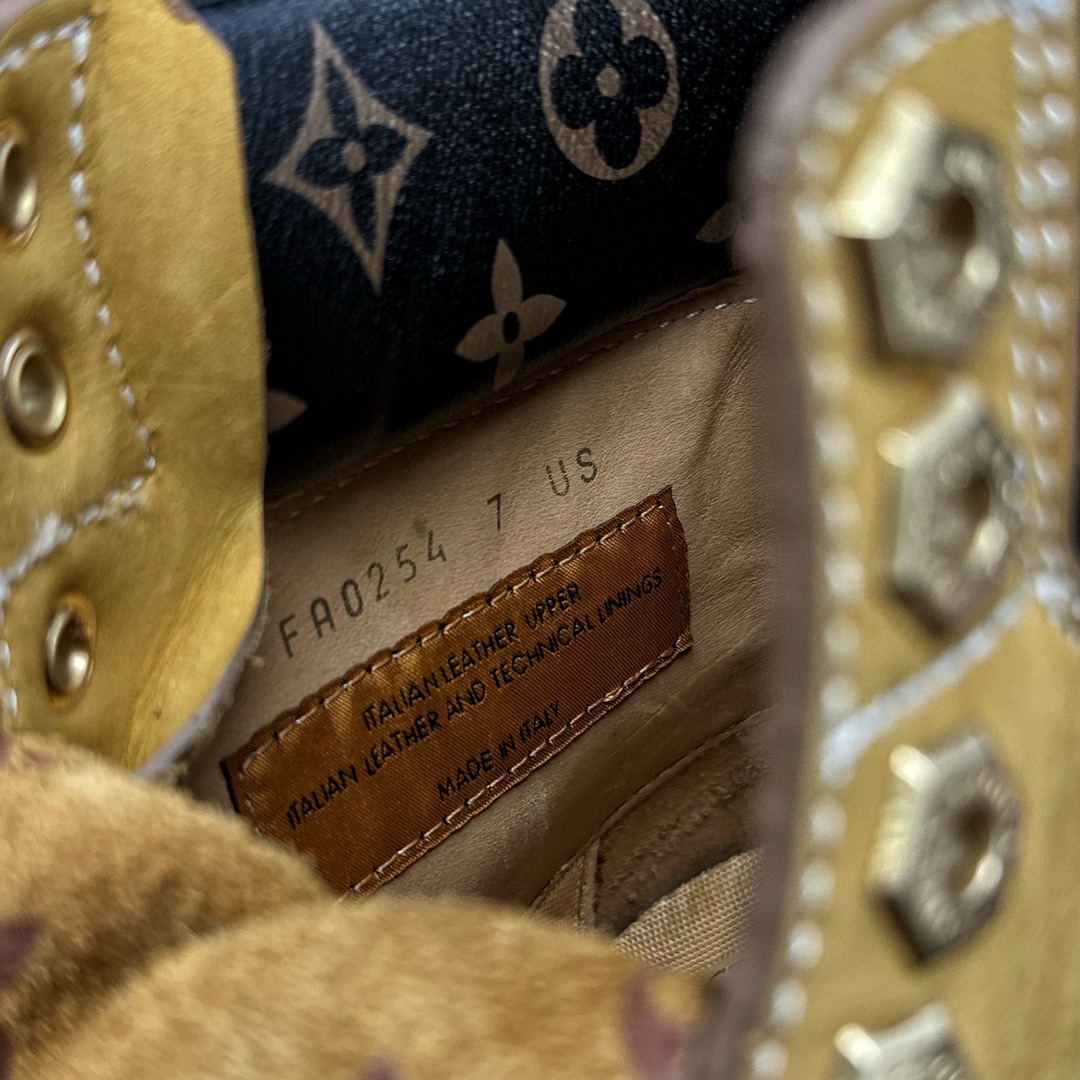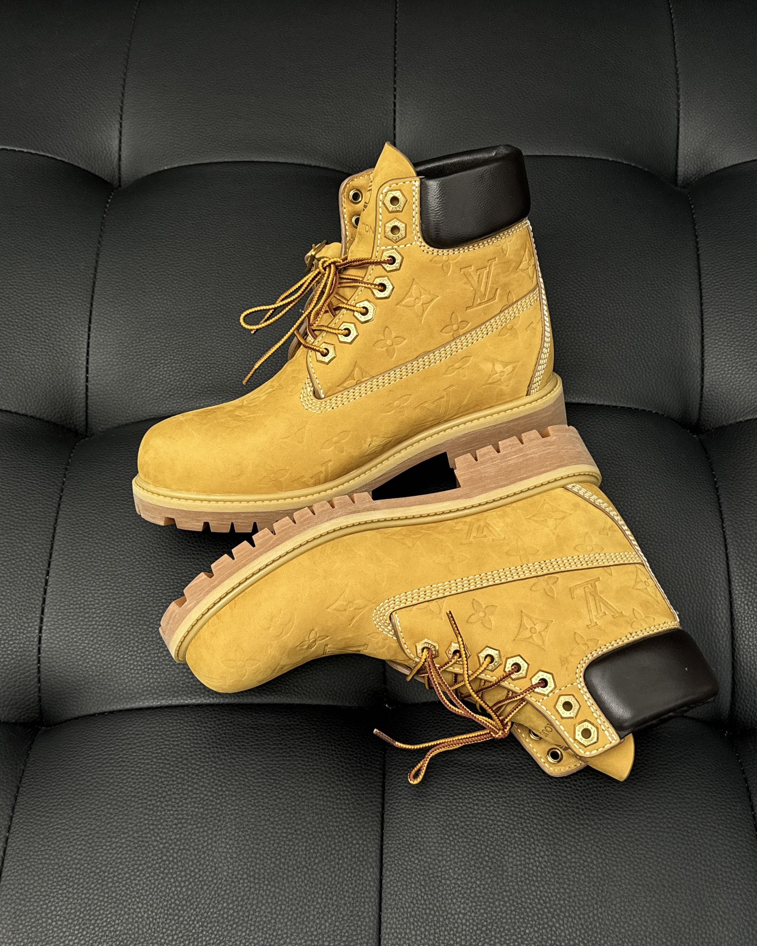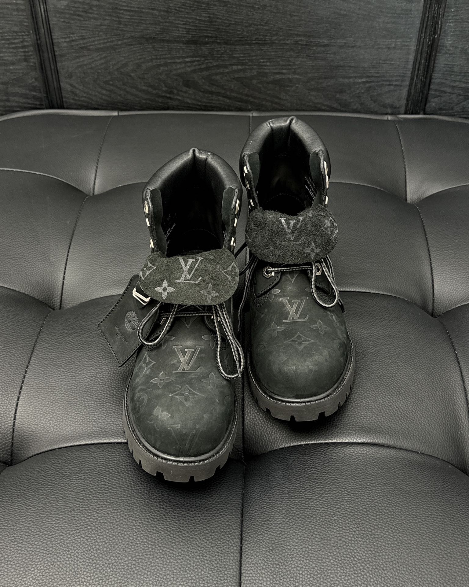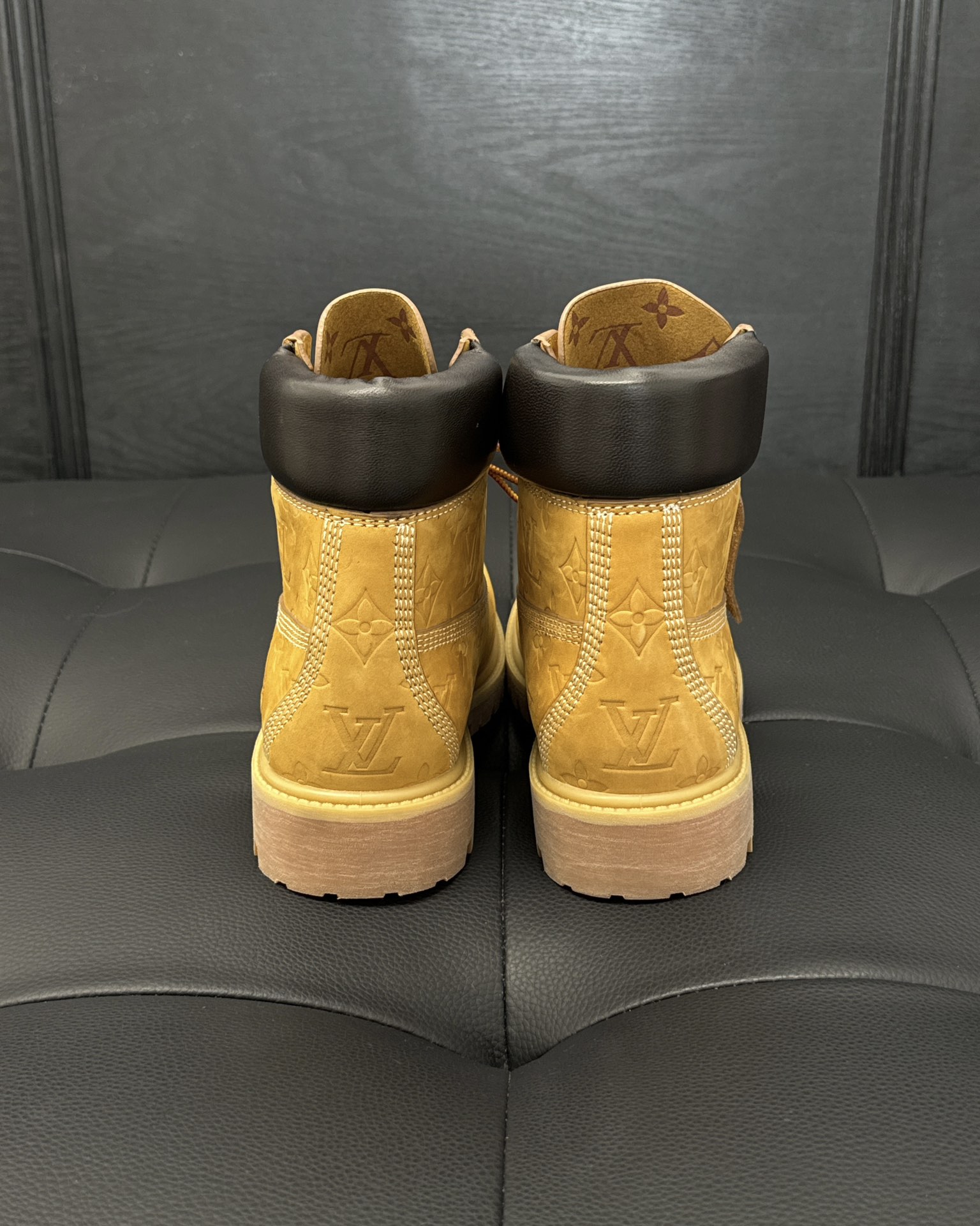 NIGO Louis Vuitton Men's And Women's Fall And Winter Old Flower Print Round Head Lace Up Embossed Waterproof Suede And Ankle Boots Martin Boots Shoes #nigo73648