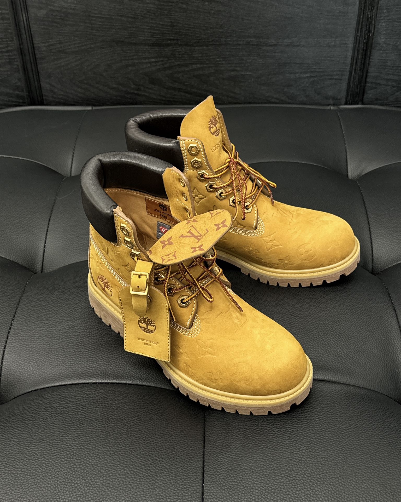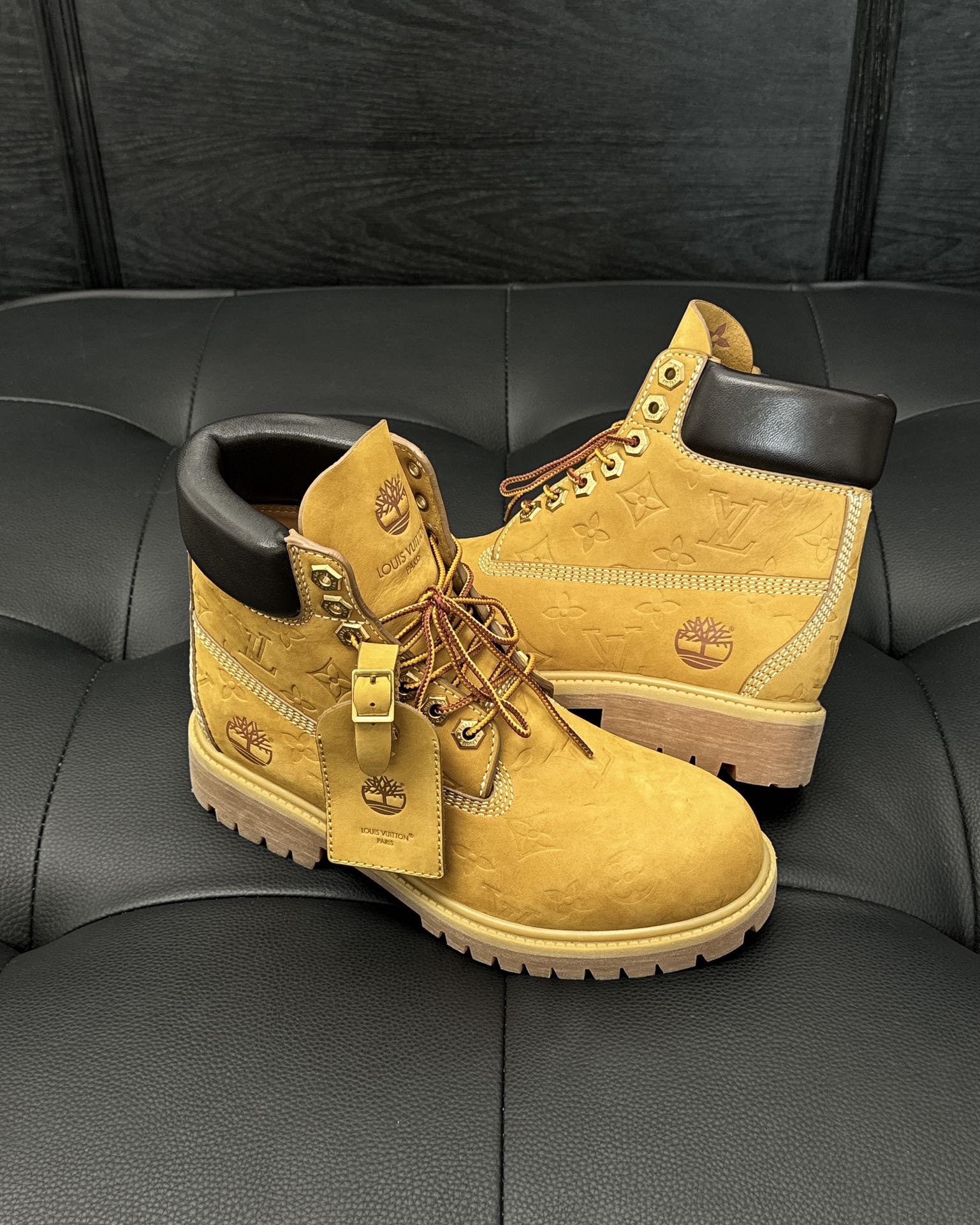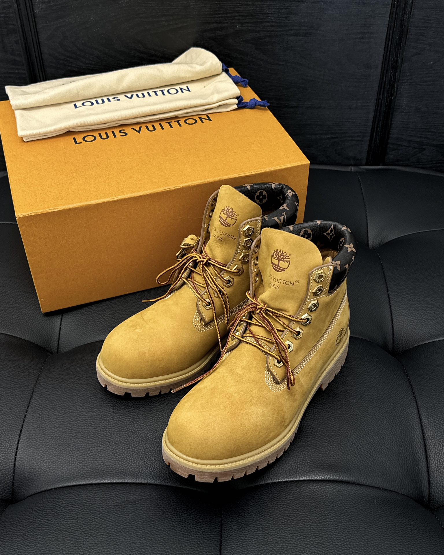 NIGO Louis Vuitton Men's And Women's Fall And Winter Old Flower Print Round Head Lace Up Embossed Waterproof Suede And Ankle Boots Martin Boots Shoes #nigo73648