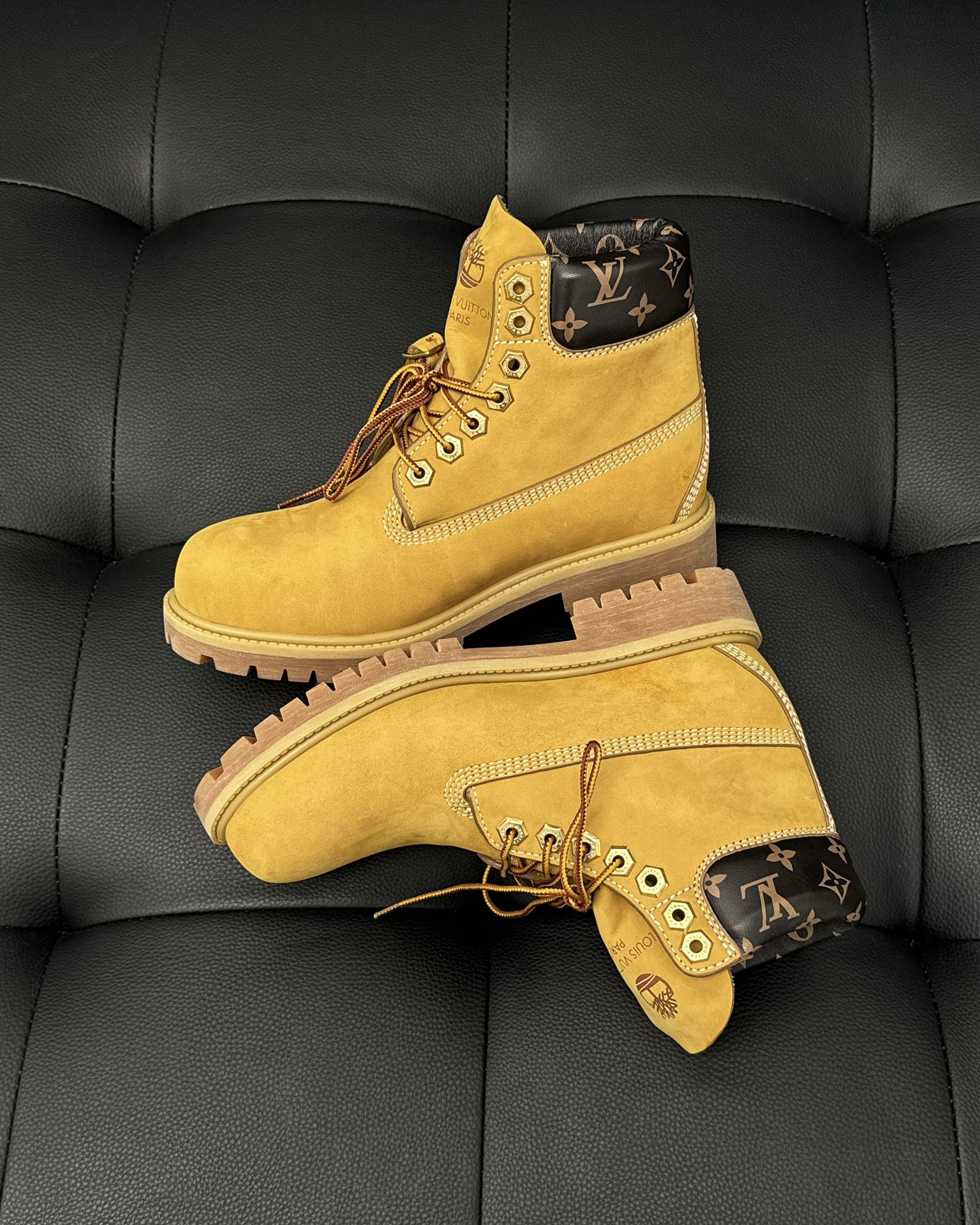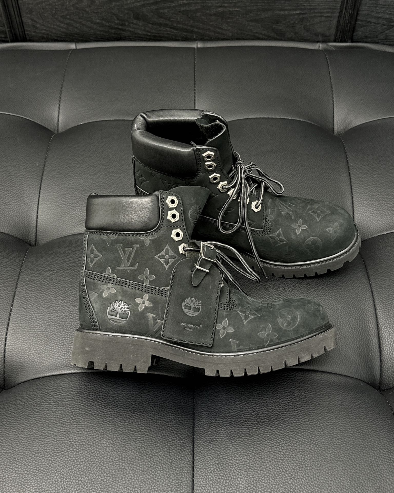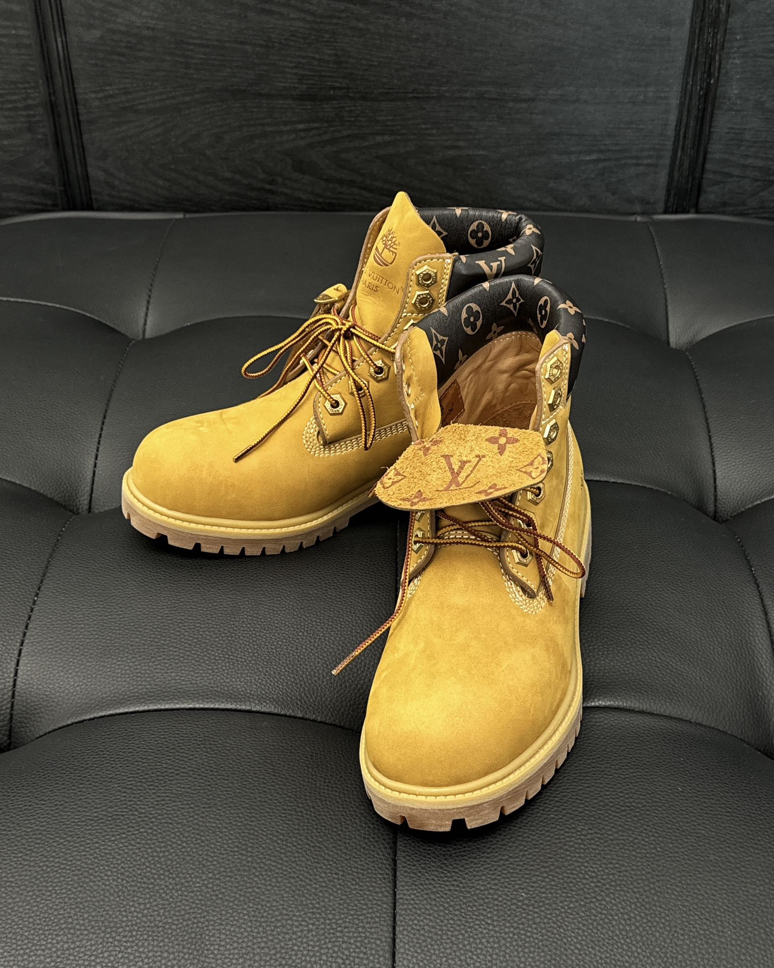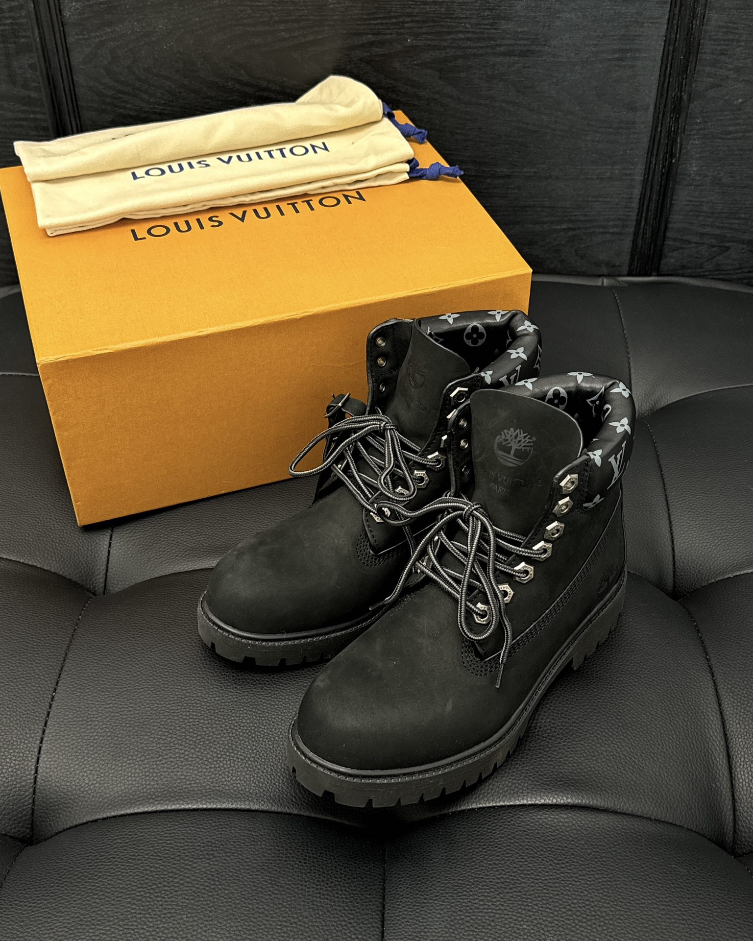 NIGO Louis Vuitton Men's And Women's Fall And Winter Old Flower Print Round Head Lace Up Embossed Waterproof Suede And Ankle Boots Martin Boots Shoes #nigo73648