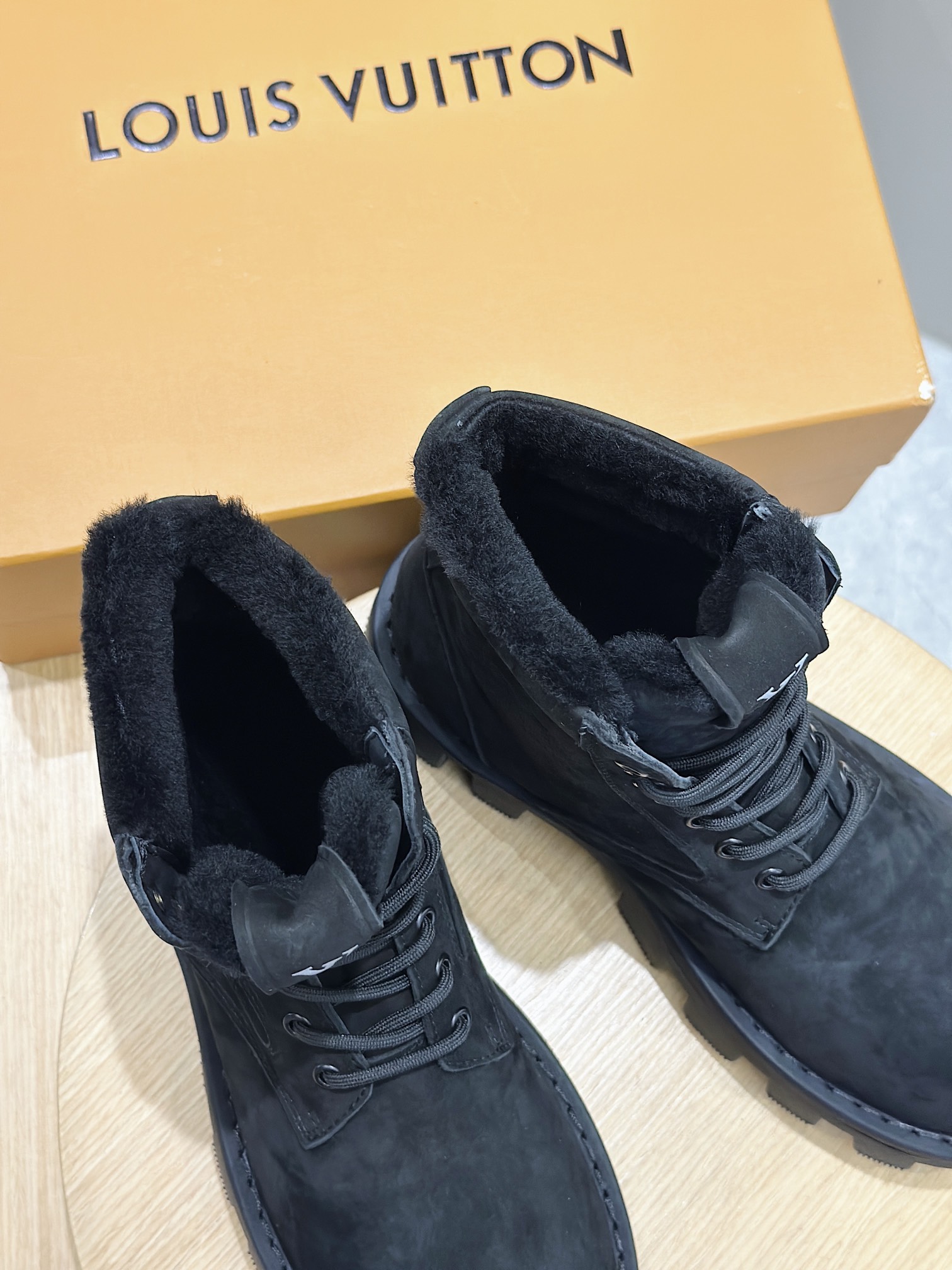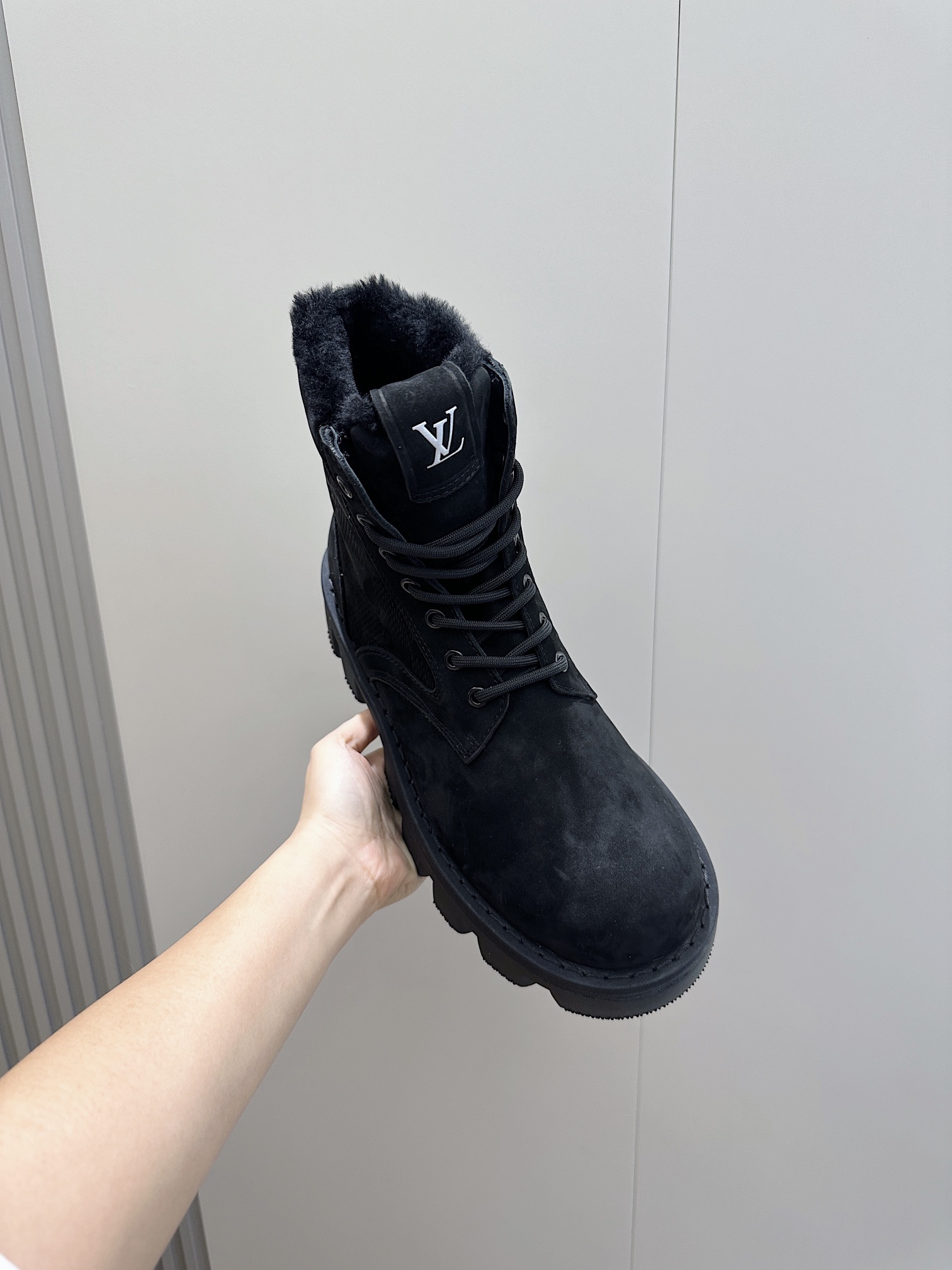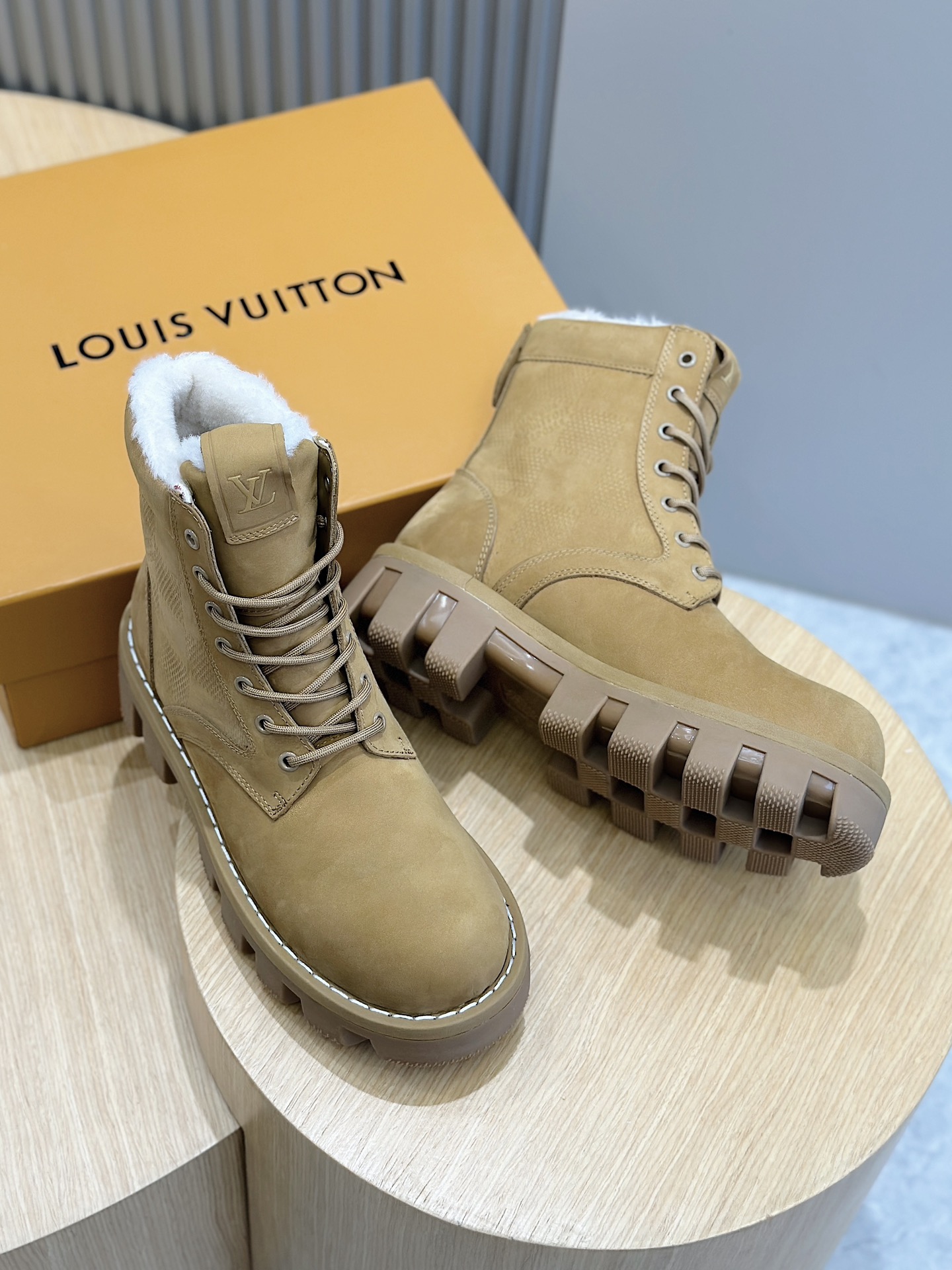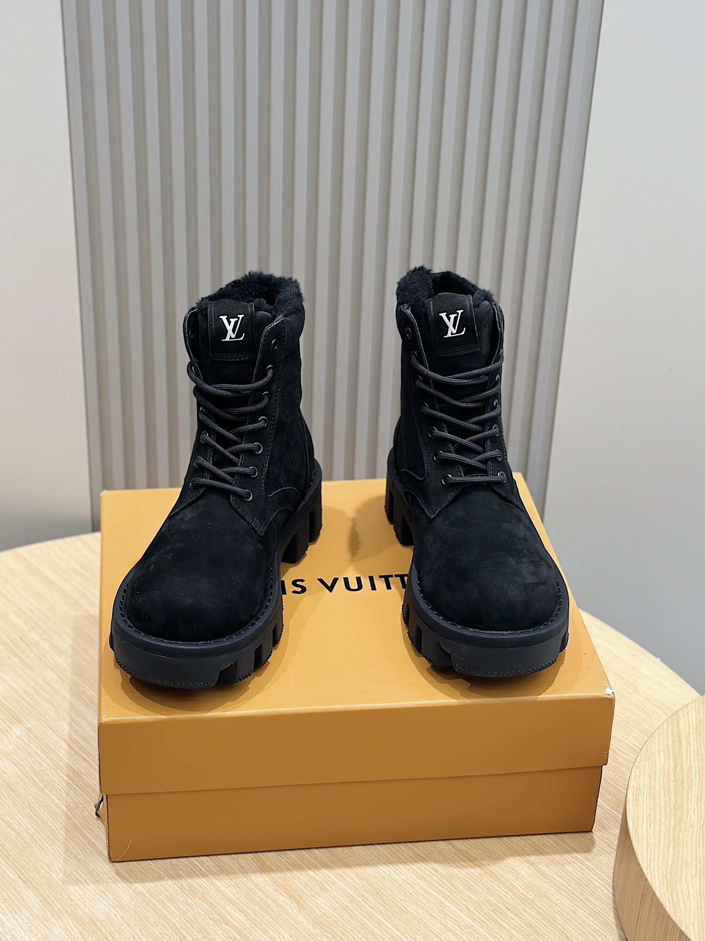 NIGO Louis Vuitton Men's Fall And Winter Suede Leather With Wool Lining Round Toe Lace-up Short Martin Boots Shoes #nigo74465