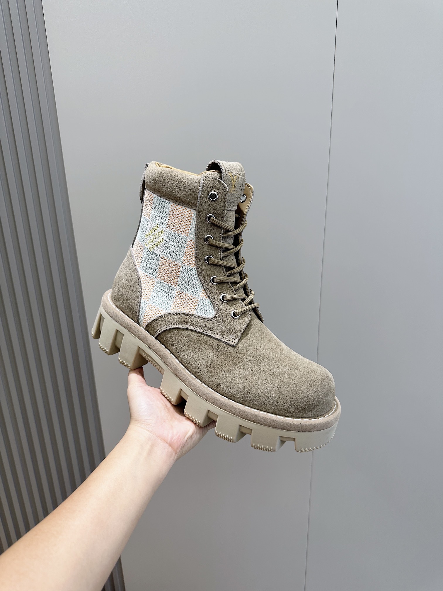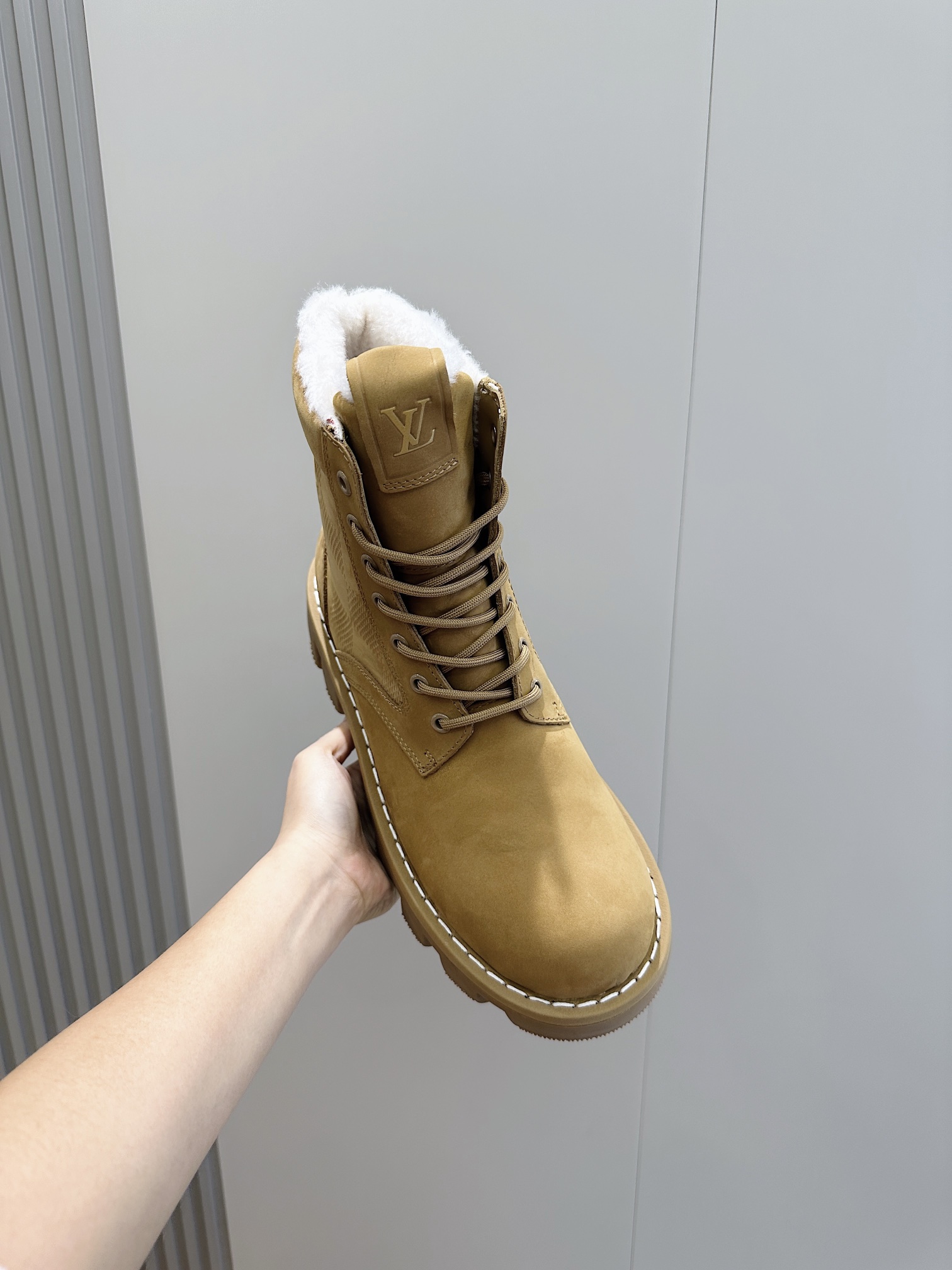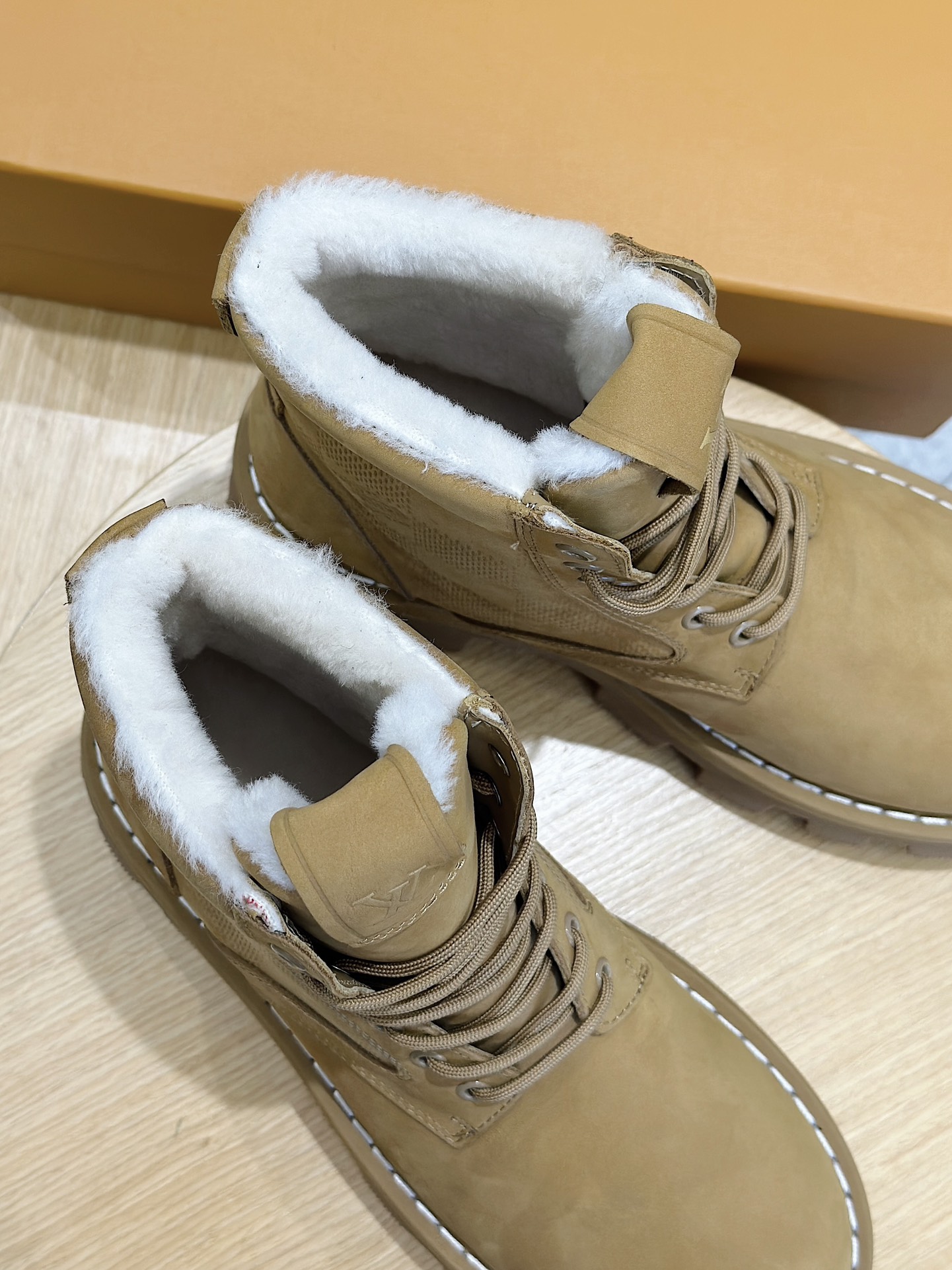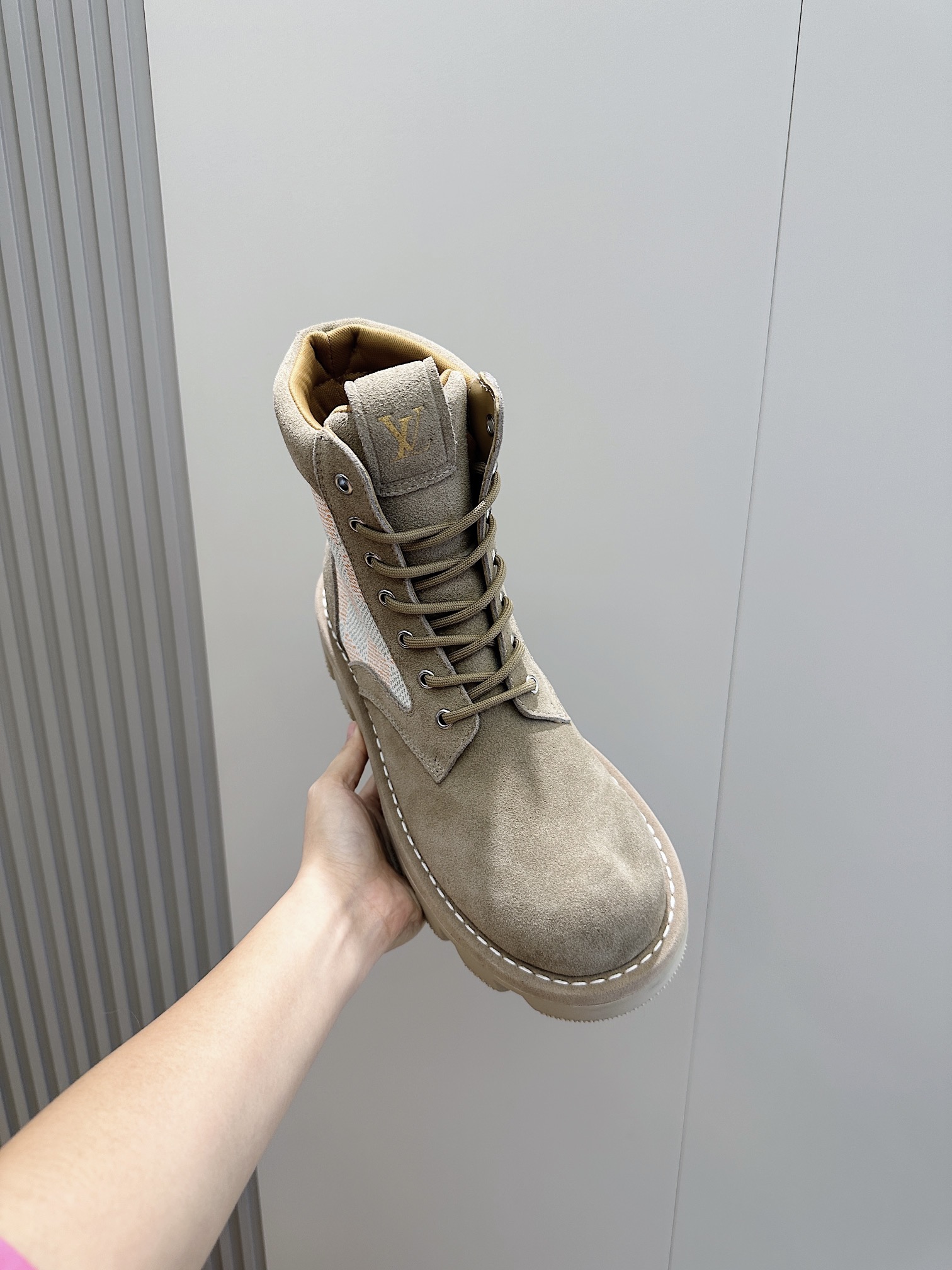 NIGO Louis Vuitton Men's Fall And Winter Suede Leather With Wool Lining Round Toe Lace-up Short Martin Boots Shoes #nigo74465