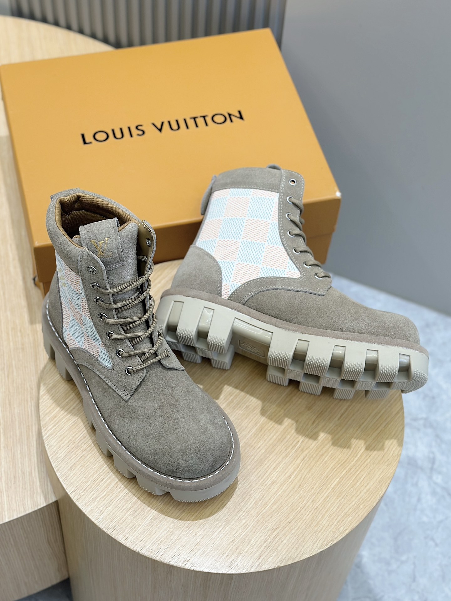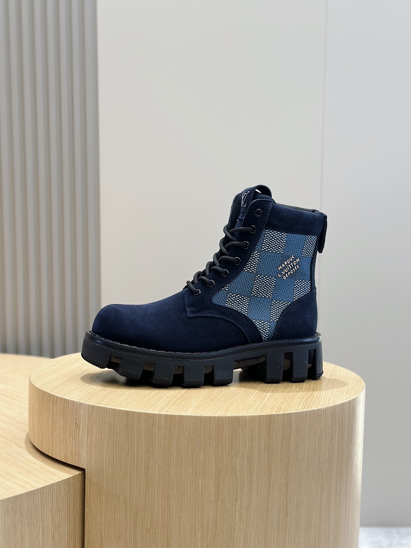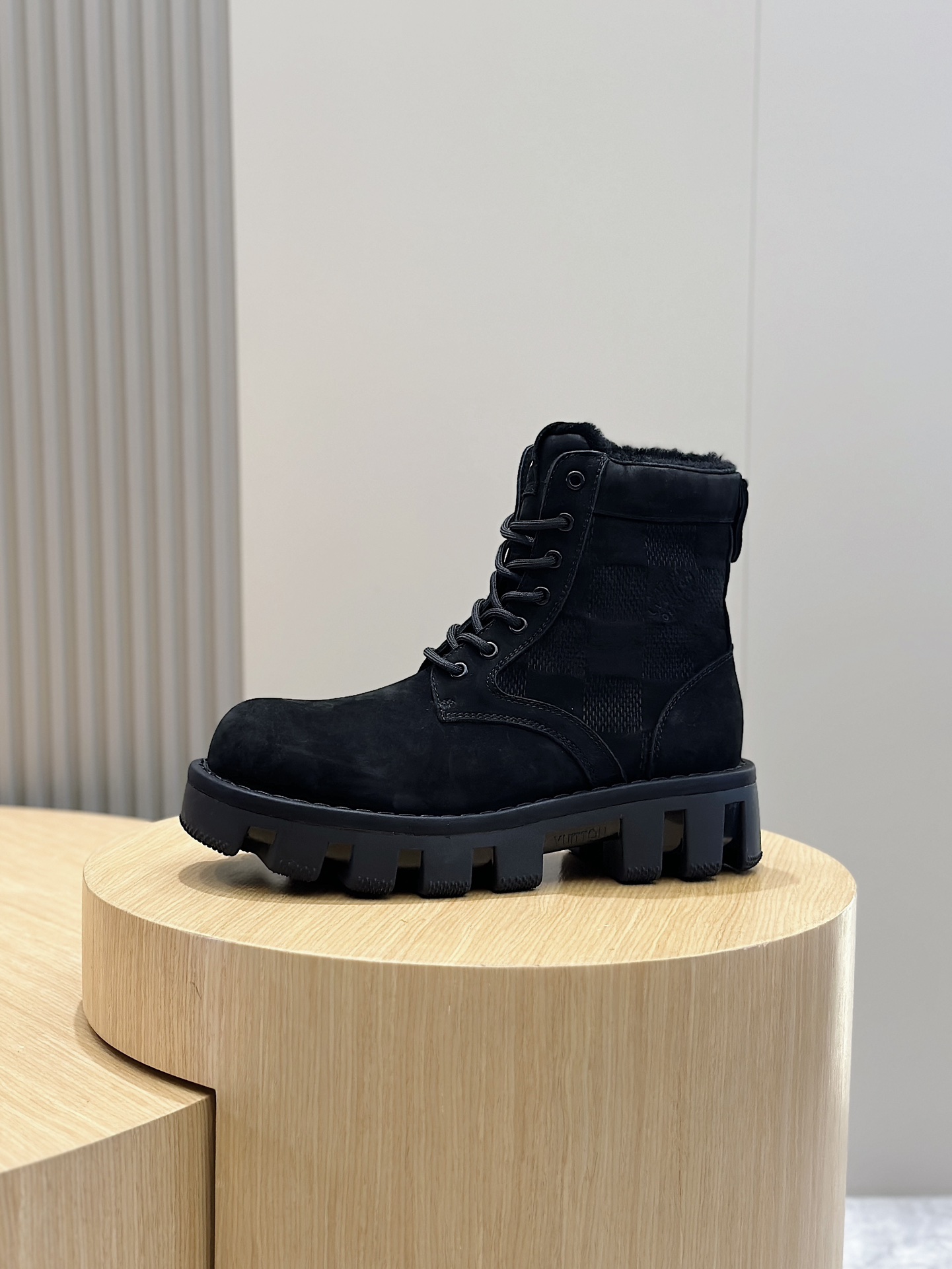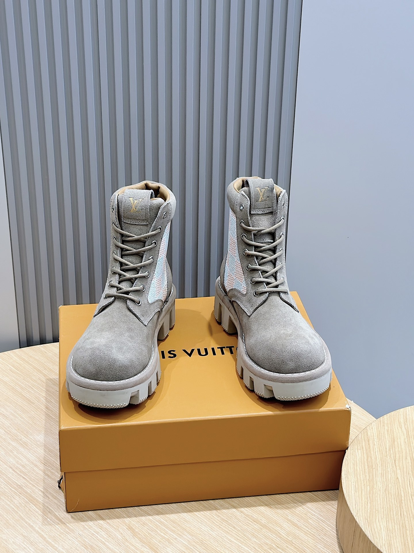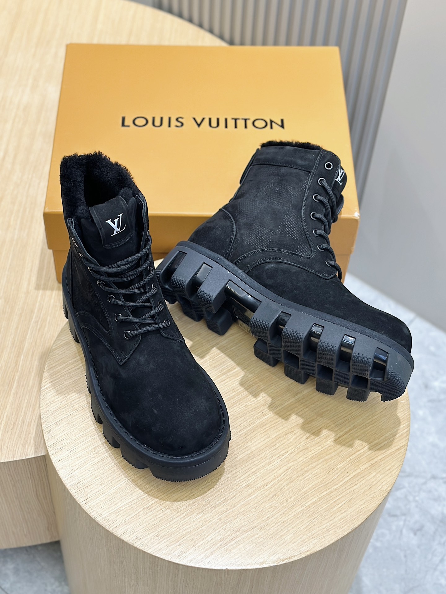 NIGO Louis Vuitton Men's Fall And Winter Suede Leather With Wool Lining Round Toe Lace-up Short Martin Boots Shoes #nigo74465