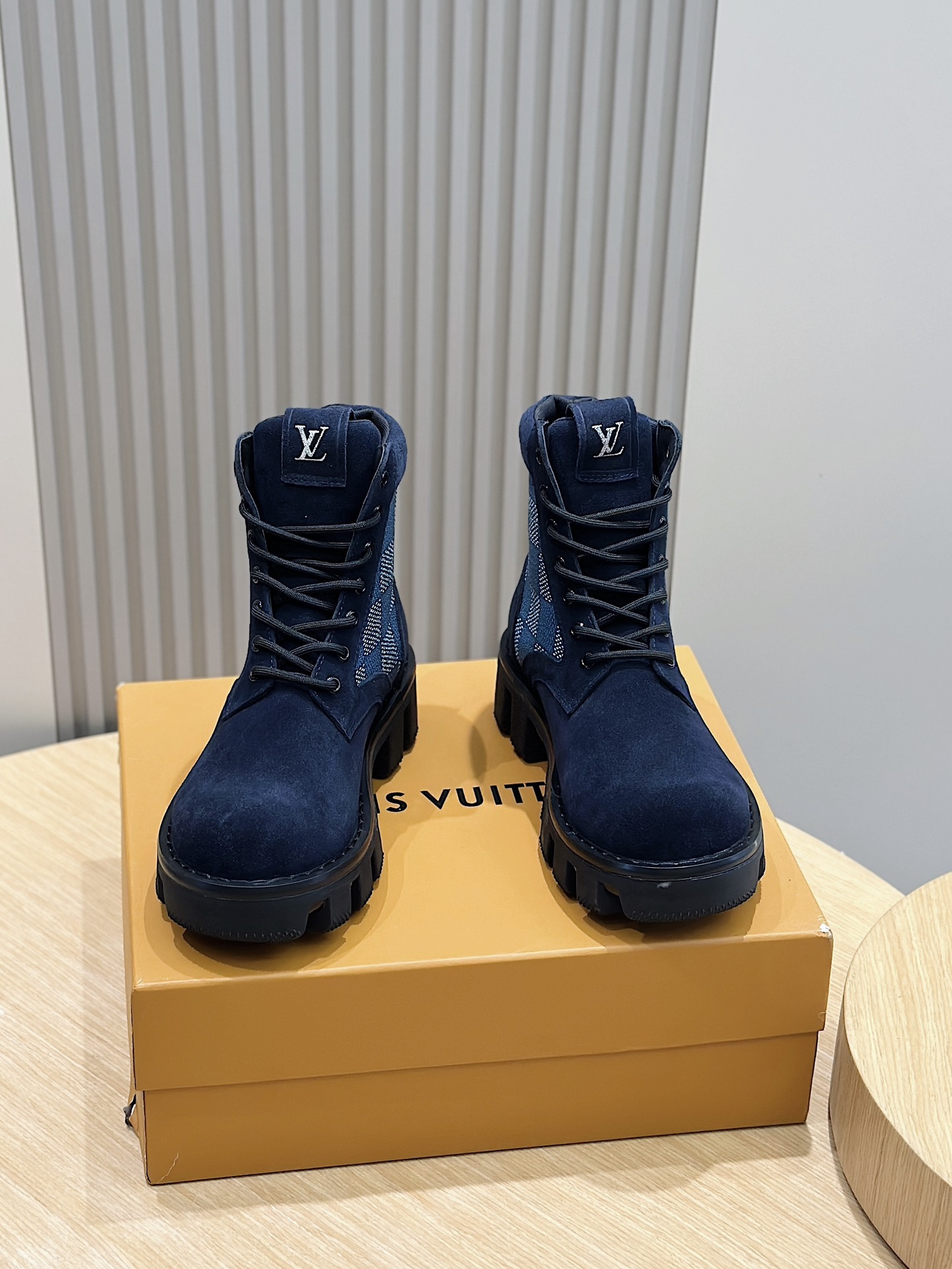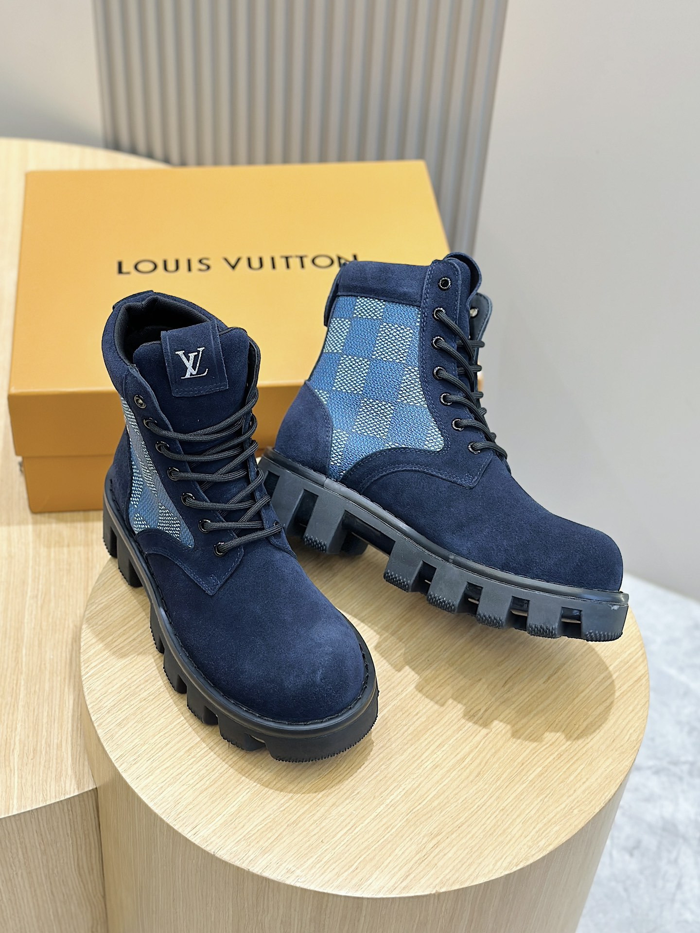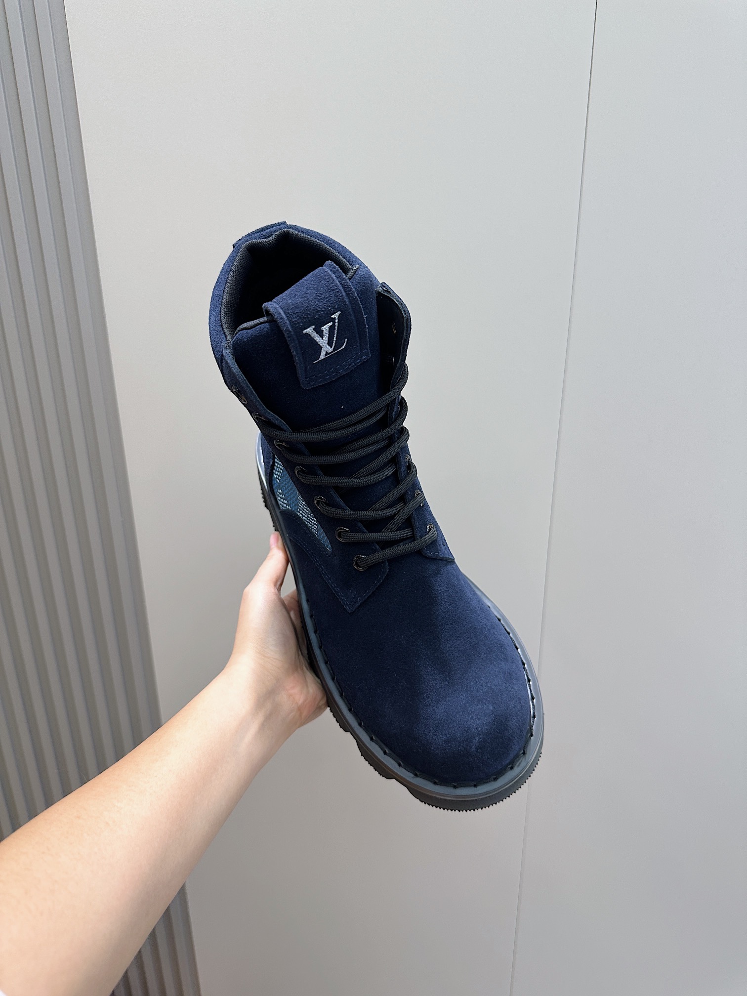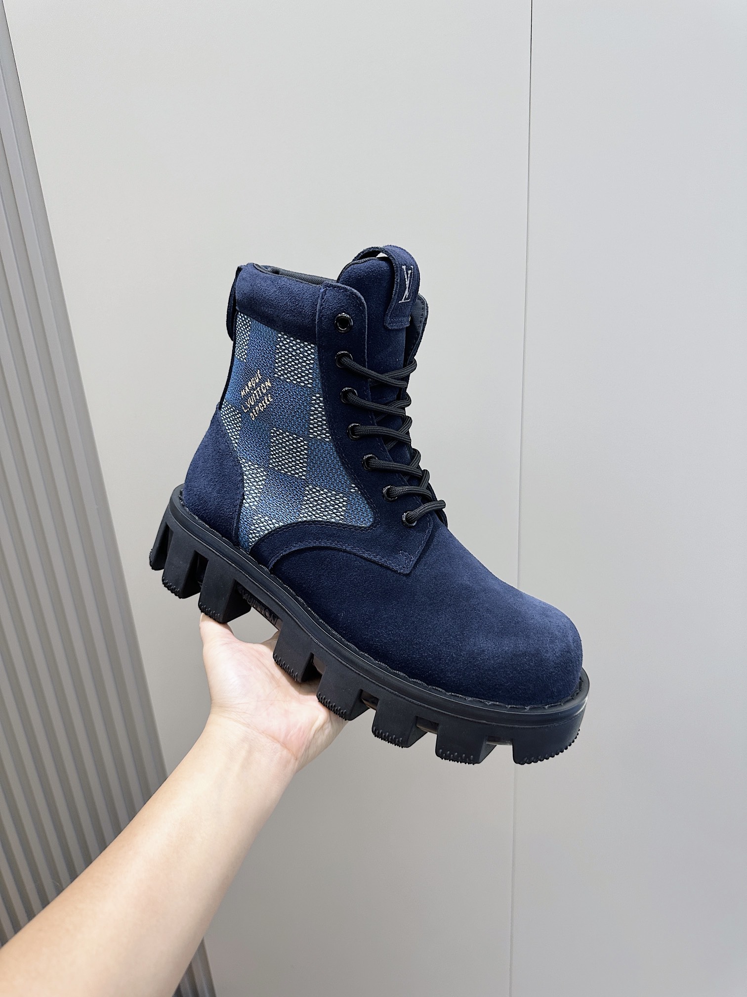 NIGO Louis Vuitton Men's Fall And Winter Suede Leather With Wool Lining Round Toe Lace-up Short Martin Boots Shoes #nigo74465