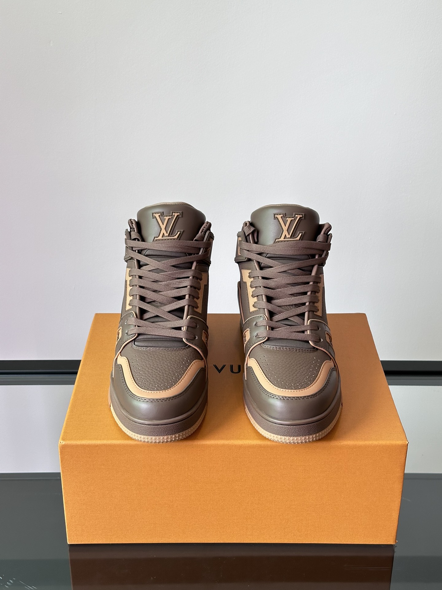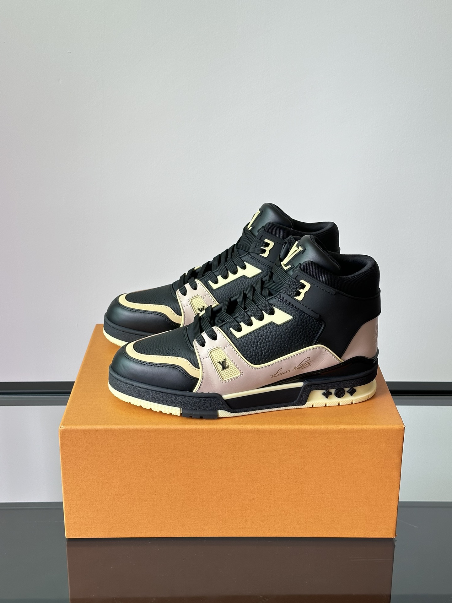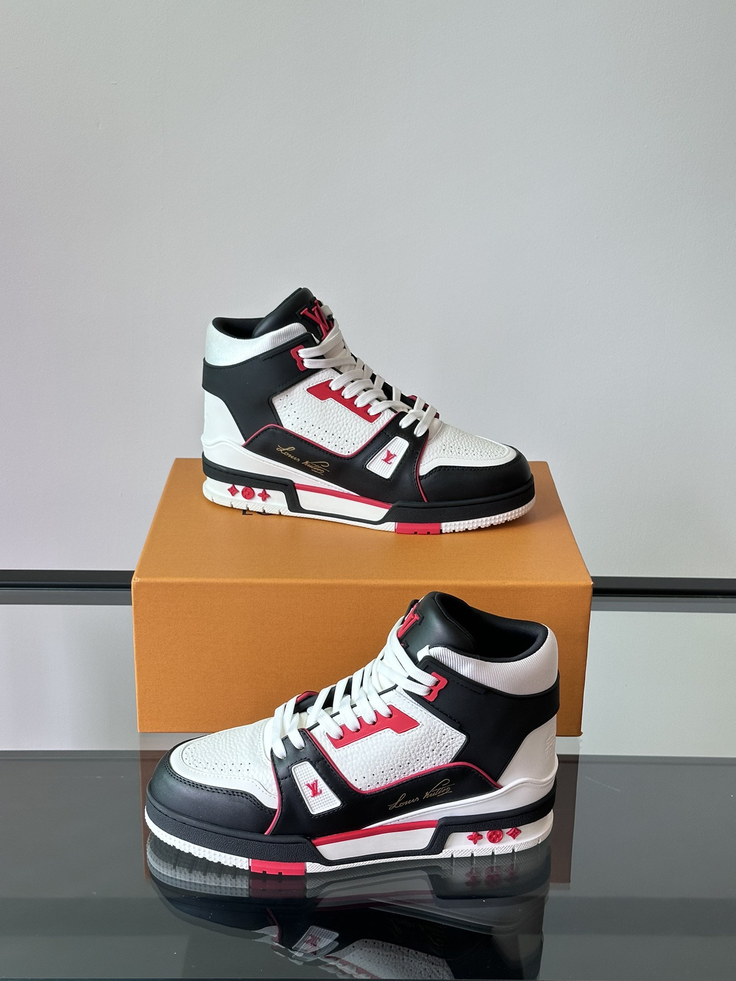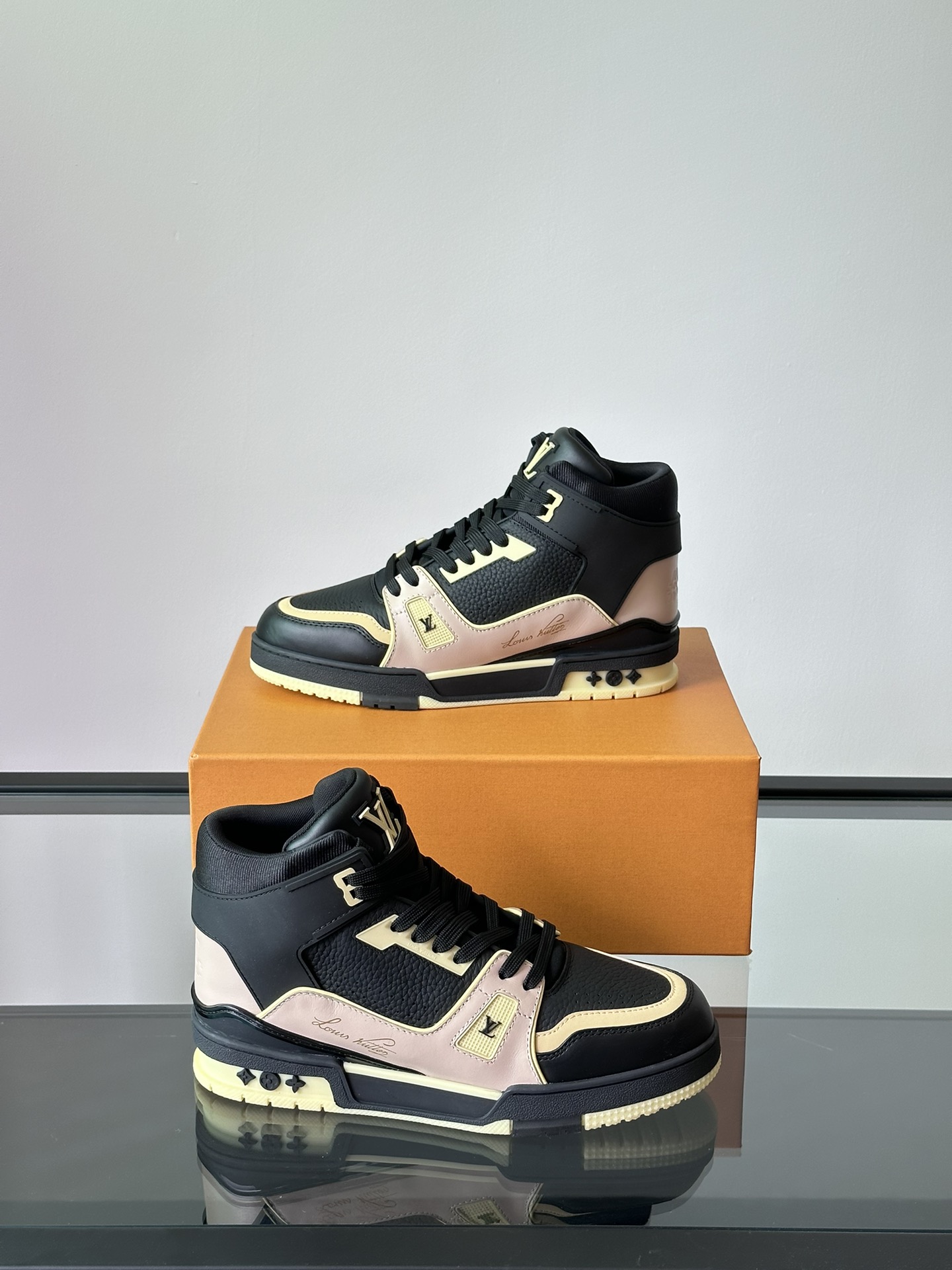 NIGO Louis Vuitton Men's LV Trainer Sneakers Calf Leather Upper Hig Top Lace Up Fashion Board Shoes #nigo74324