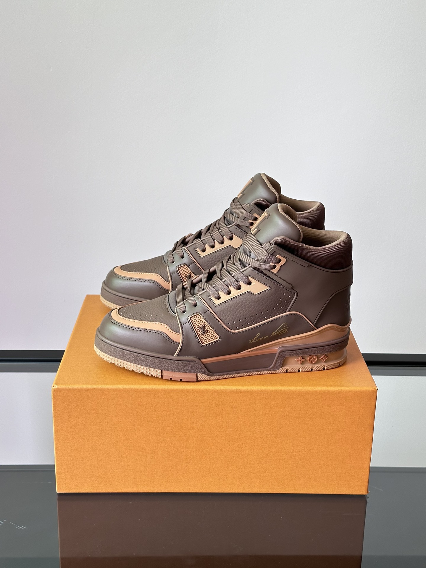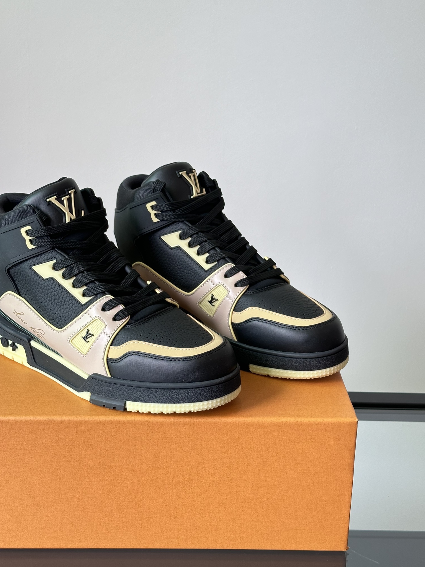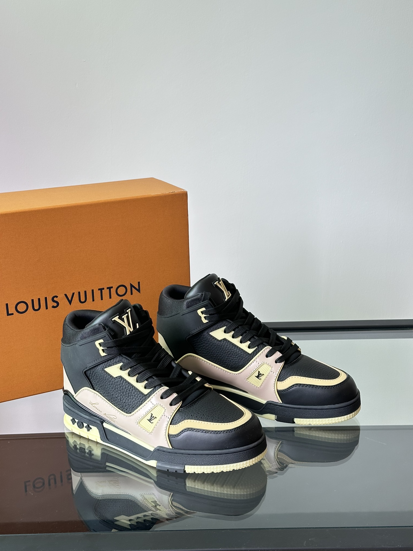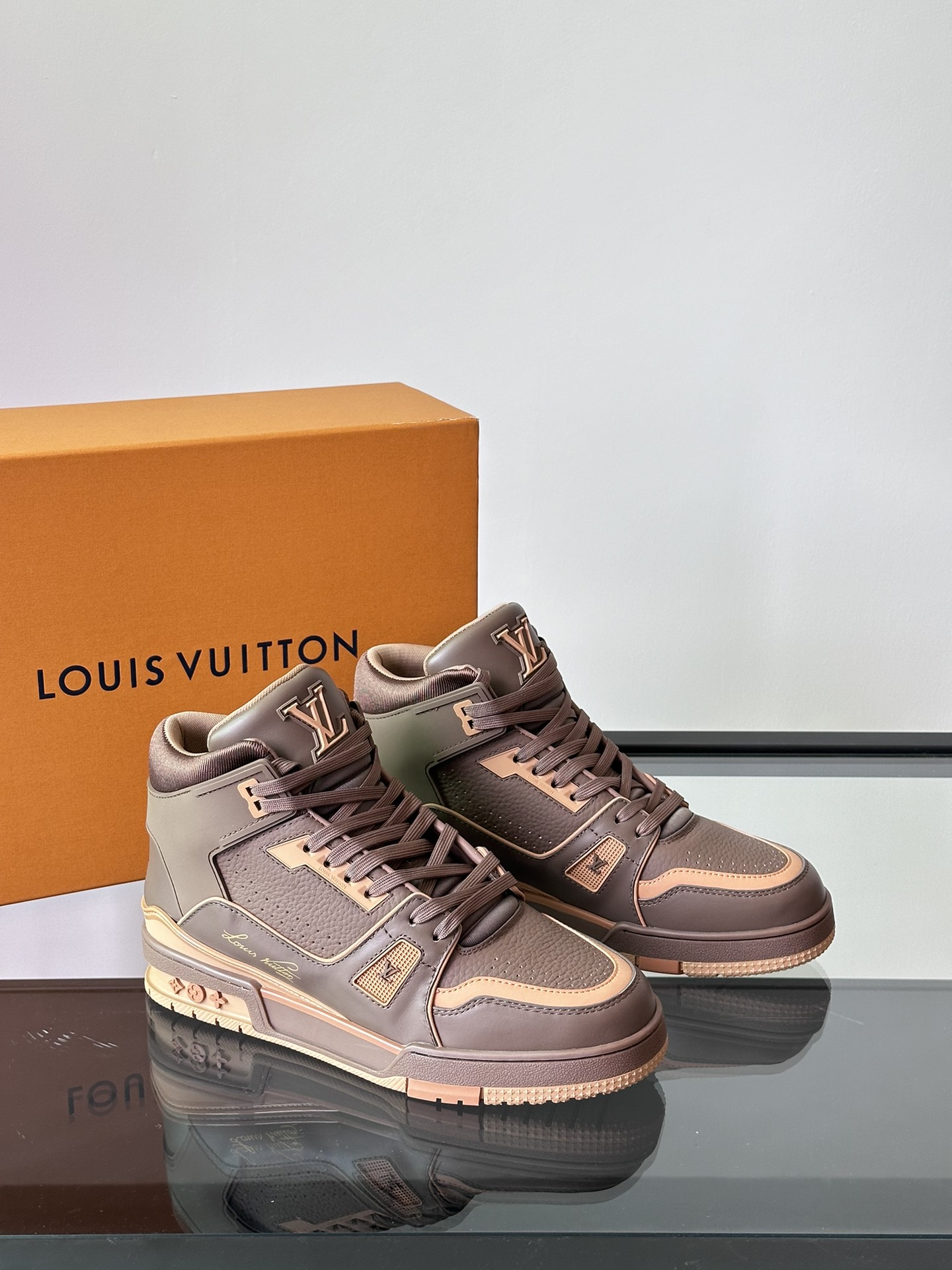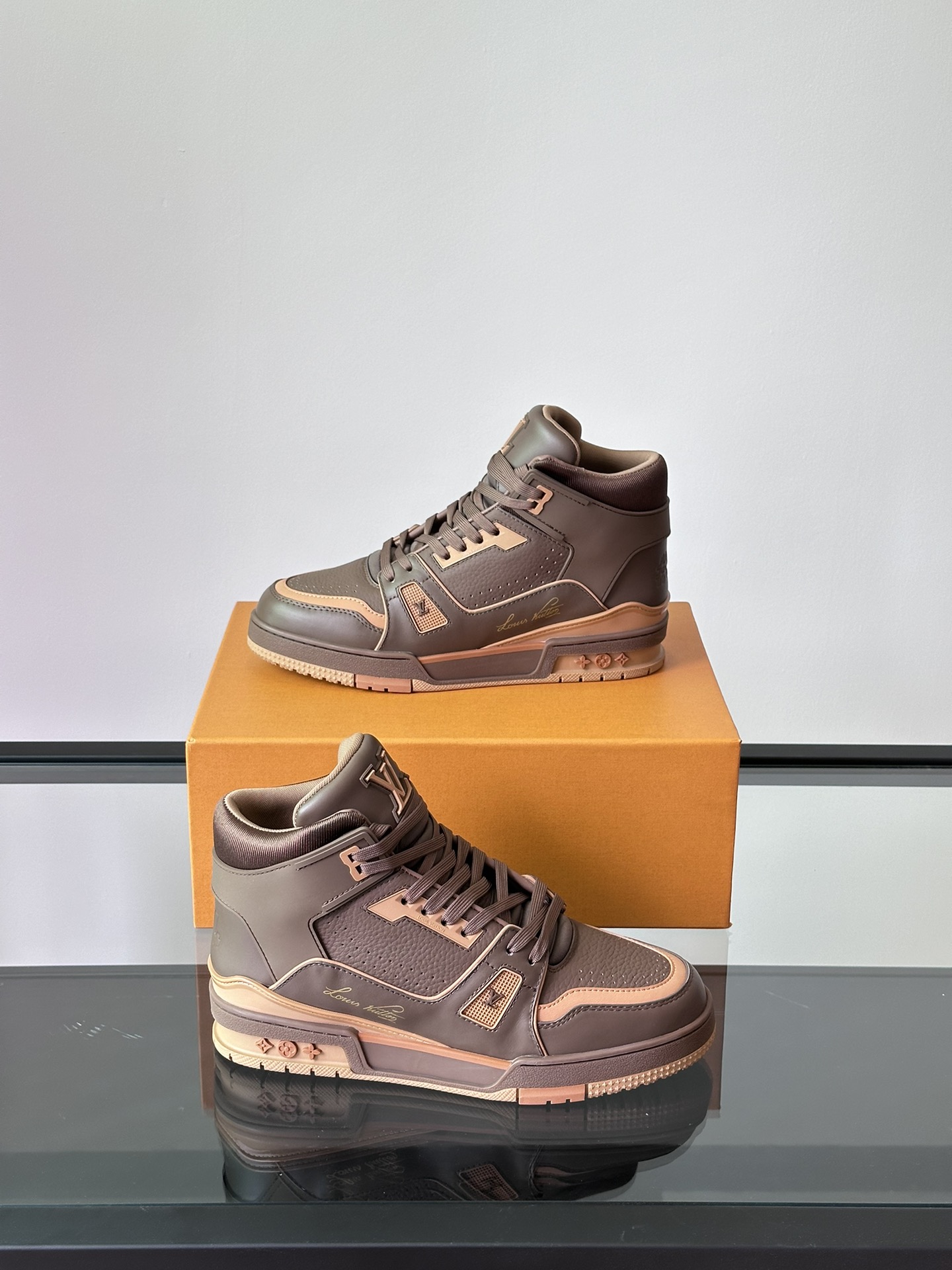 NIGO Louis Vuitton Men's LV Trainer Sneakers Calf Leather Upper Hig Top Lace Up Fashion Board Shoes #nigo74324