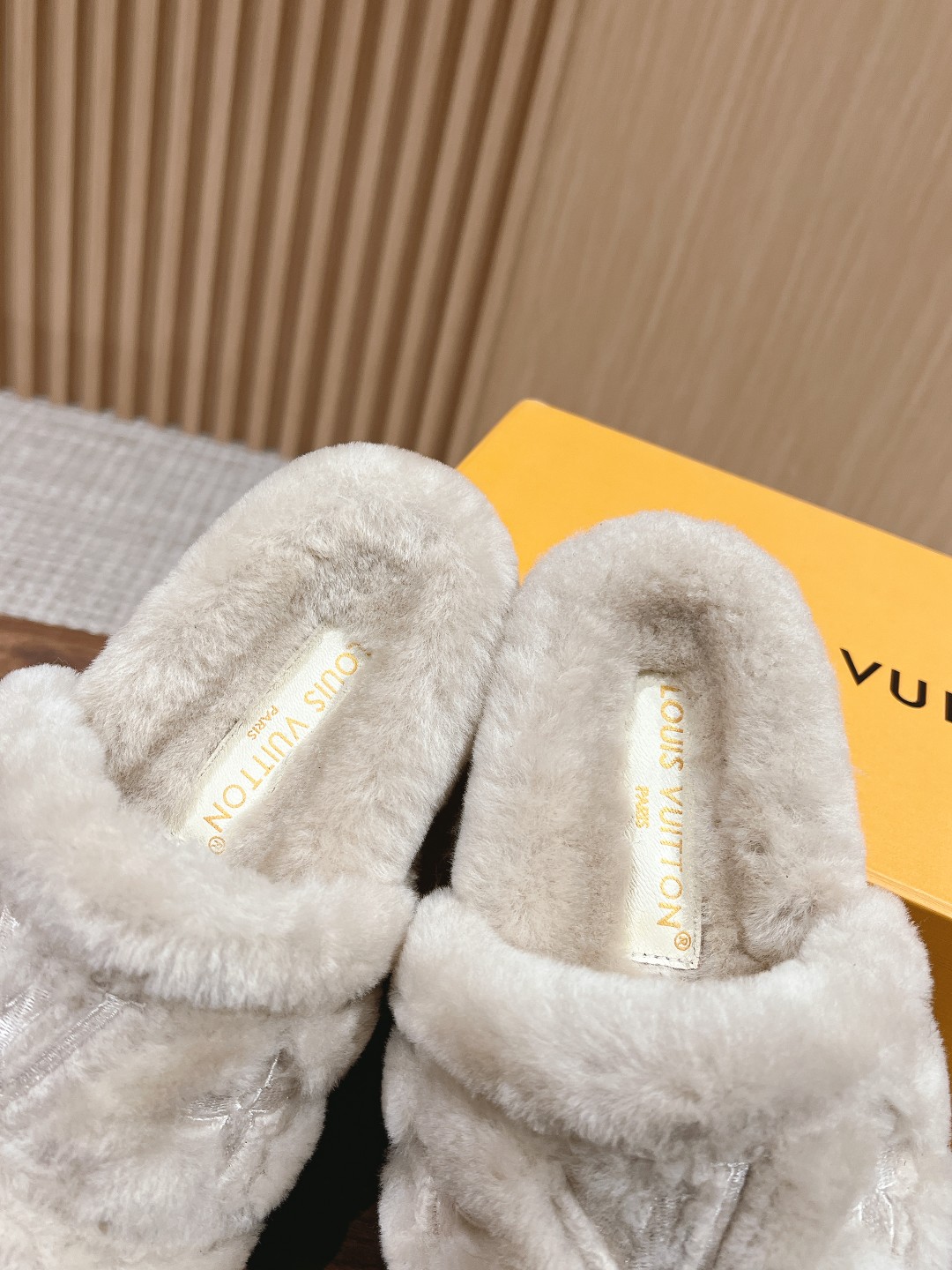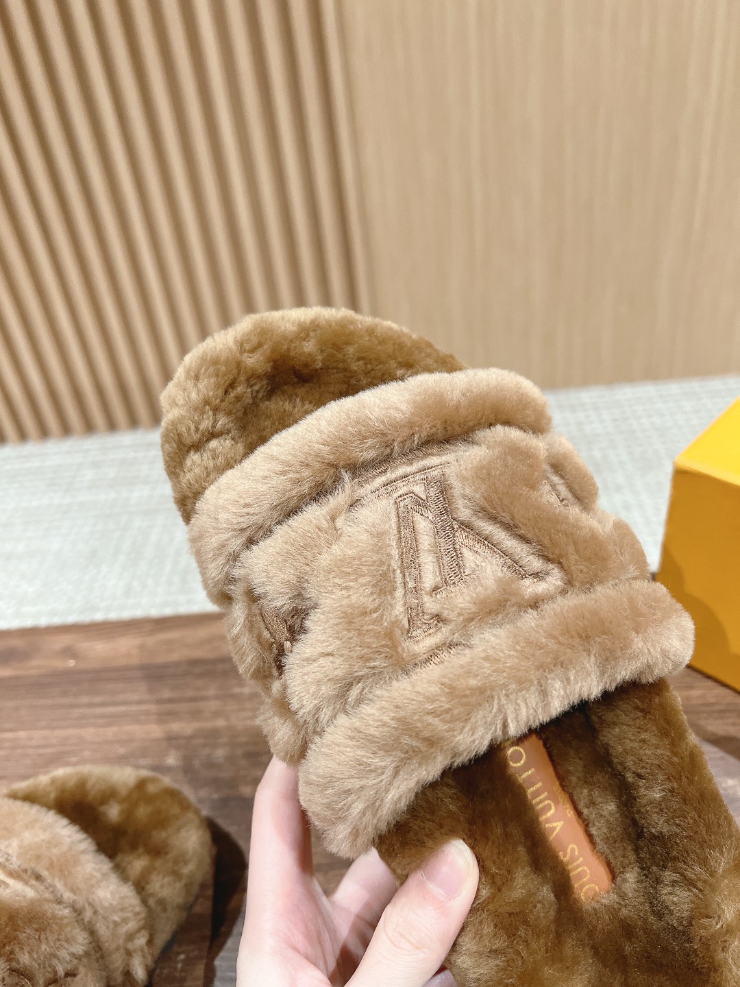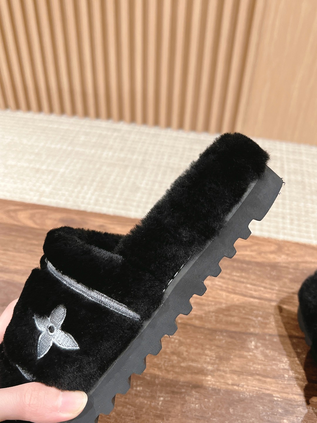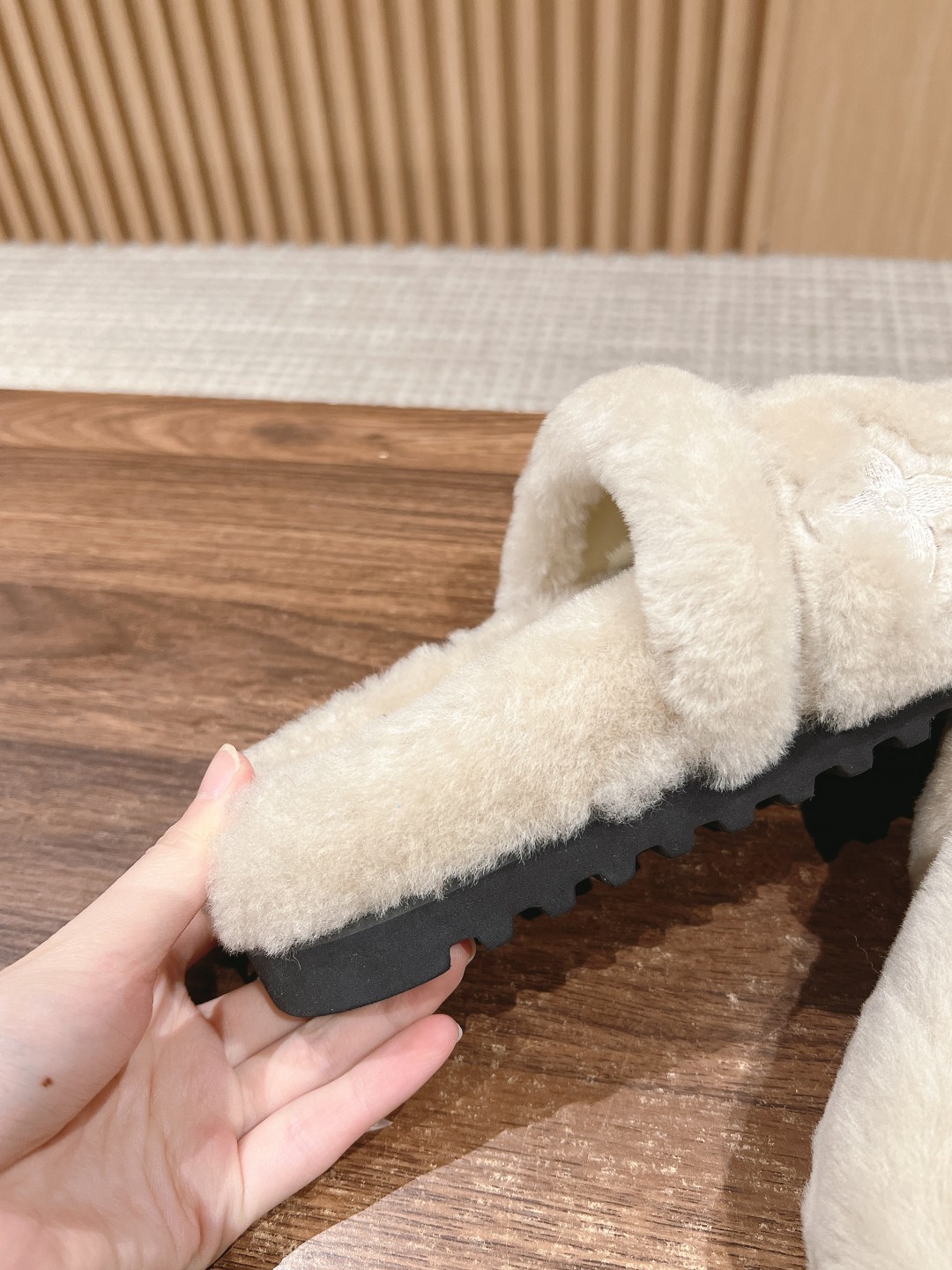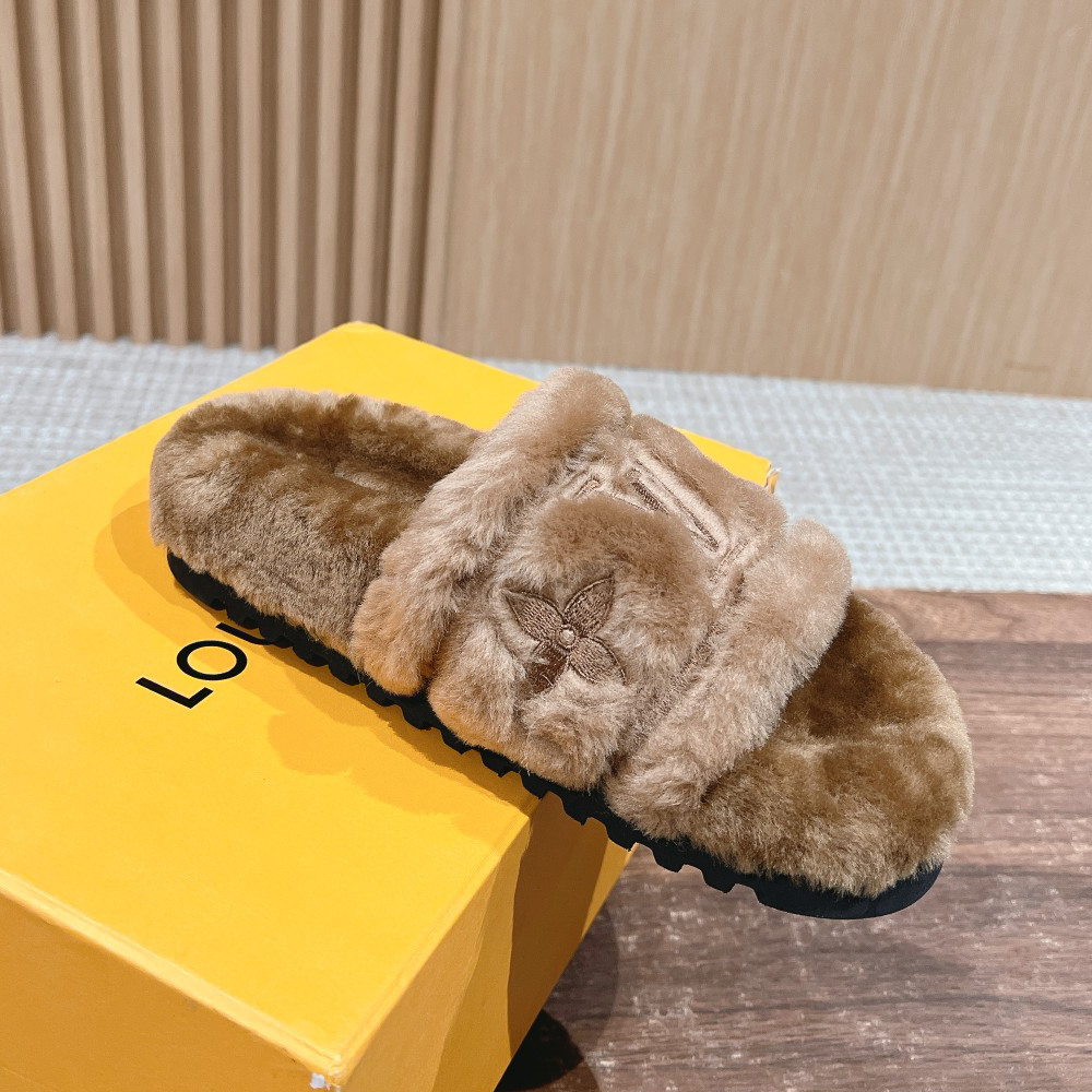 NIGO Louis Vuitton Women's Autumn and Winter Embroidered Letter Printed Wool Flat Sandal Mop Slippers Shoes #nigo74348