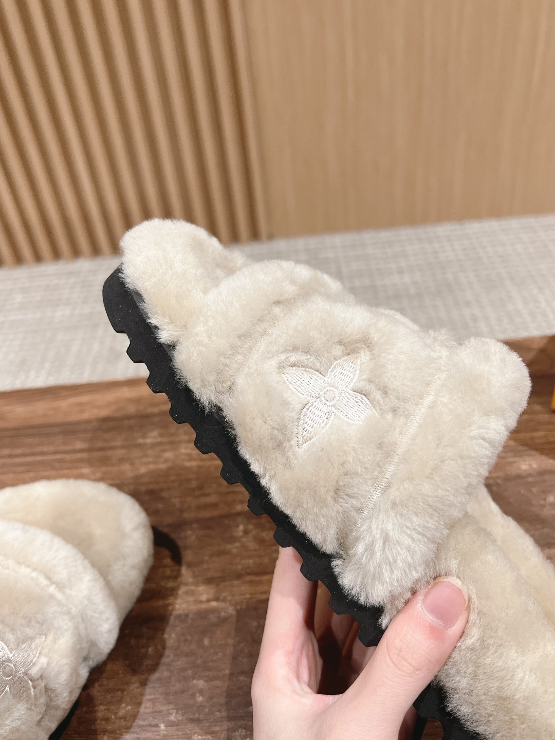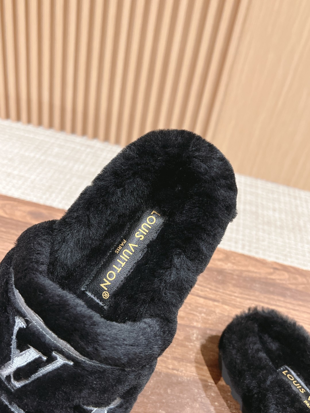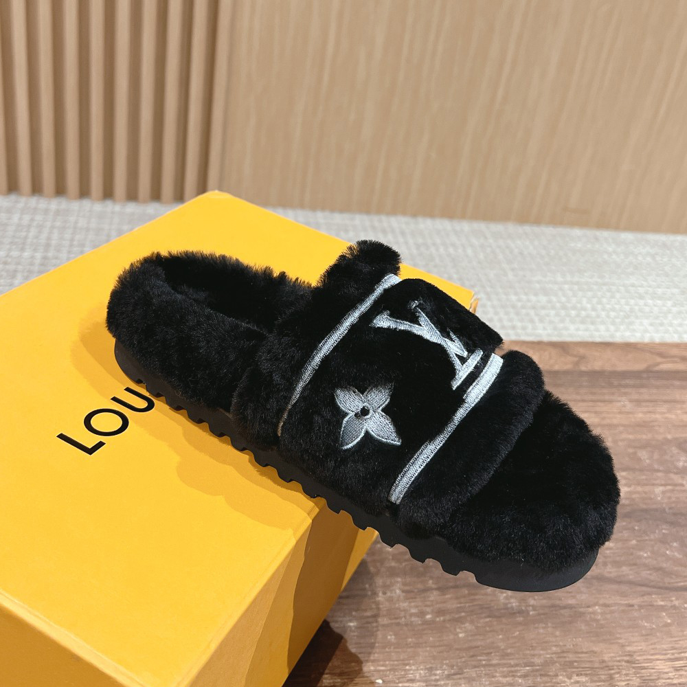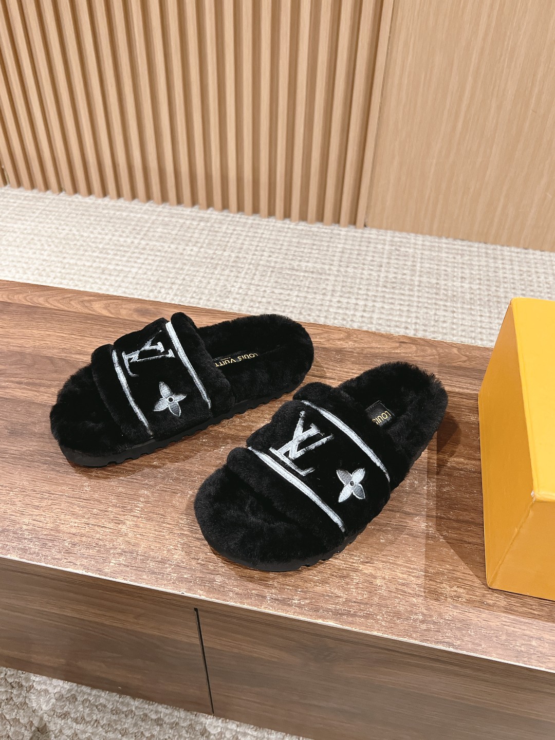 NIGO Louis Vuitton Women's Autumn and Winter Embroidered Letter Printed Wool Flat Sandal Mop Slippers Shoes #nigo74348