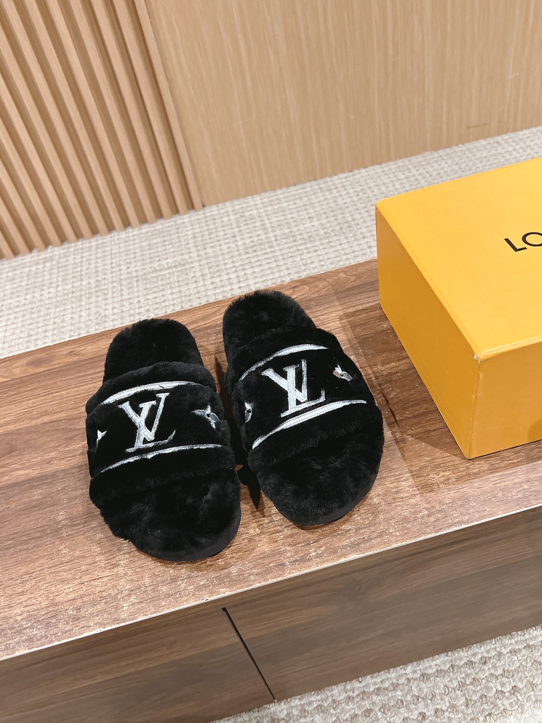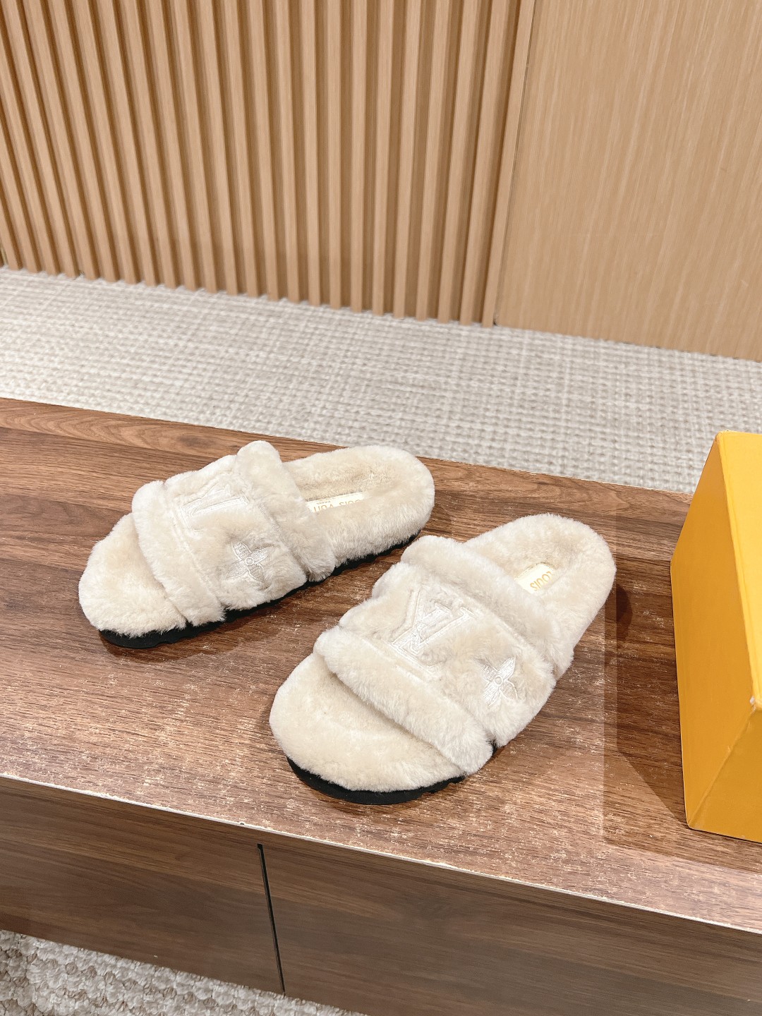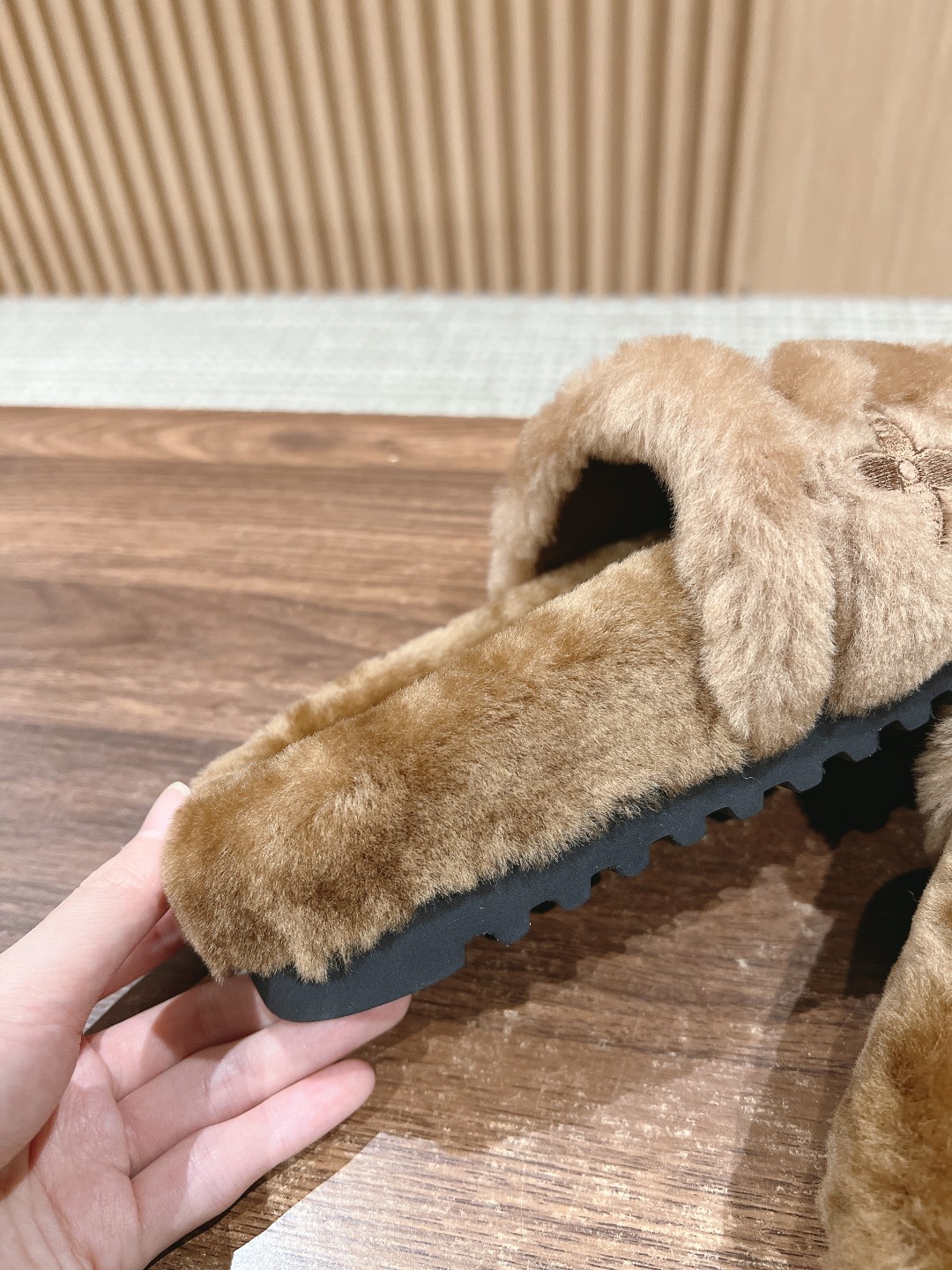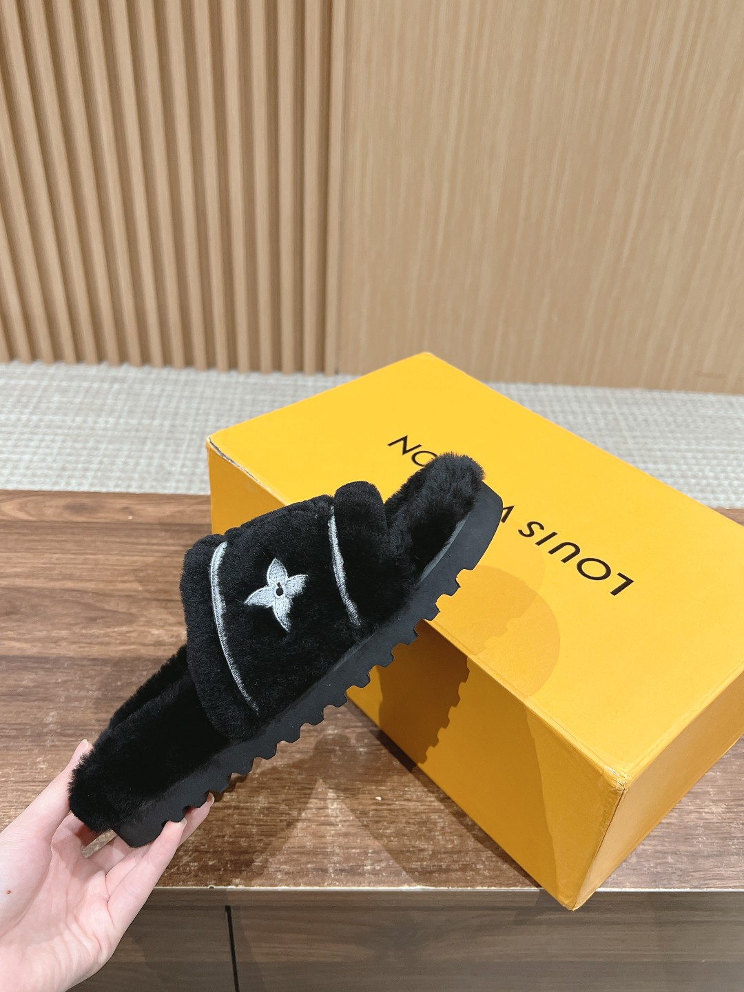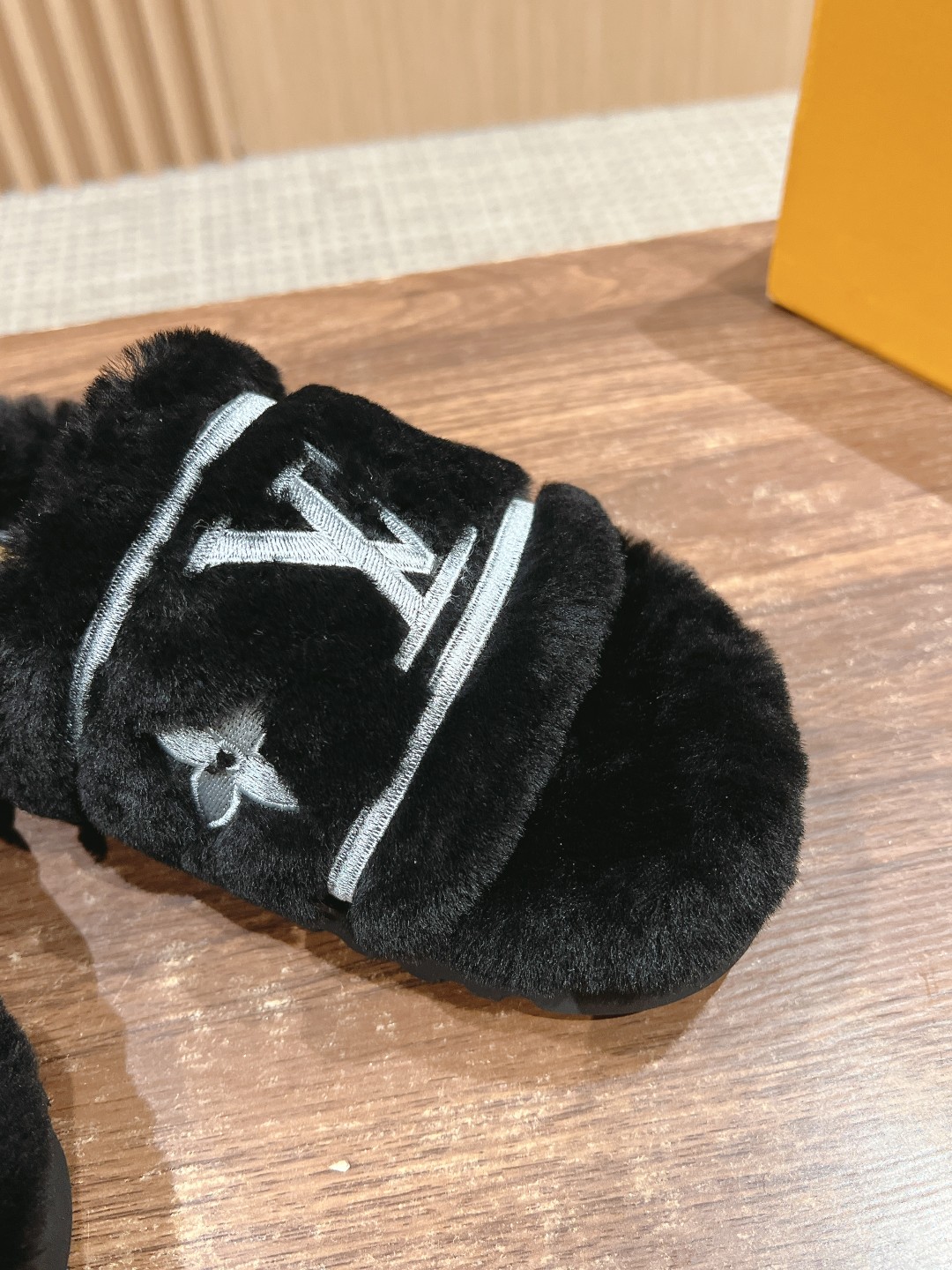 NIGO Louis Vuitton Women's Autumn and Winter Embroidered Letter Printed Wool Flat Sandal Mop Slippers Shoes #nigo74348
