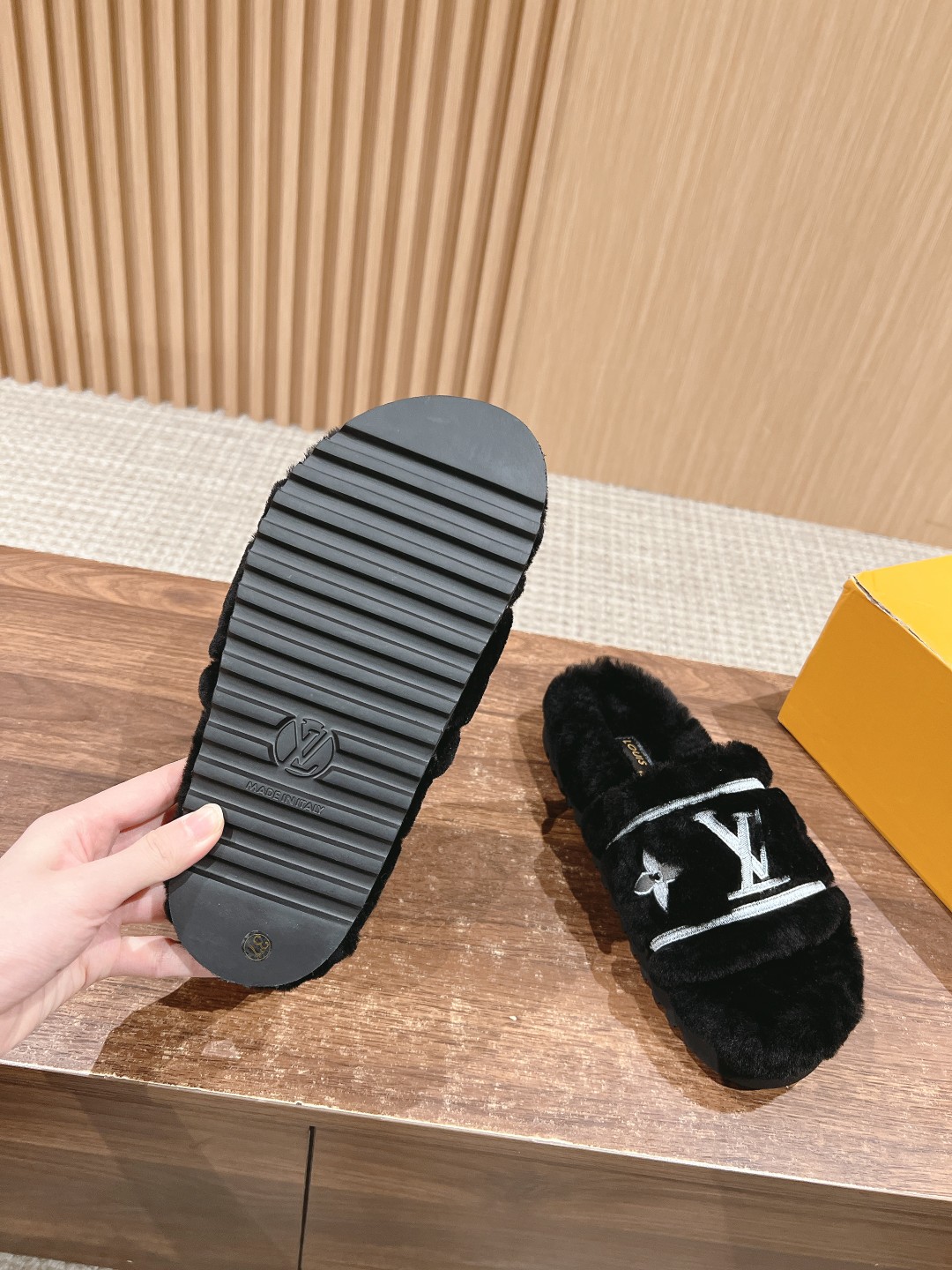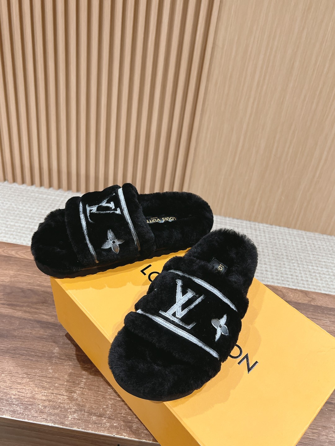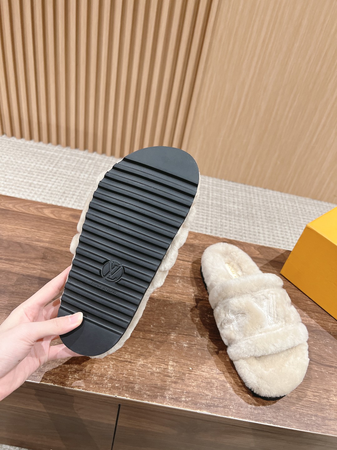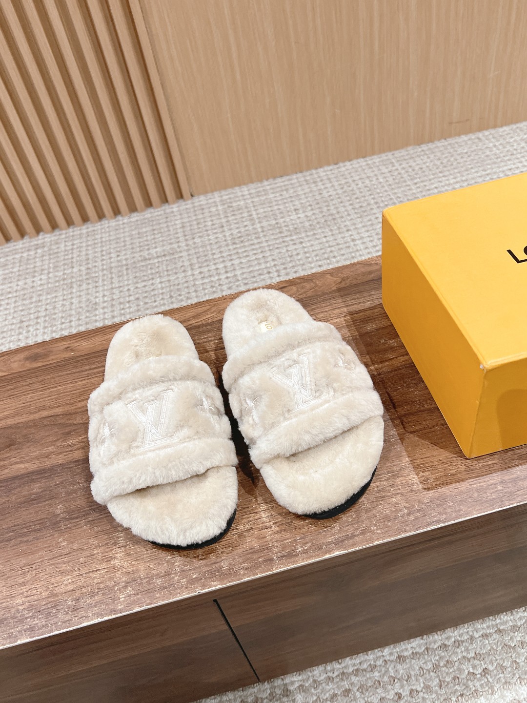 NIGO Louis Vuitton Women's Autumn and Winter Embroidered Letter Printed Wool Flat Sandal Mop Slippers Shoes #nigo74348