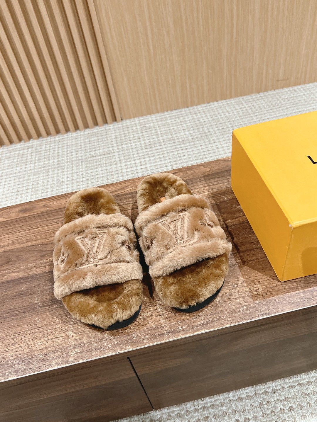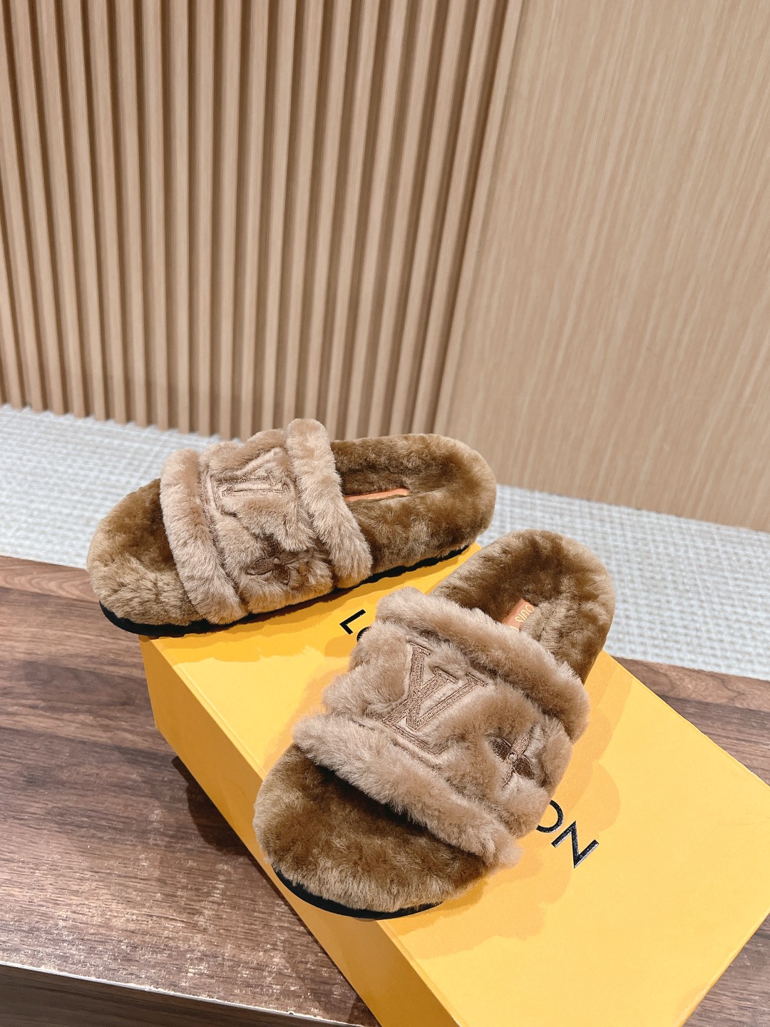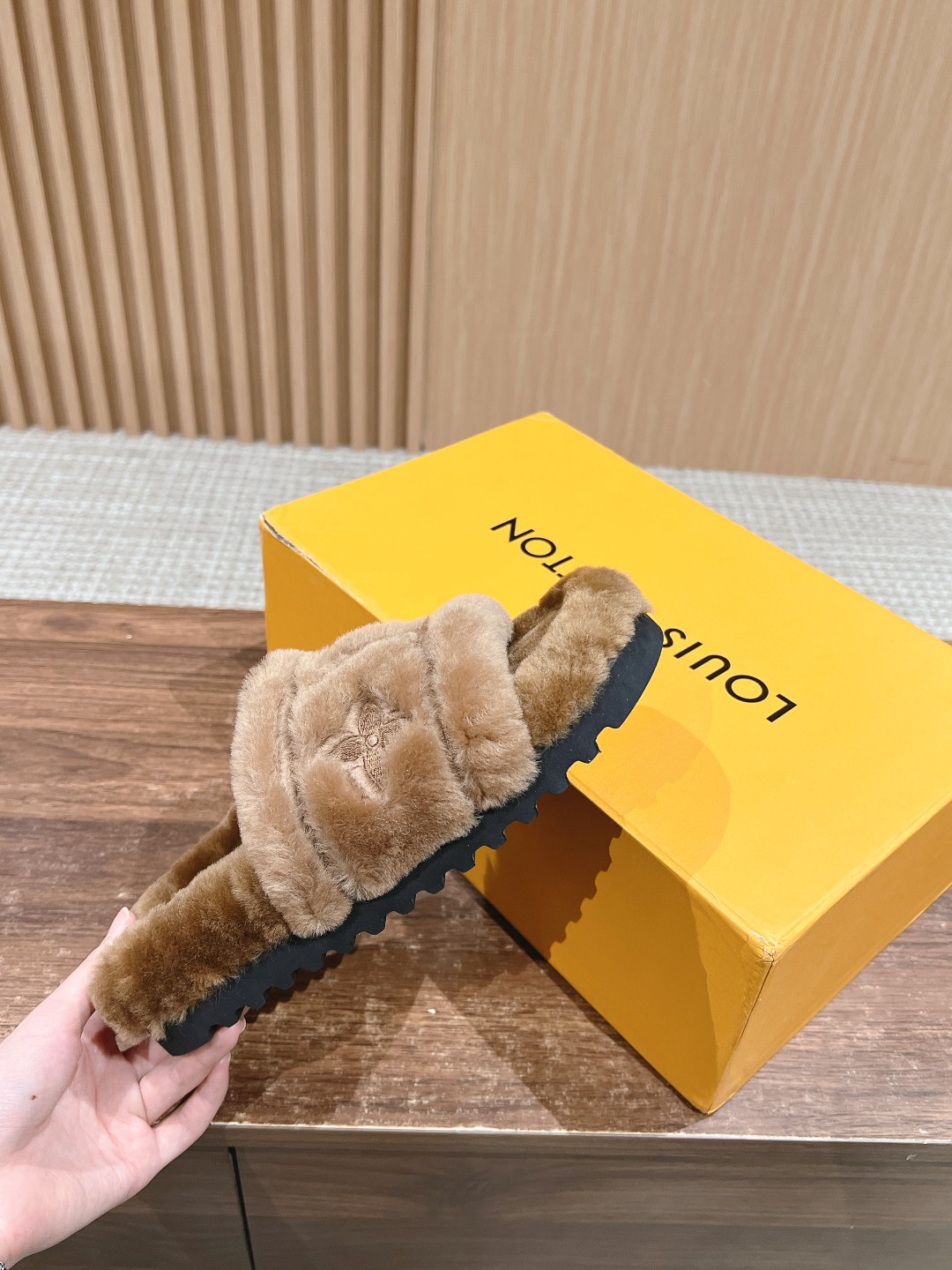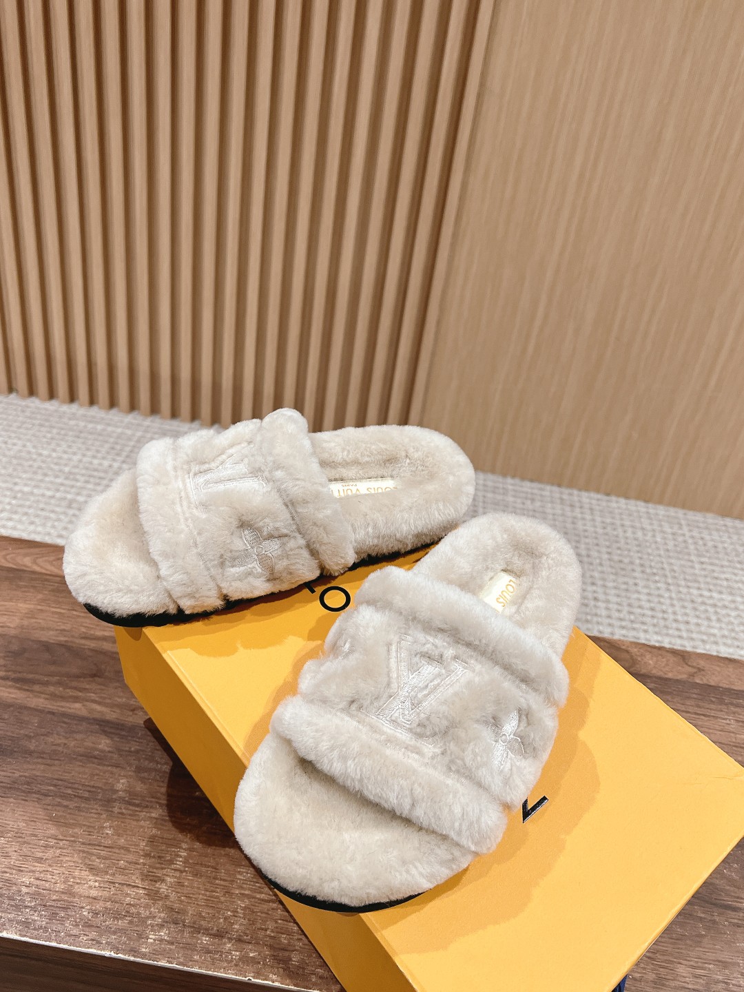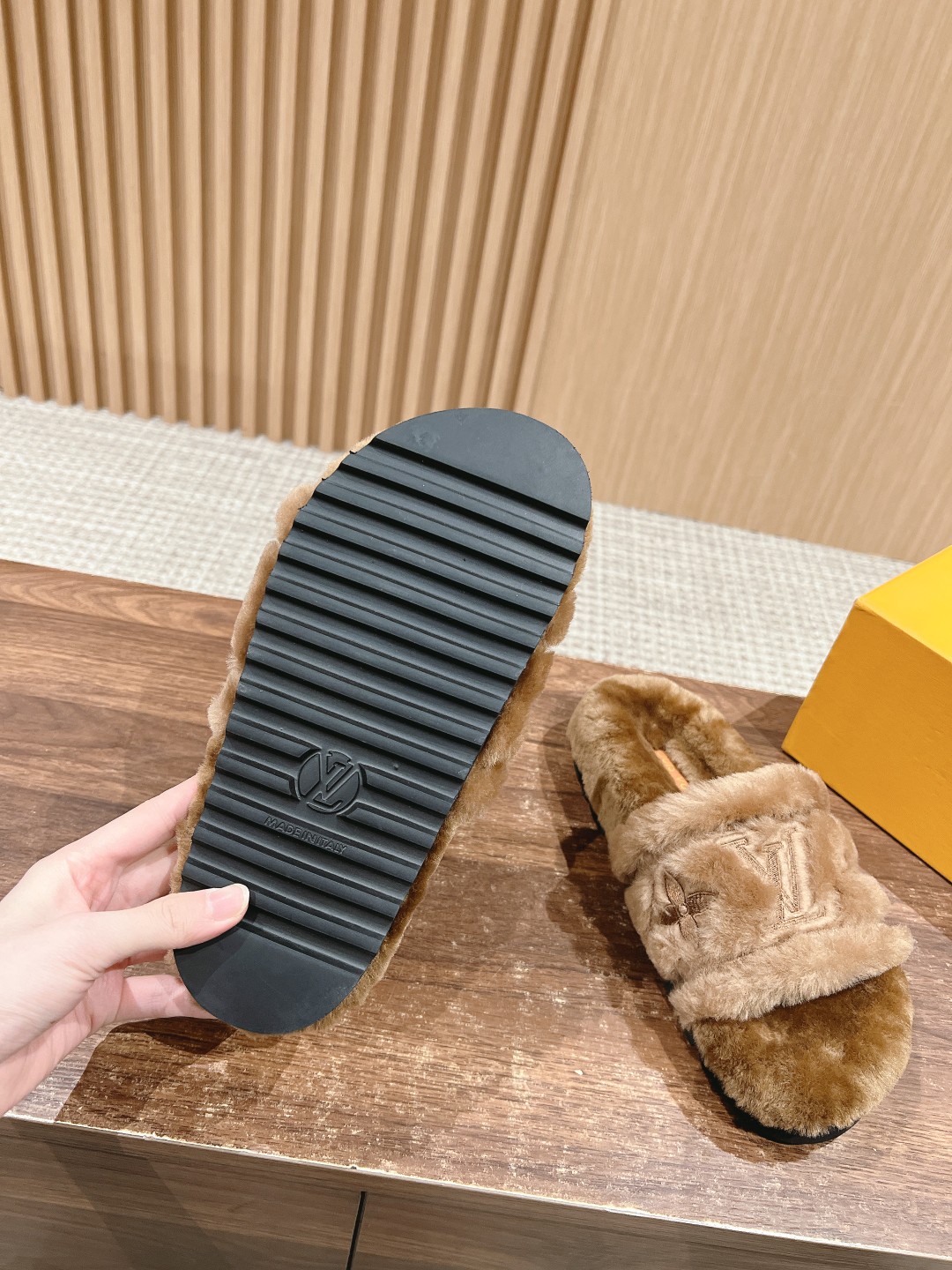 NIGO Louis Vuitton Women's Autumn and Winter Embroidered Letter Printed Wool Flat Sandal Mop Slippers Shoes #nigo74348