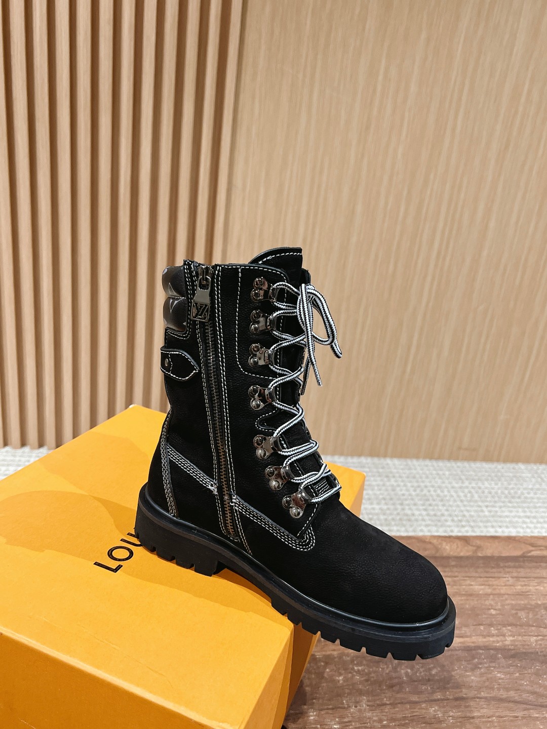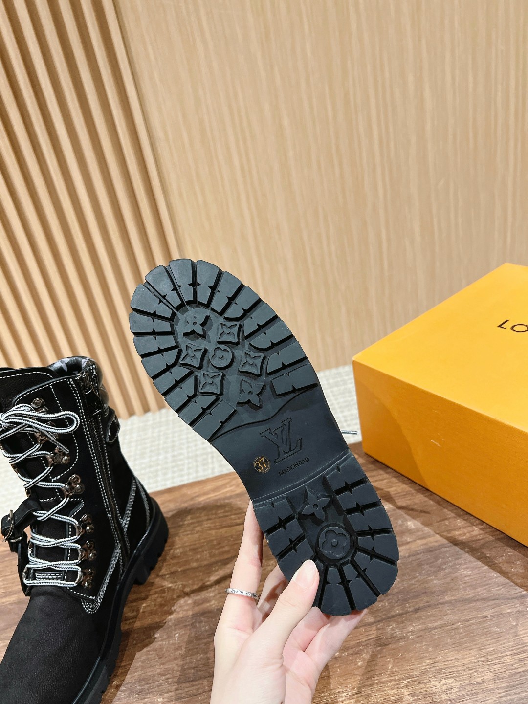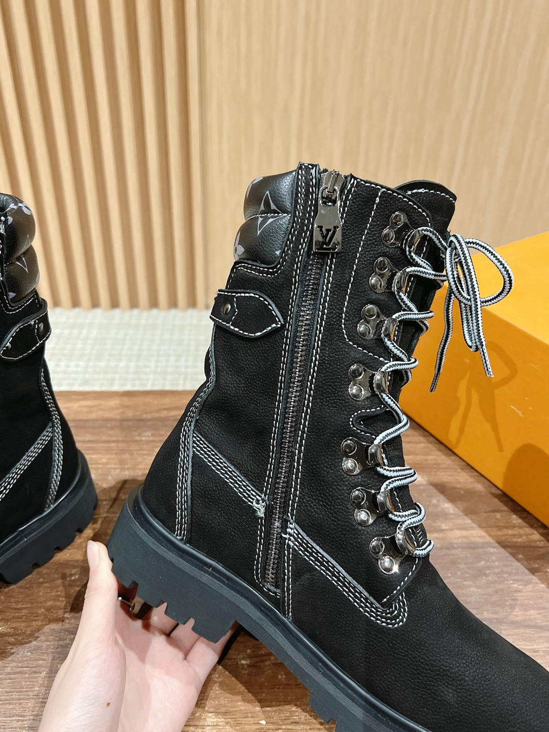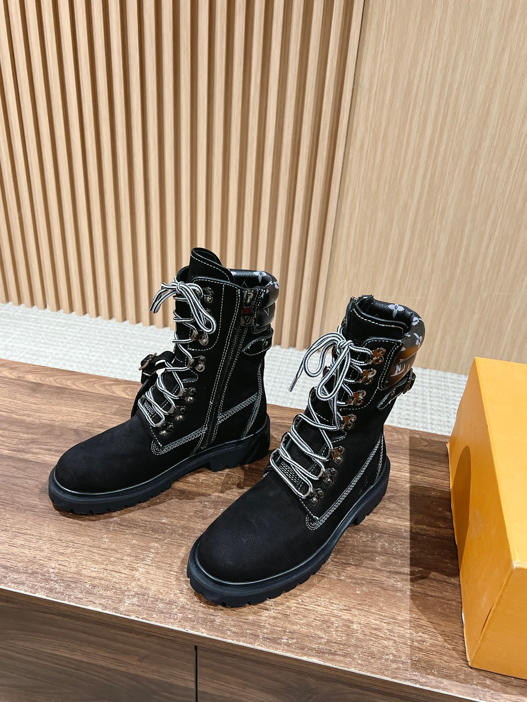 NIGO Louis Vuitton Women's Fall And Winter Old Flower Print Round Head Lace Up Embossed Waterproof Suede And Ankle Boots Martin Boots Shoes #nigo73441