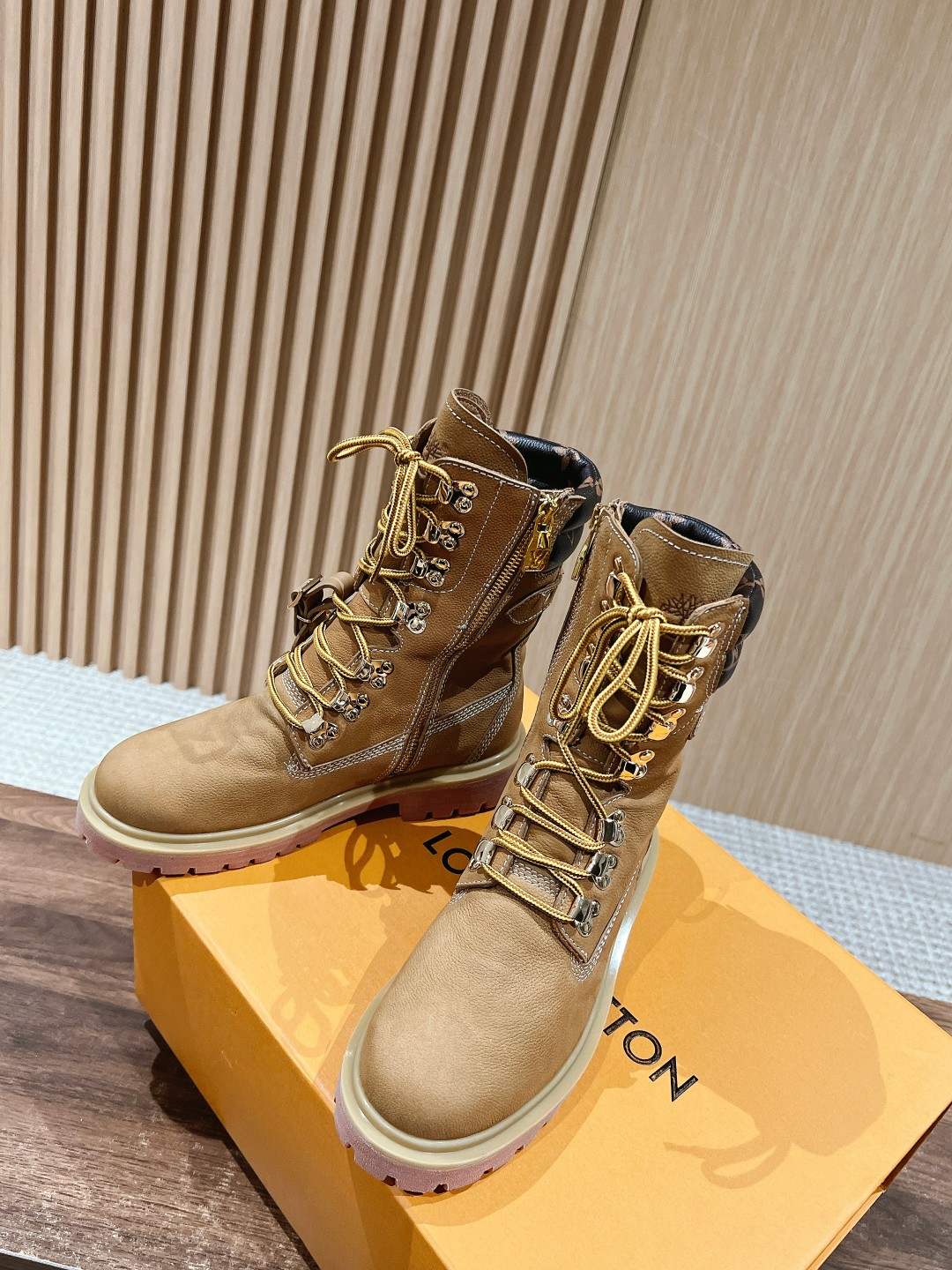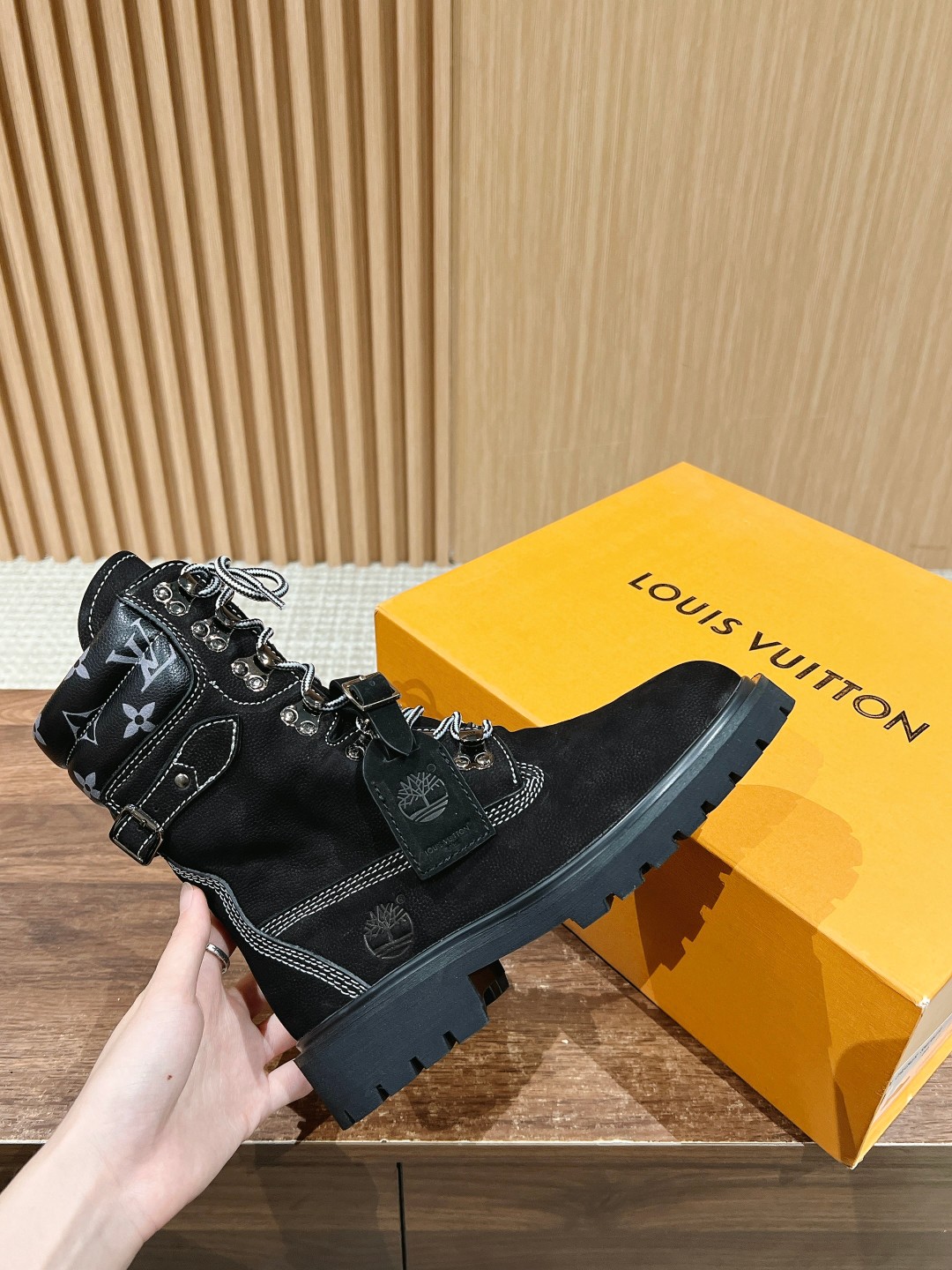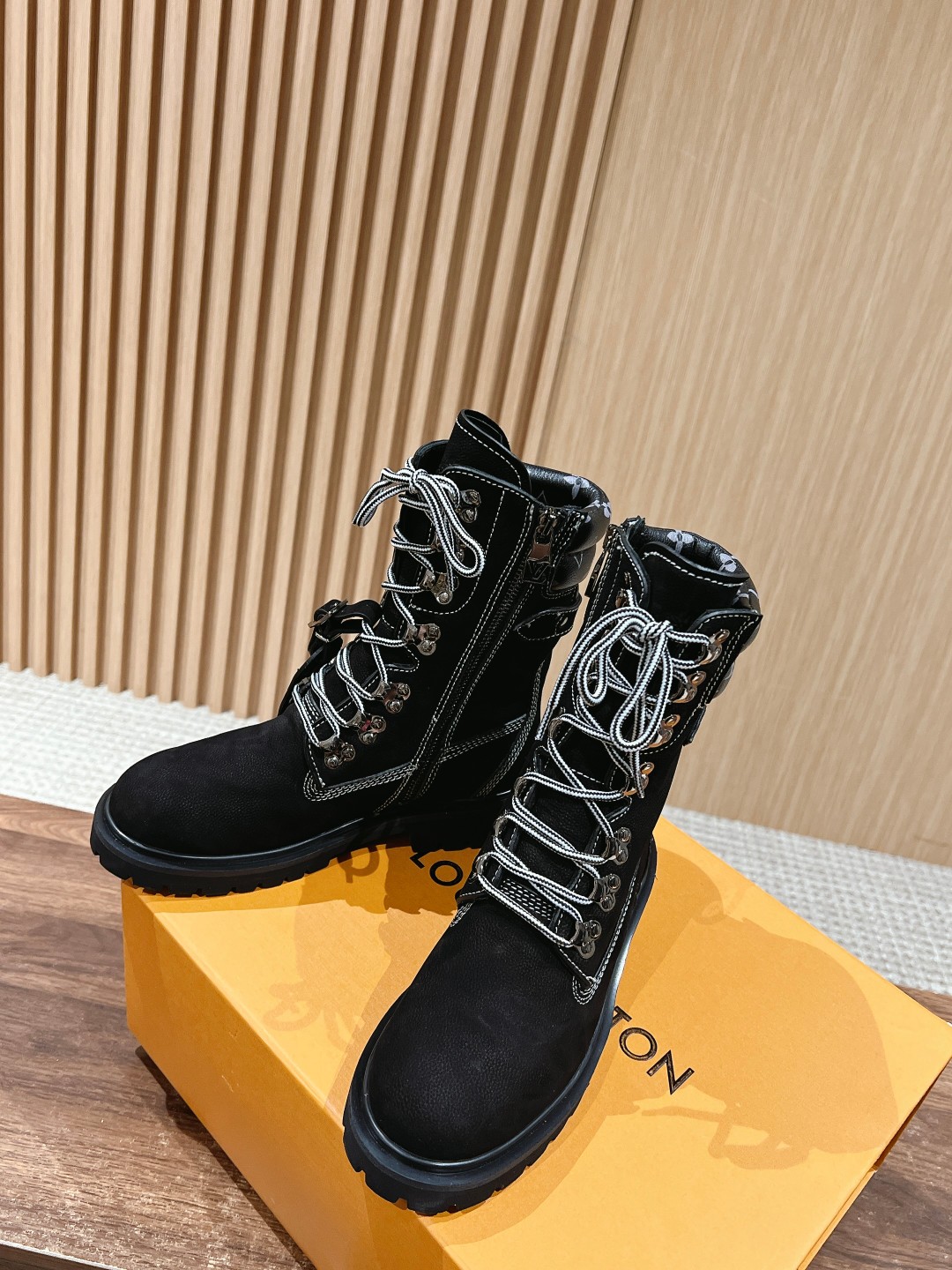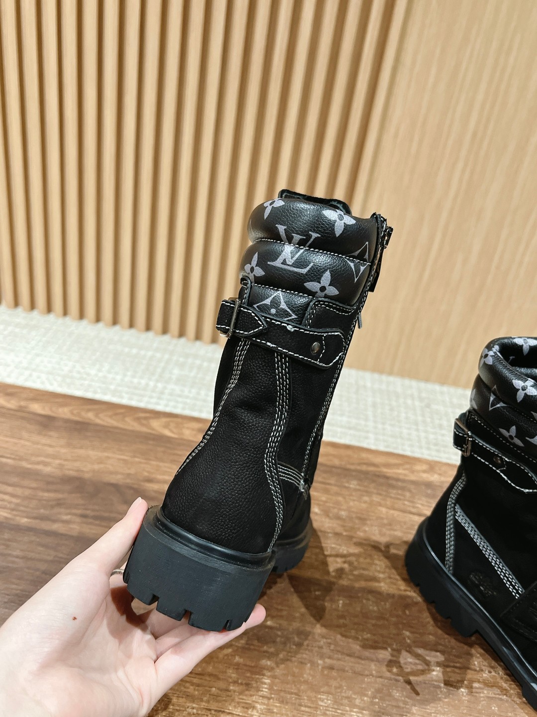 NIGO Louis Vuitton Women's Fall And Winter Old Flower Print Round Head Lace Up Embossed Waterproof Suede And Ankle Boots Martin Boots Shoes #nigo73441