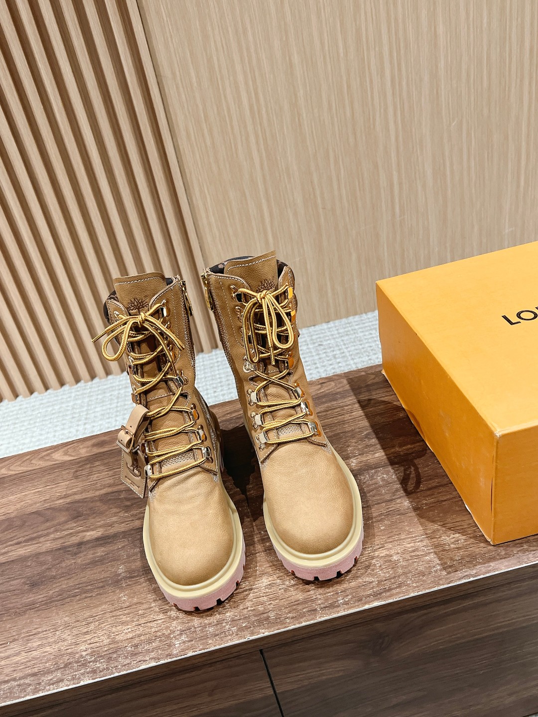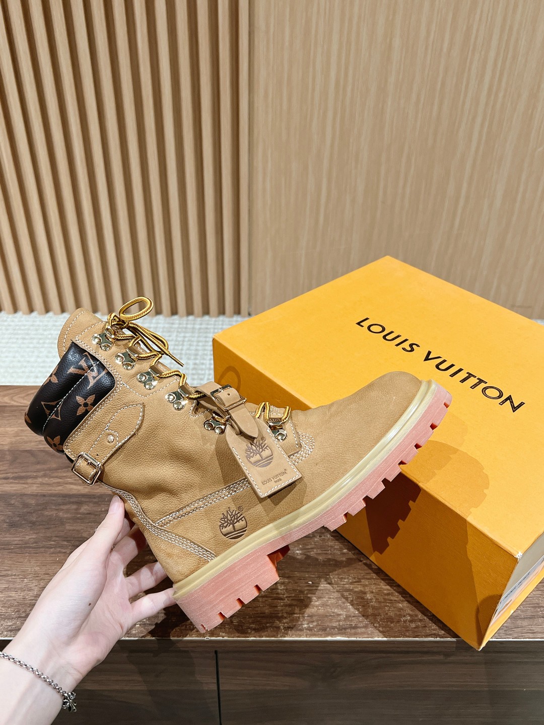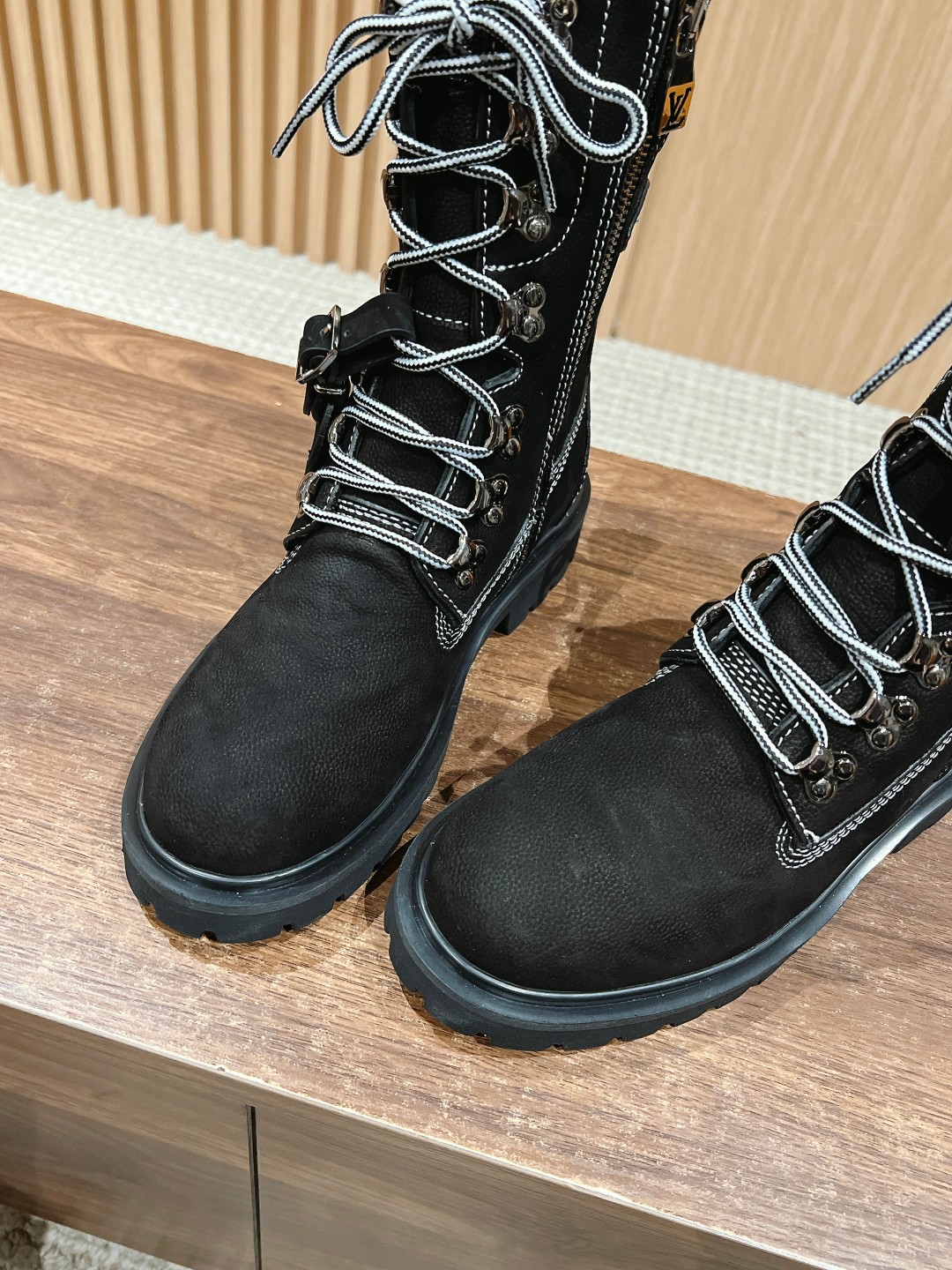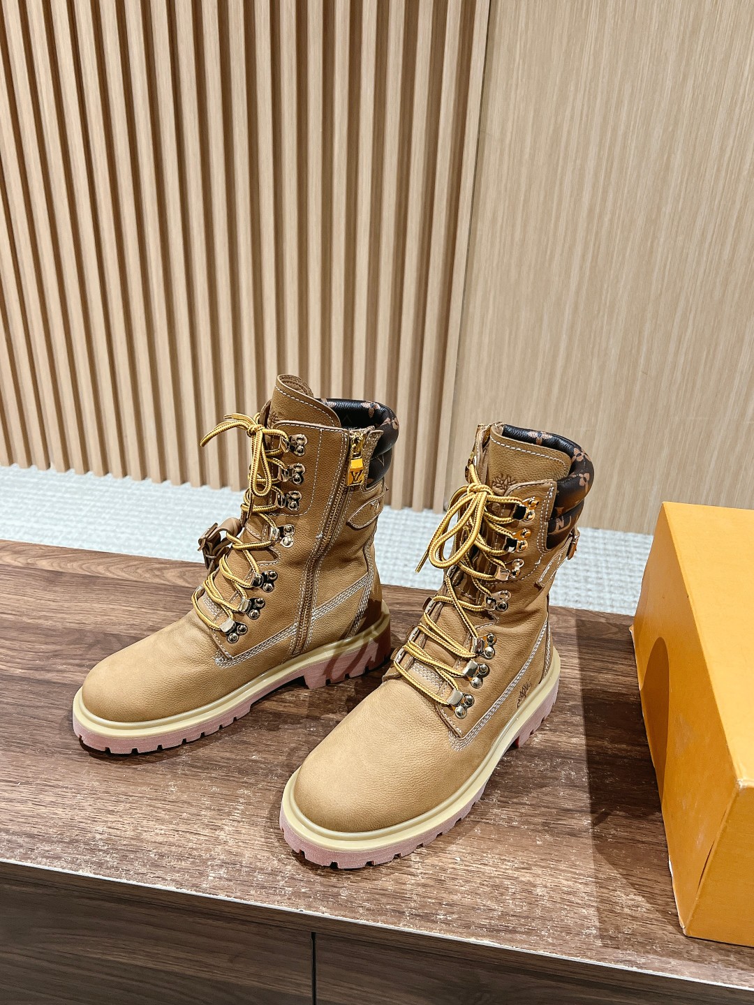 NIGO Louis Vuitton Women's Fall And Winter Old Flower Print Round Head Lace Up Embossed Waterproof Suede And Ankle Boots Martin Boots Shoes #nigo73441