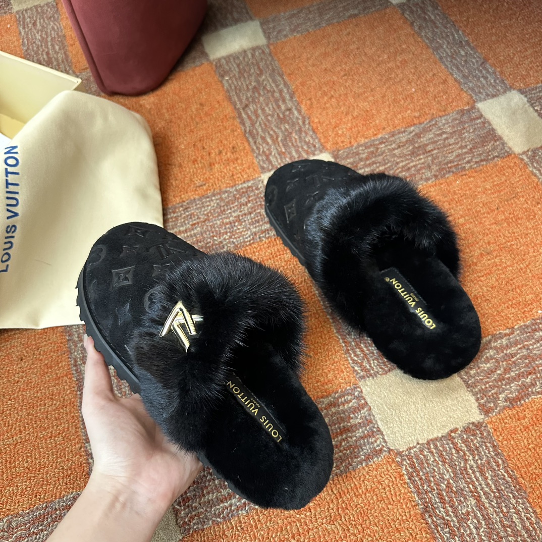 NIGO Louis Vuitton Women's Fur One Logo Printed Sandals Slippers Autumn And Winter Outer Wear Fashionable Elegant Temperament Casual Shoes #nigo72379